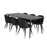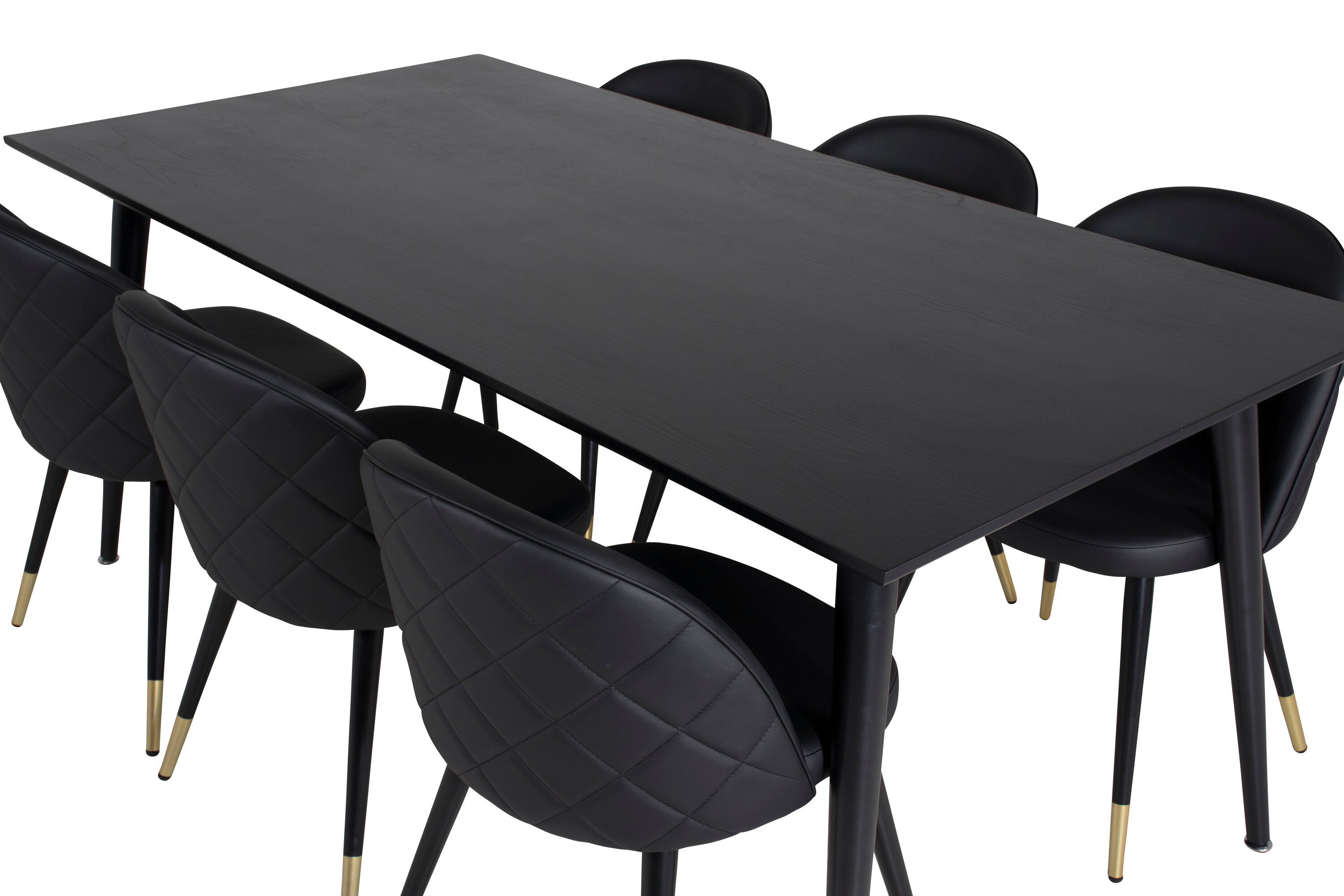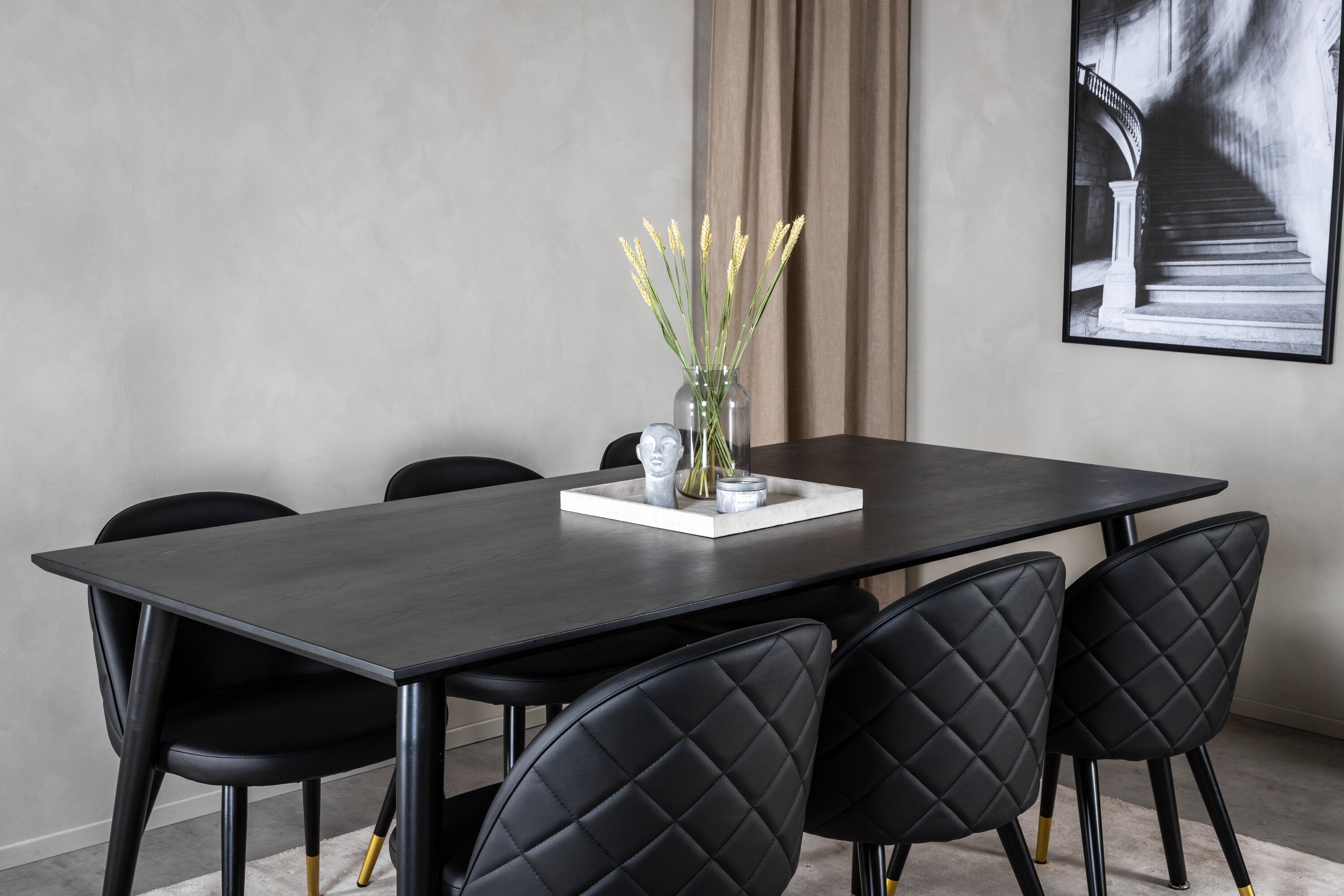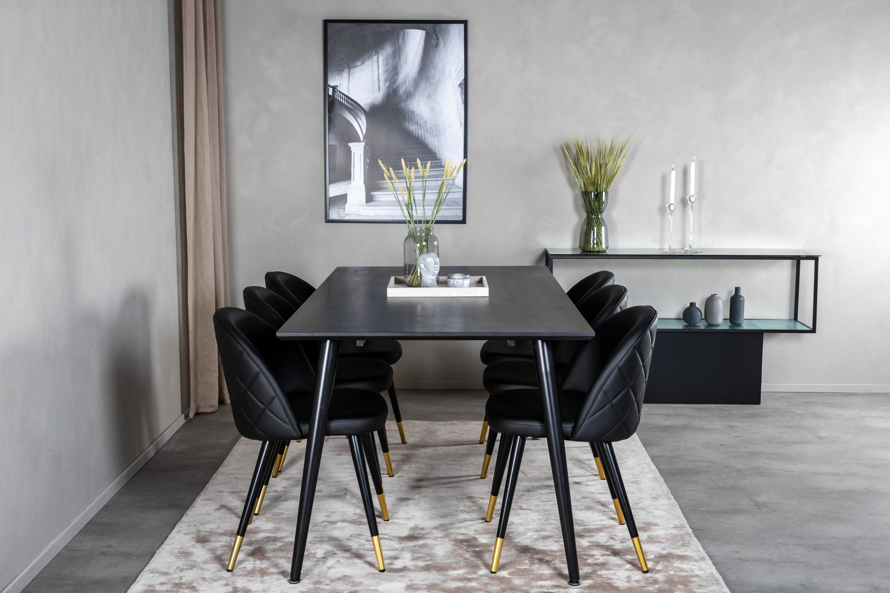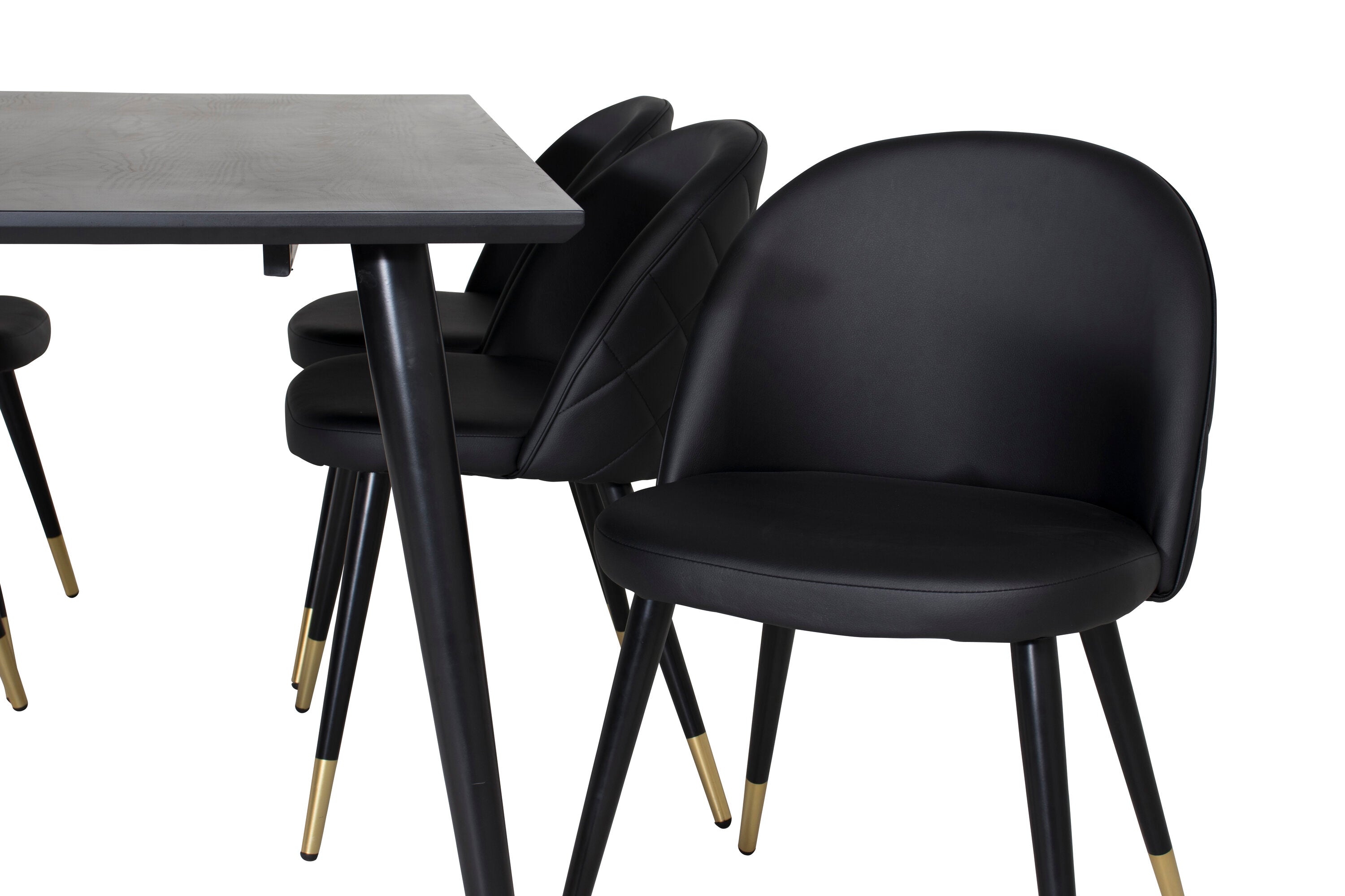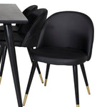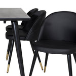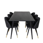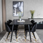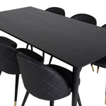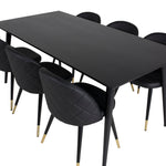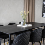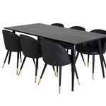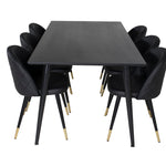 Dipp Jídelní stůl - 180*90cm - Černá dýha / celé černé nohy + Sametová jídelní židle š. Stiches - PU - Black / Black_6
