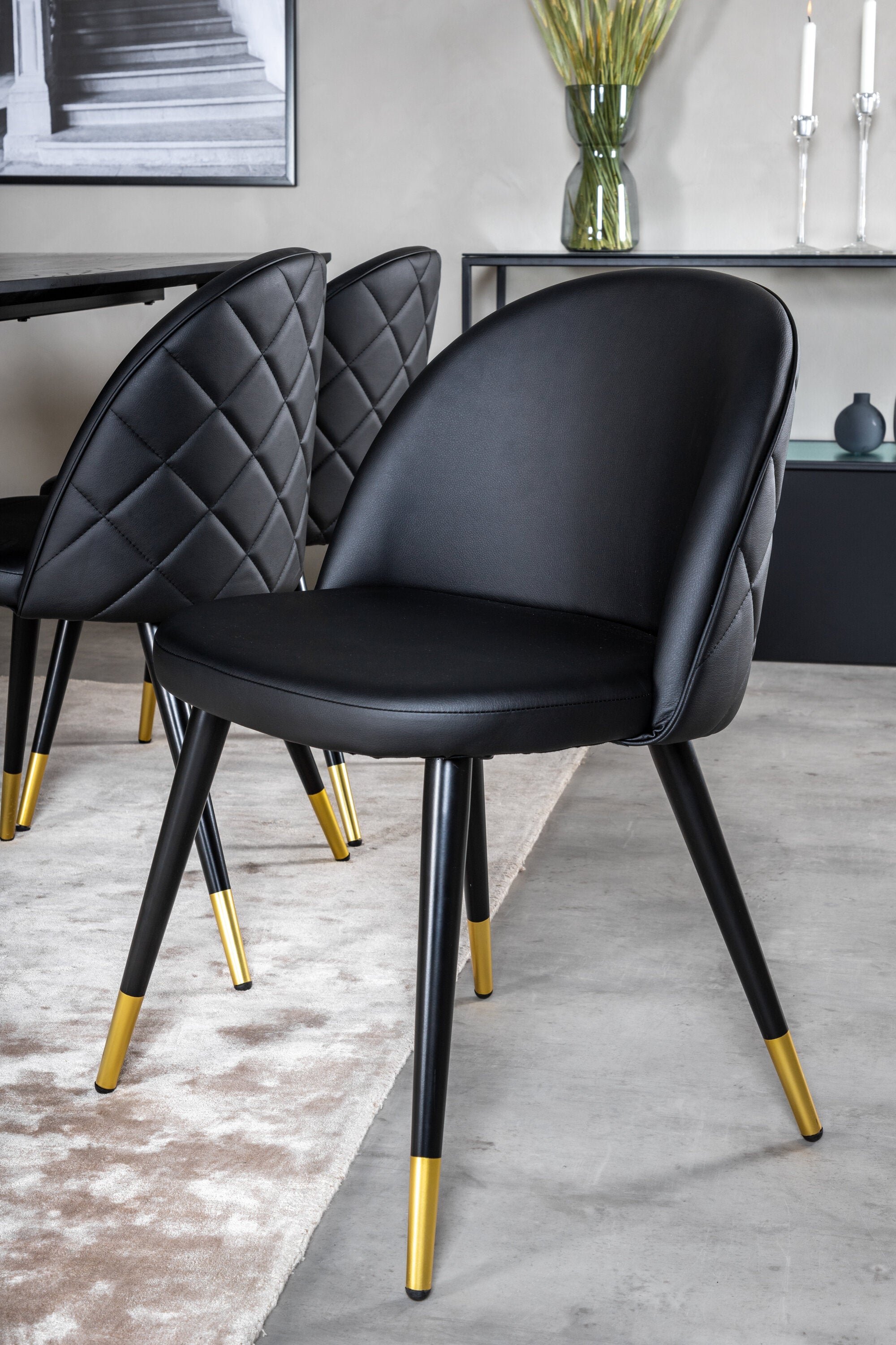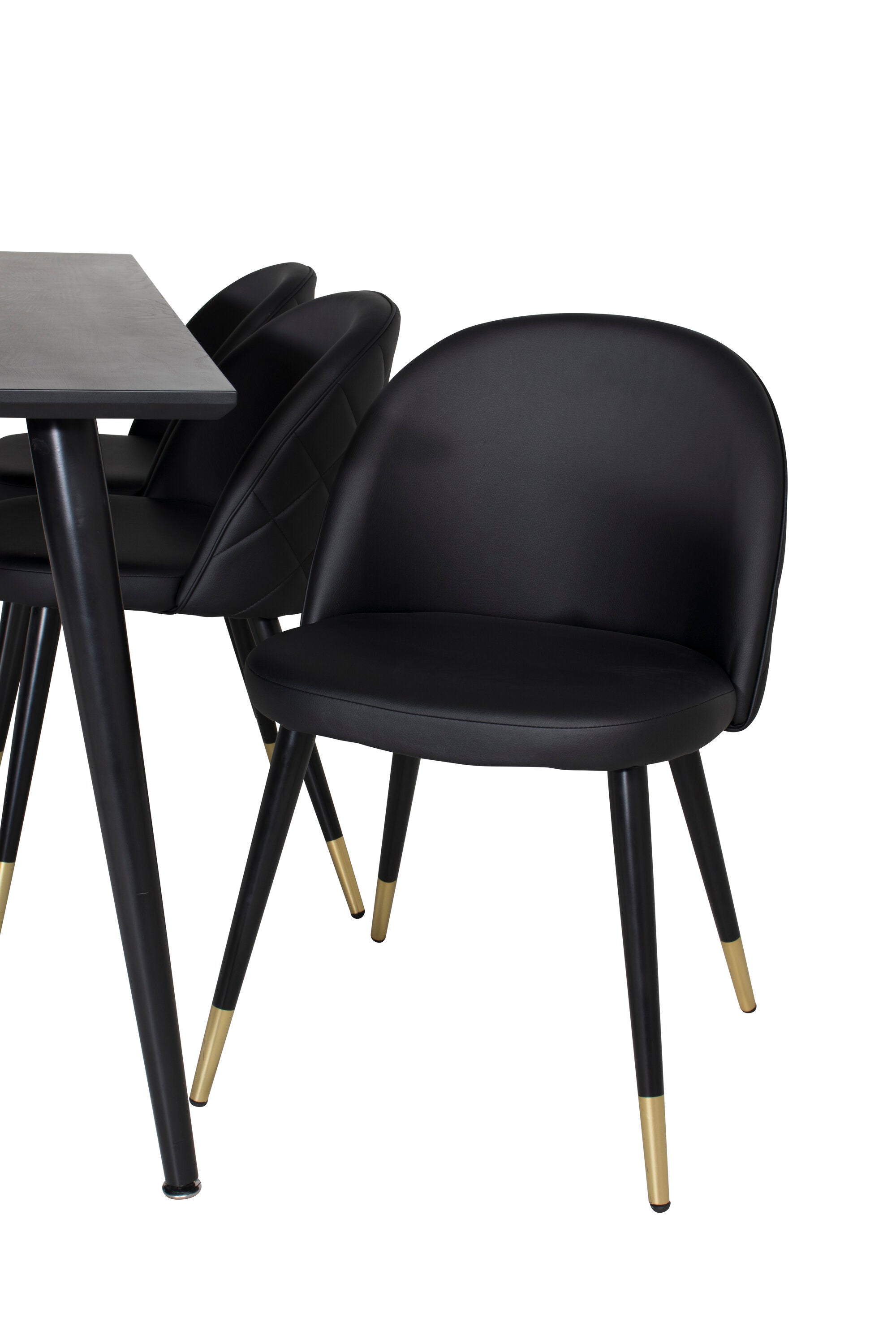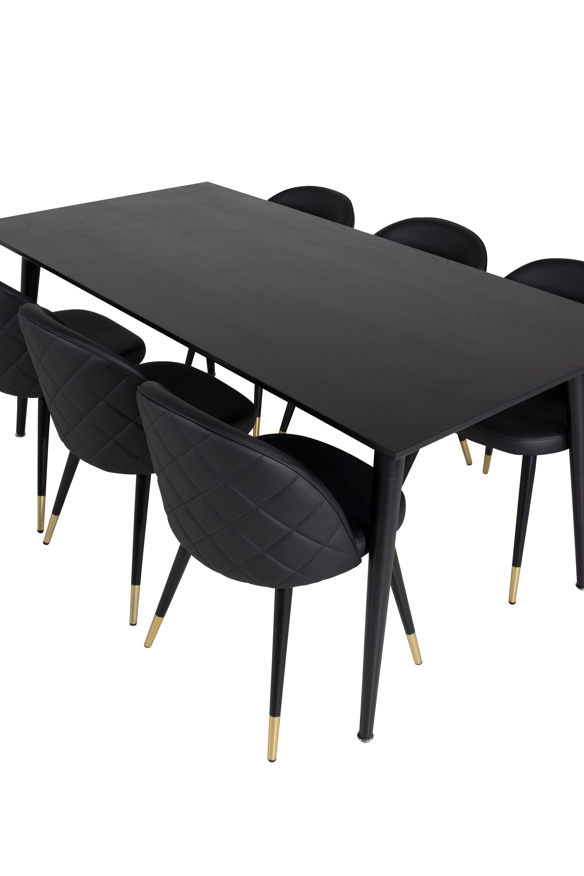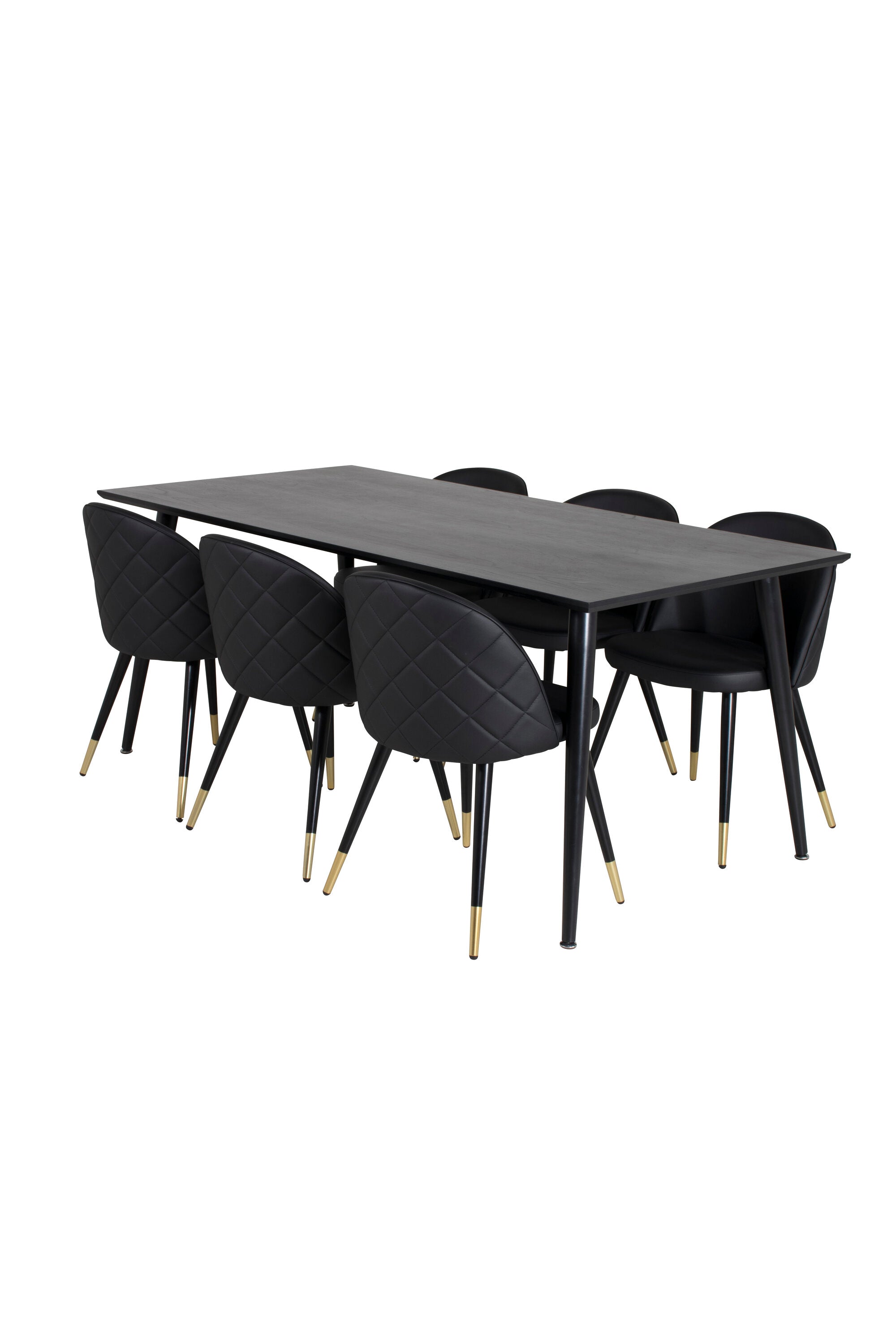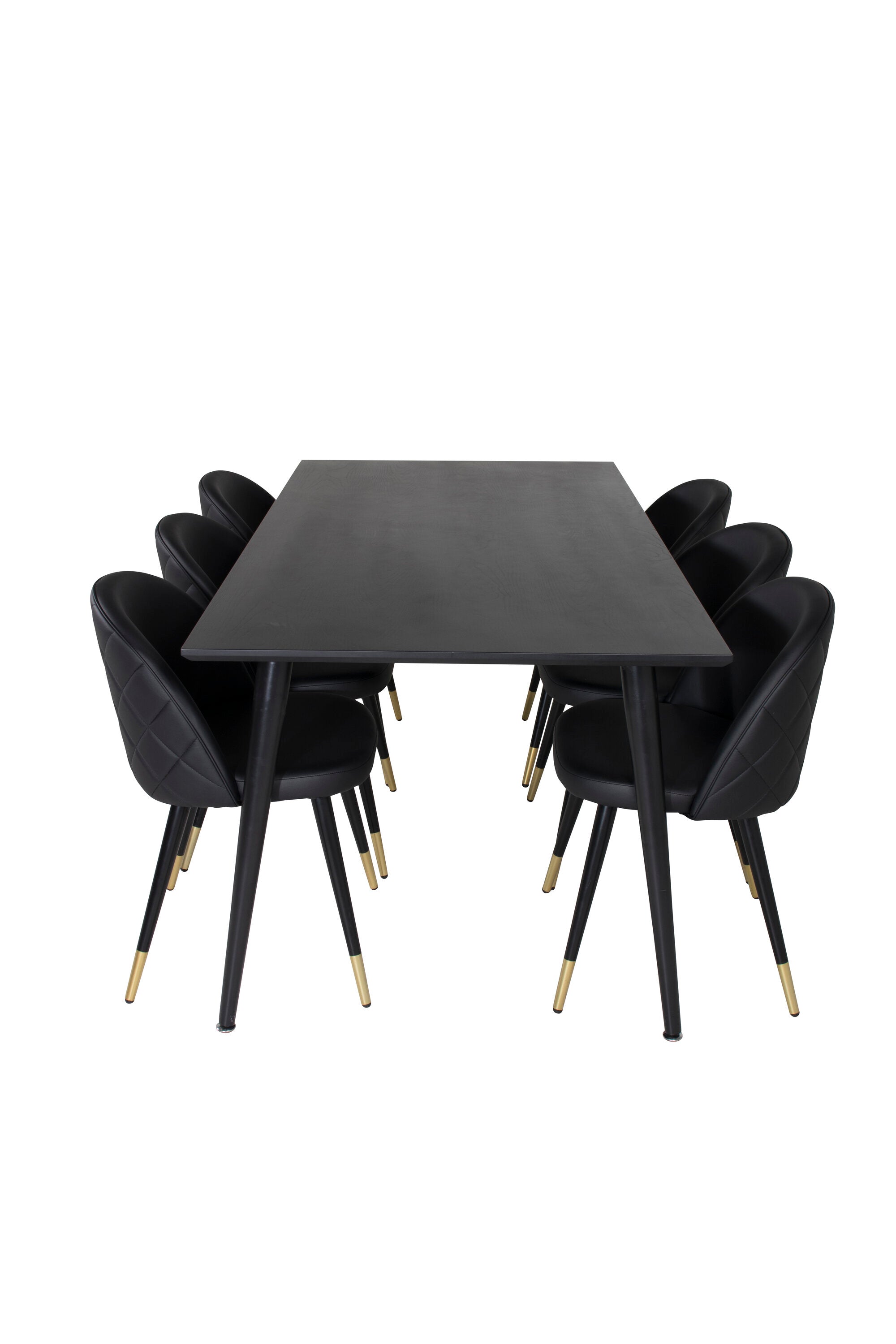 Dipp Jídelní stůl - 180*90cm - Černá dýha / celé černé nohy + Sametová jídelní židle š. Stiches - PU - Black / Black_6