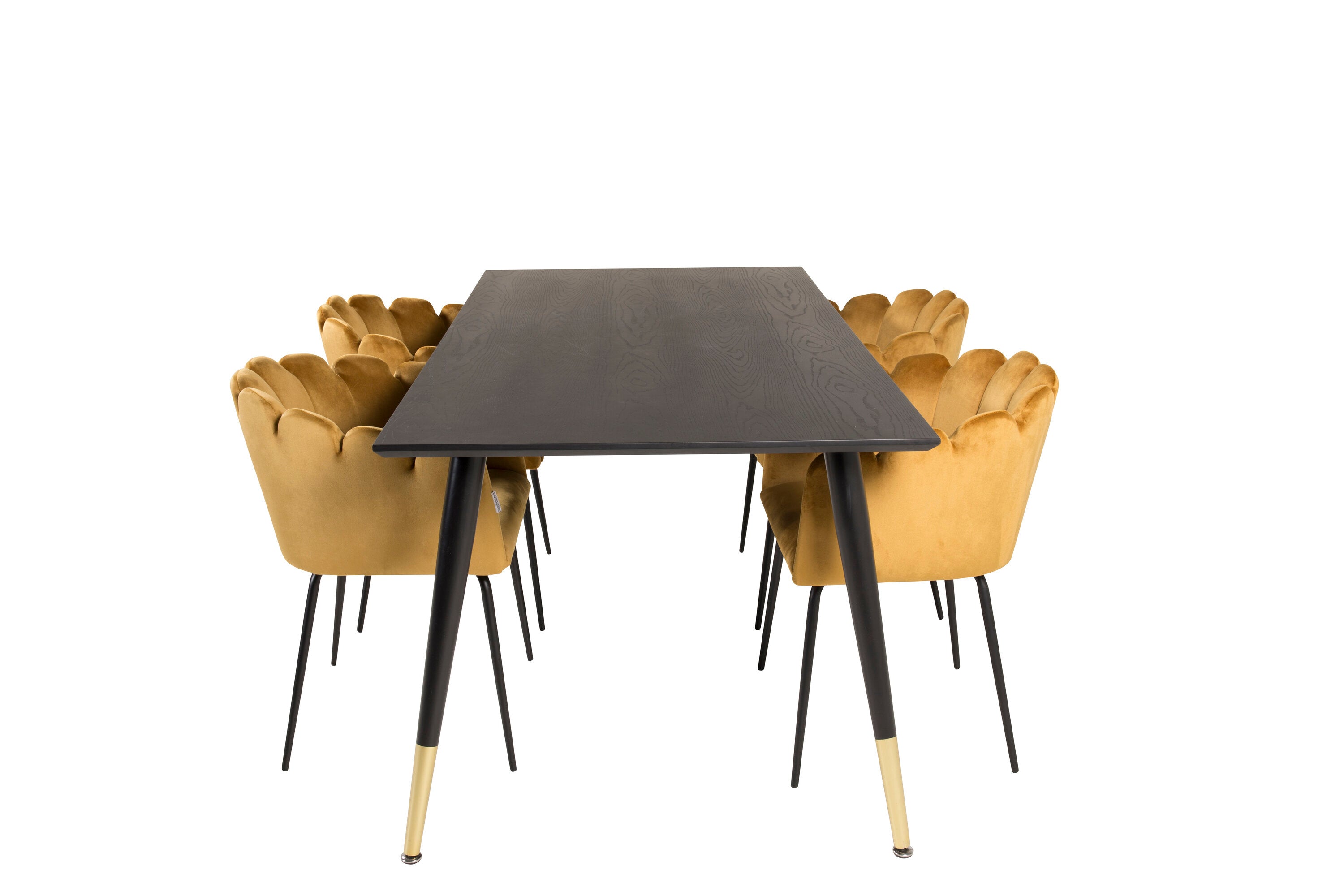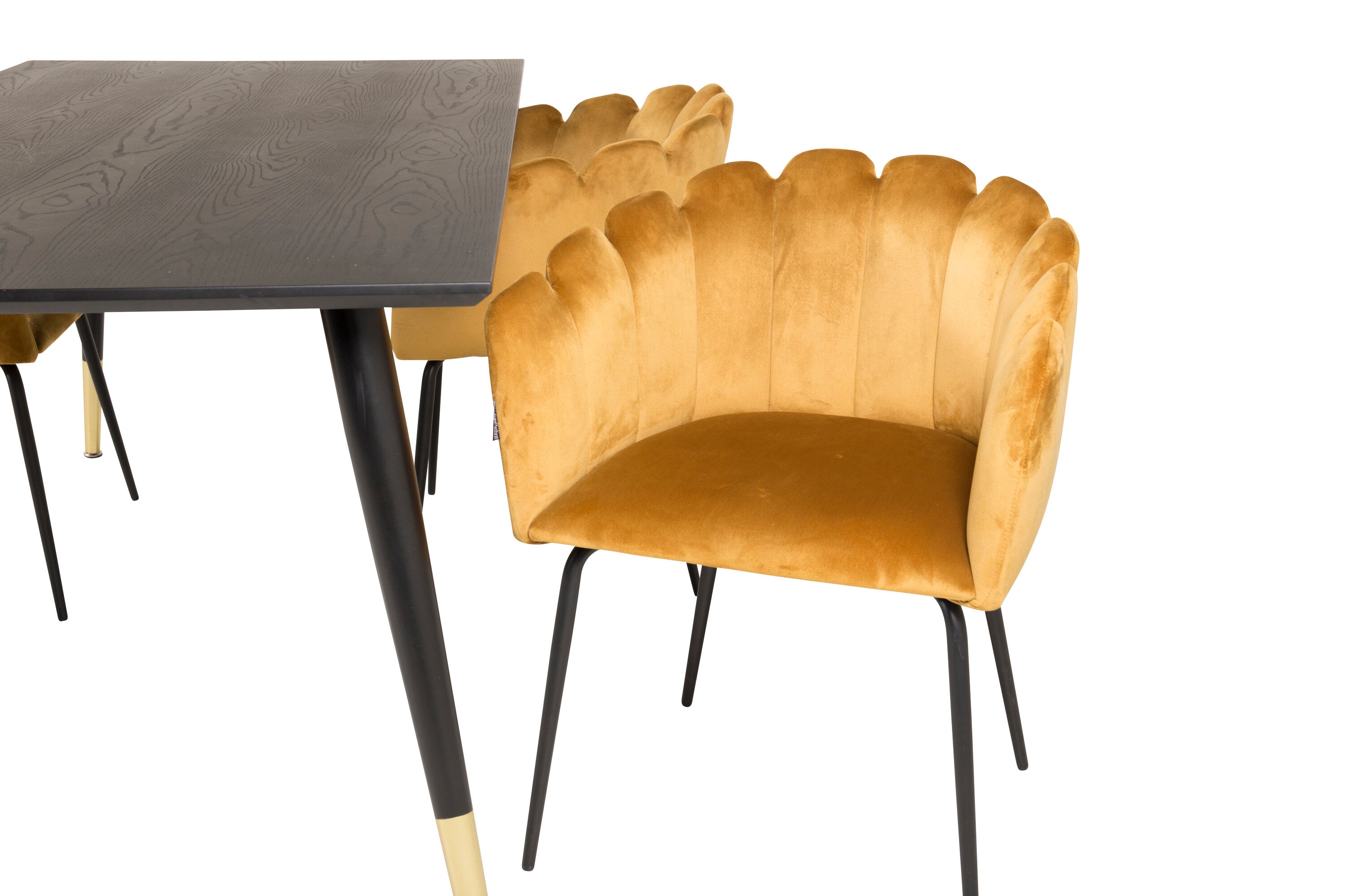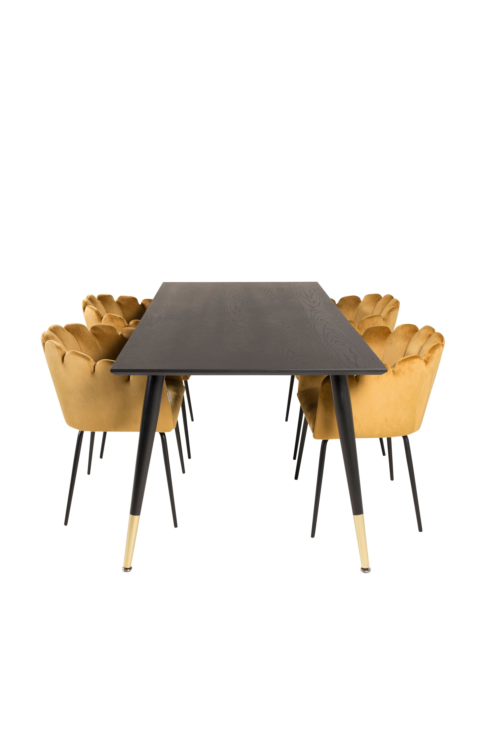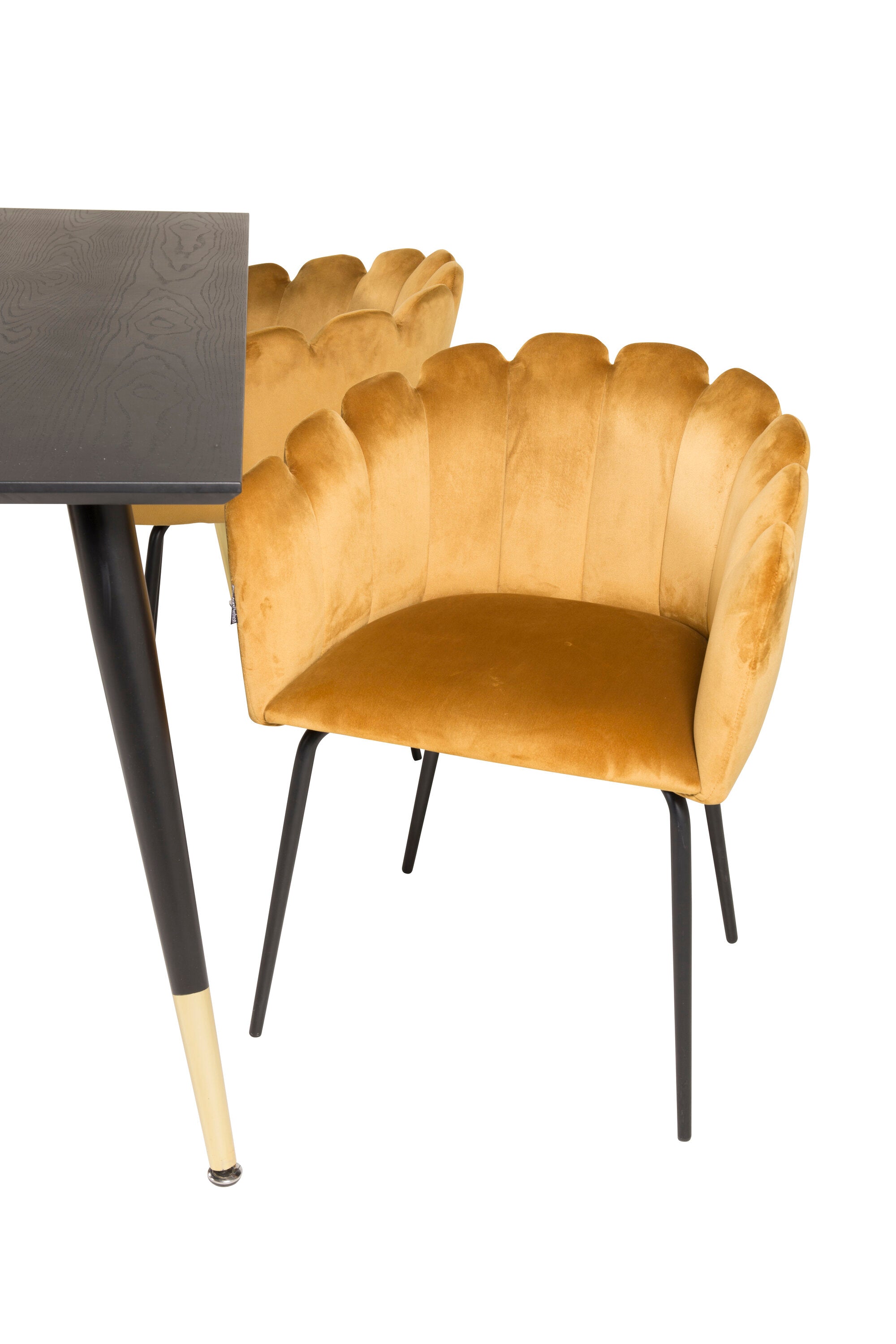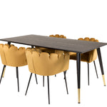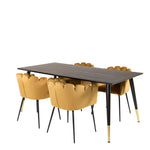Dipp jídelní stůl - 180*90cm - Černá dýha / černé nohy s mosazným dippem +Limhamn - Židle - Gold Velvet_4