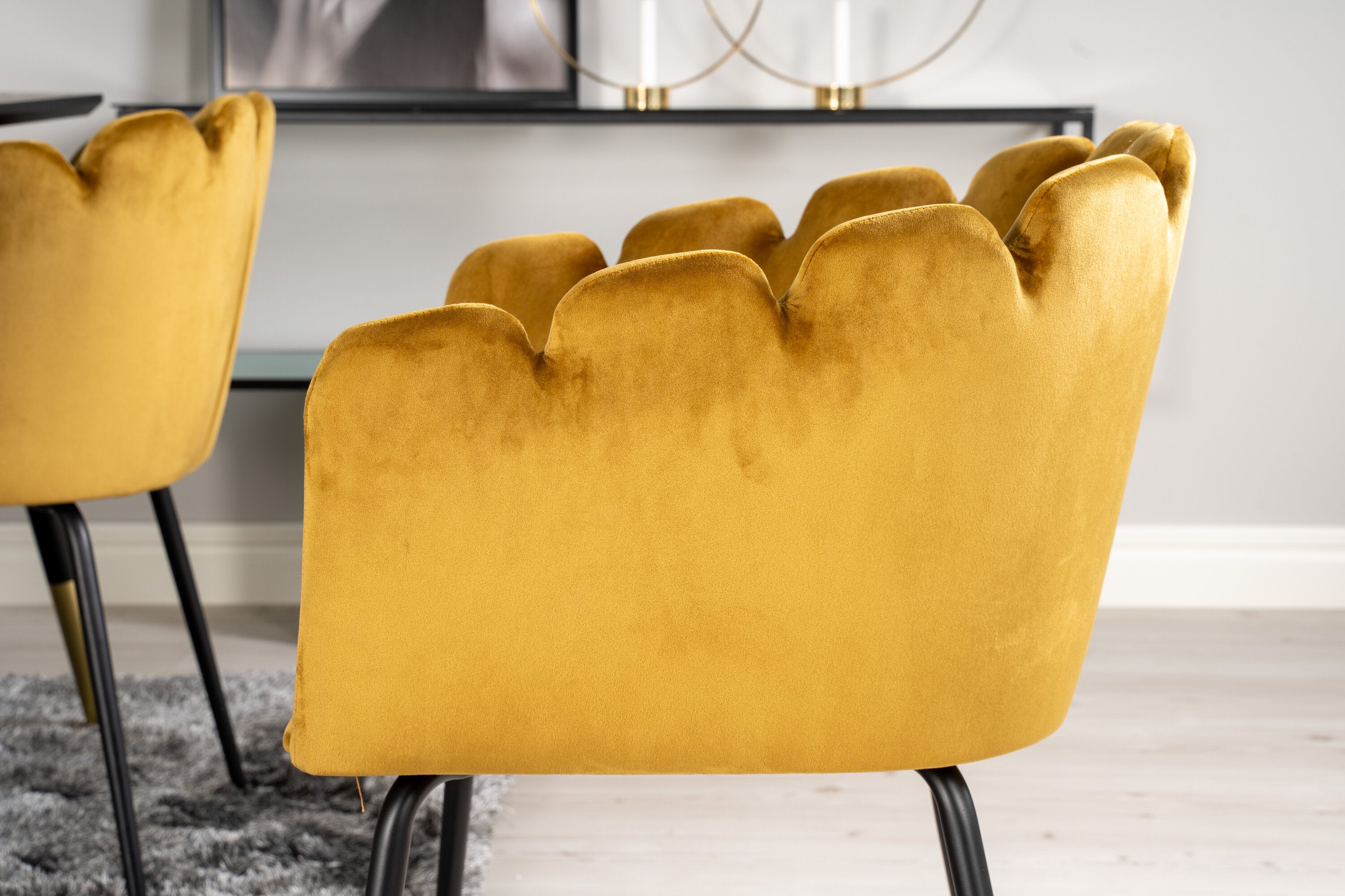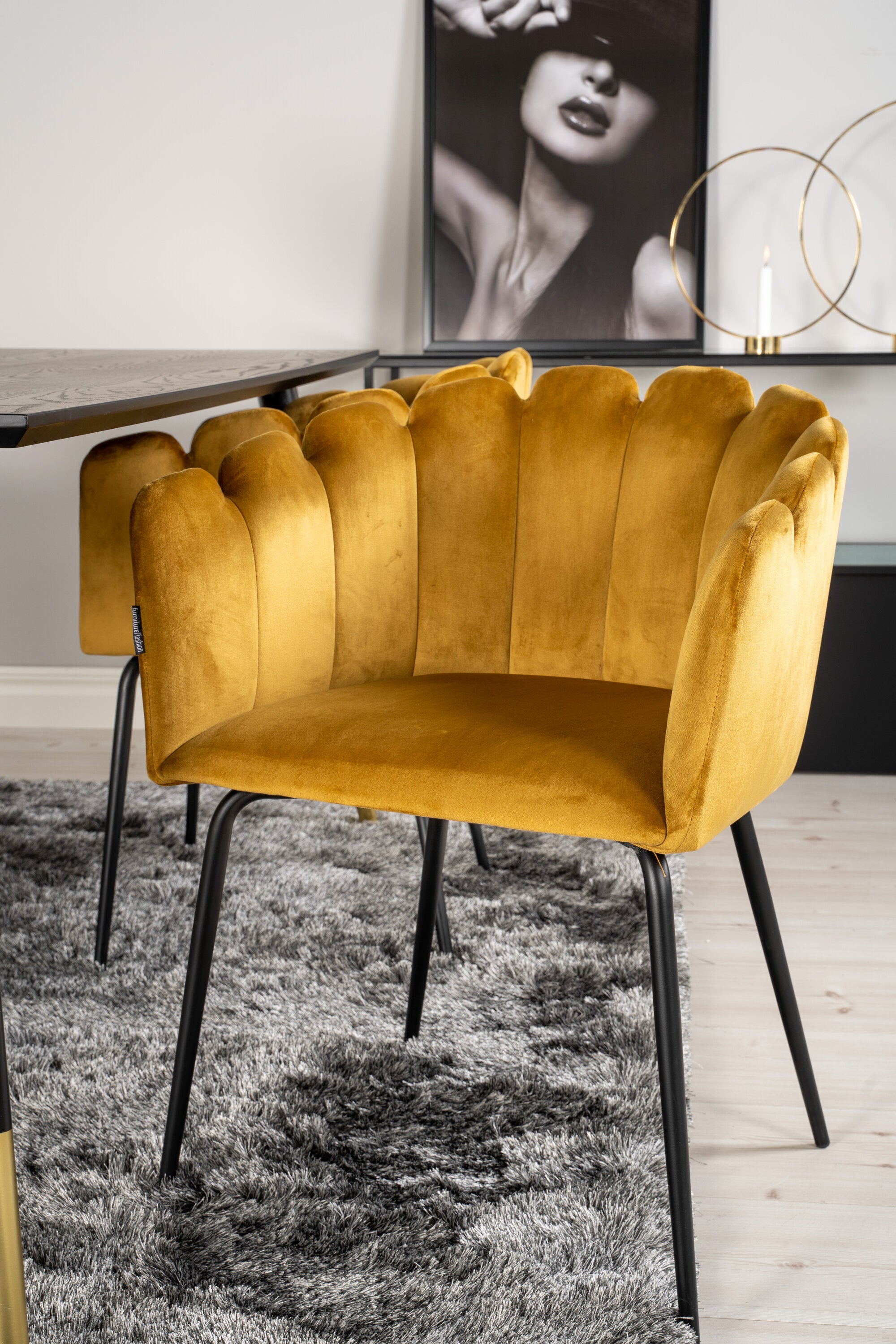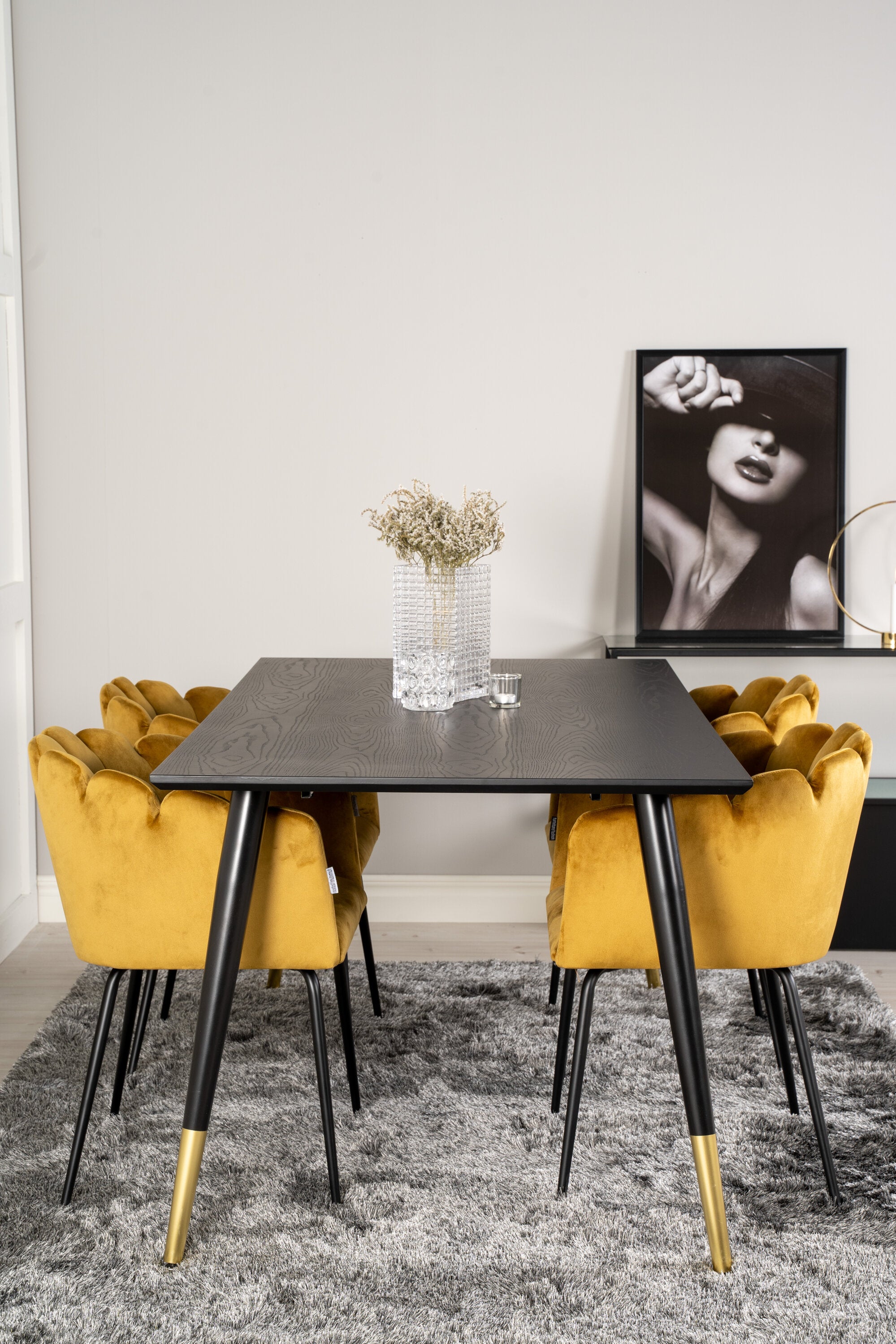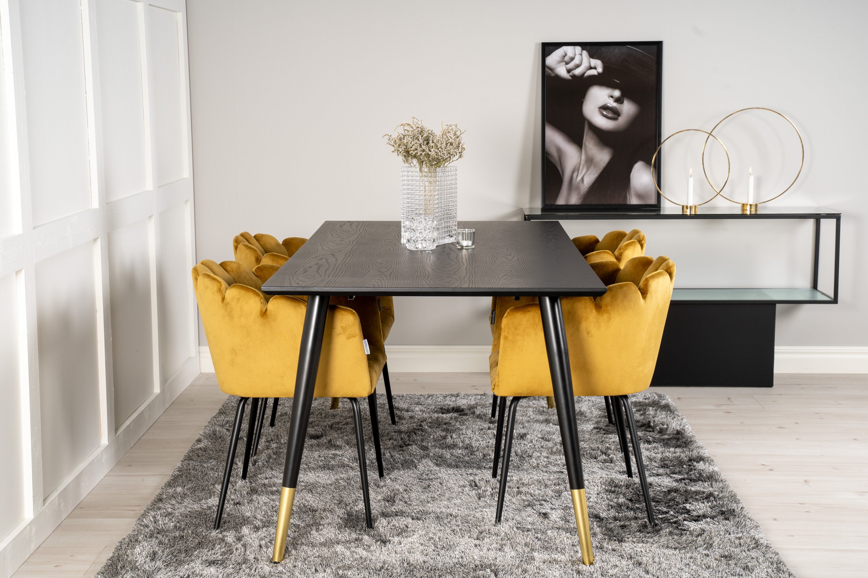 Dipp jídelní stůl - 180*90cm - Černá dýha / černé nohy s mosazným dippem +Limhamn - Židle - Gold Velvet_4