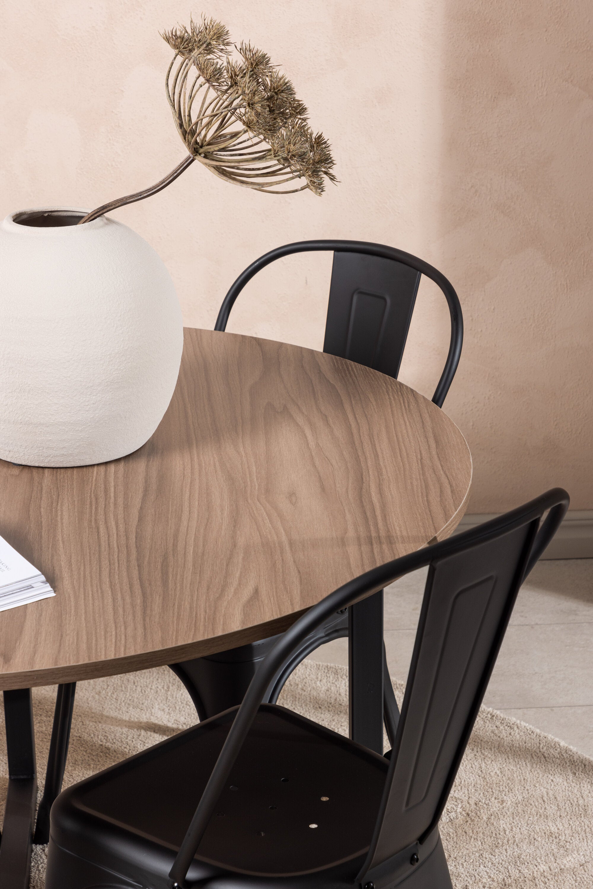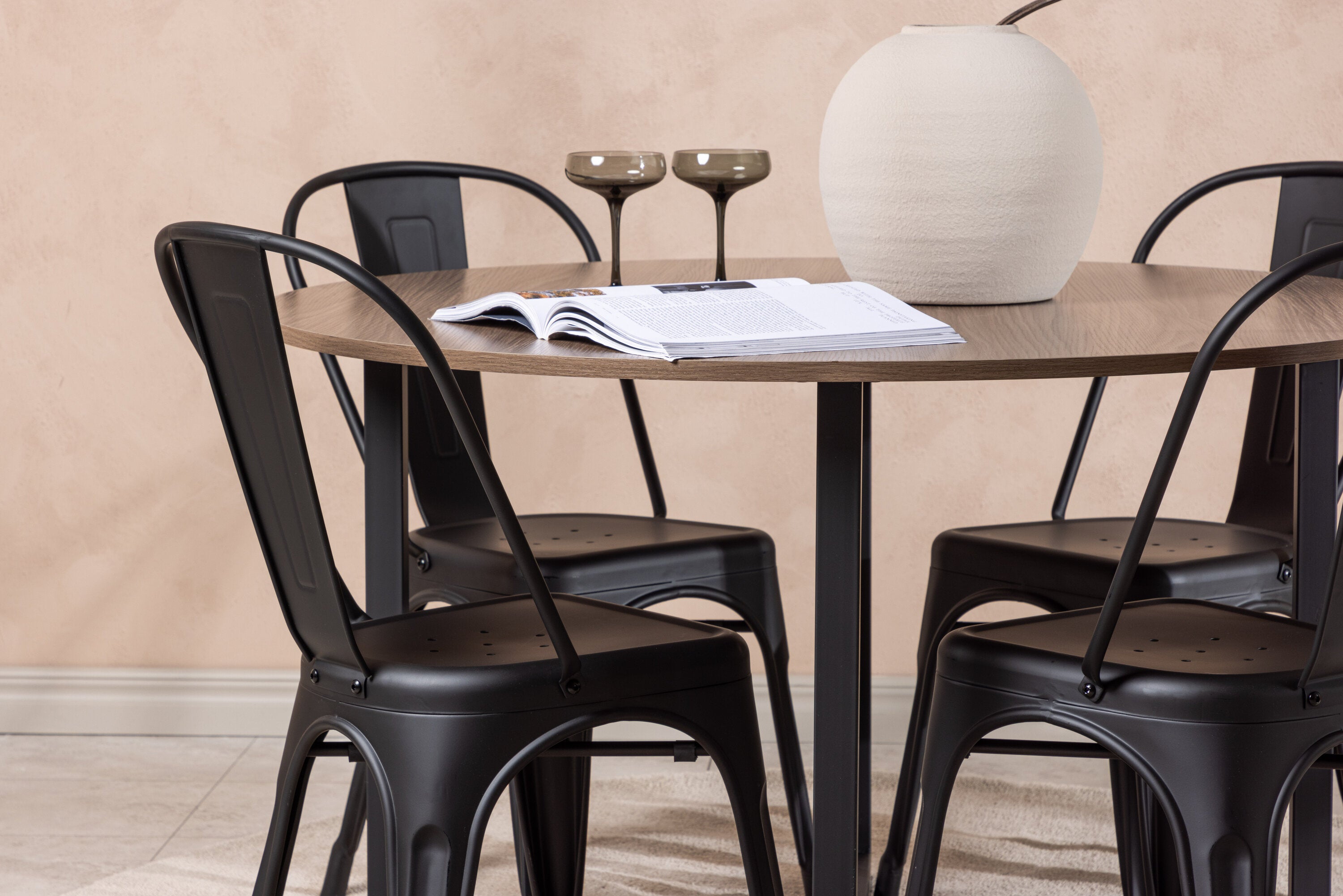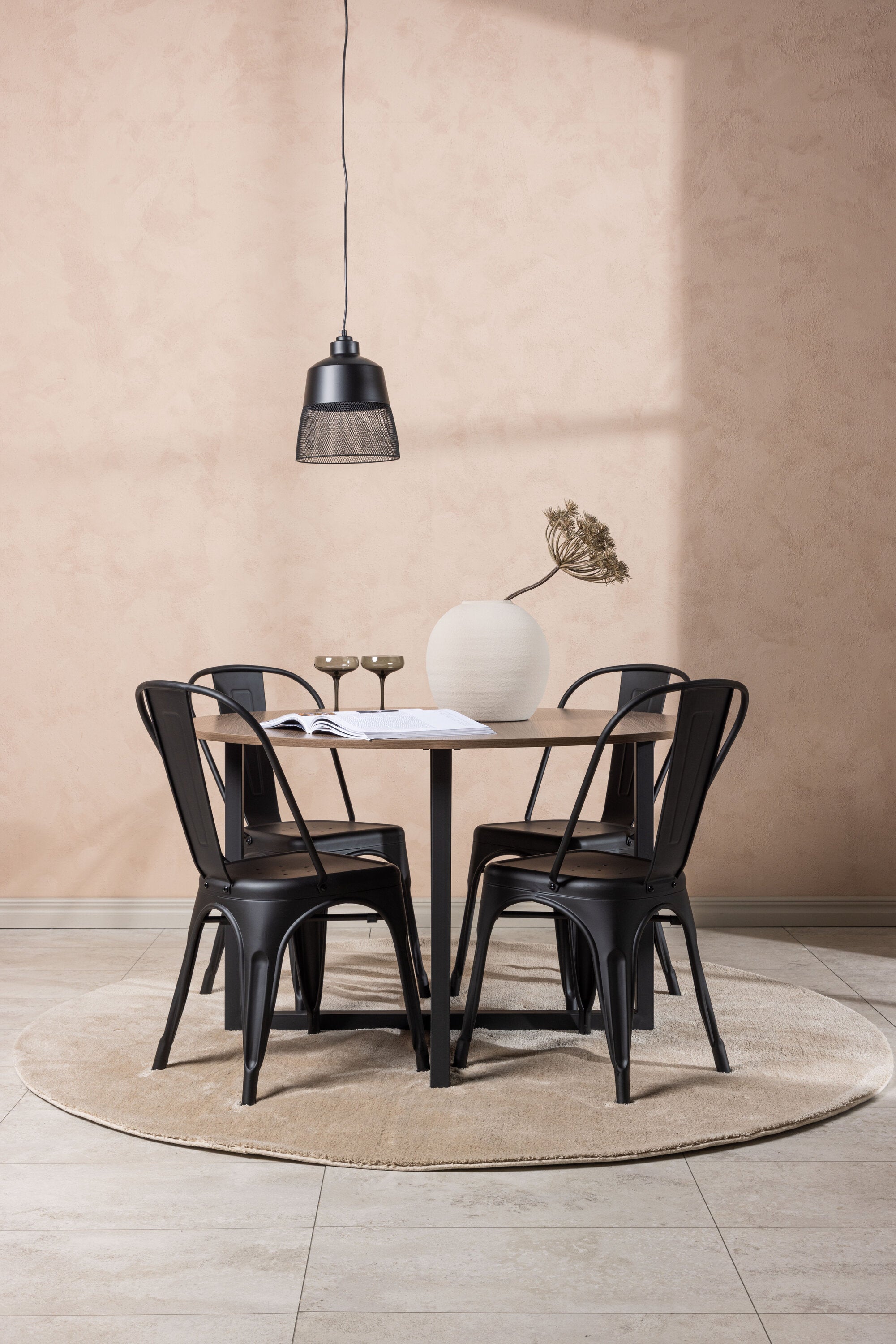 Kombinujte zemité barvy s trendy tvary! Náš kulatý jídelní stůl Durango má desku stolu z MDF v barvě ořechu a rovné nohy stolu z černé oceli, které se na podlaze sbíhají do kříže. Zde společně s našimi černými jídelními židlemi ze série Tempe. Lehce rozšířené nohy židle, které plynule navazují na sedák a opěradlo ve stylovém designu, důsledně vyrobené z černého kovu. Vybavte srdce domova přívětivě! Rozměry stolu: 120 cm.