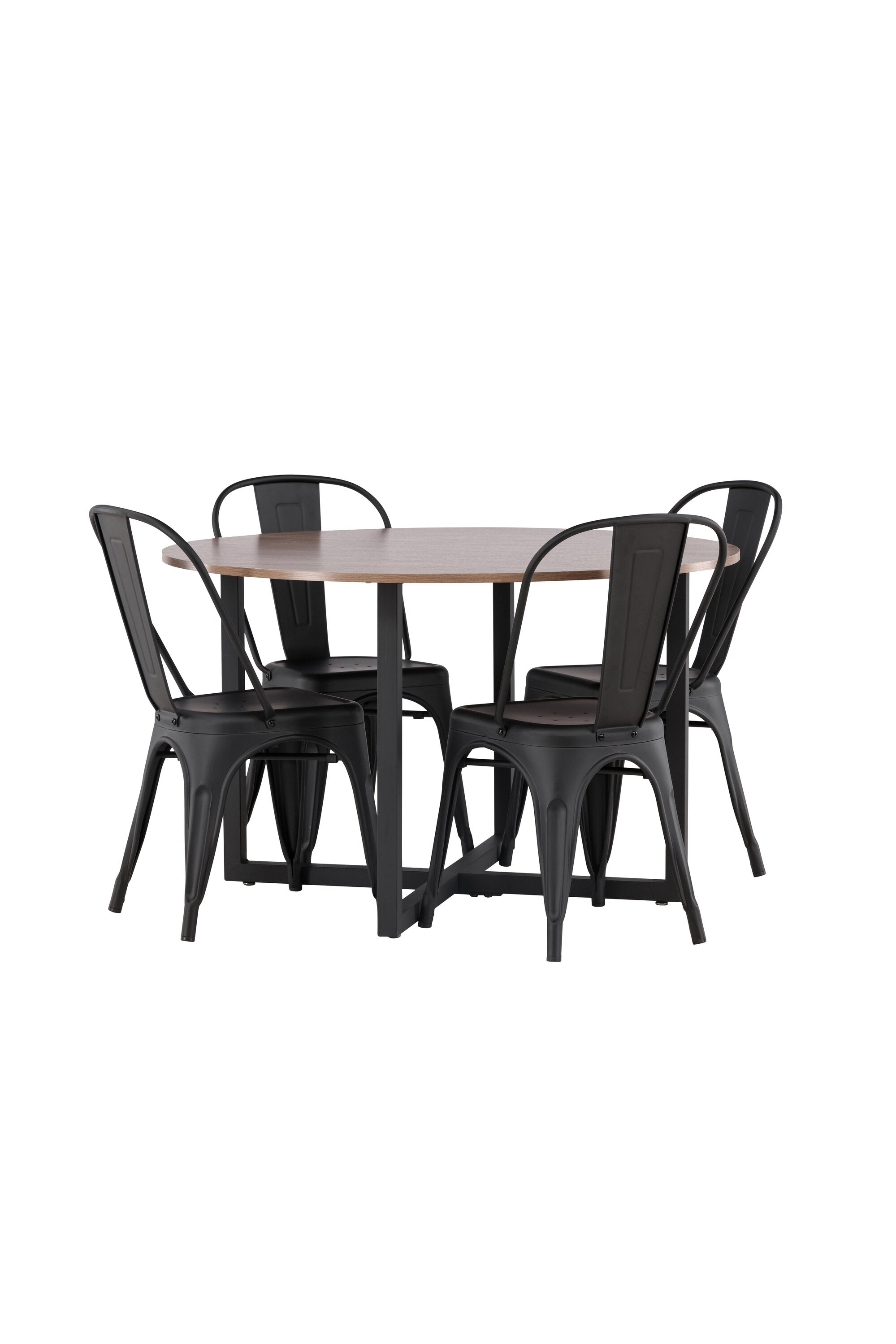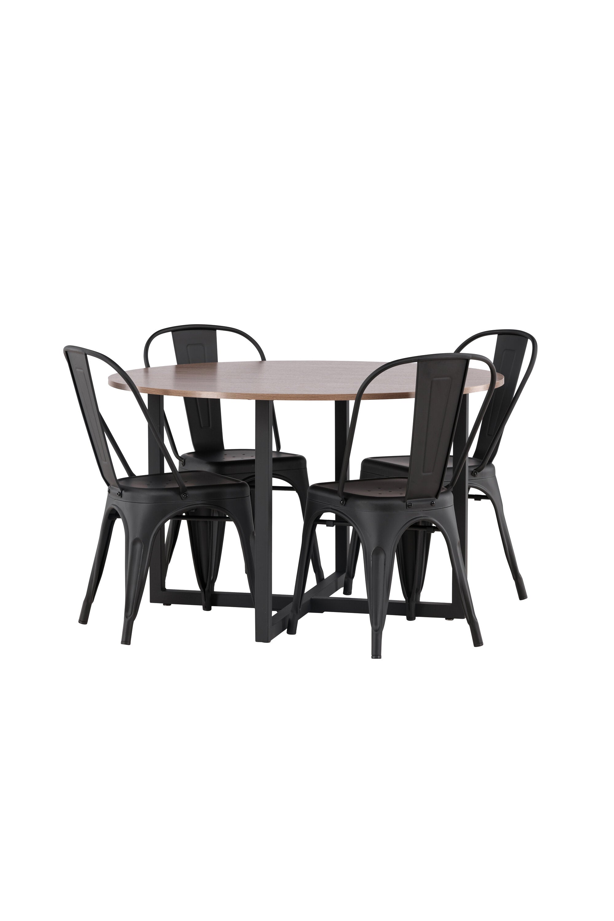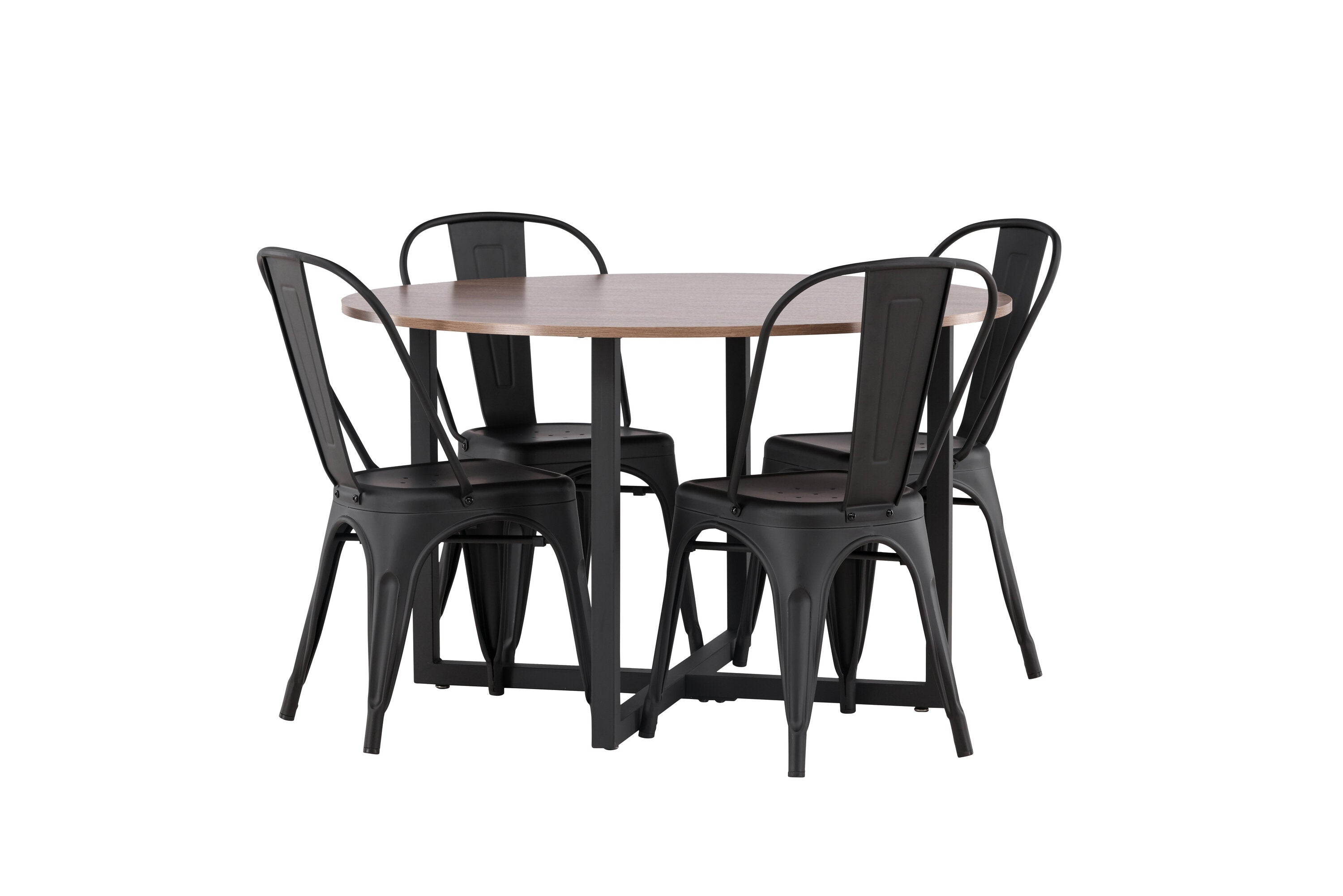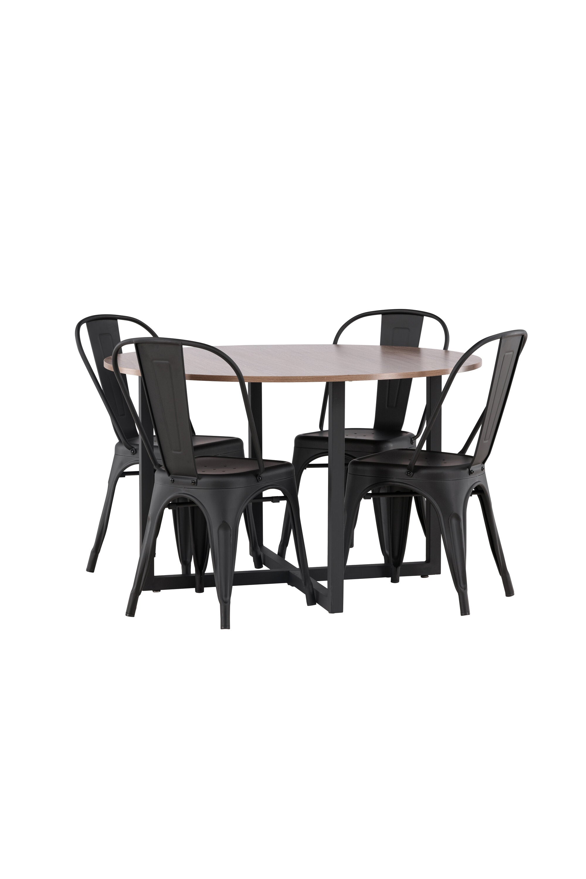 Durango Jídelní stůl - Černá / Ořech MDF + Jídelní židle Tempe - Matná černá / Kov _4