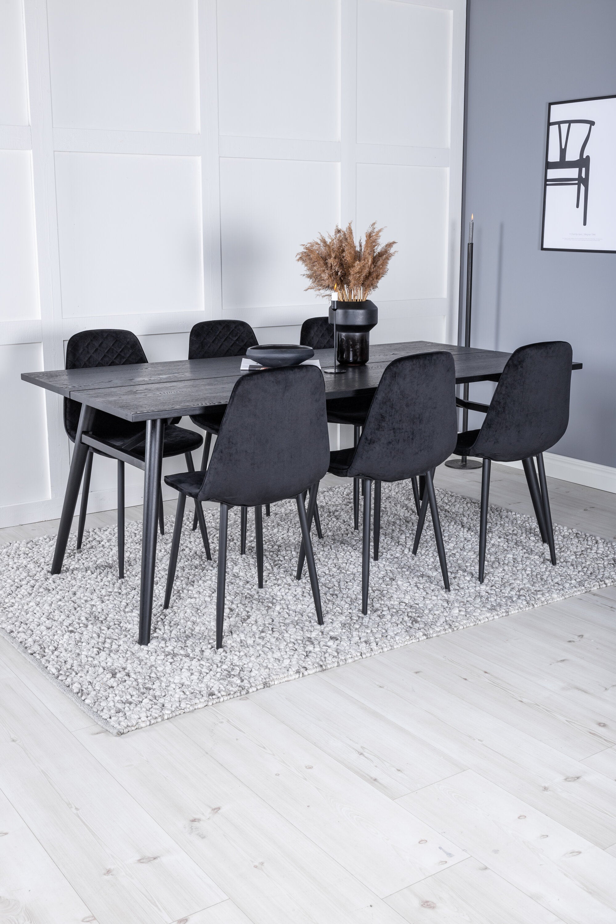 Elegantní rozšiřitelná černá kartáčovaná – 195*95+jídelní židle Polar Diamond – černé nohy – Black Velvet_6