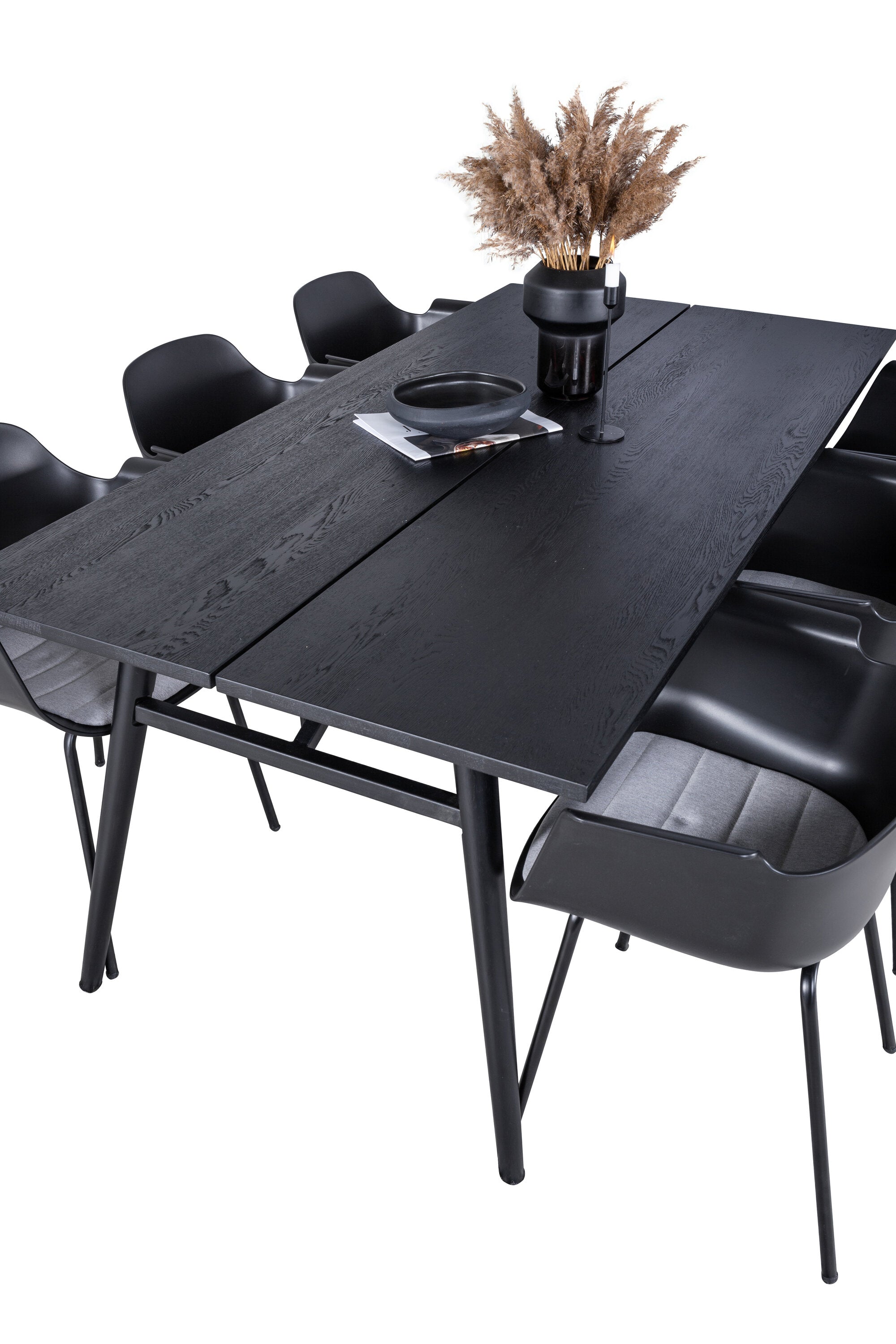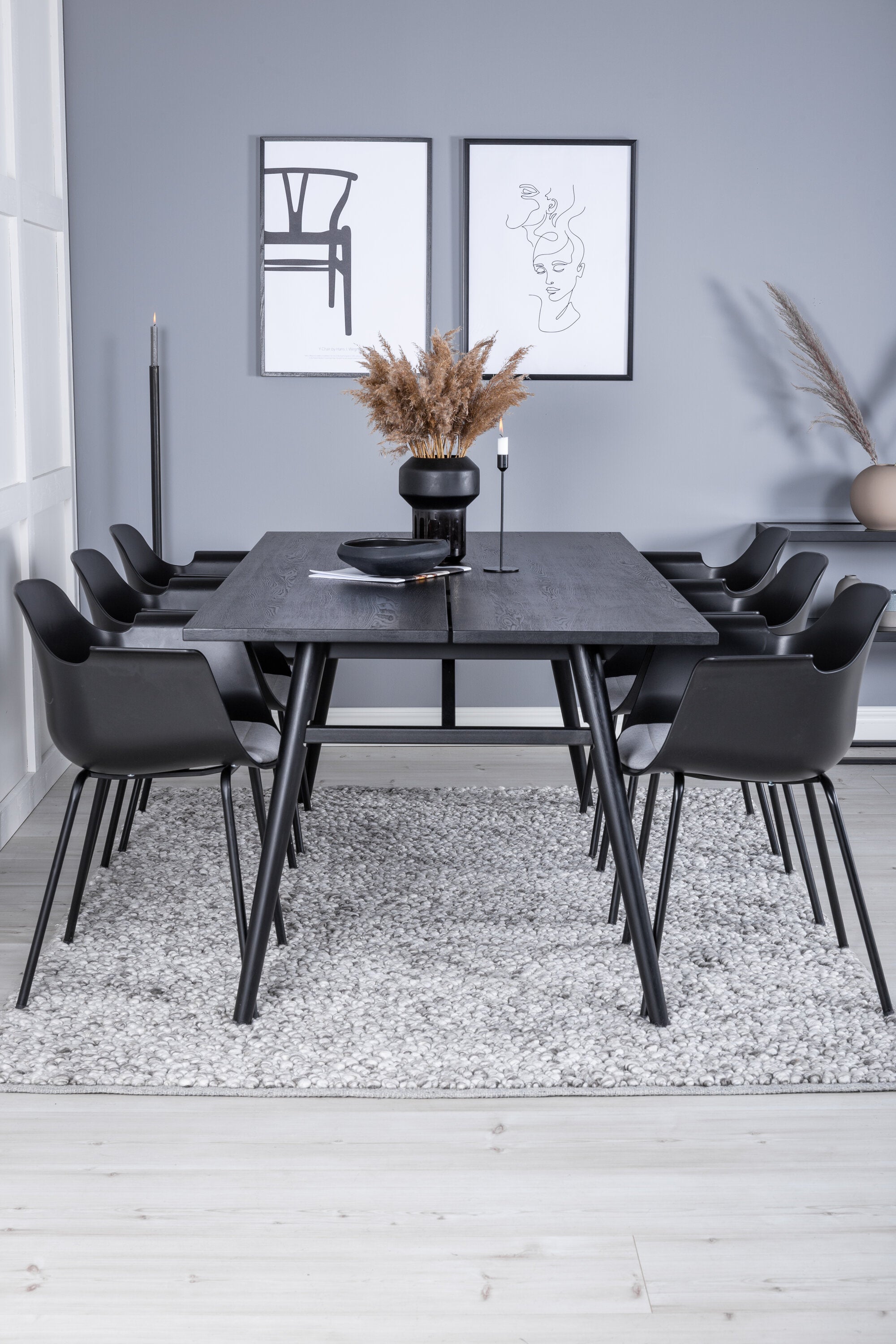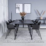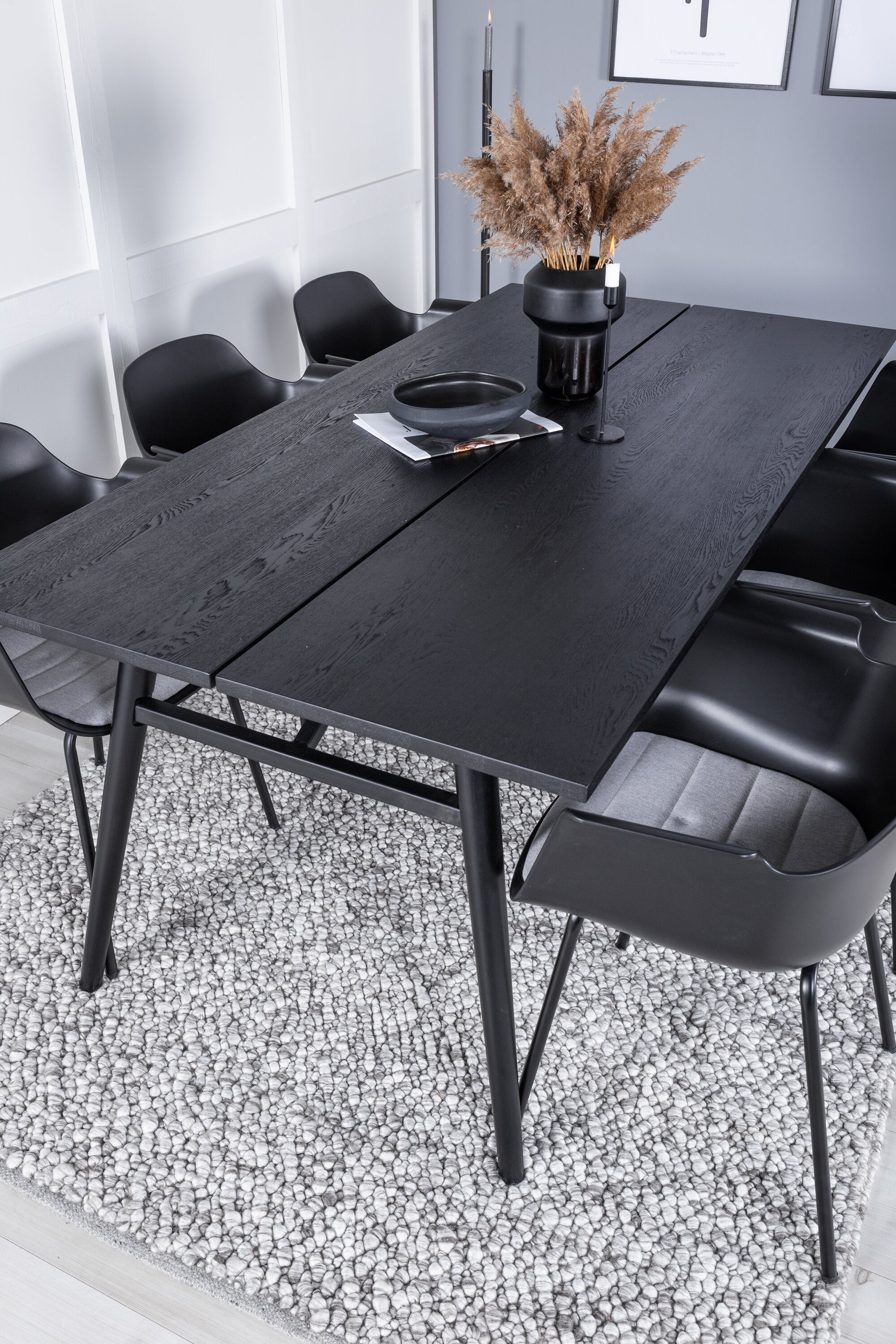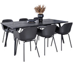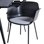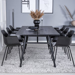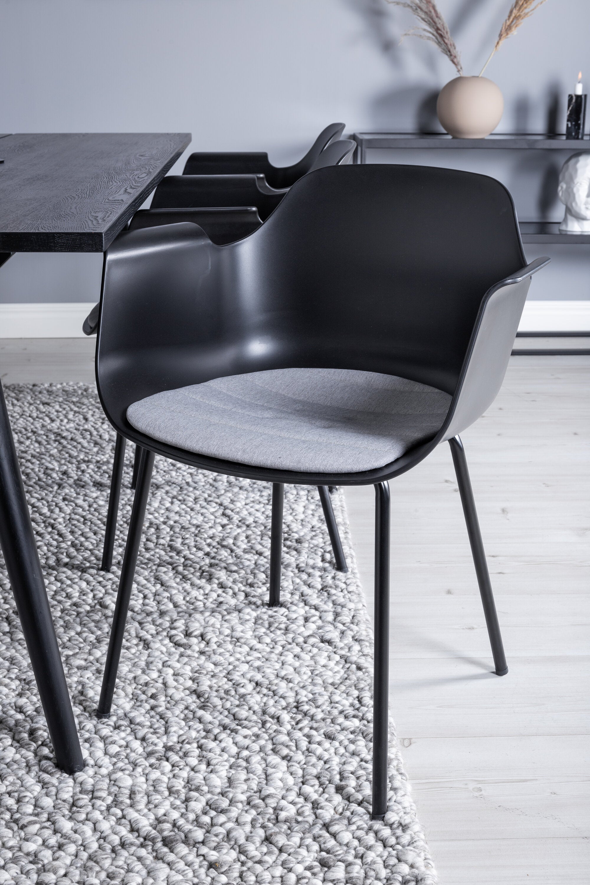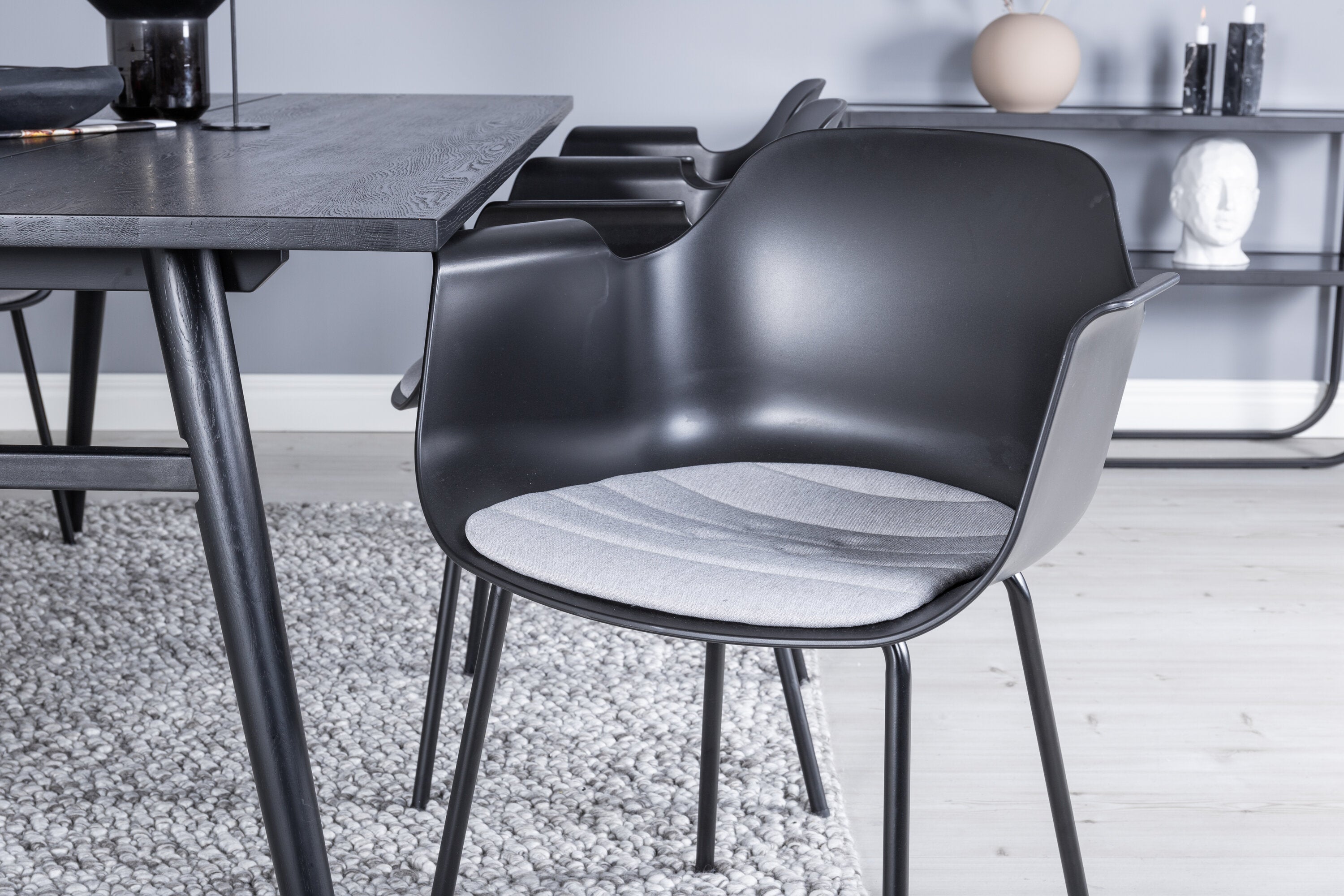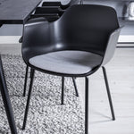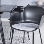 Ozdobte srdce domova moderně a pompézně s obdélníkovým jídelním stolem ze série Sleek. Deska stolu má uprostřed ozdobnou prasklinu a trendy rozšířené nohy stolu jsou kovové. Jídelní stůl je důsledně v černé barvě, která v místnosti působí luxusně a nafoukaně. Zde společně s lahodnými jídelními židlemi ze série Comfort. Křeslo má relaxační design s velkorysou hloubkou sedu. Z odolného a praktického materiálu je opěradlo a sedák s integrovanými područkami v černém celolitém plastu. Nohy jsou z kovu s černou práškovou barvou. Vč. Šedý tenký sedák pro větší pohodlí.