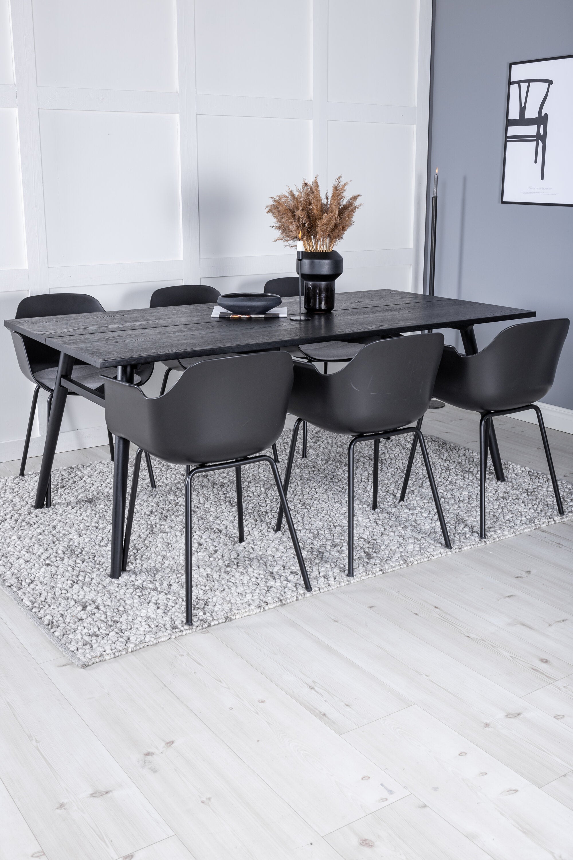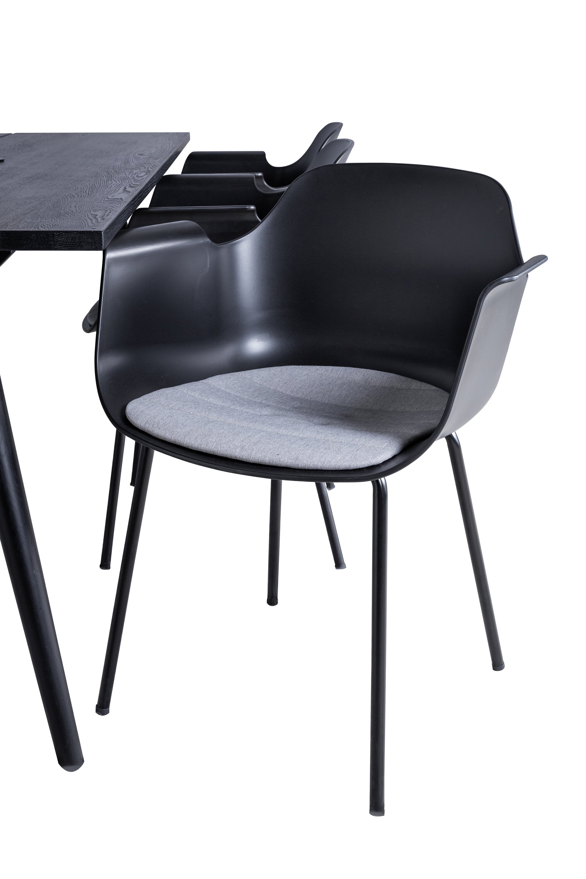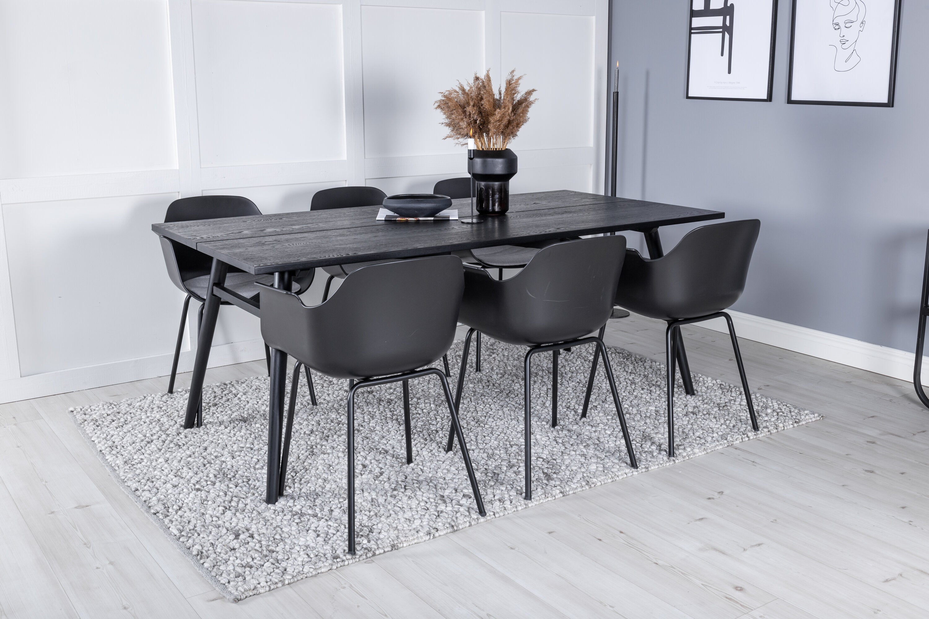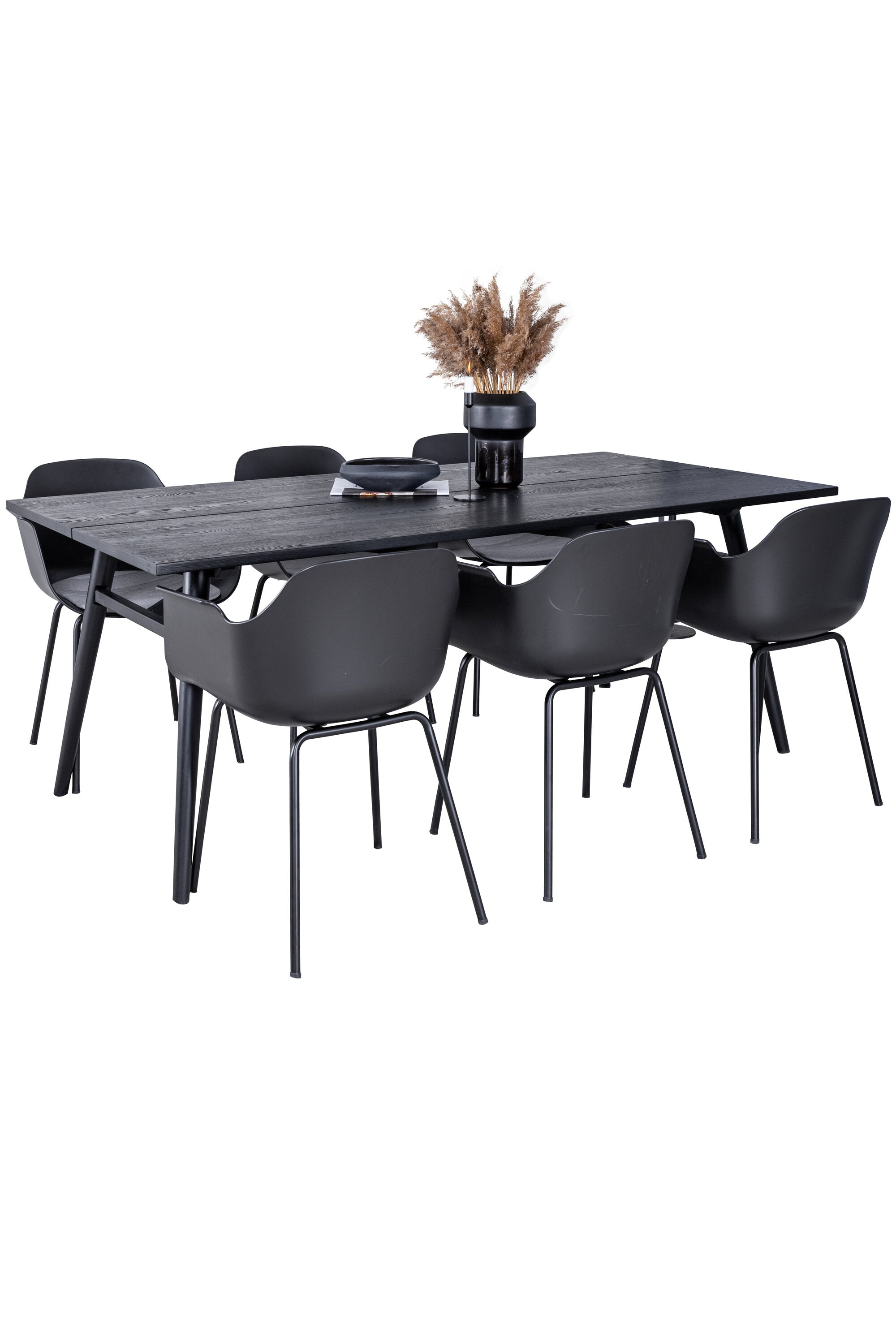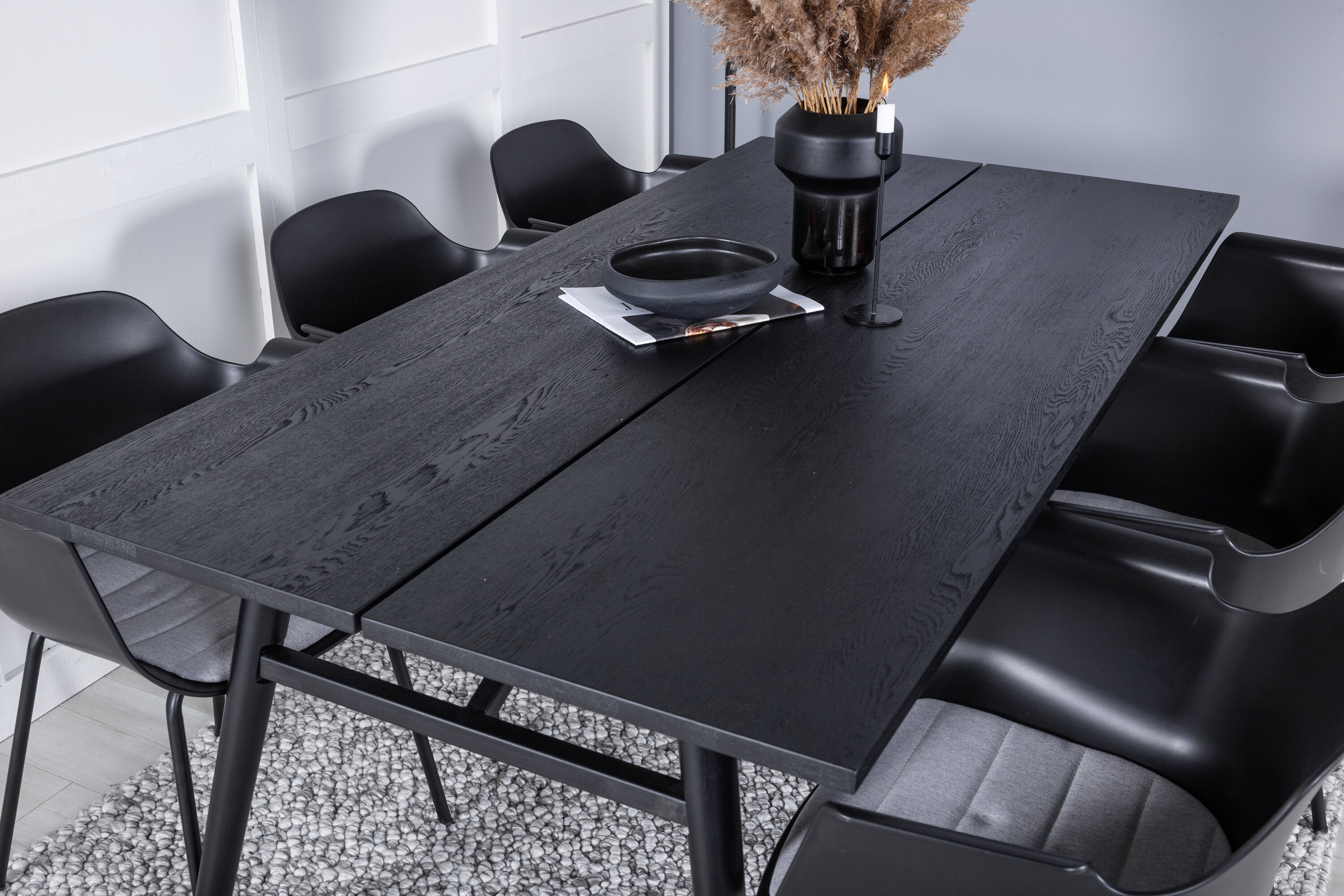 Ozdobte srdce domova moderně a pompézně s obdélníkovým jídelním stolem ze série Sleek. Deska stolu má uprostřed ozdobnou prasklinu a trendy rozšířené nohy stolu jsou kovové. Jídelní stůl je důsledně v černé barvě, která v místnosti působí luxusně a nafoukaně. Zde společně s lahodnými jídelními židlemi ze série Comfort. Křeslo má relaxační design s velkorysou hloubkou sedu. Z odolného a praktického materiálu je opěradlo a sedák s integrovanými područkami v černém celolitém plastu. Nohy jsou z kovu s černou práškovou barvou. Vč. Šedý tenký sedák pro větší pohodlí.
