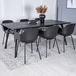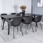 Elegantní rozšiřitelná černá kartáčovaná – 195*95+Komfortní plastová jídelní židle – černé nohy –Černý plast_6