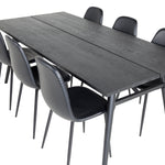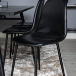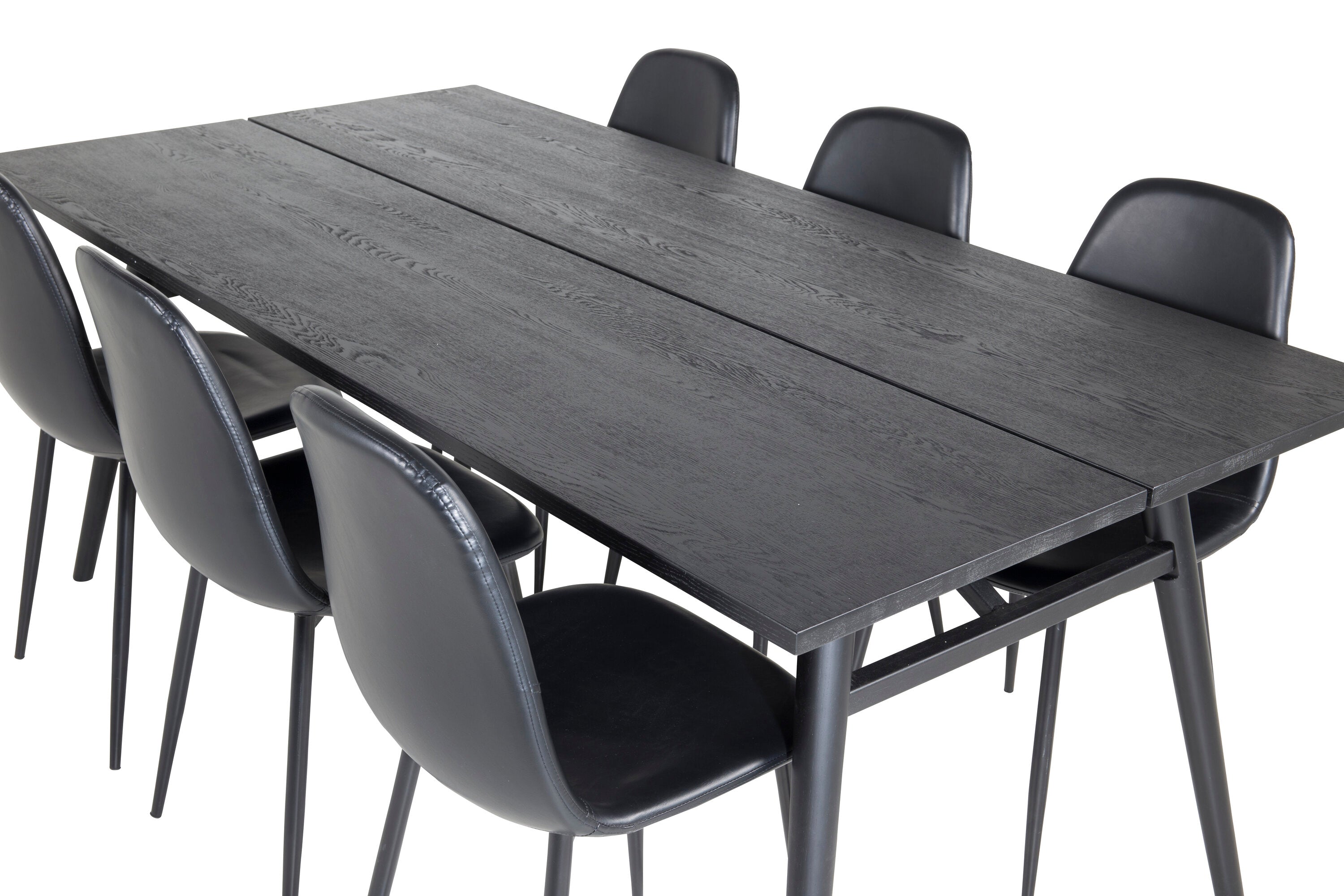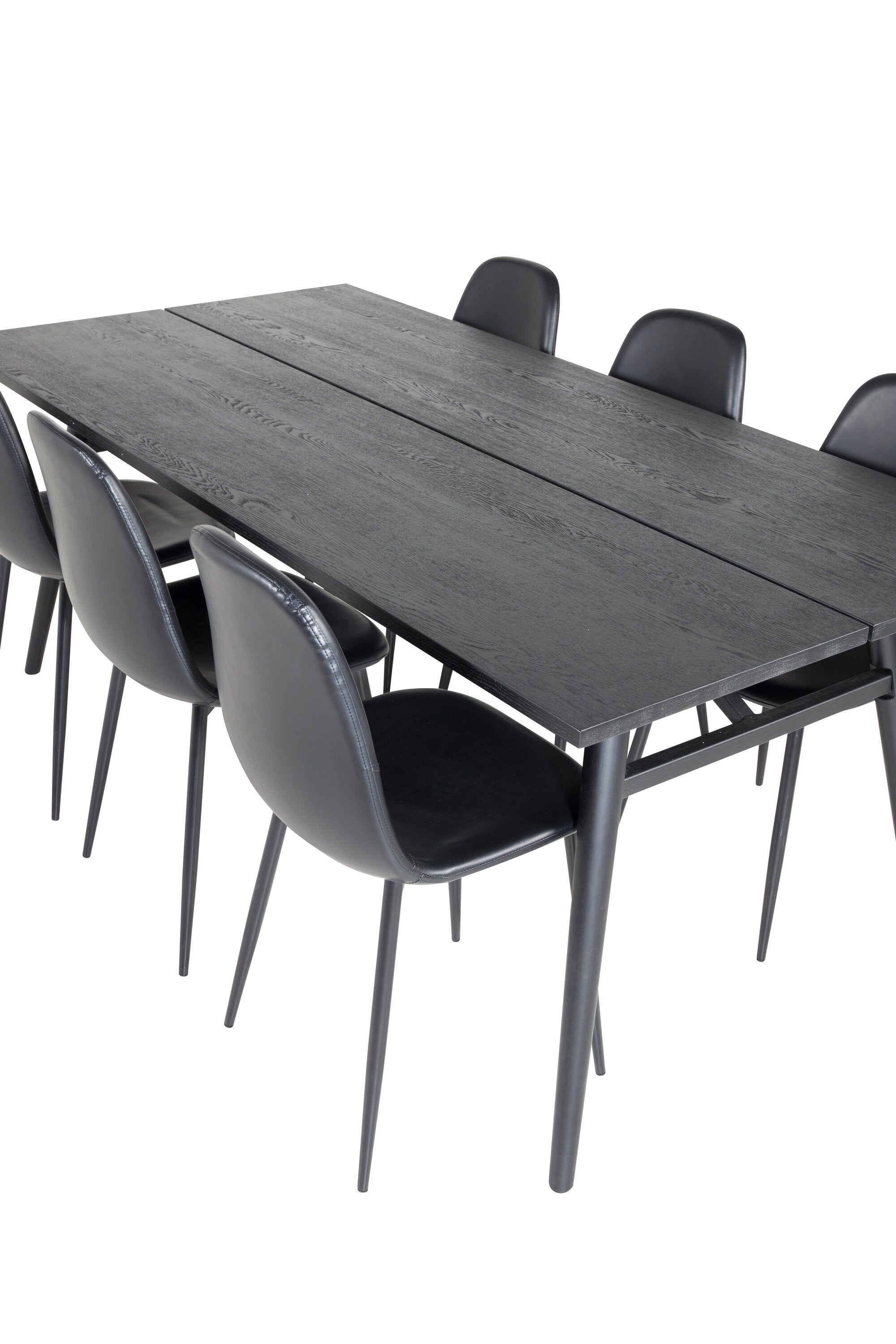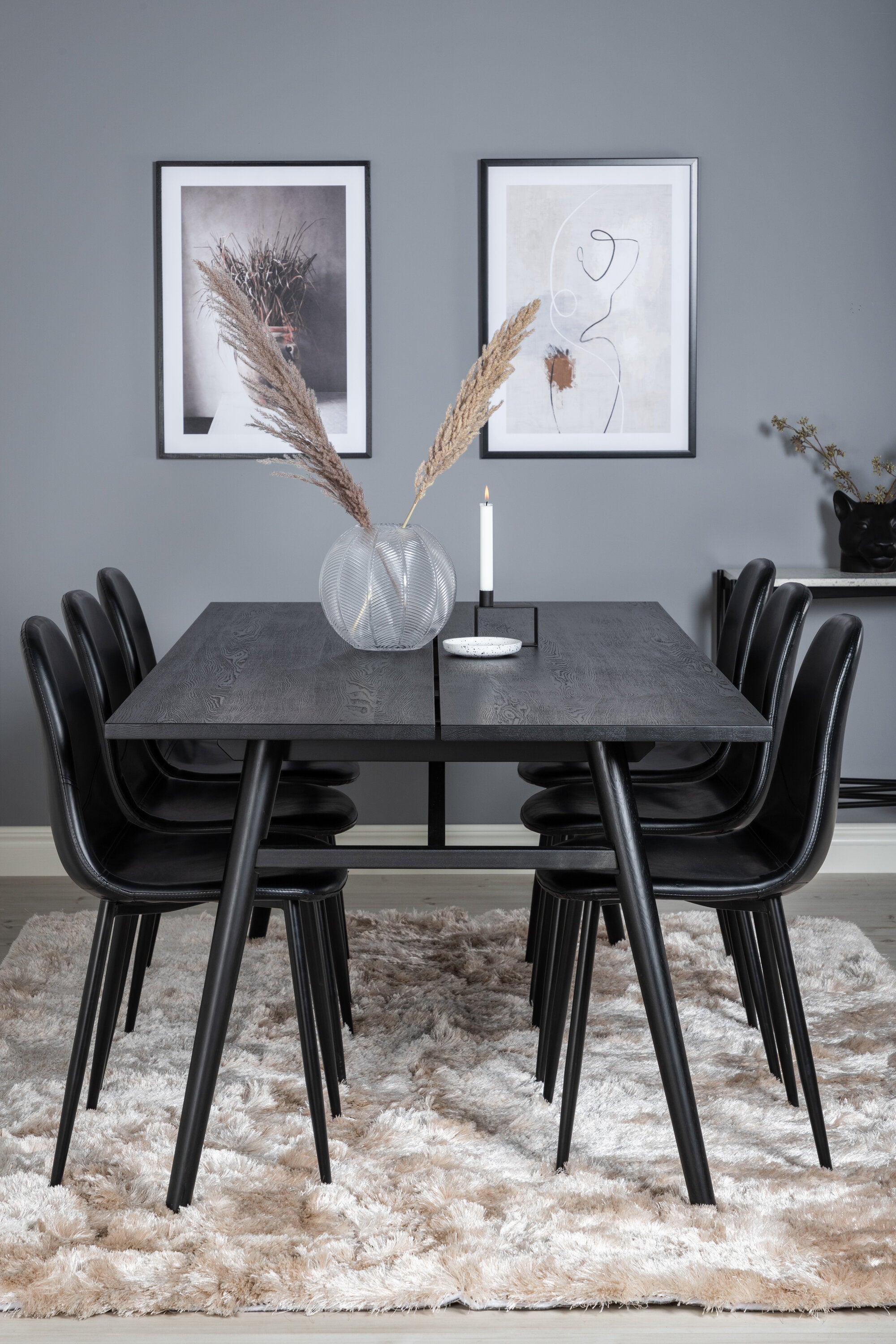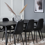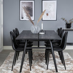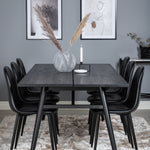 Zde máme elegantní skupinu jídel pro všechny příležitosti. Náš oblíbený jídelní stůl Sleek v elegantním černém dřevě spolu s jídelními židlemi ze série Polar - dokonalá černá kombinace s módním dojmem. Rozšiřte svá pozvání na večeři a vyhněte se obavám, že se všichni nevejdou.