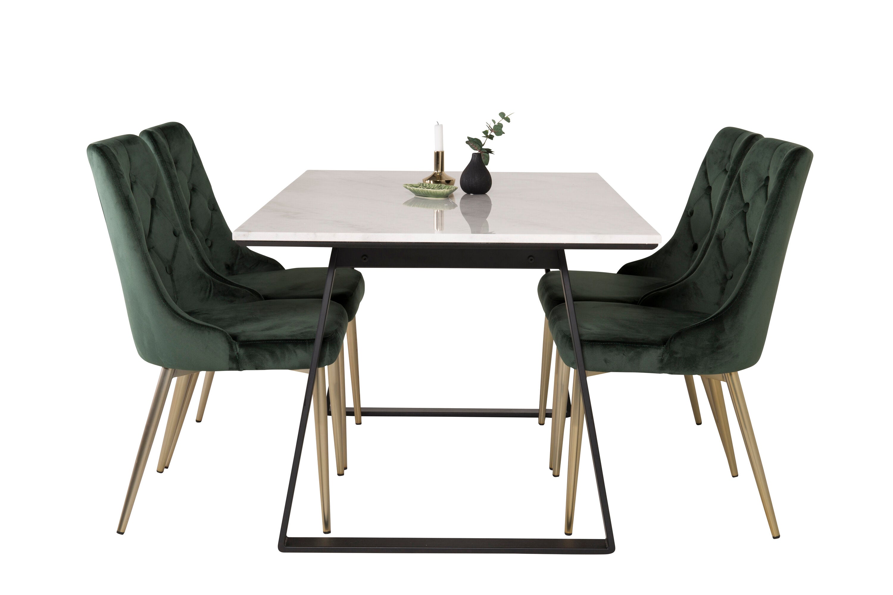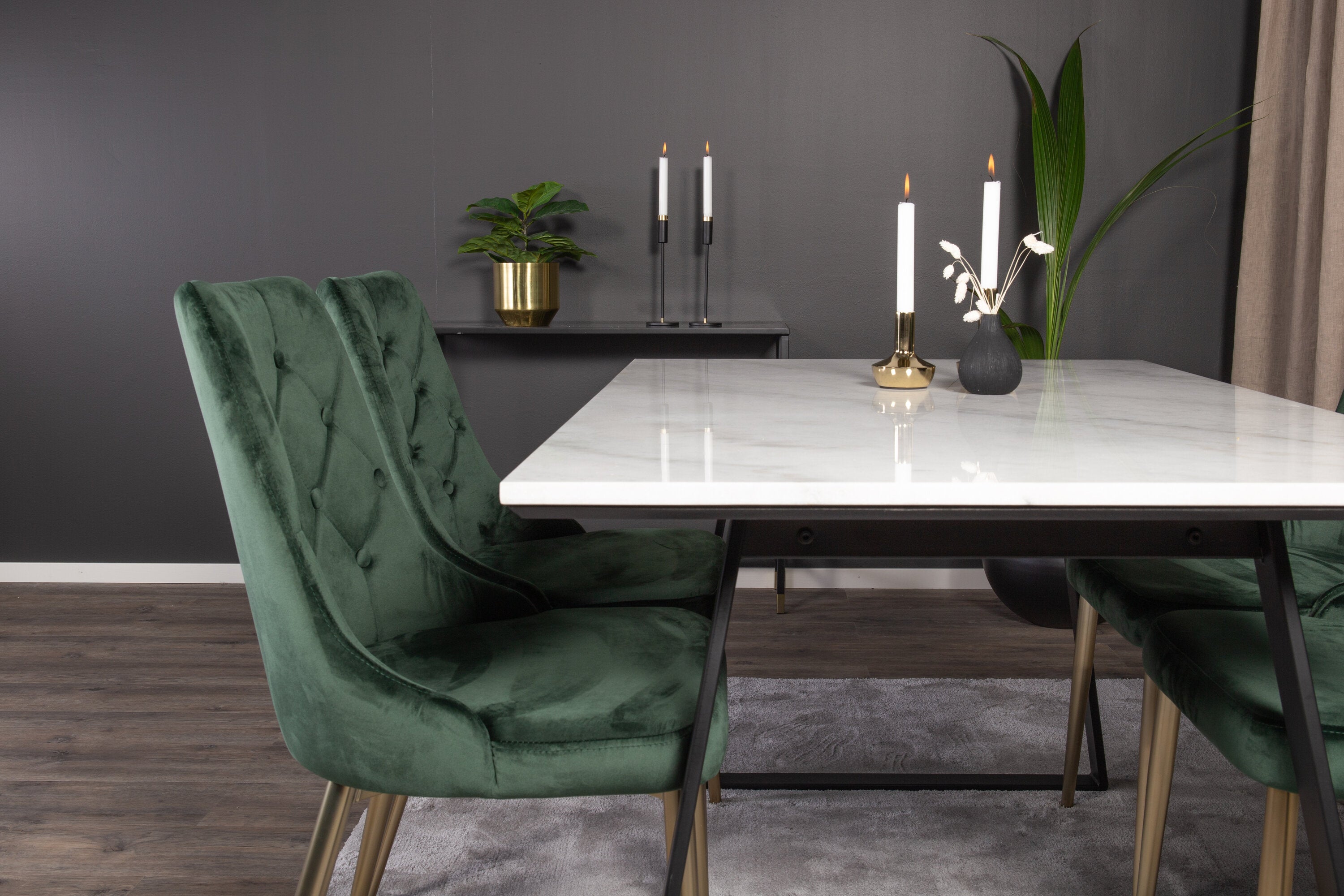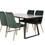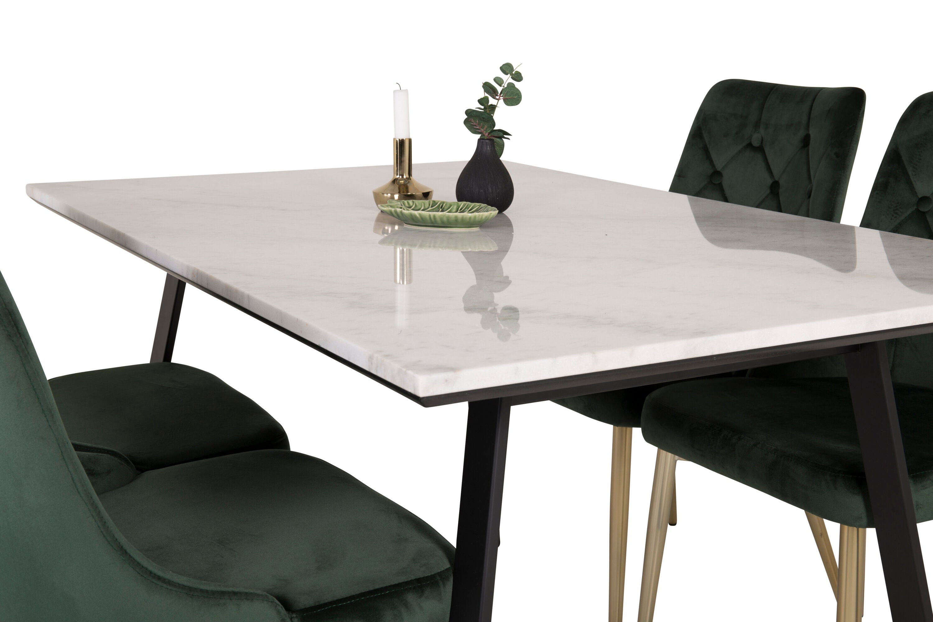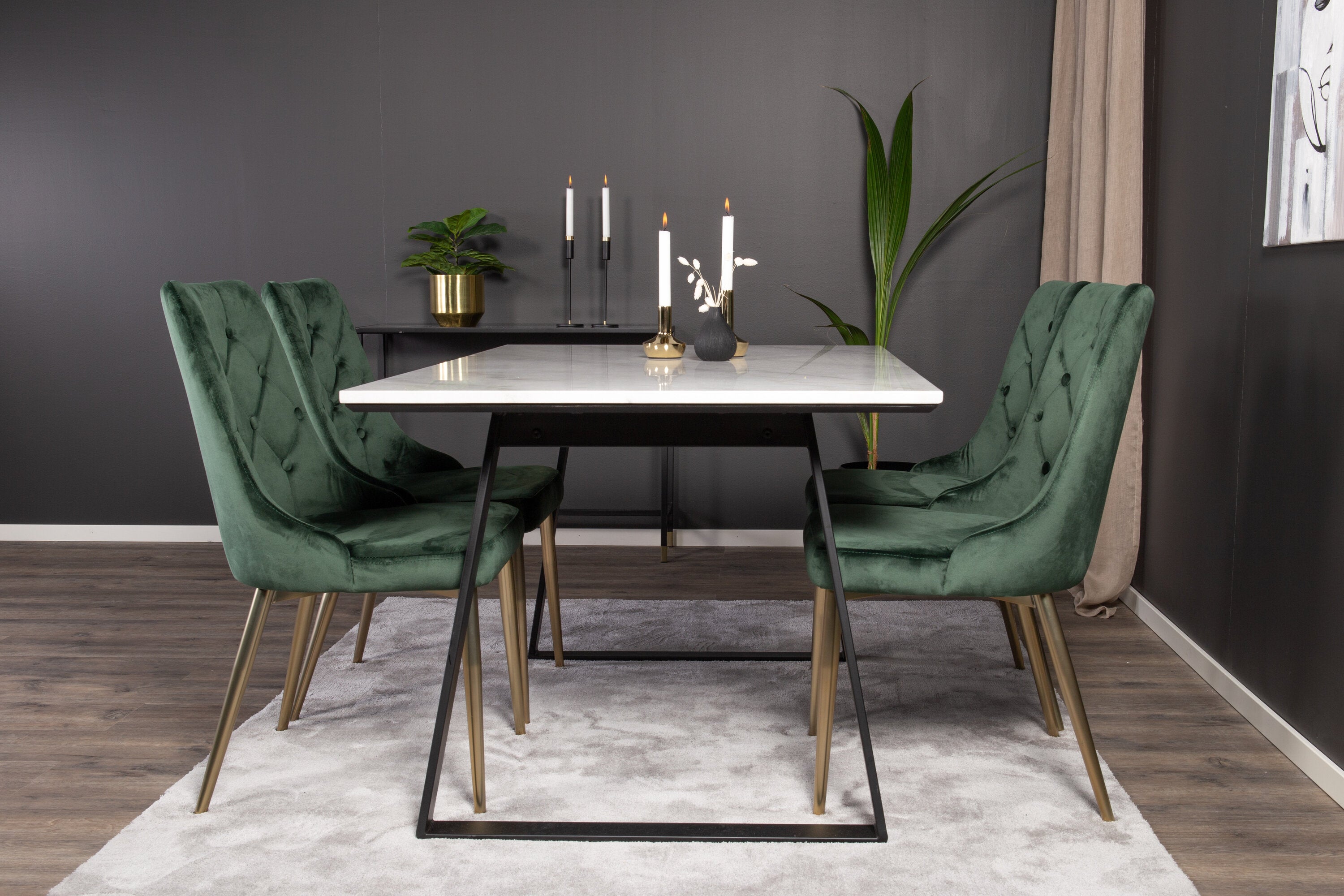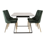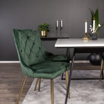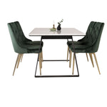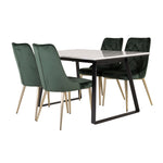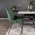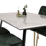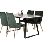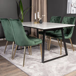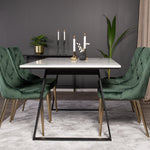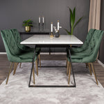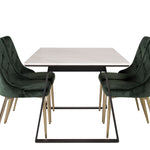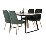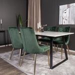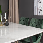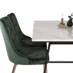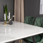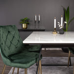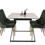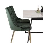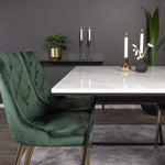Estelle Jídelní stůl 140*90 - Bílý mramor / Černé nohy - Sametová luxusní židle - Moss Green/Matná mosazná noha 4