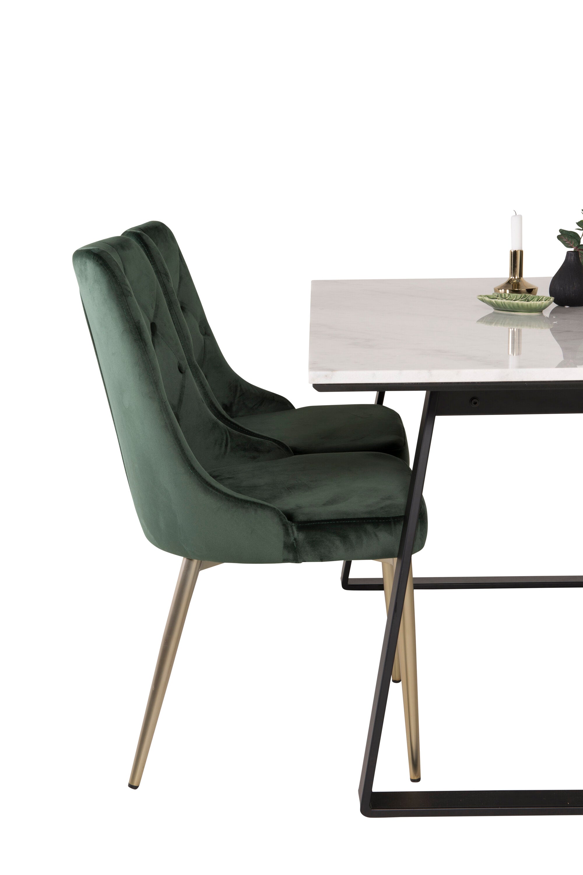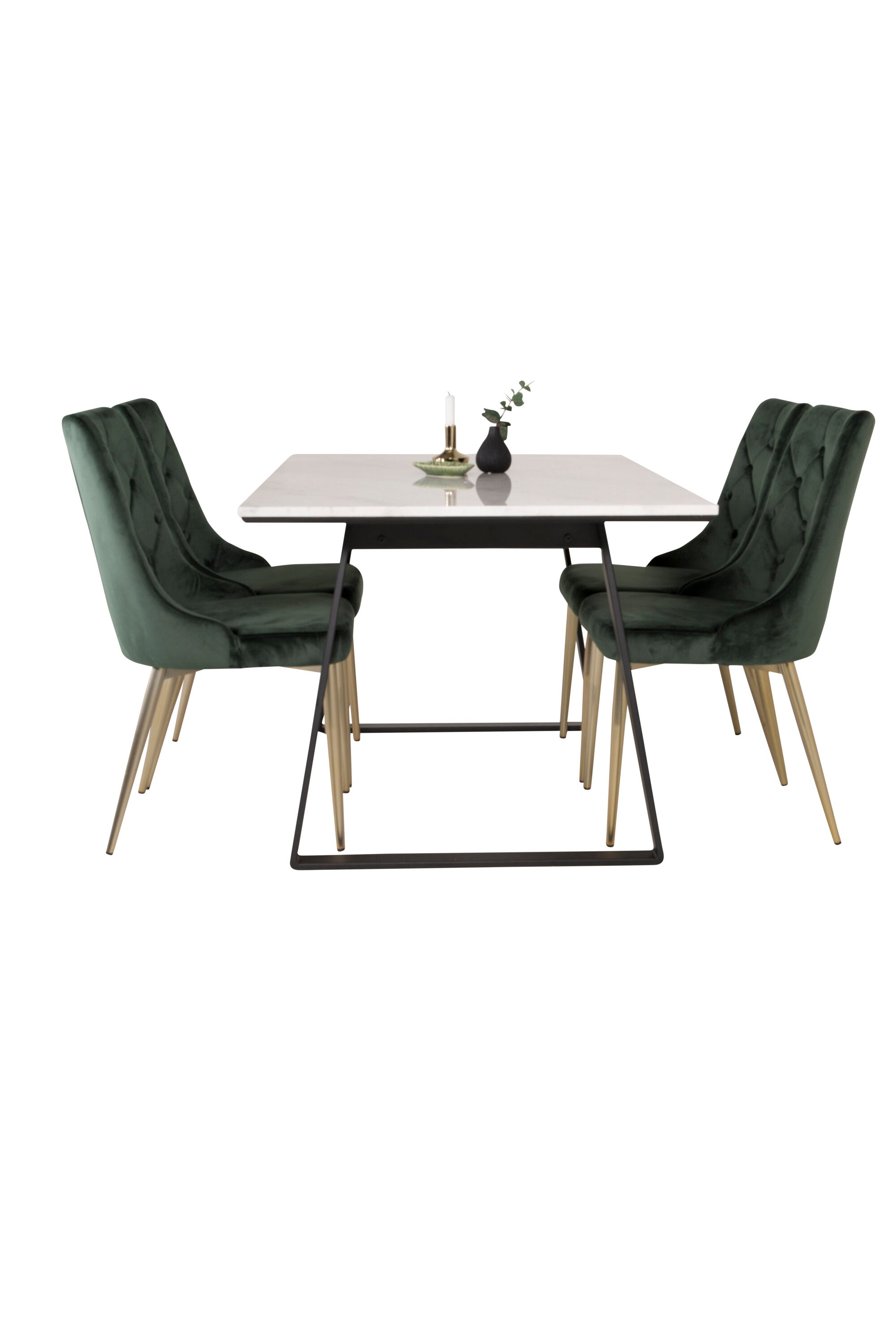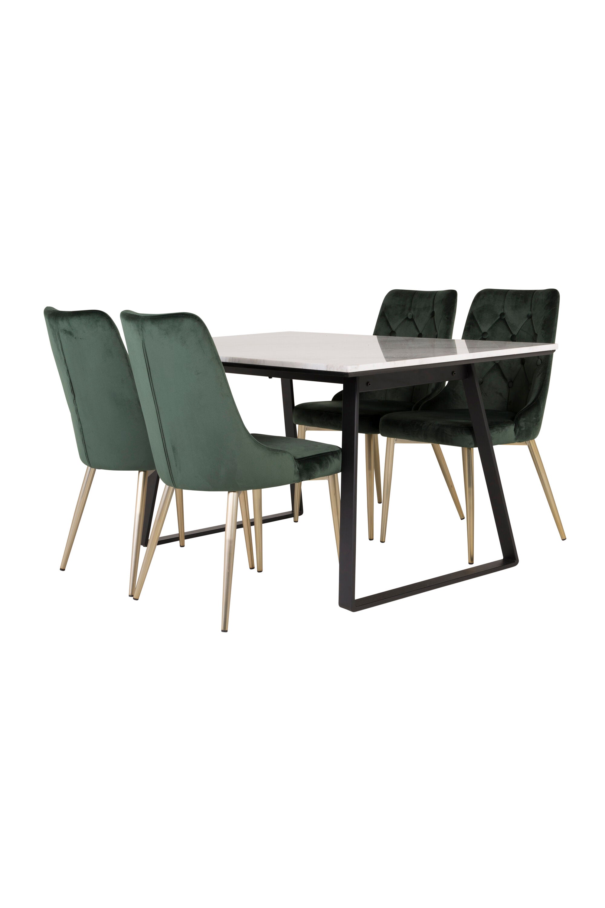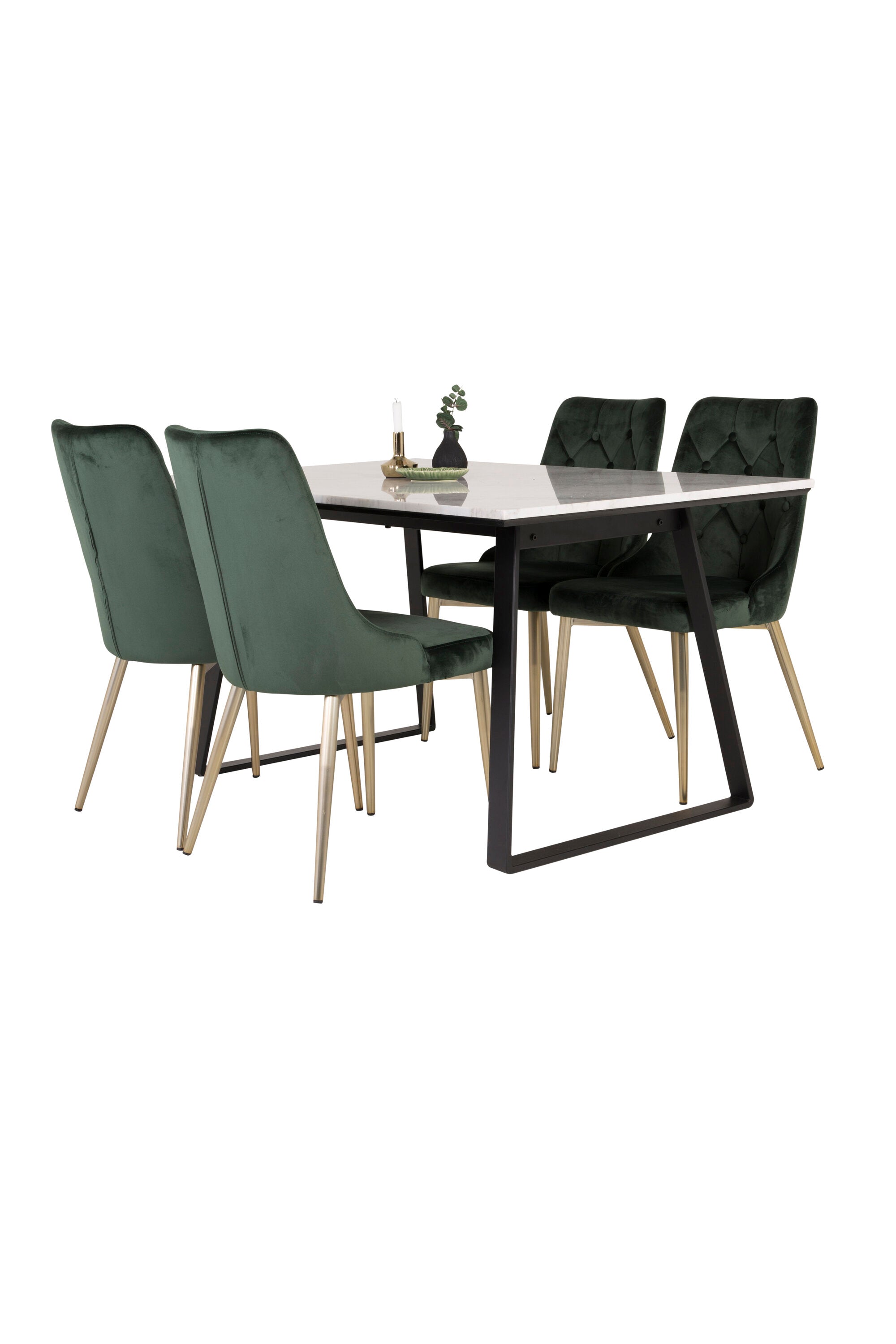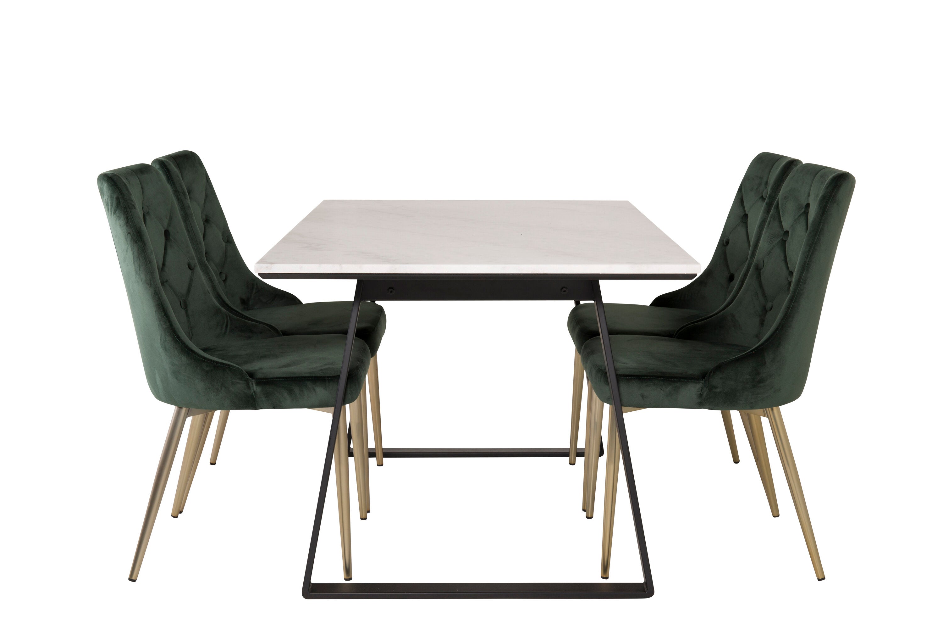 Estelle Jídelní stůl 140*90 - Bílý mramor / Černé nohy - Sametová luxusní židle - Moss Green/Matná mosazná noha 4