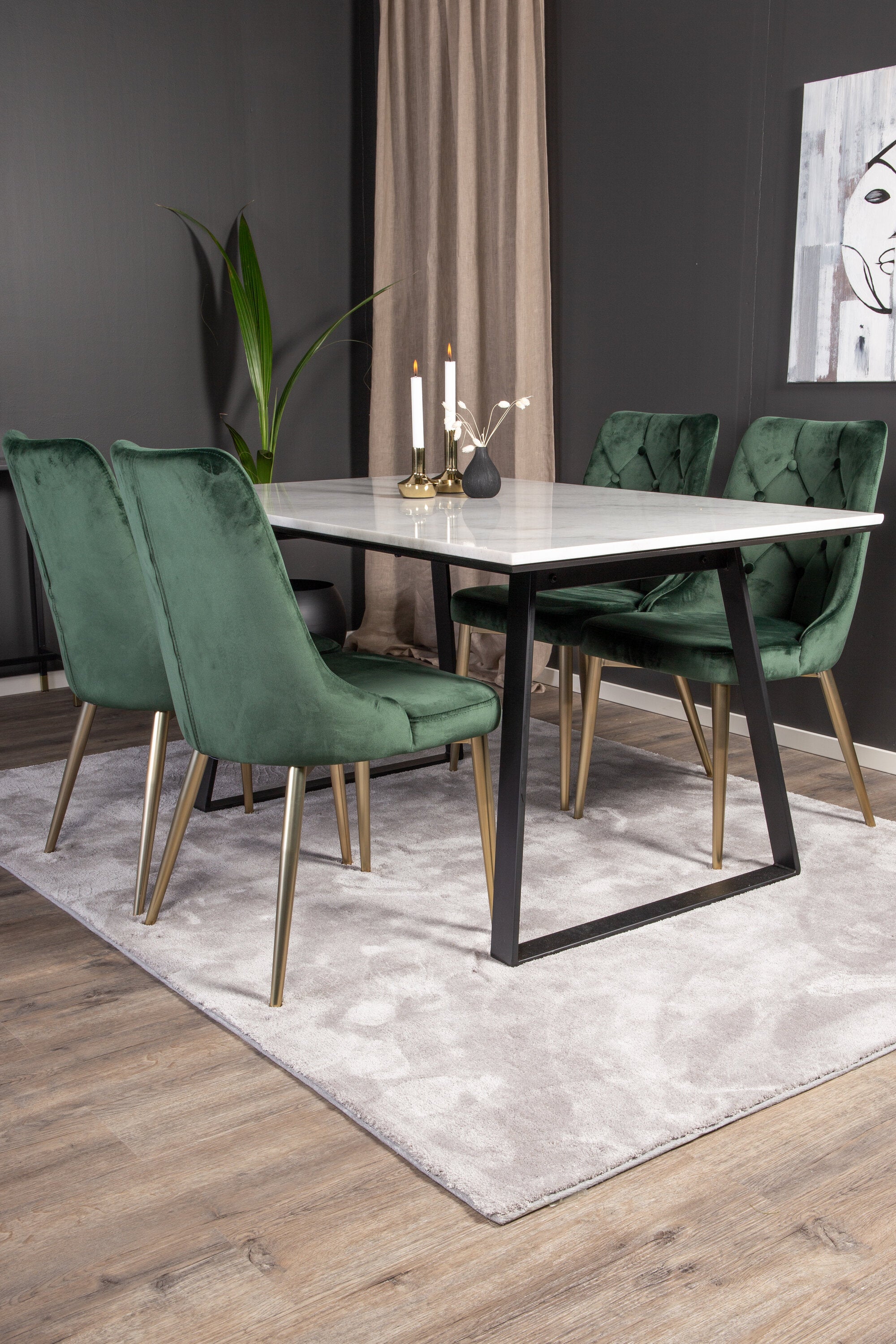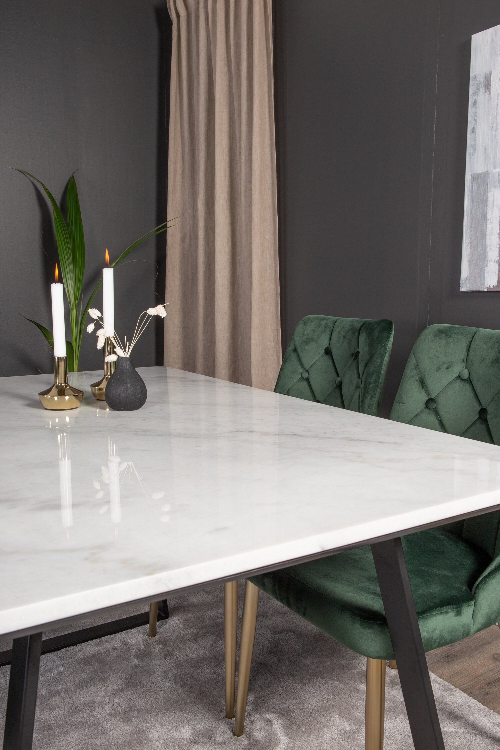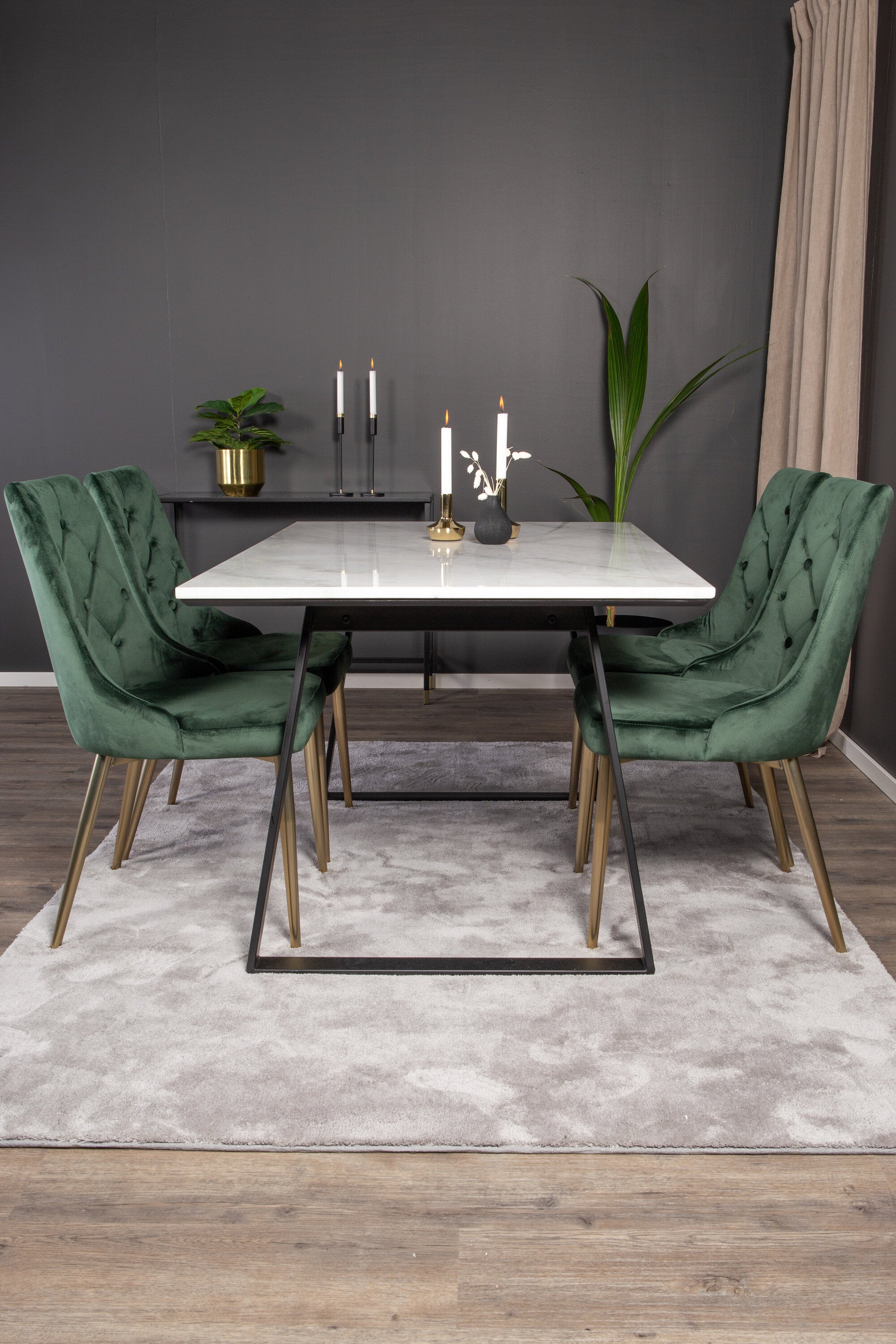 Elegantní mramorový jídelní stůl ze série Estelle se zde kombinuje s měkkými a pohodlnými židlemi ze série Velvet. Skupina potravin, která touží po domově!