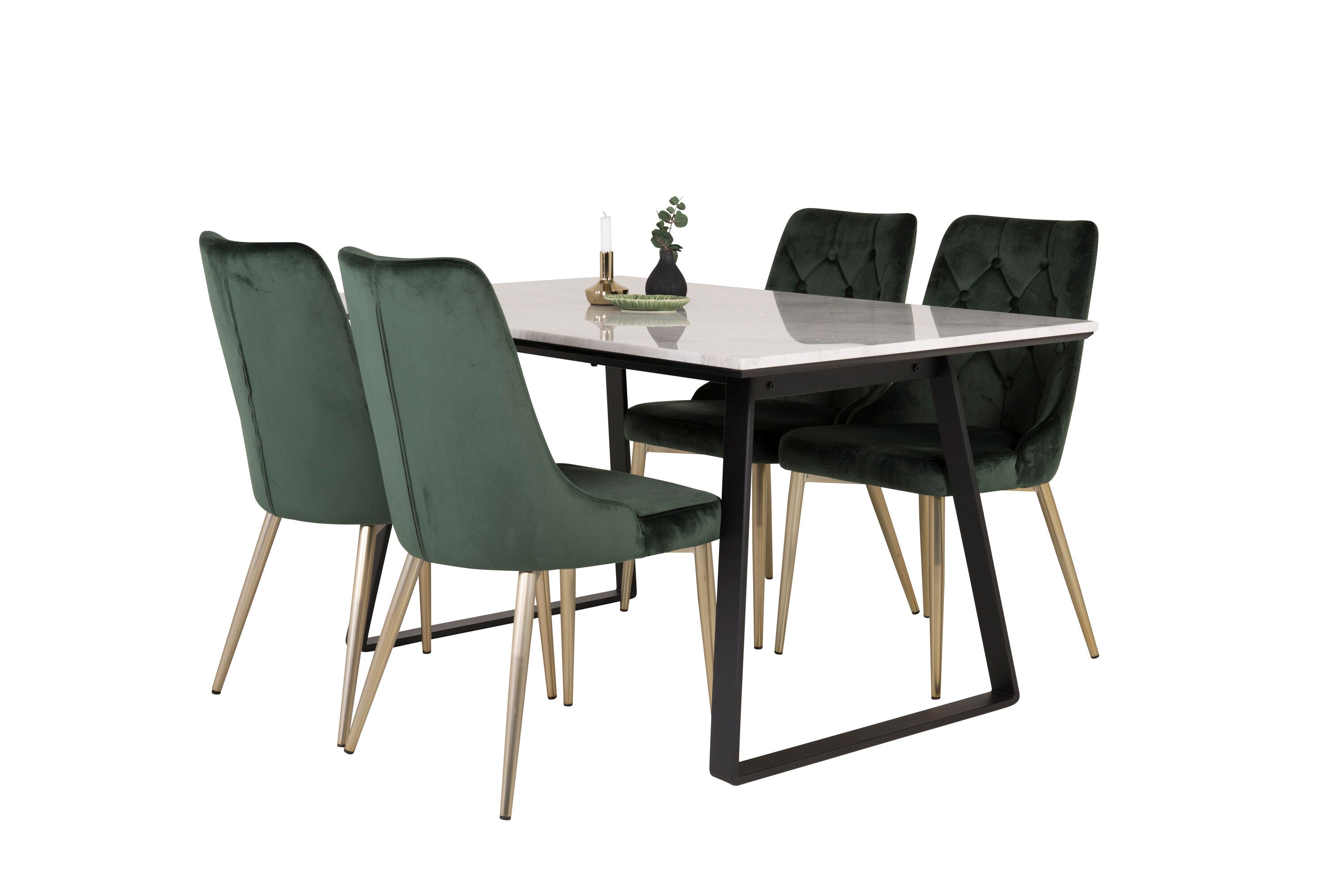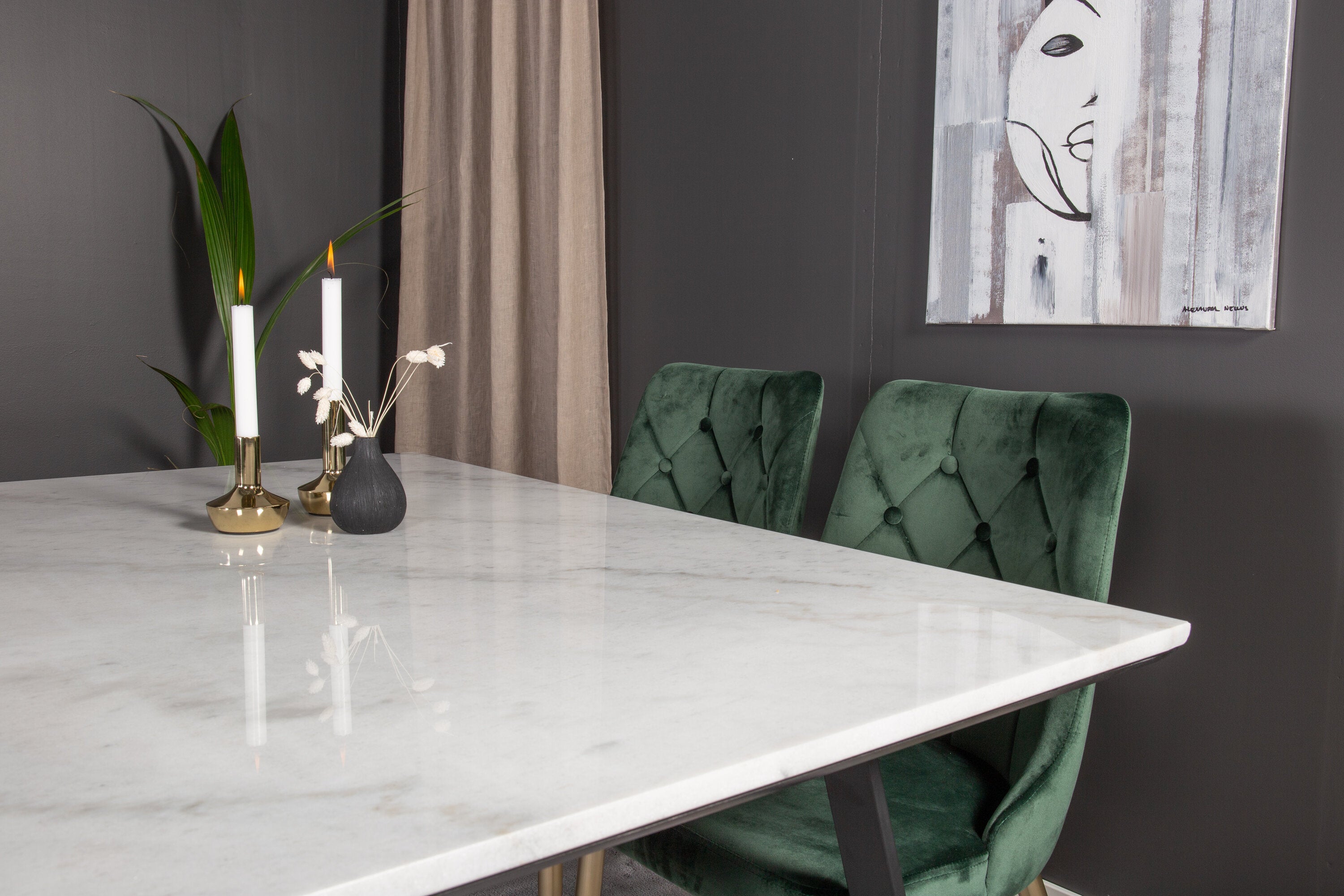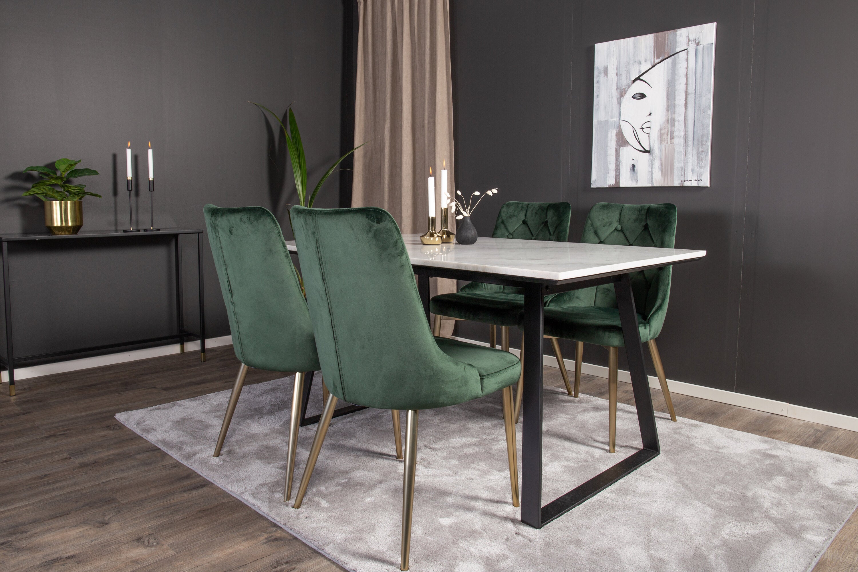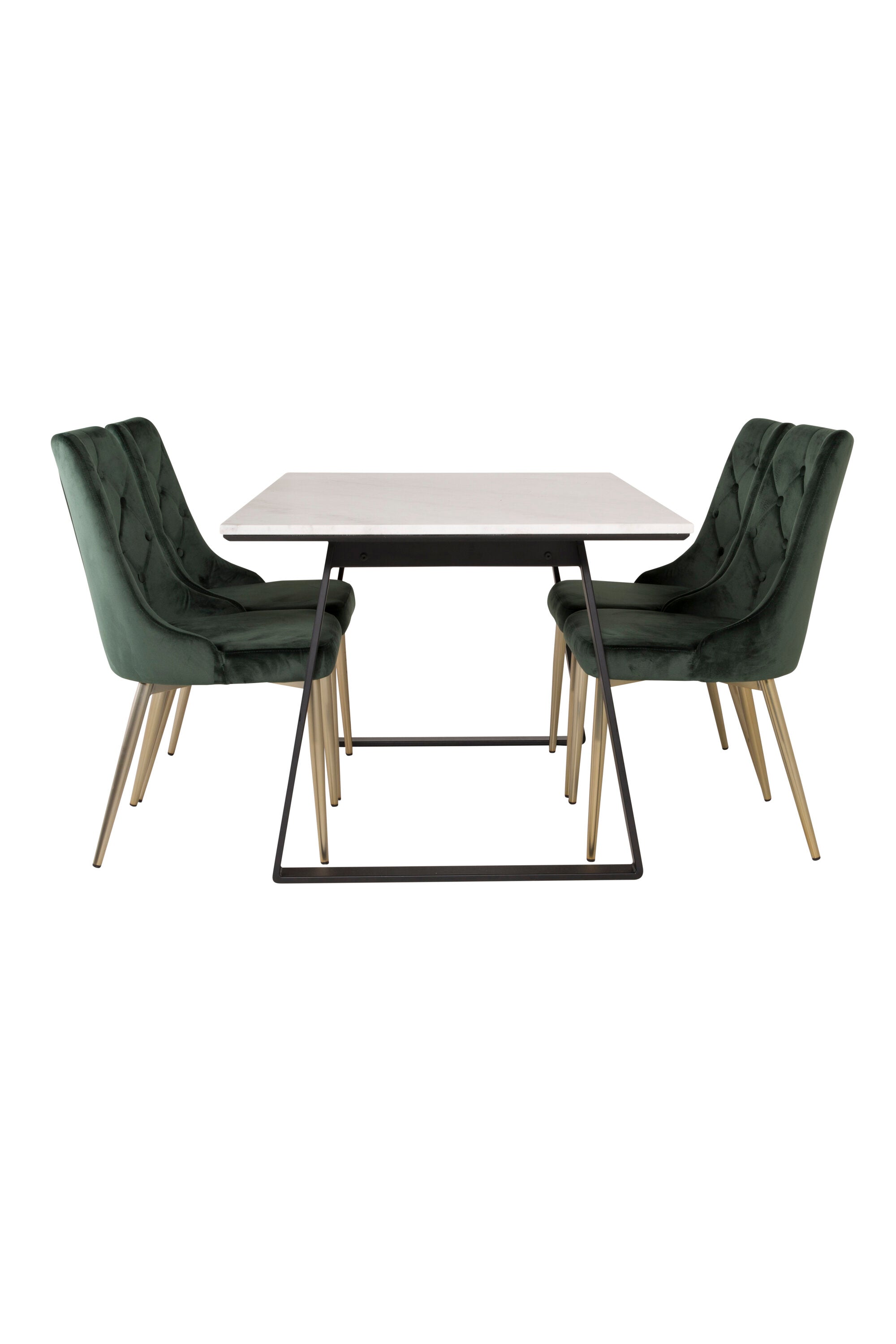 Elegantní mramorový jídelní stůl ze série Estelle se zde kombinuje s měkkými a pohodlnými židlemi ze série Velvet. Skupina potravin, která touží po domově!