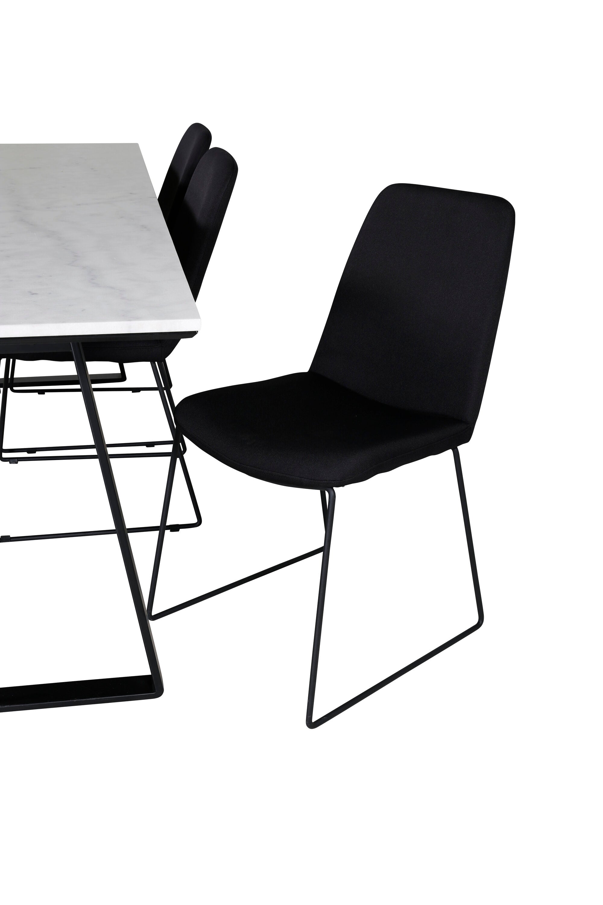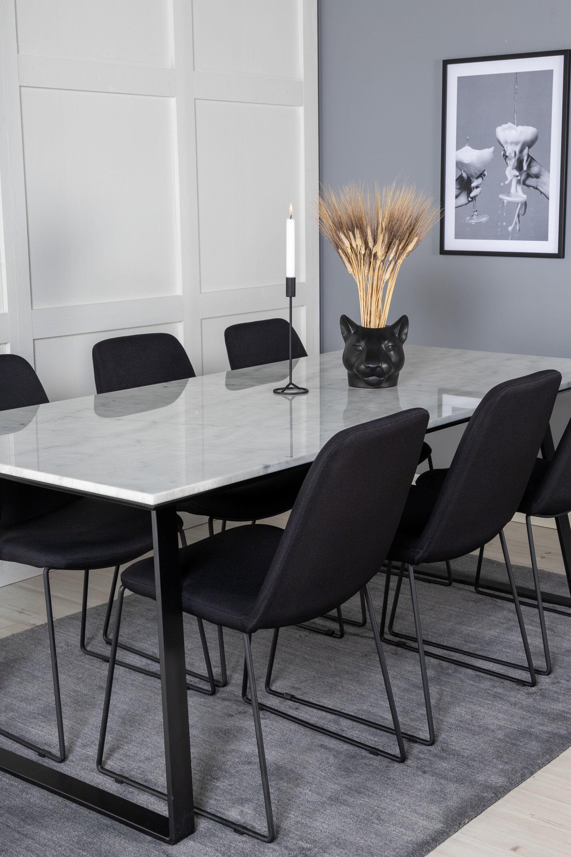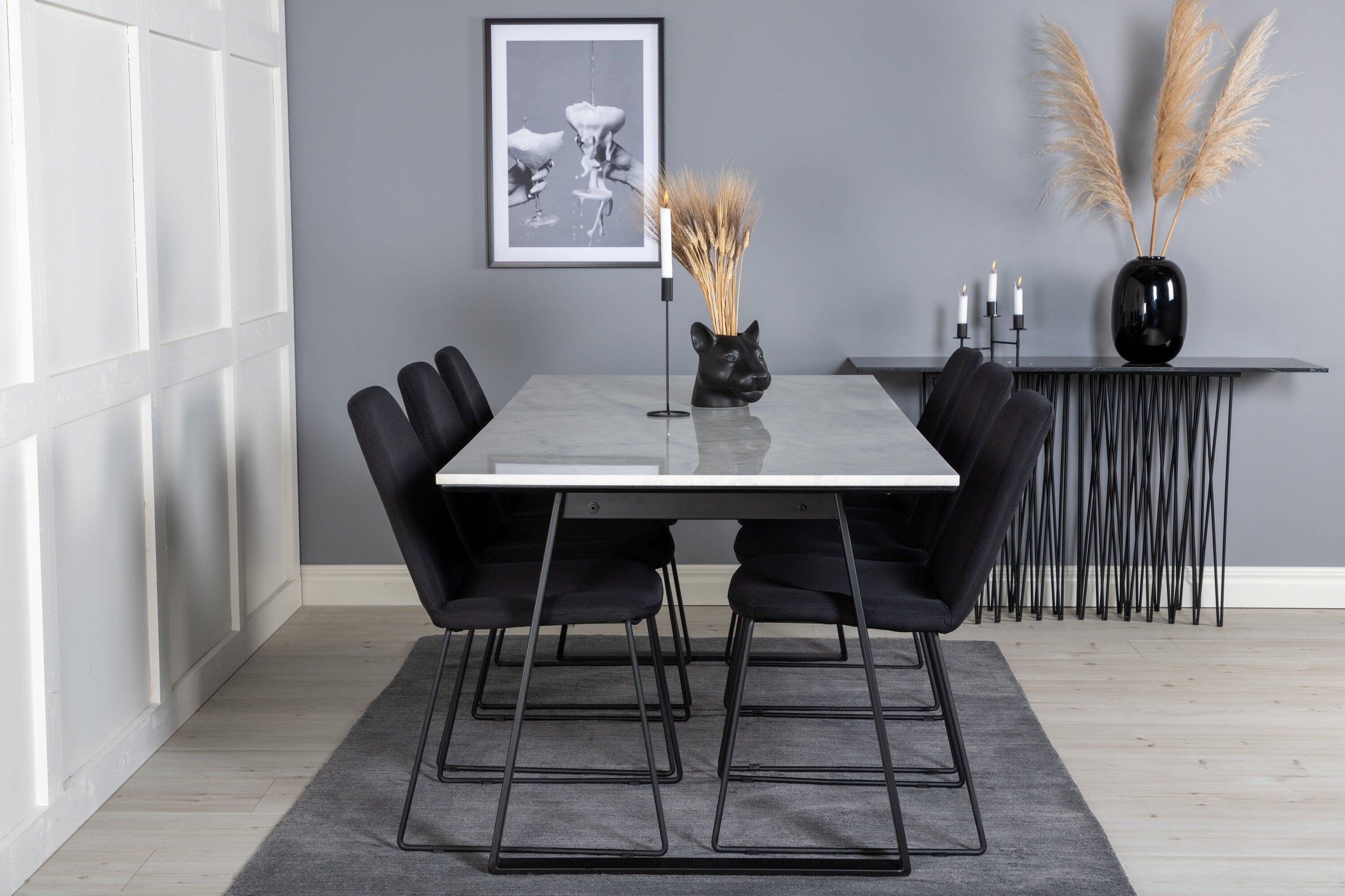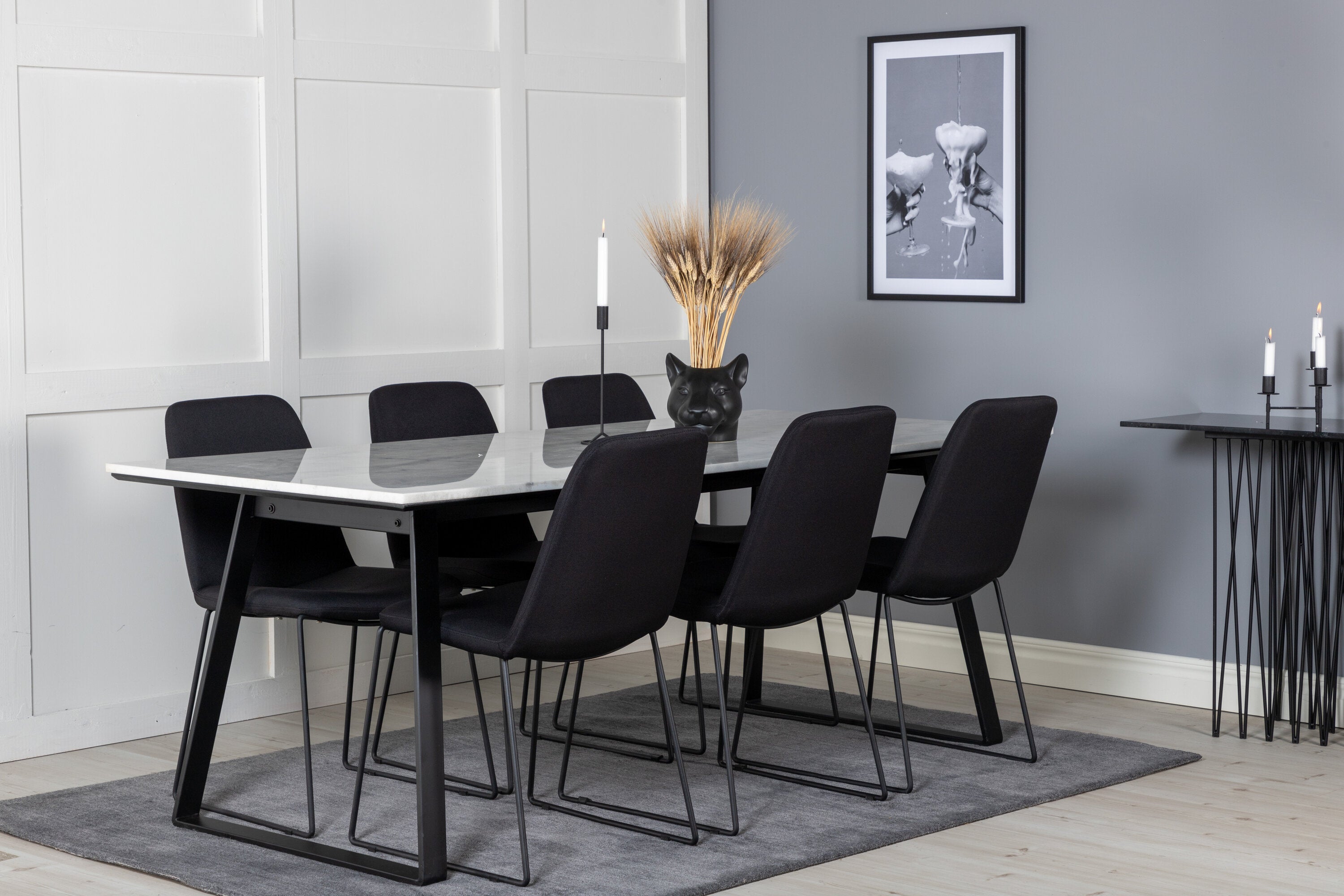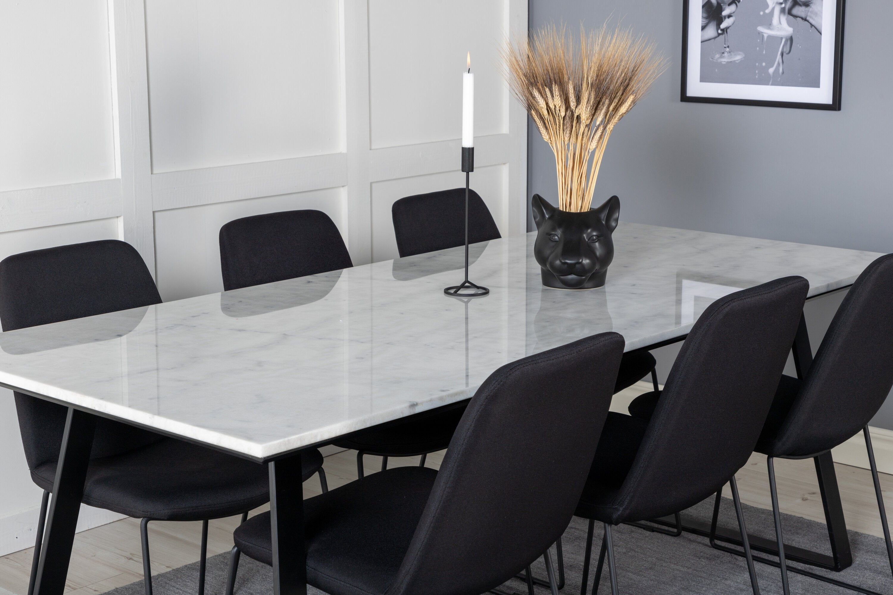 Estelle Jídelní stůl 200*90*H76 - Bílá / Černá + Muce Jídelní židle - Černé nohy - Černá Fabric_6