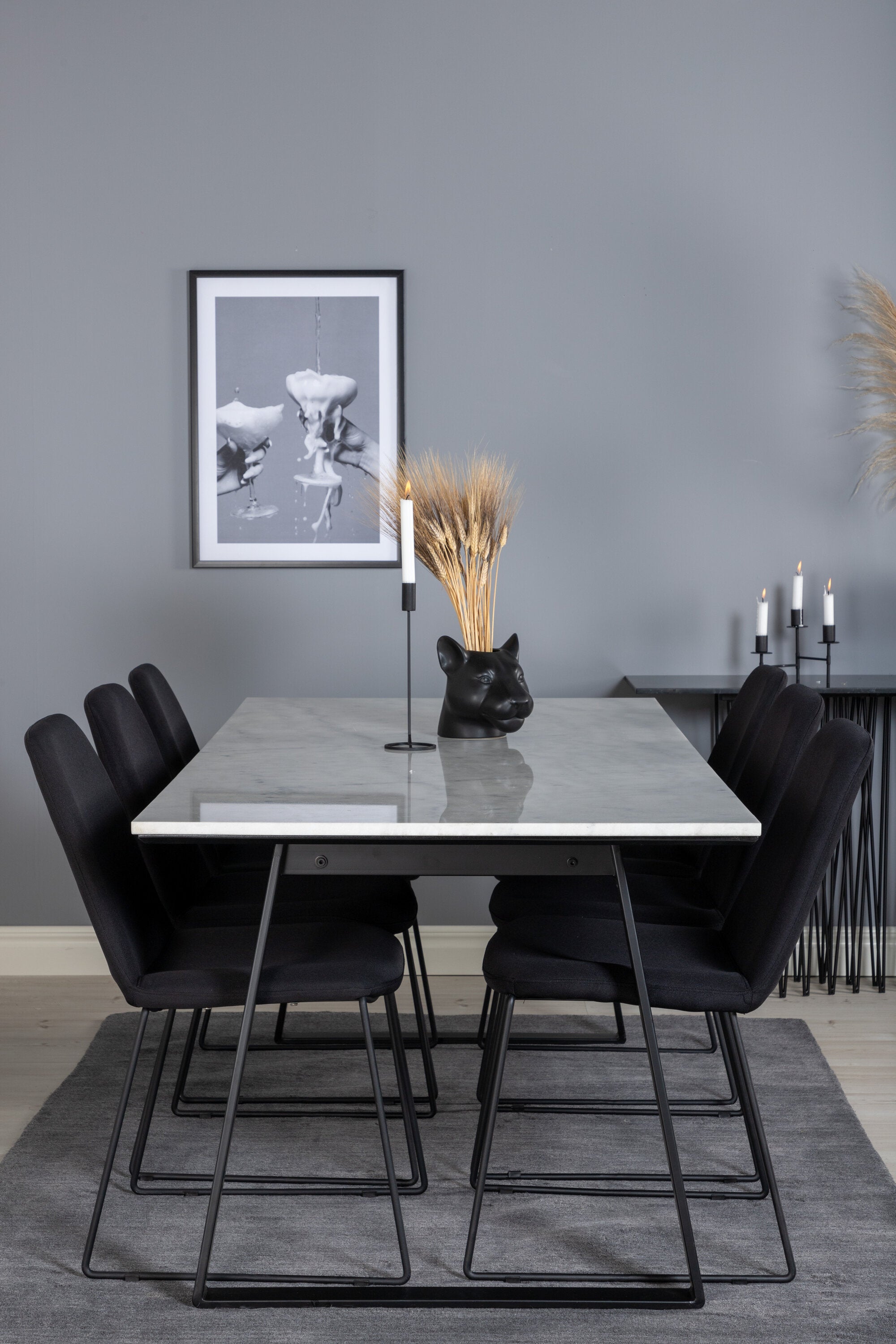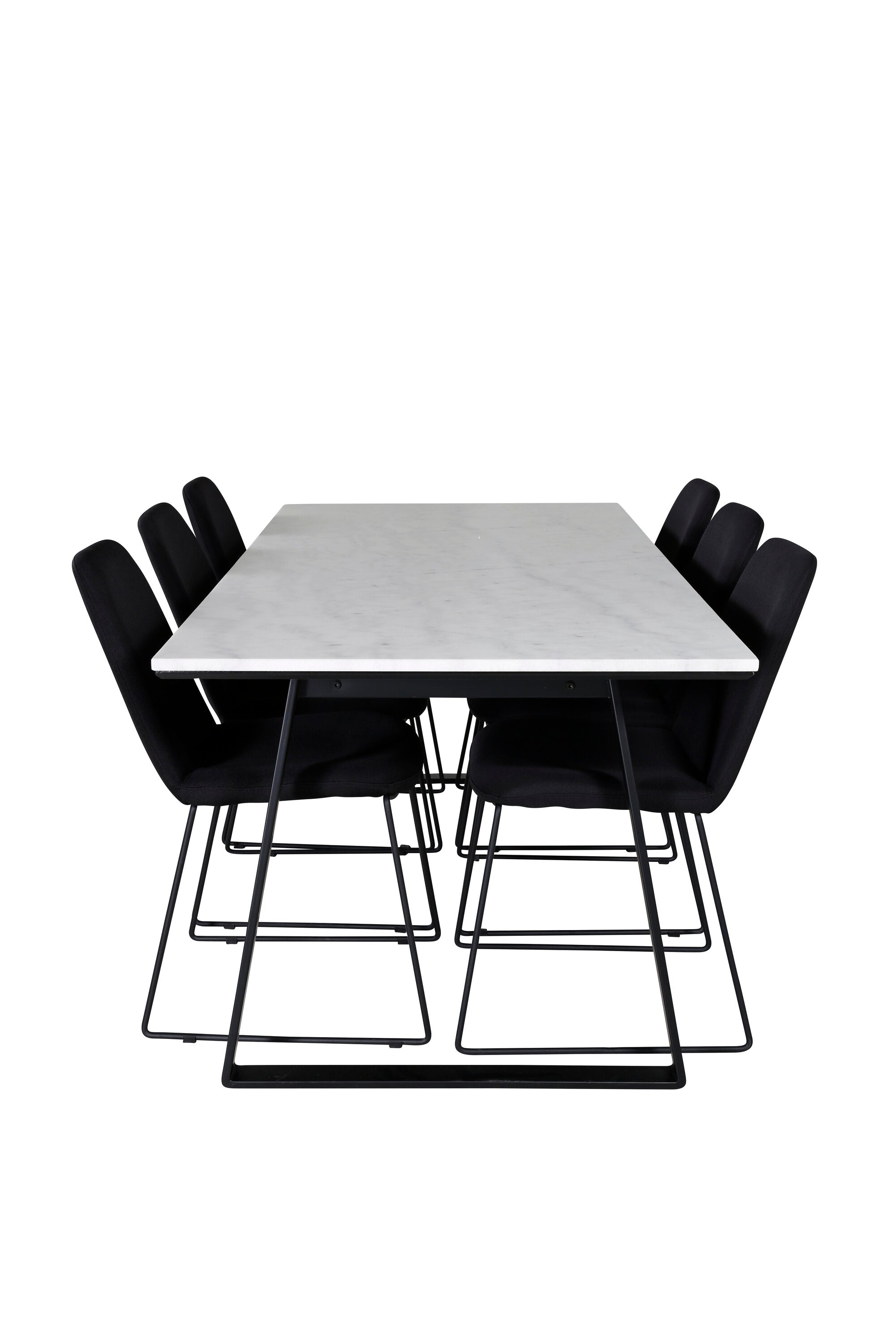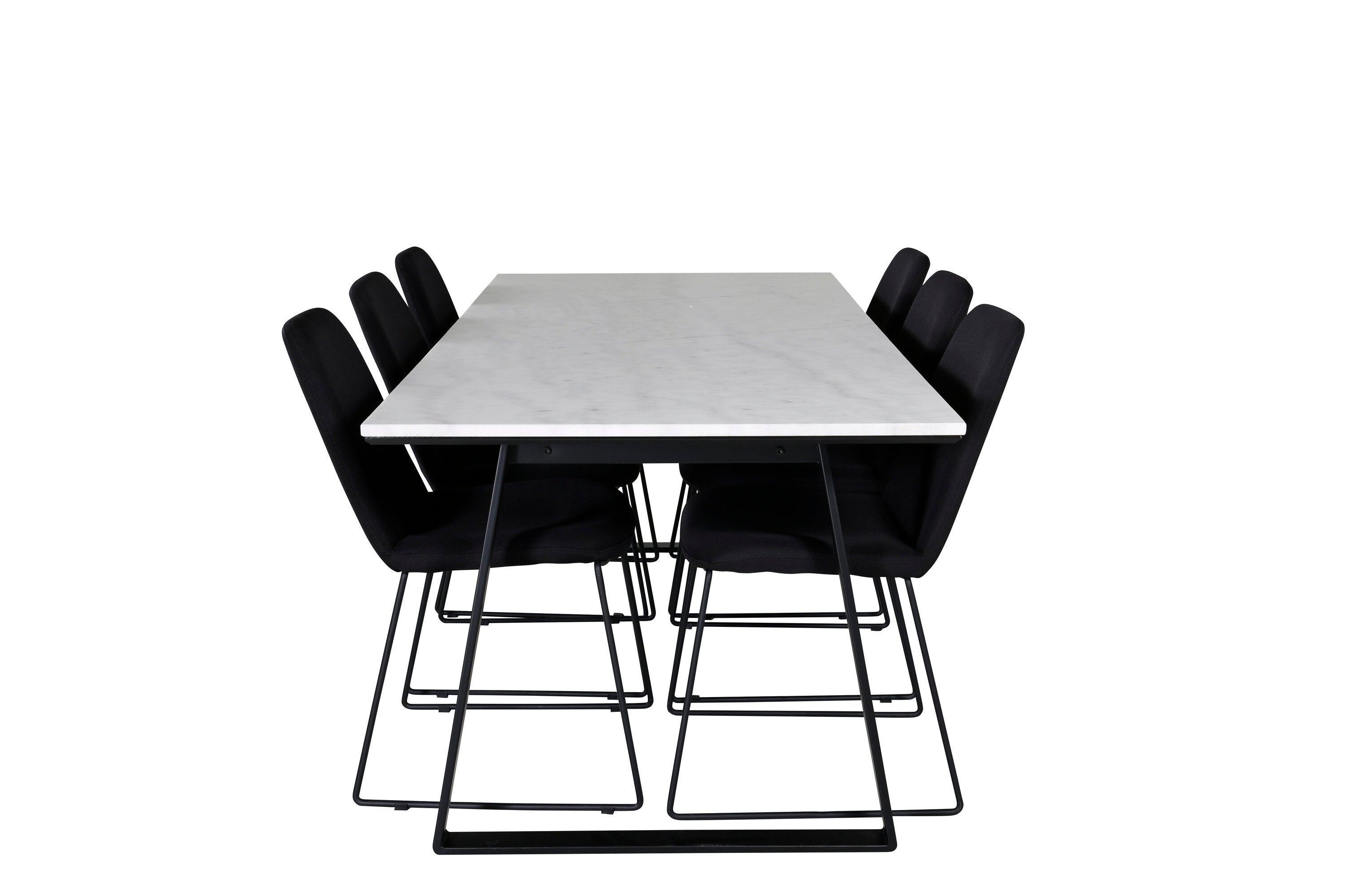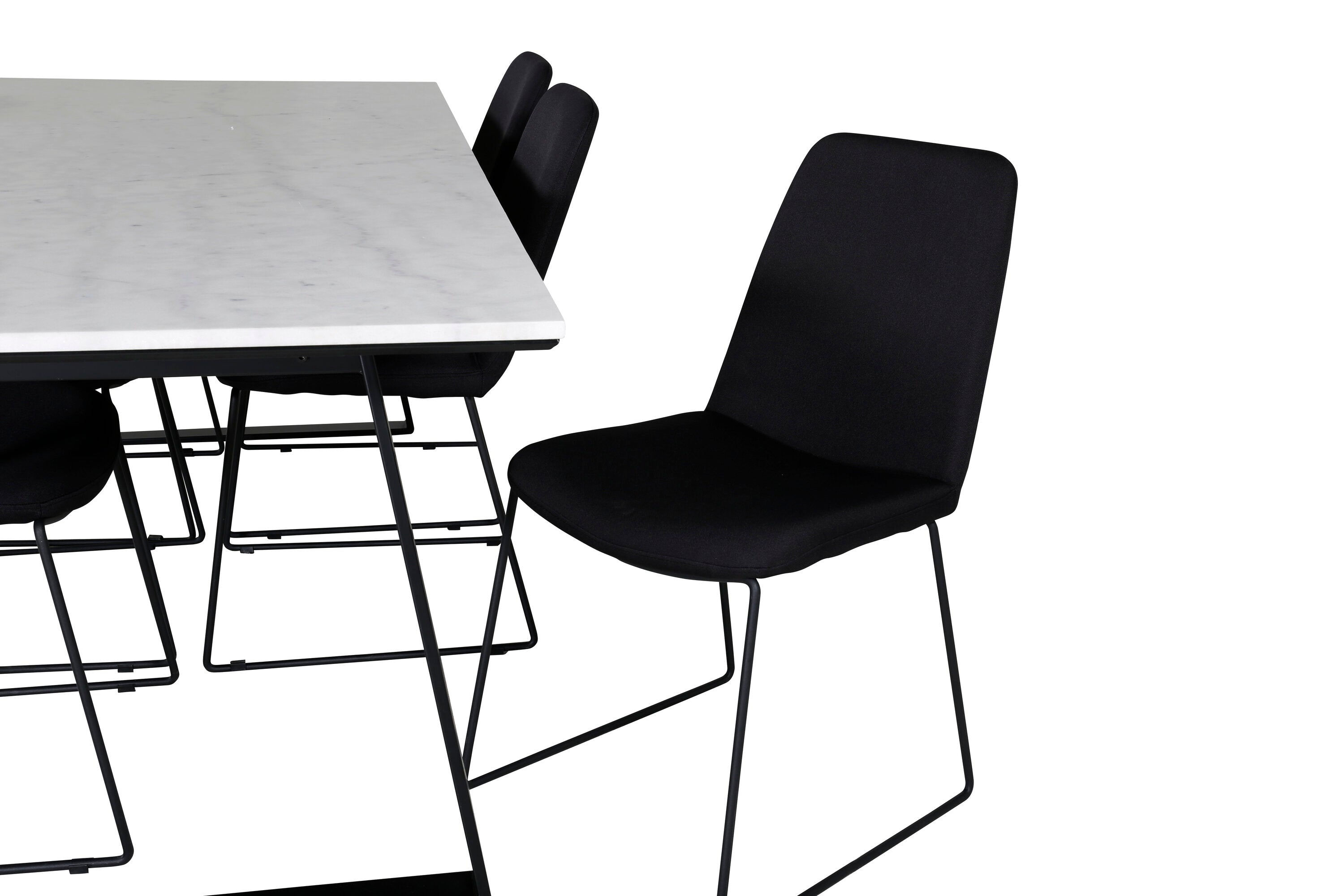 Estelle Jídelní stůl 200*90*H76 - Bílá / Černá + Muce Jídelní židle - Černé nohy - Černá Fabric_6