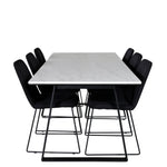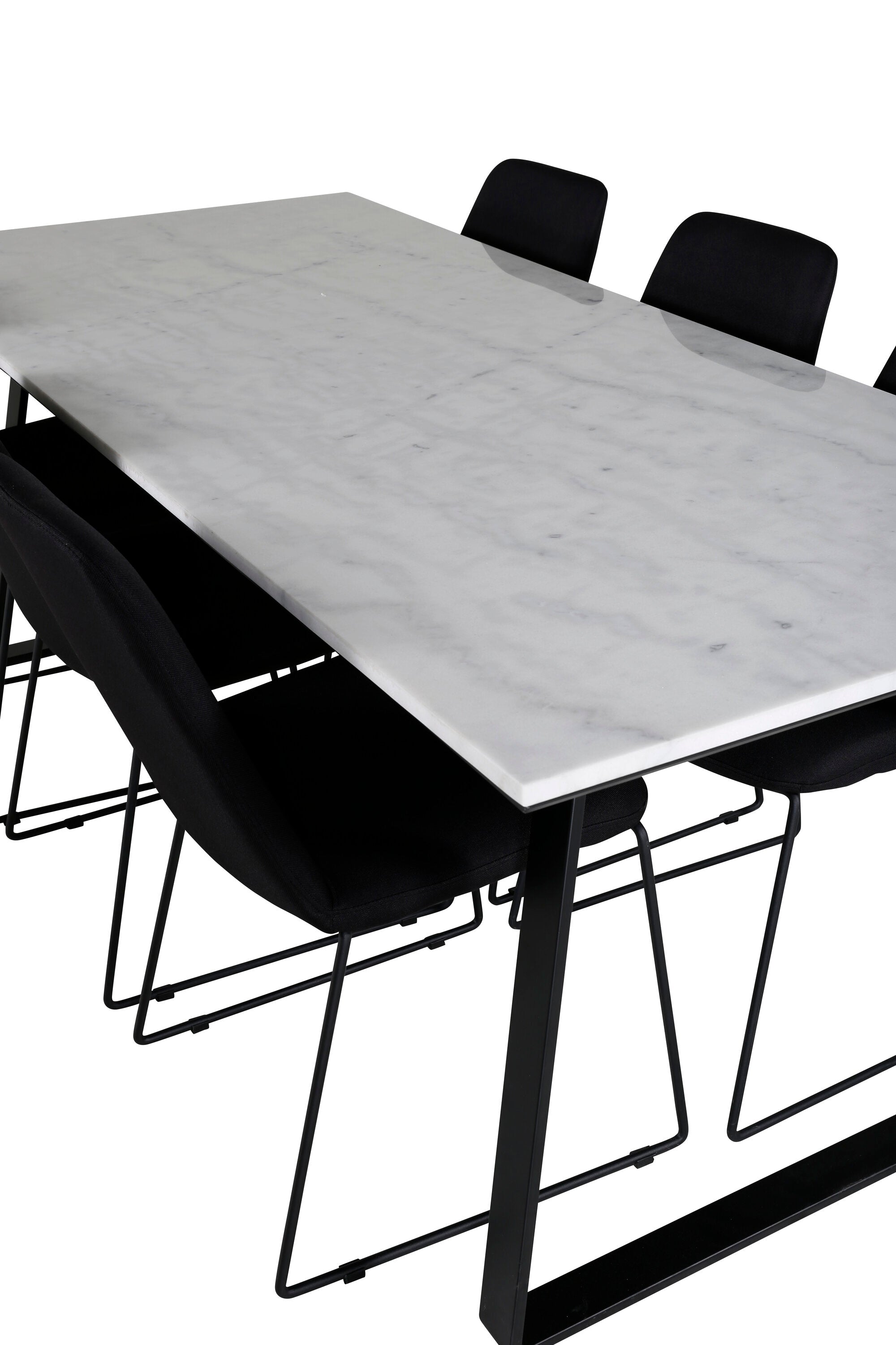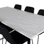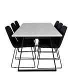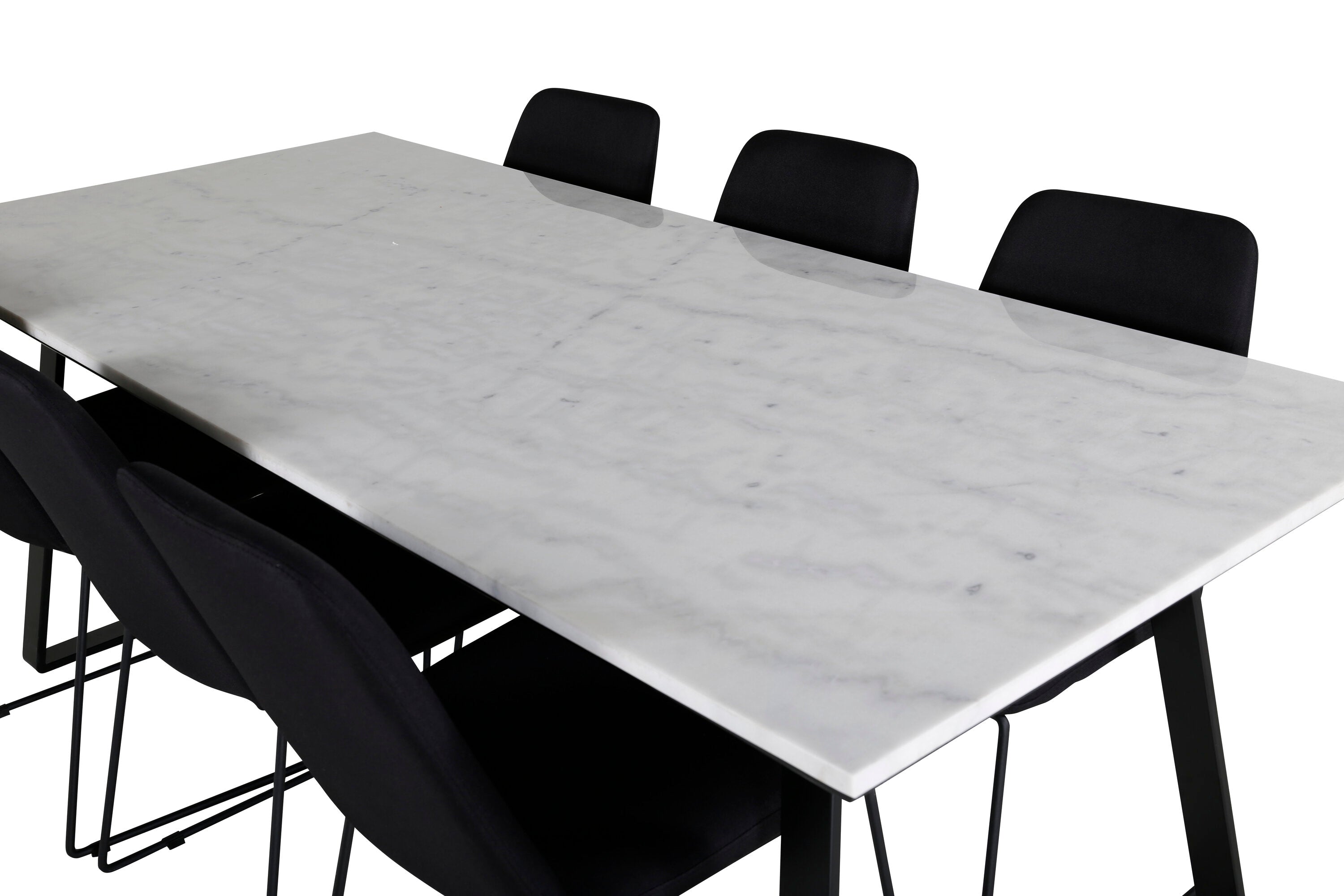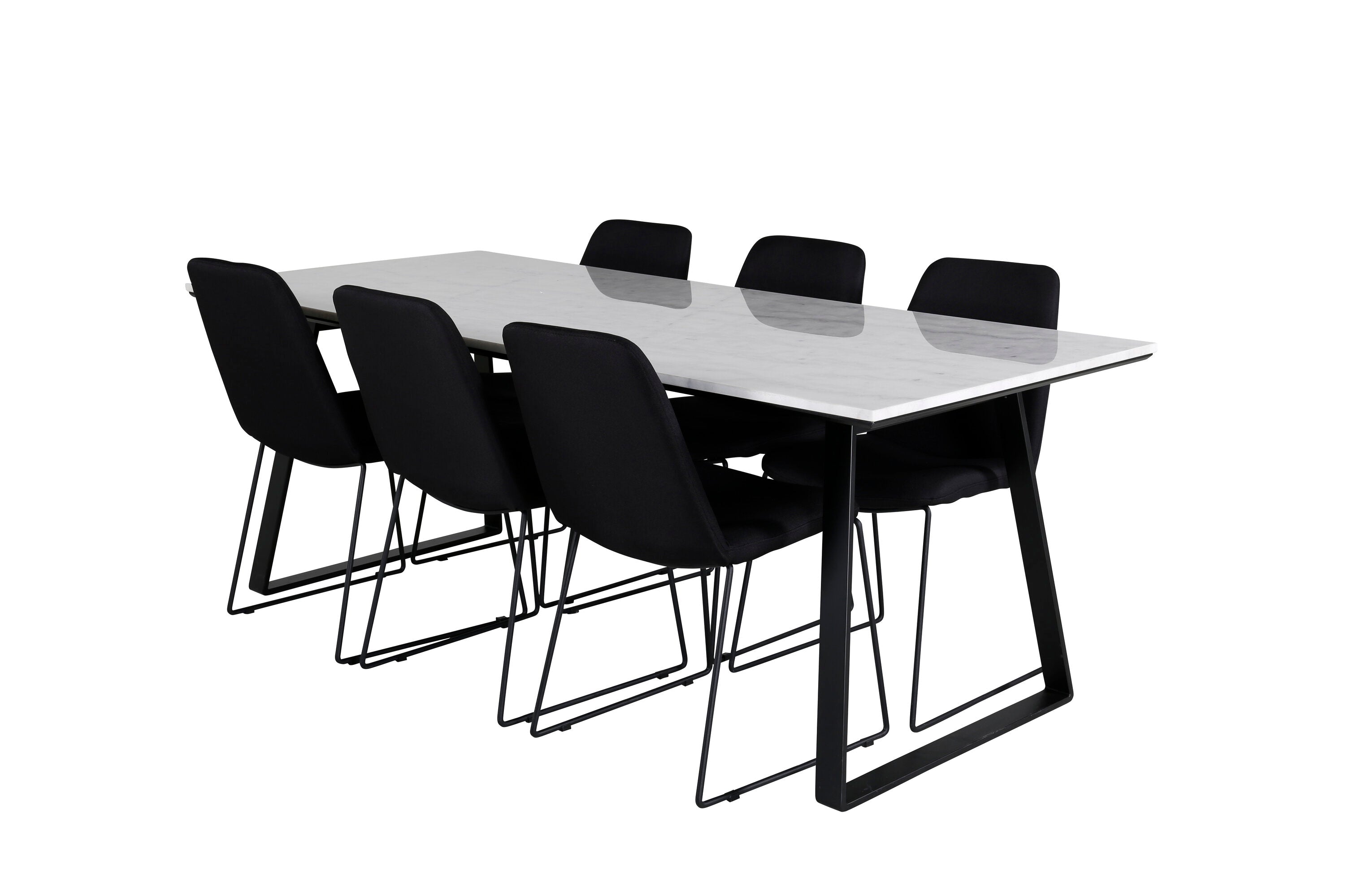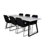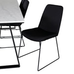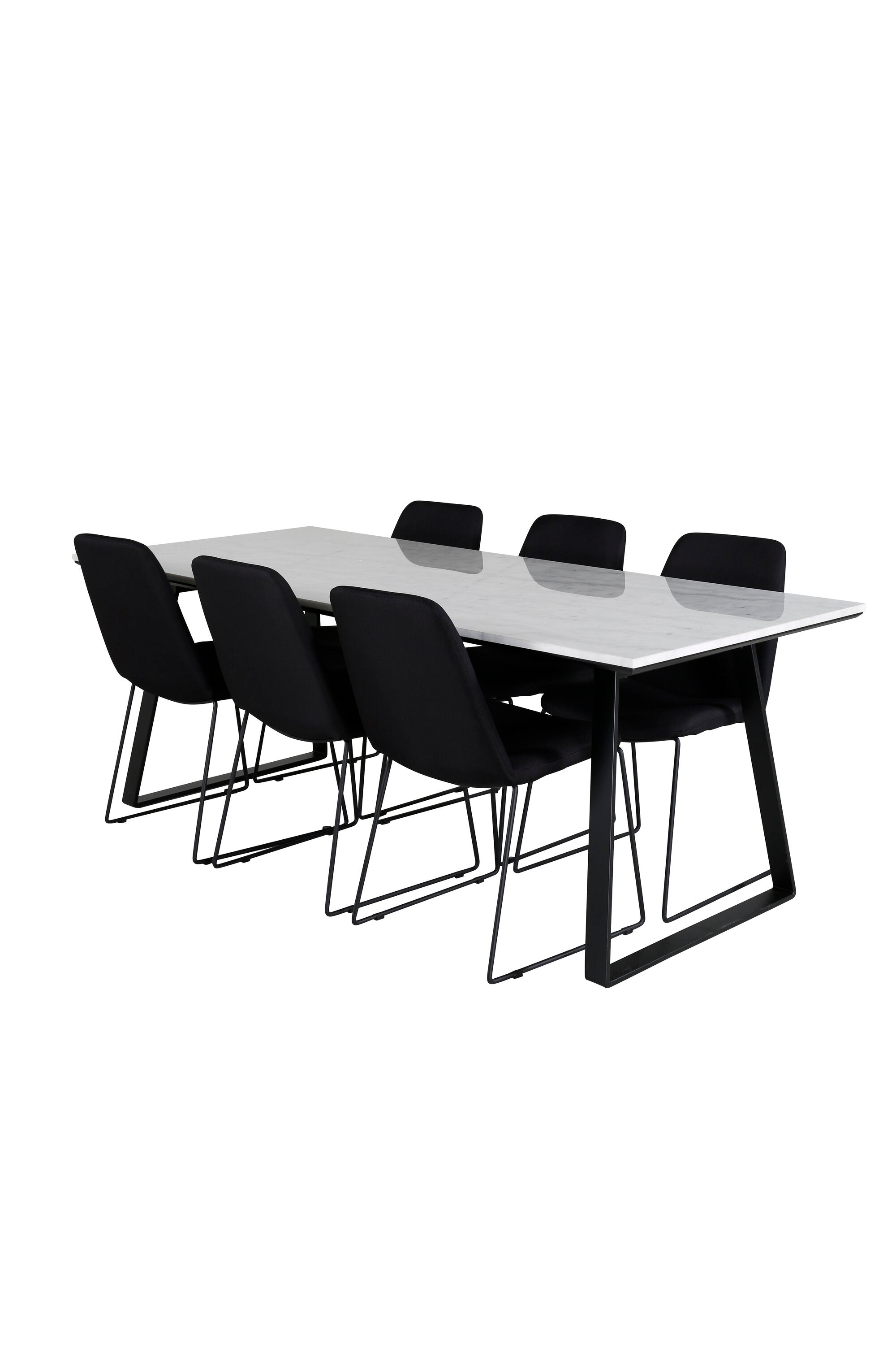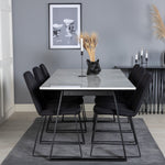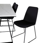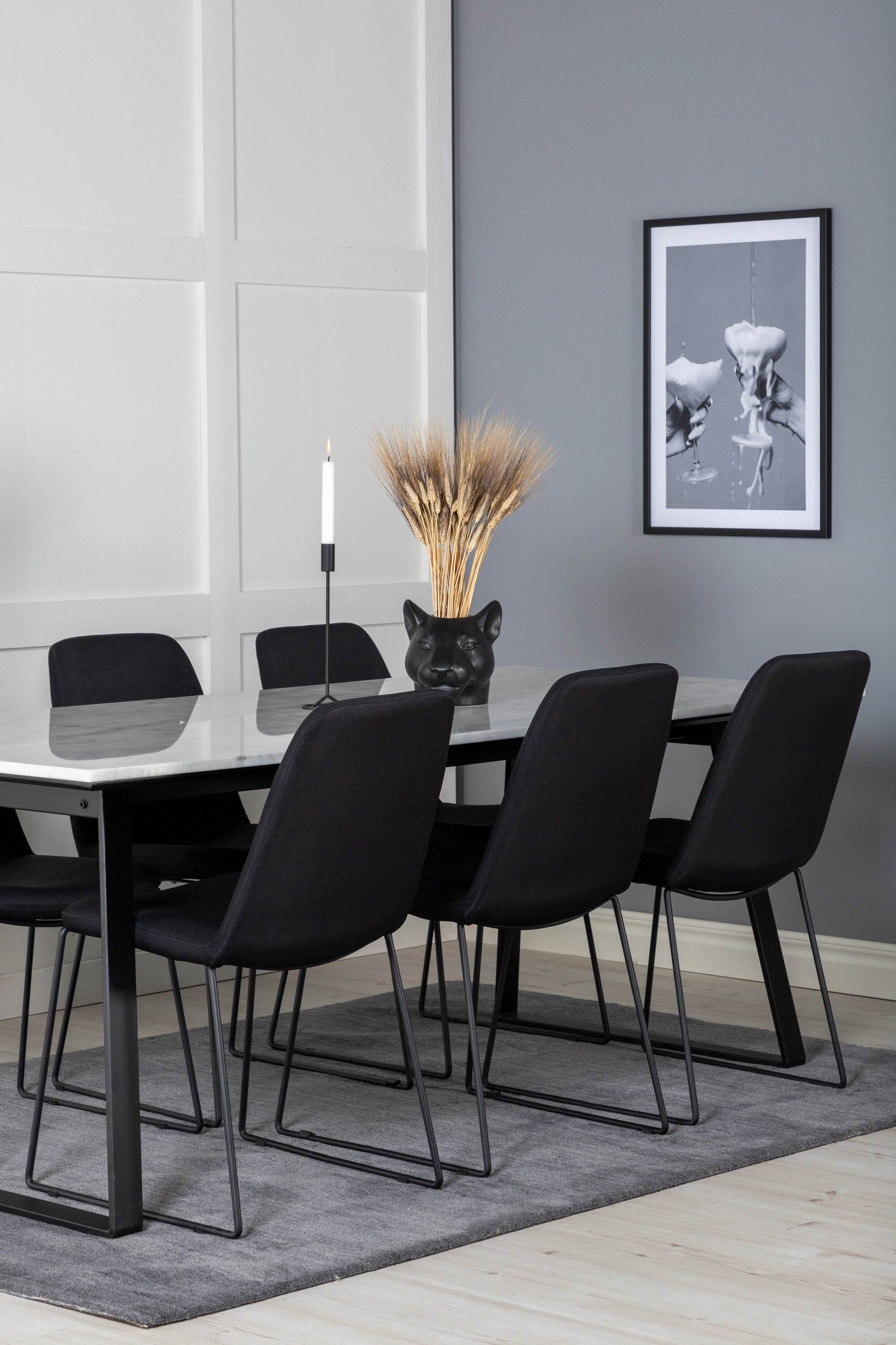 Estelle Jídelní stůl 200*90*H76 - Bílá / Černá + Muce Jídelní židle - Černé nohy - Černá Fabric_6