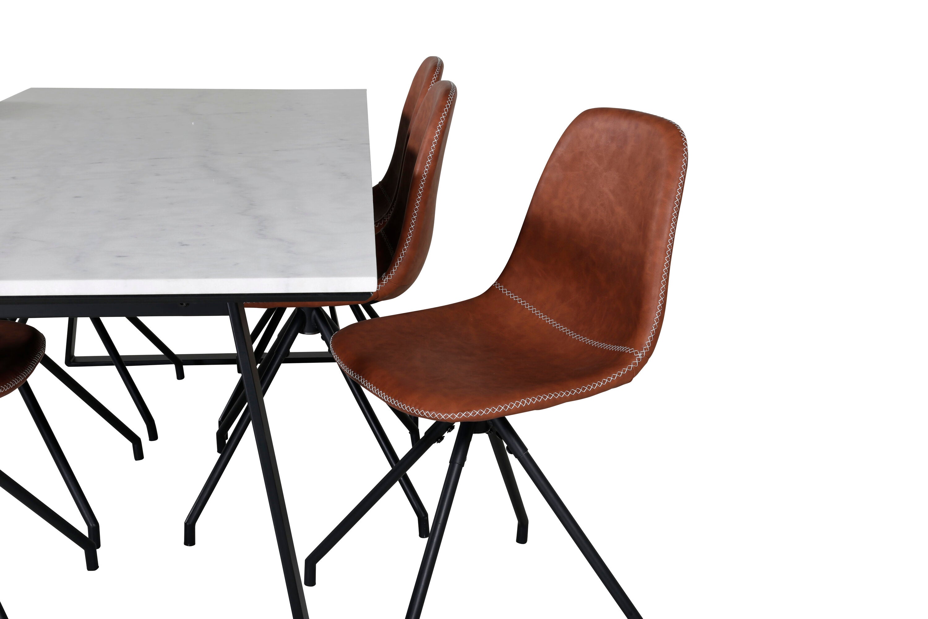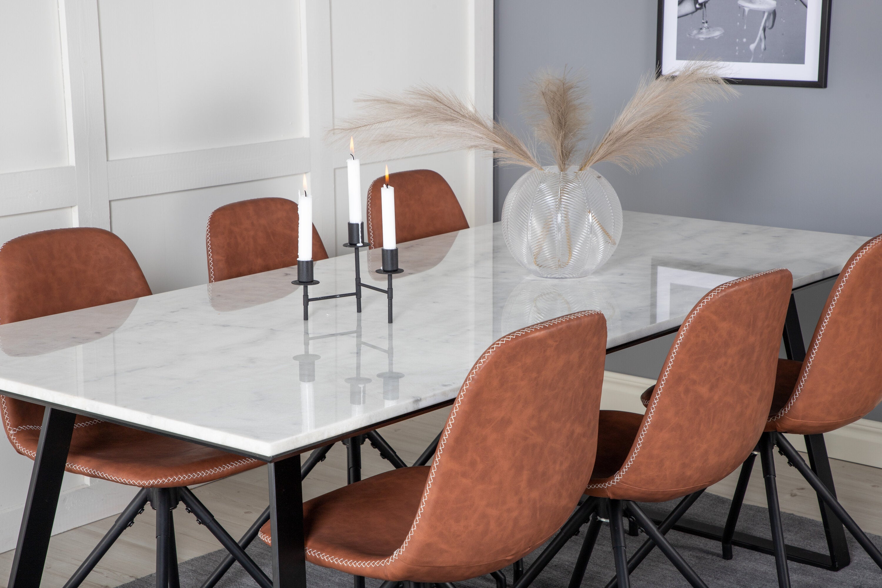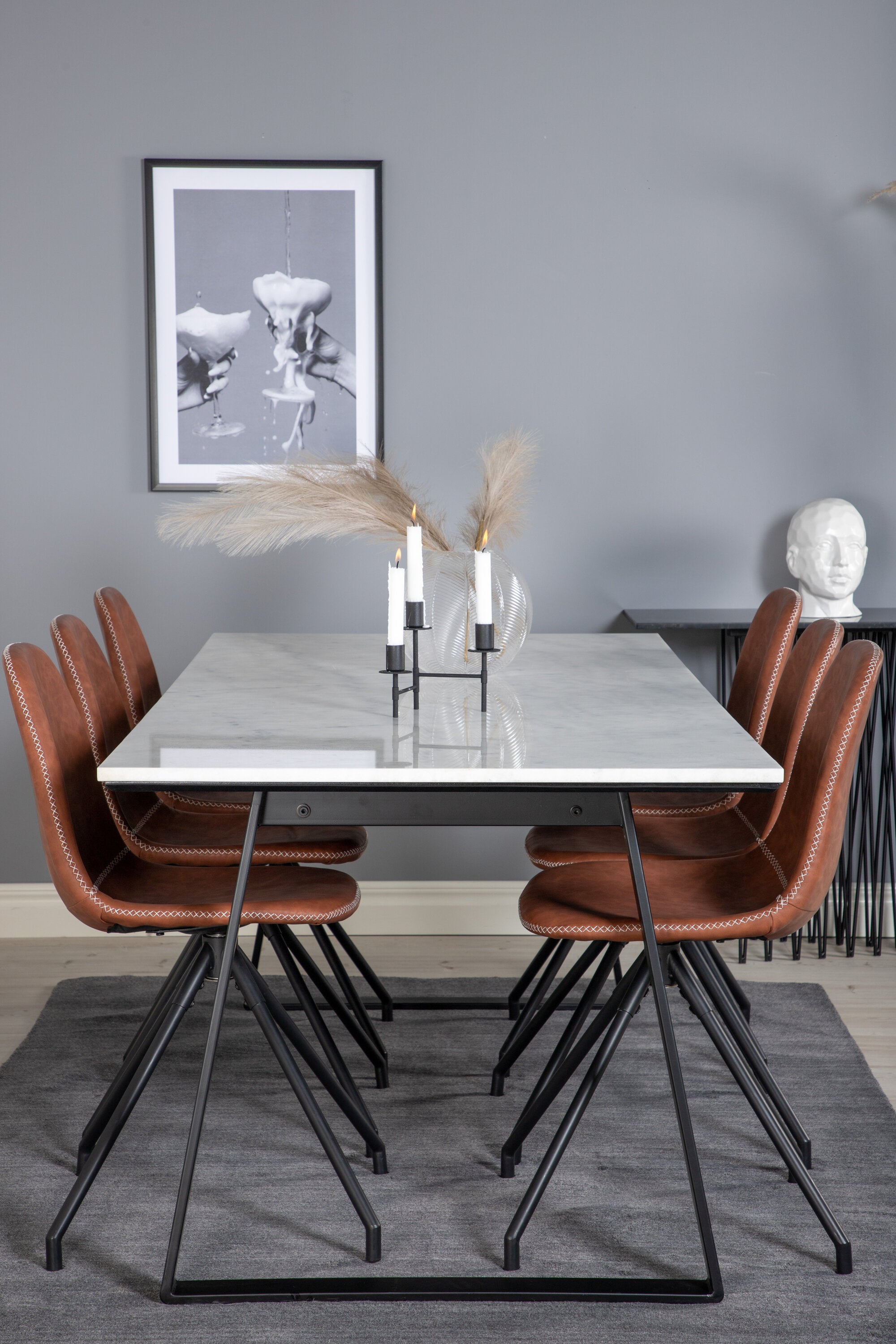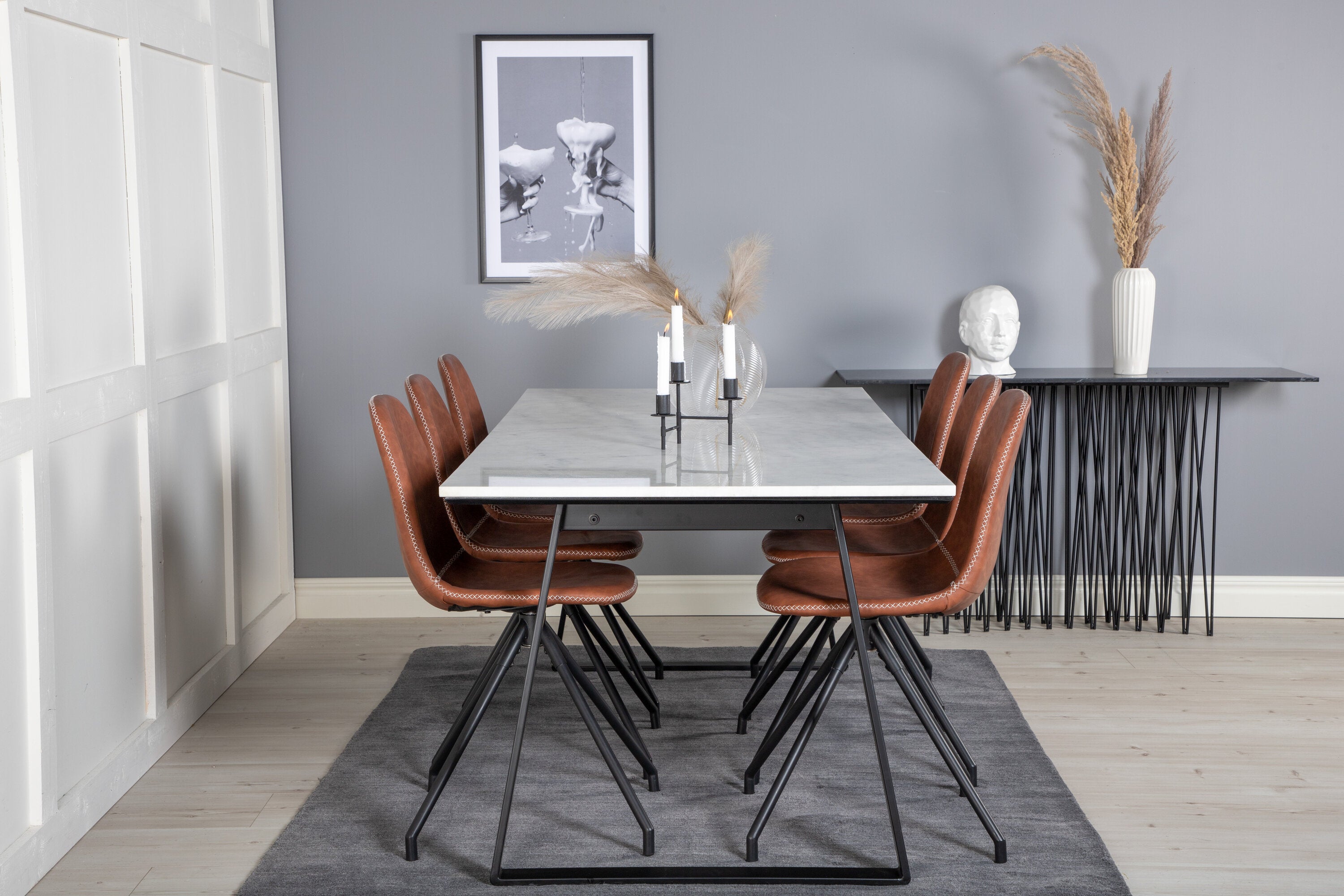 Stylové hnědé jídelní židle Polar jsou sladěny s jídelním stolem Estelle v krásném mramoru. Skupina potravin, která časem zaručeně obstojí!