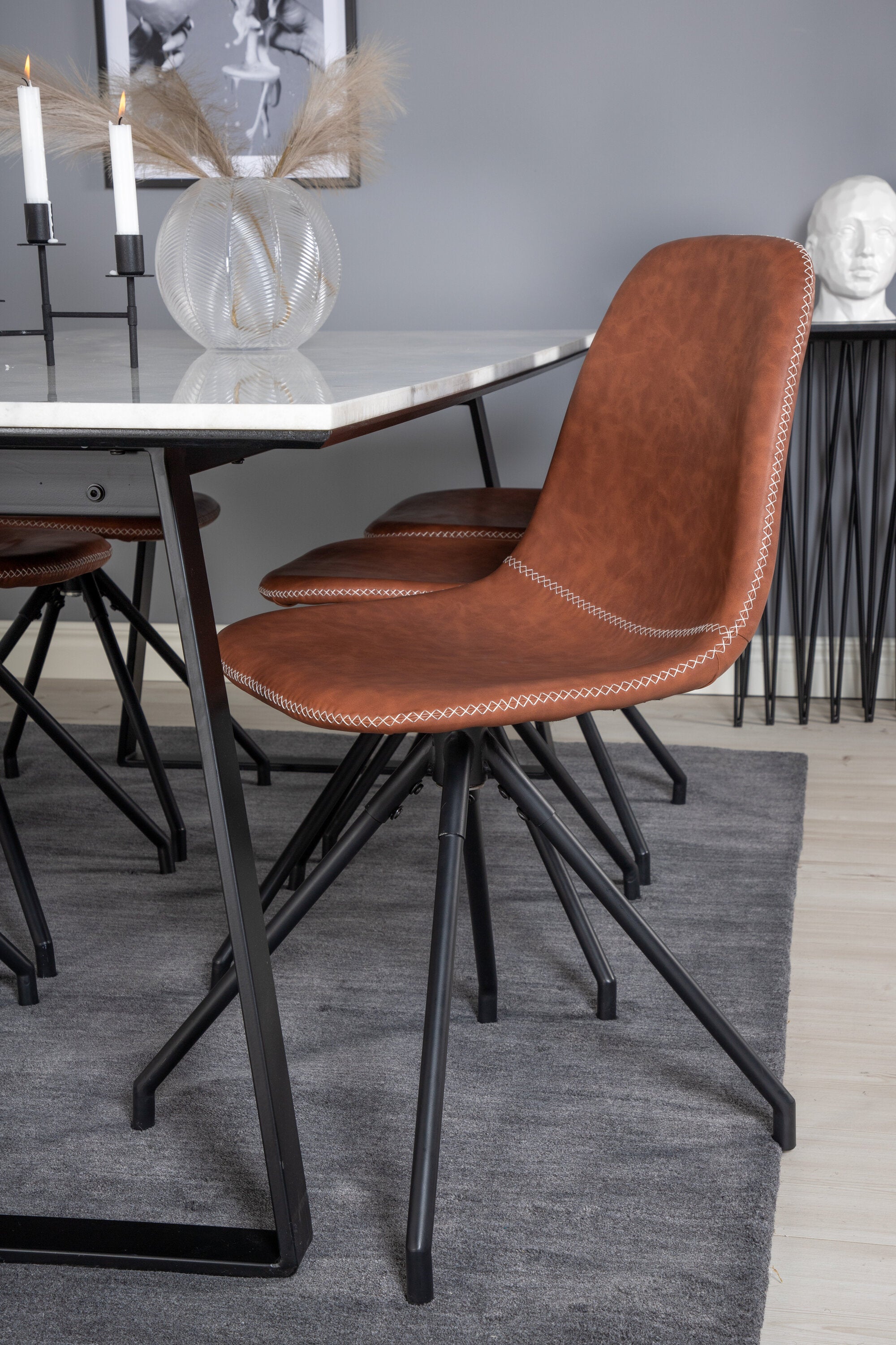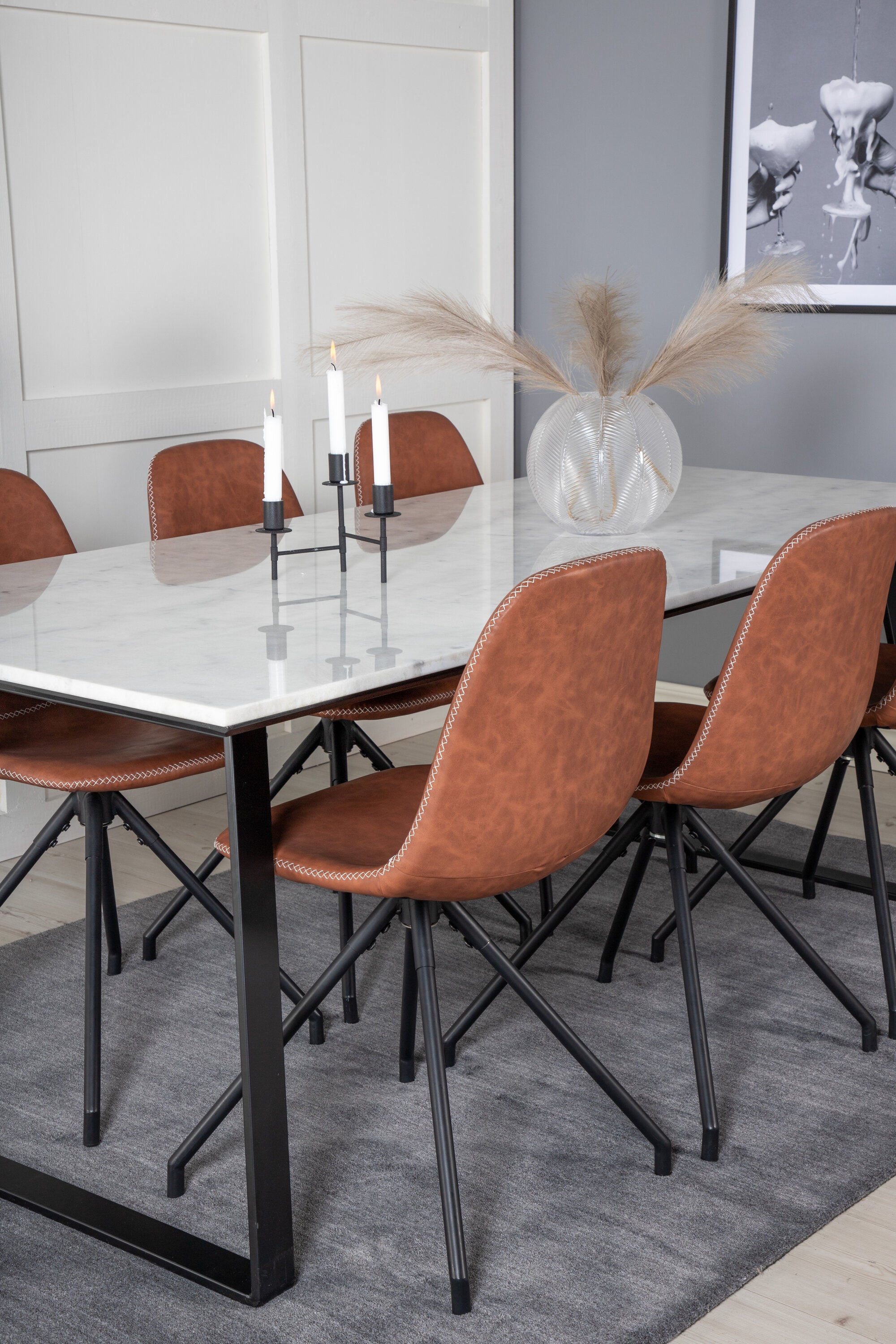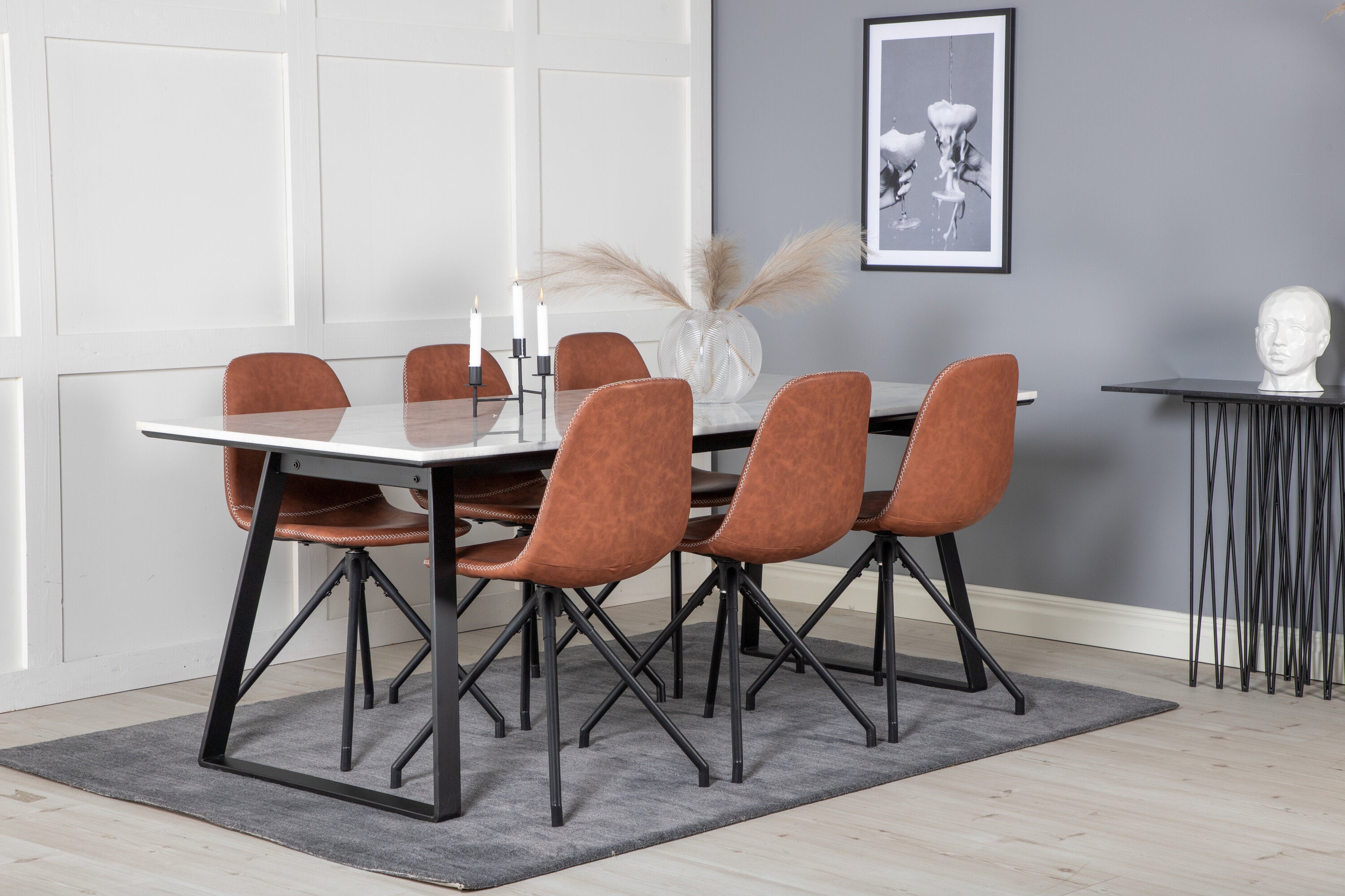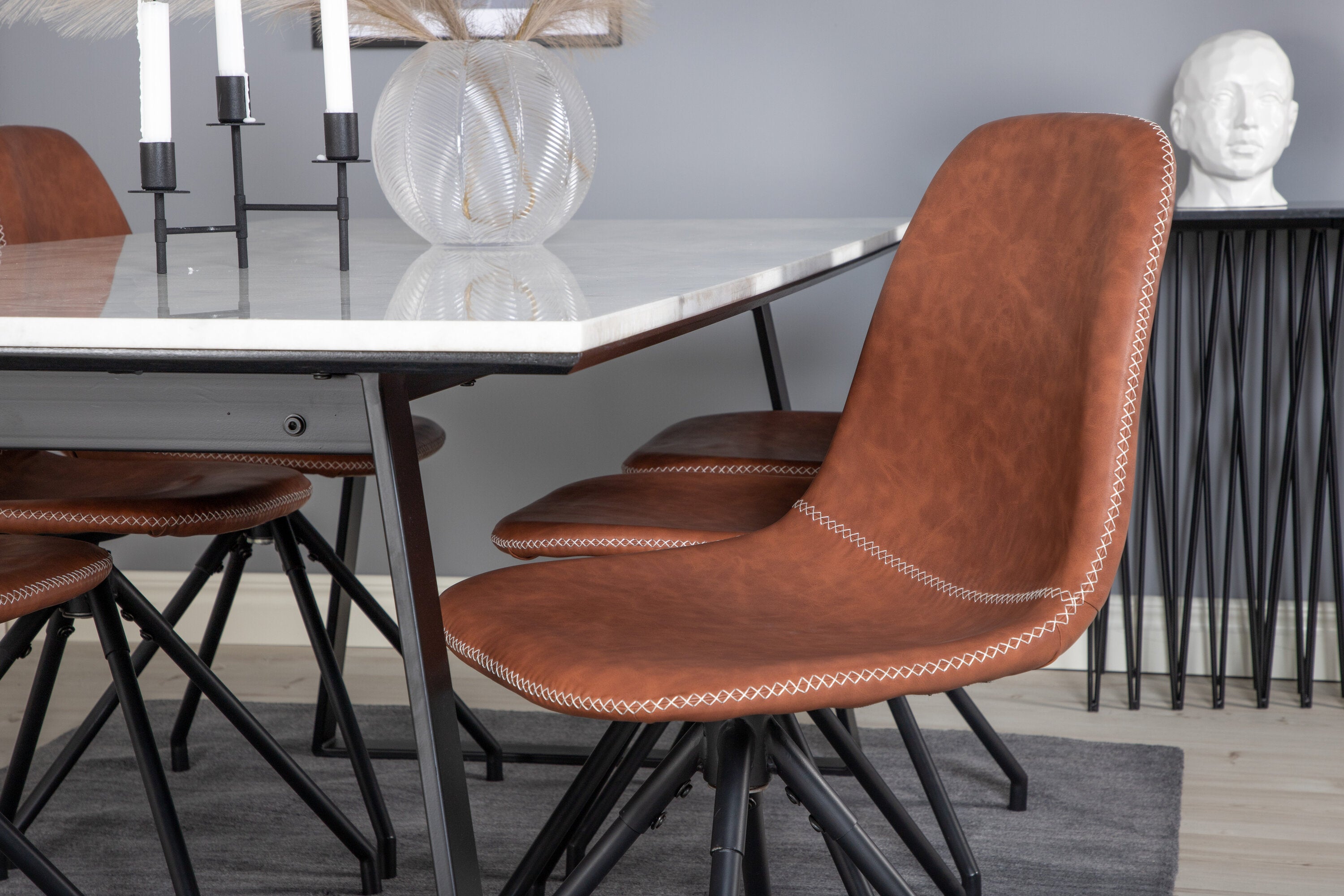 Stylové hnědé jídelní židle Polar jsou sladěny s jídelním stolem Estelle v krásném mramoru. Skupina potravin, která časem zaručeně obstojí!