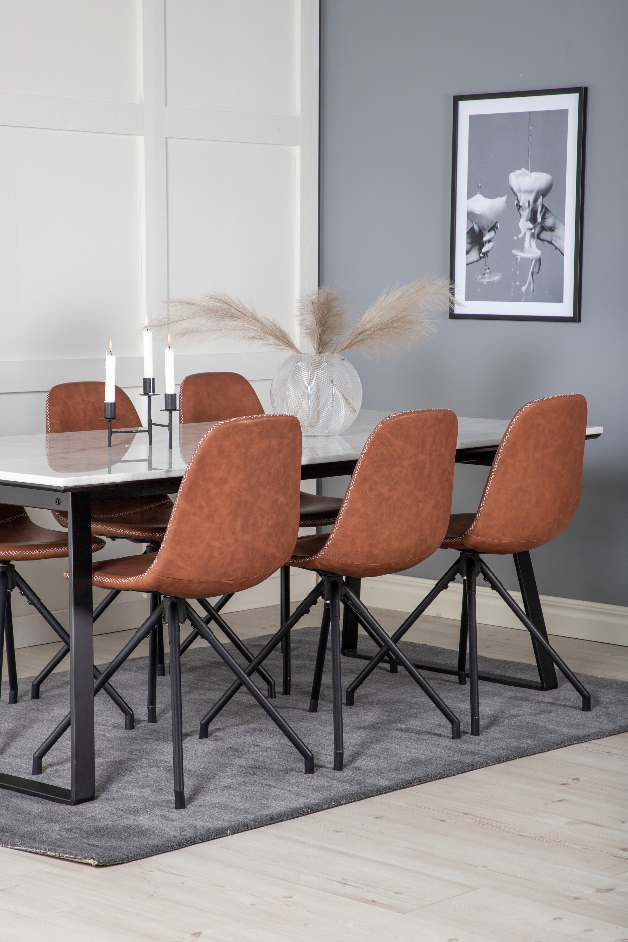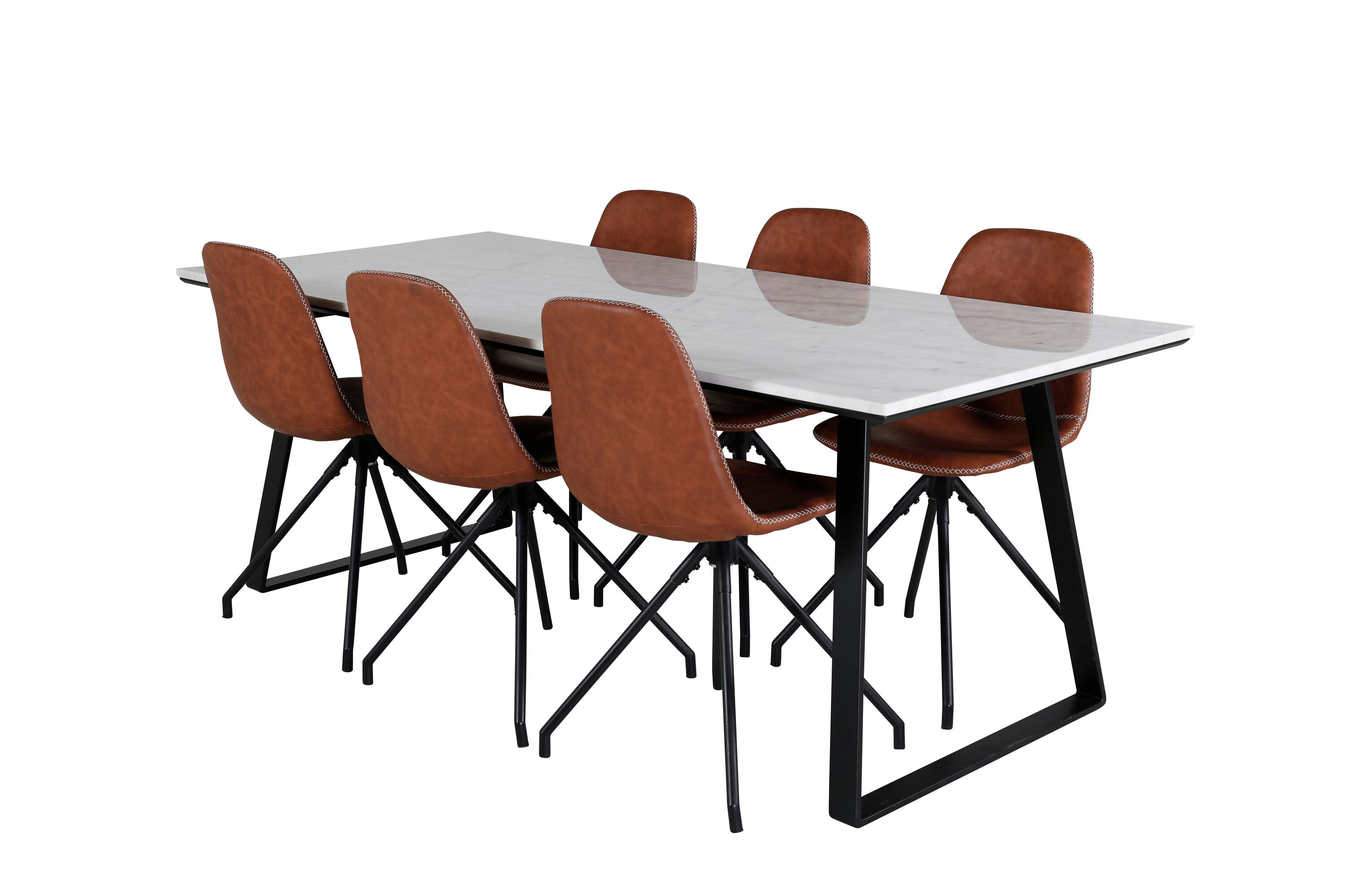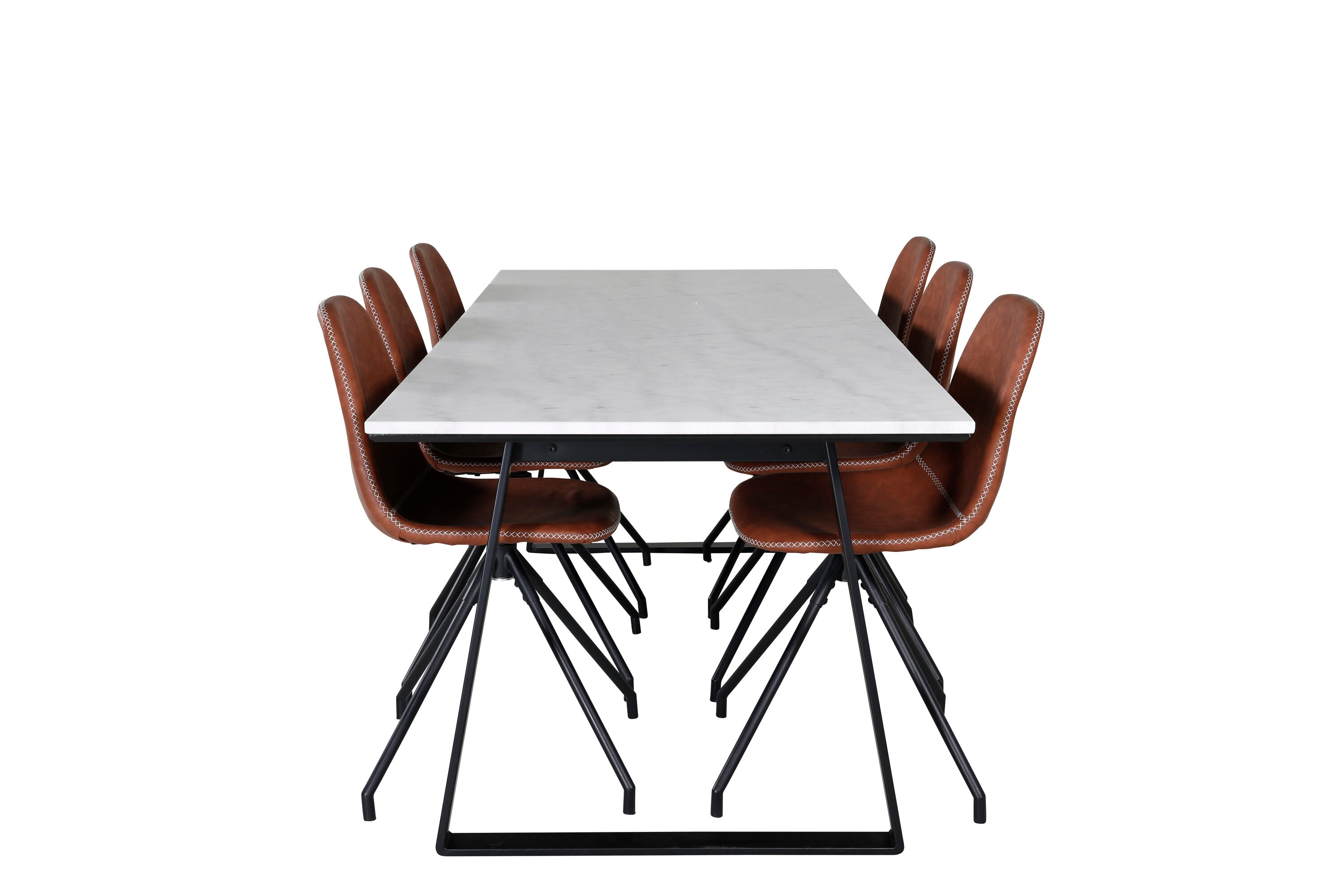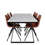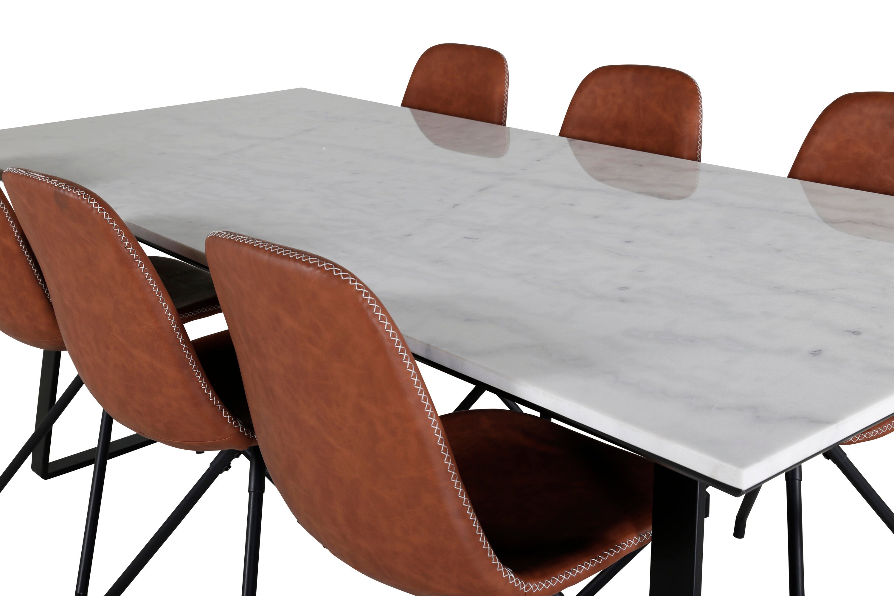Stylové hnědé jídelní židle Polar jsou sladěny s jídelním stolem Estelle v krásném mramoru. Skupina potravin, která časem zaručeně obstojí!