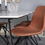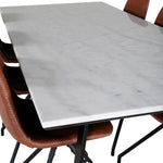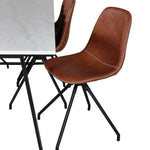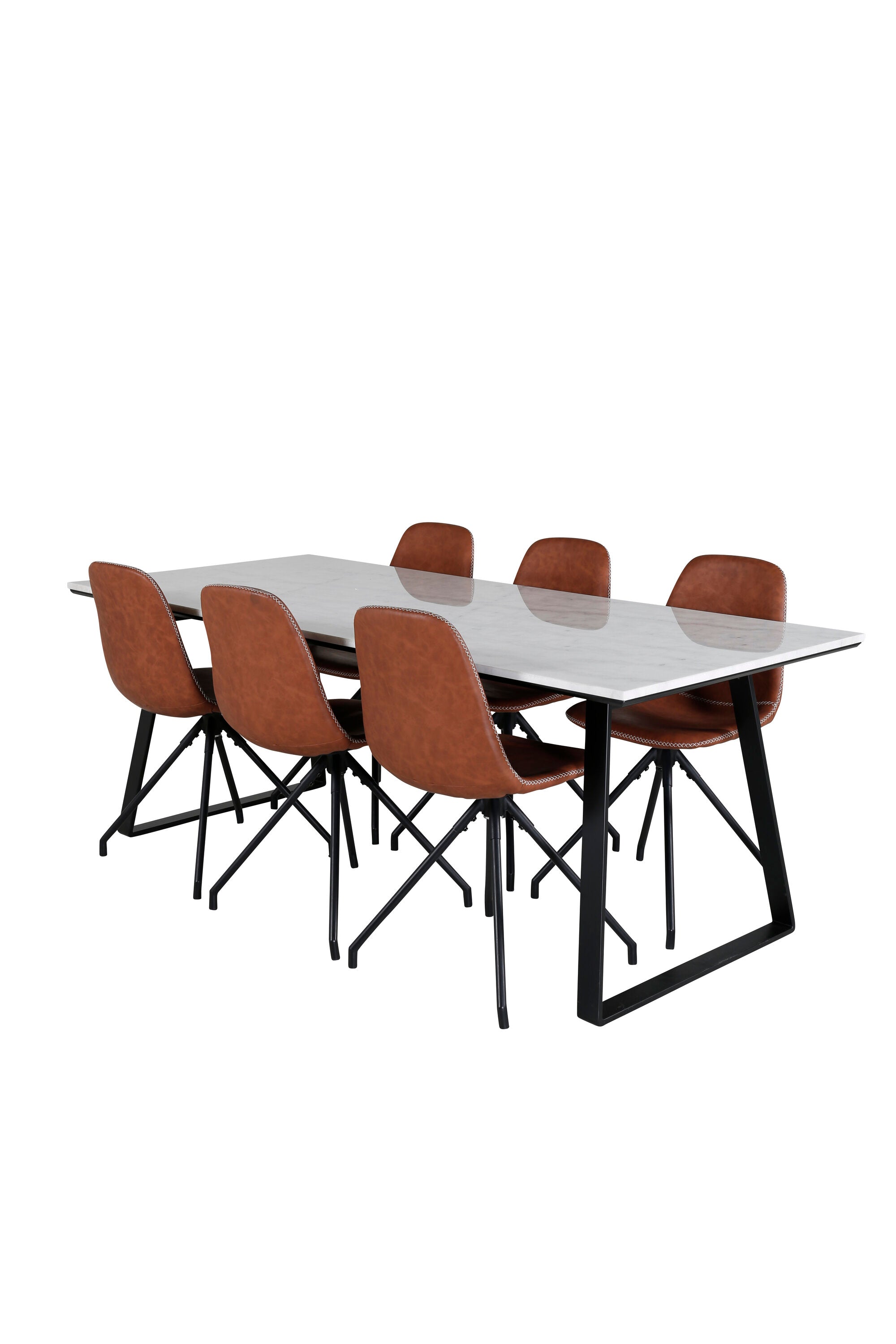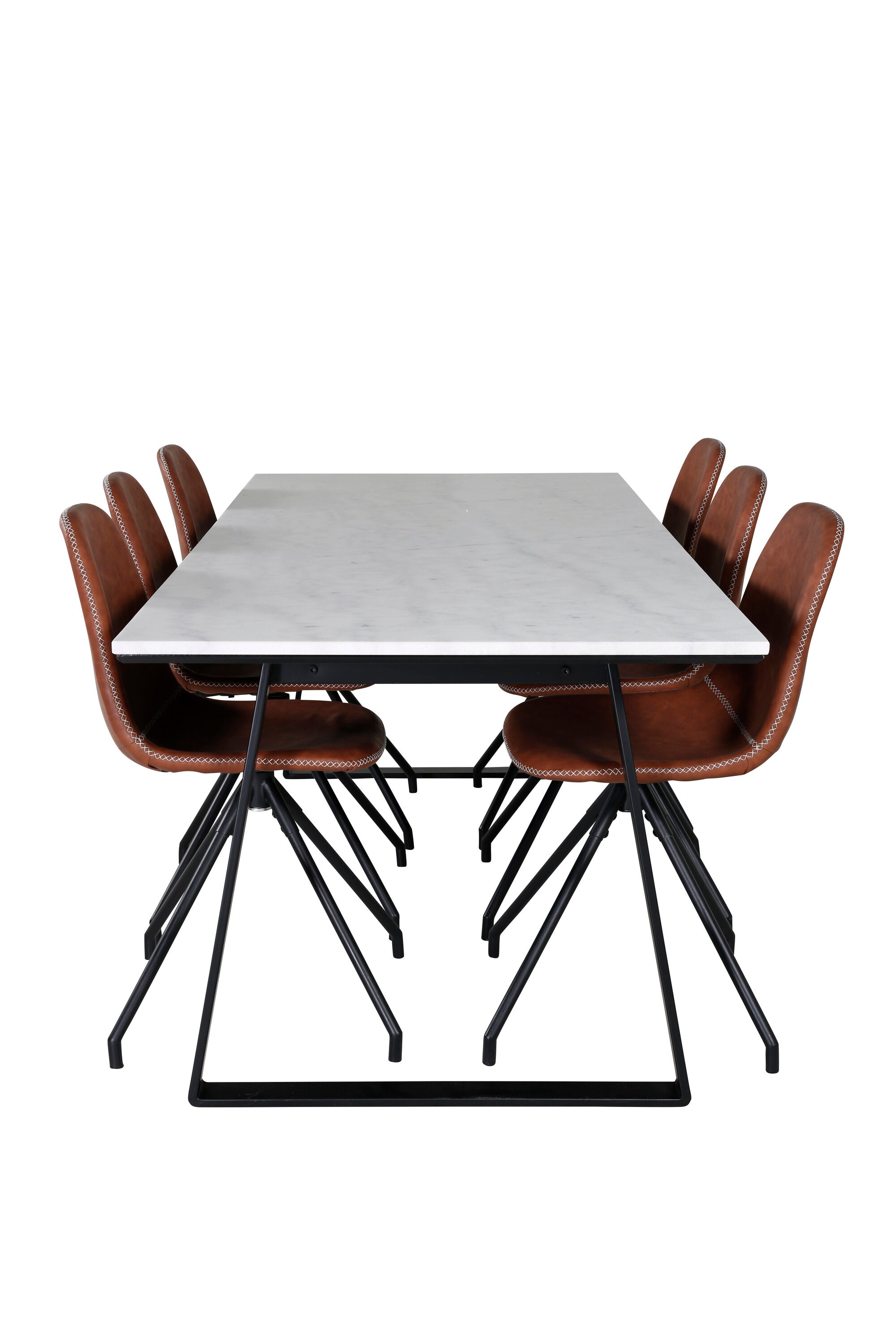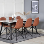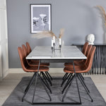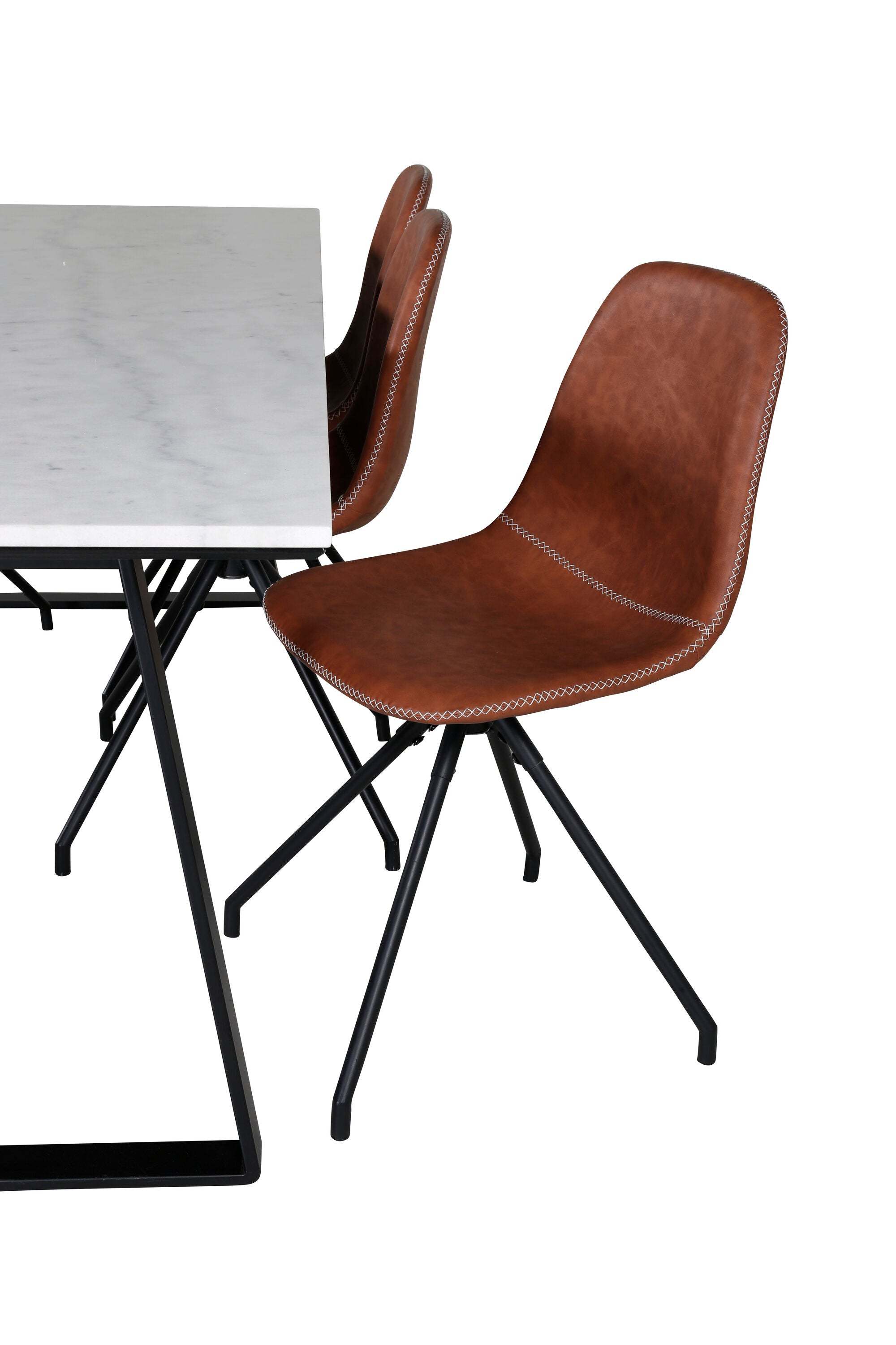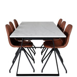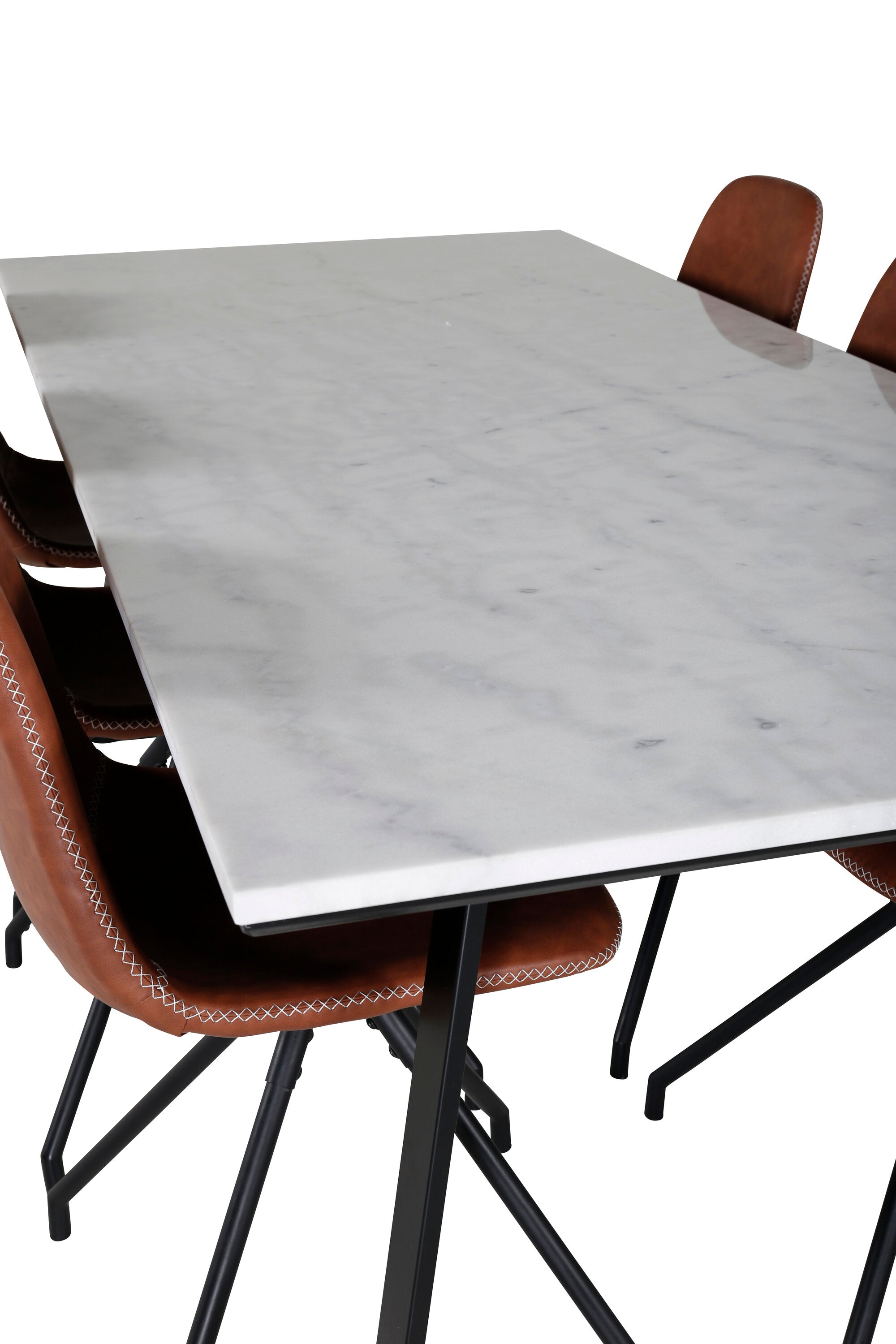 Stylové hnědé jídelní židle Polar jsou sladěny s jídelním stolem Estelle v krásném mramoru. Skupina potravin, která časem zaručeně obstojí!