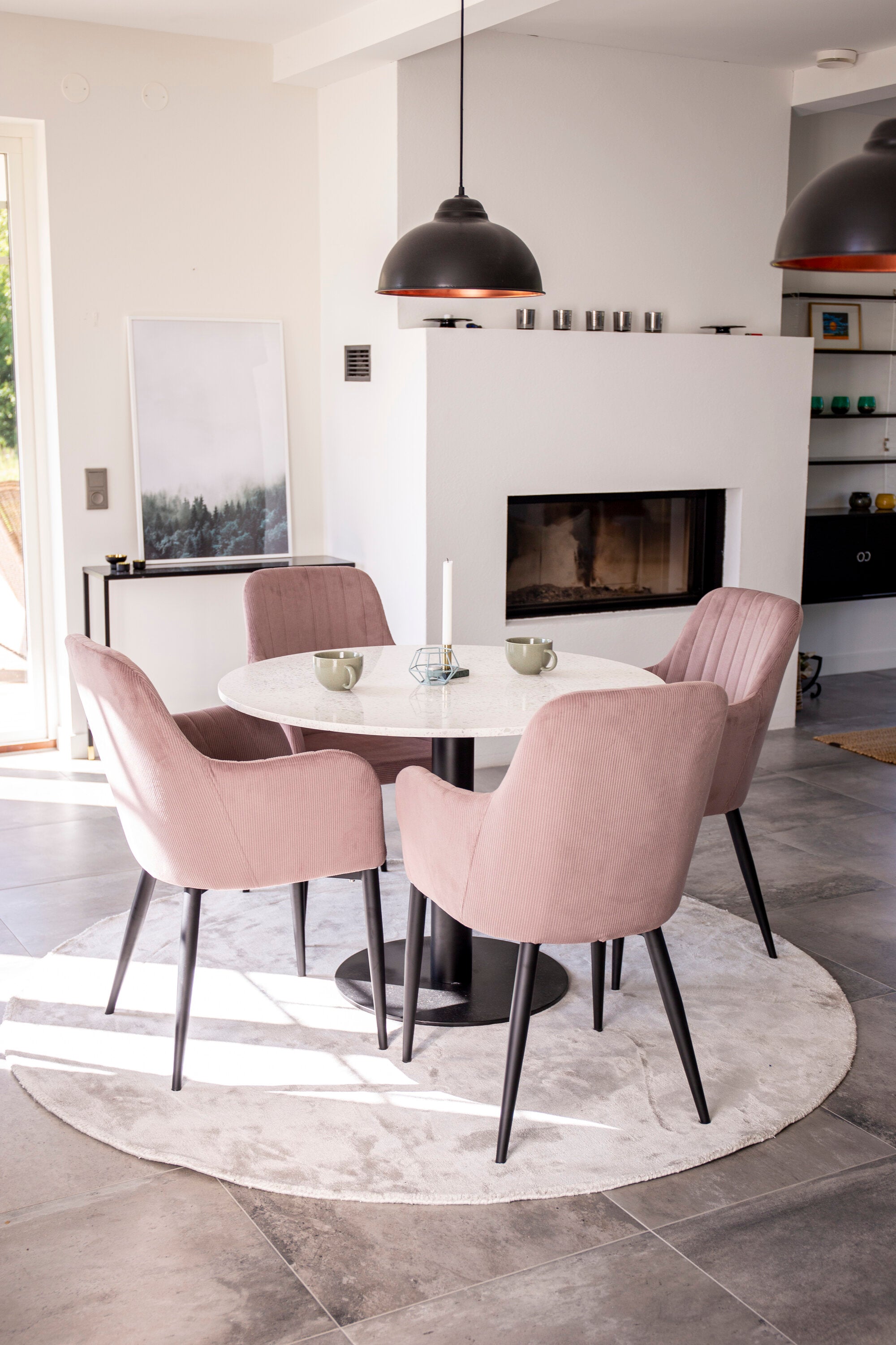 Estelle jídelní stůl kulatý 106 cm šedý mramor / černé nohy + komfortní jídelní židle - černé nohy / dusty růžový manšestr _4