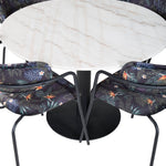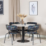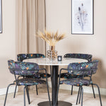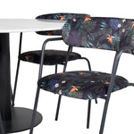 Estelle kulatý jídelní stůl ø106 H75 - bílá / černá + křeslo Arrow - černé nohy - černá květina s potiskem Fabric_4