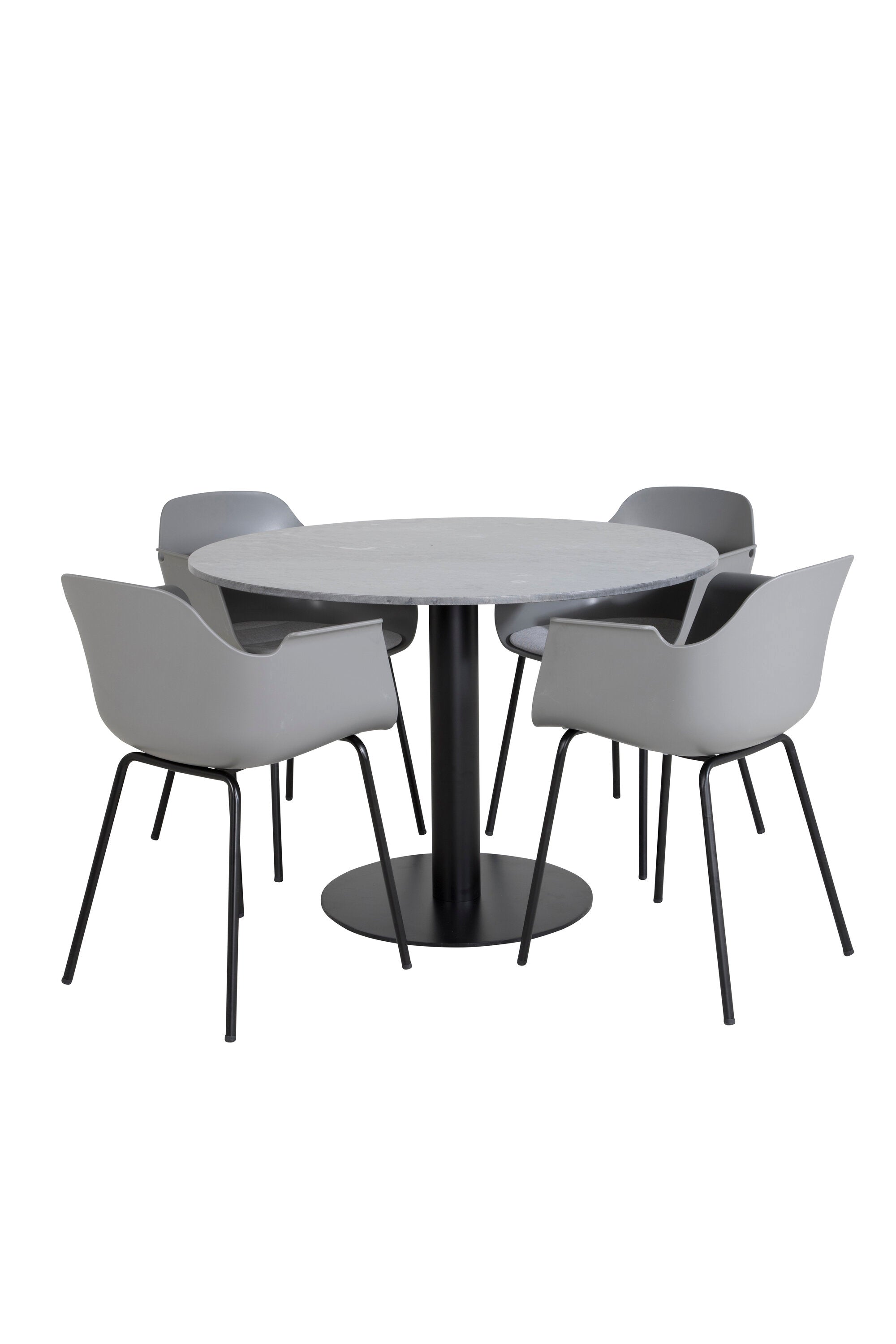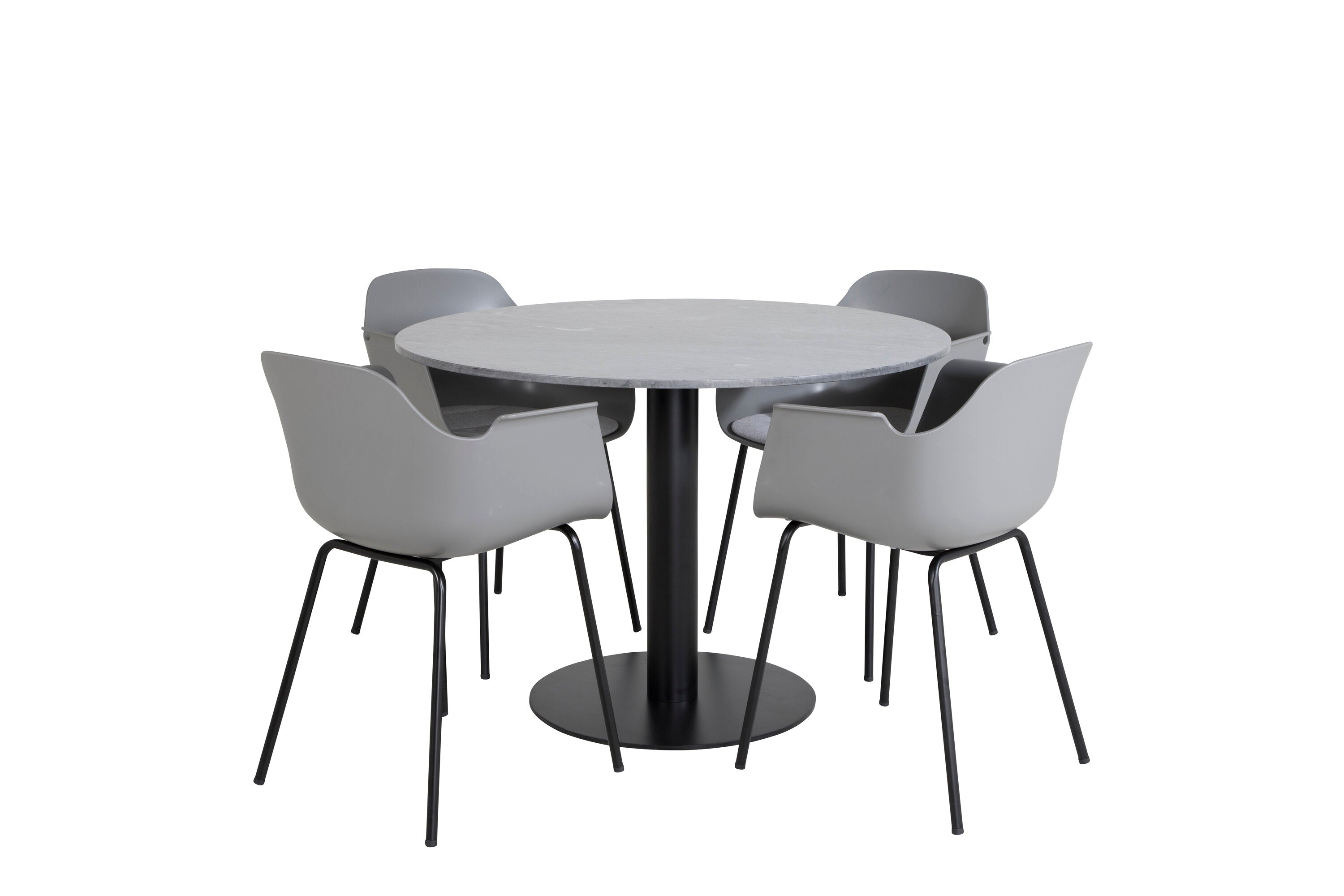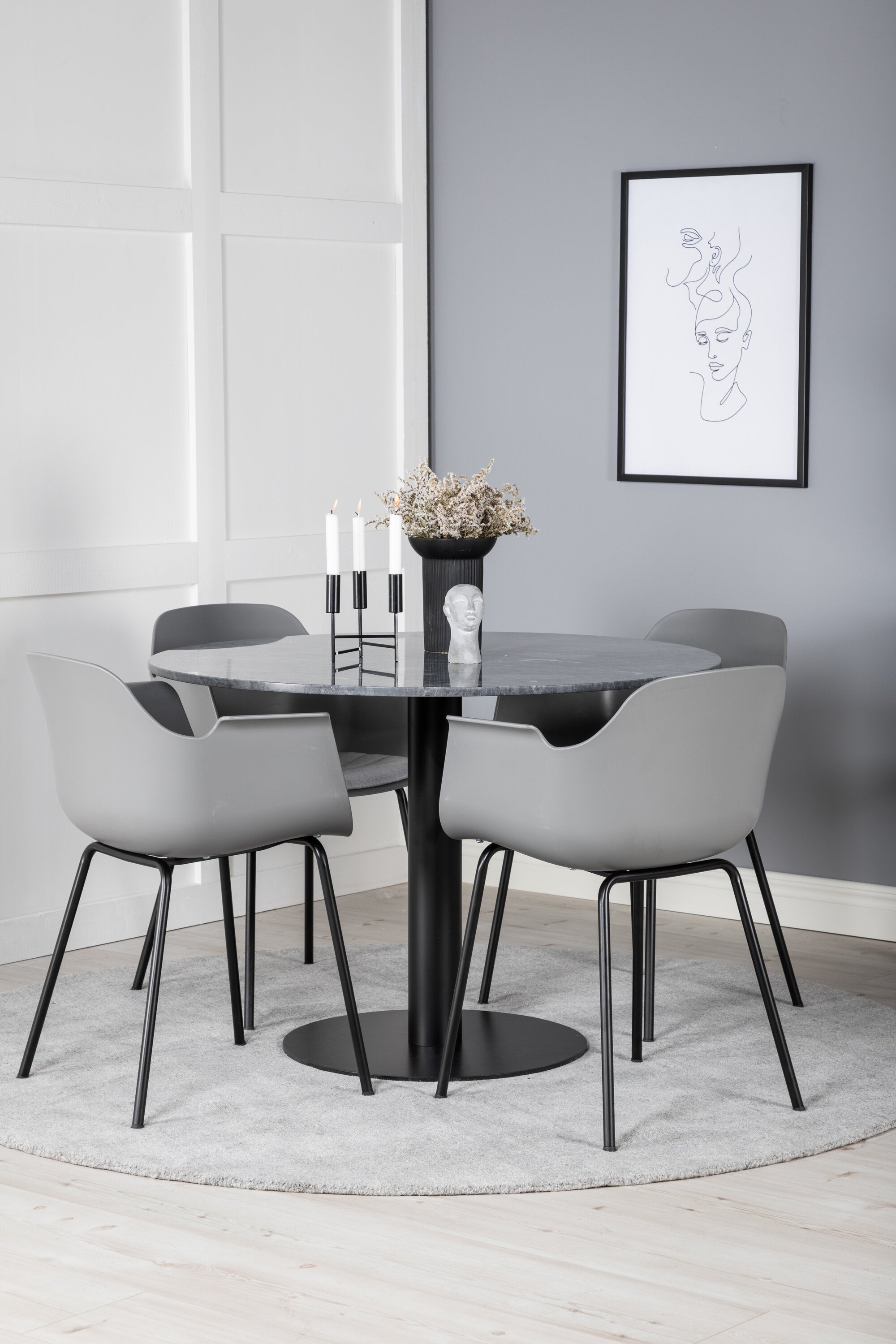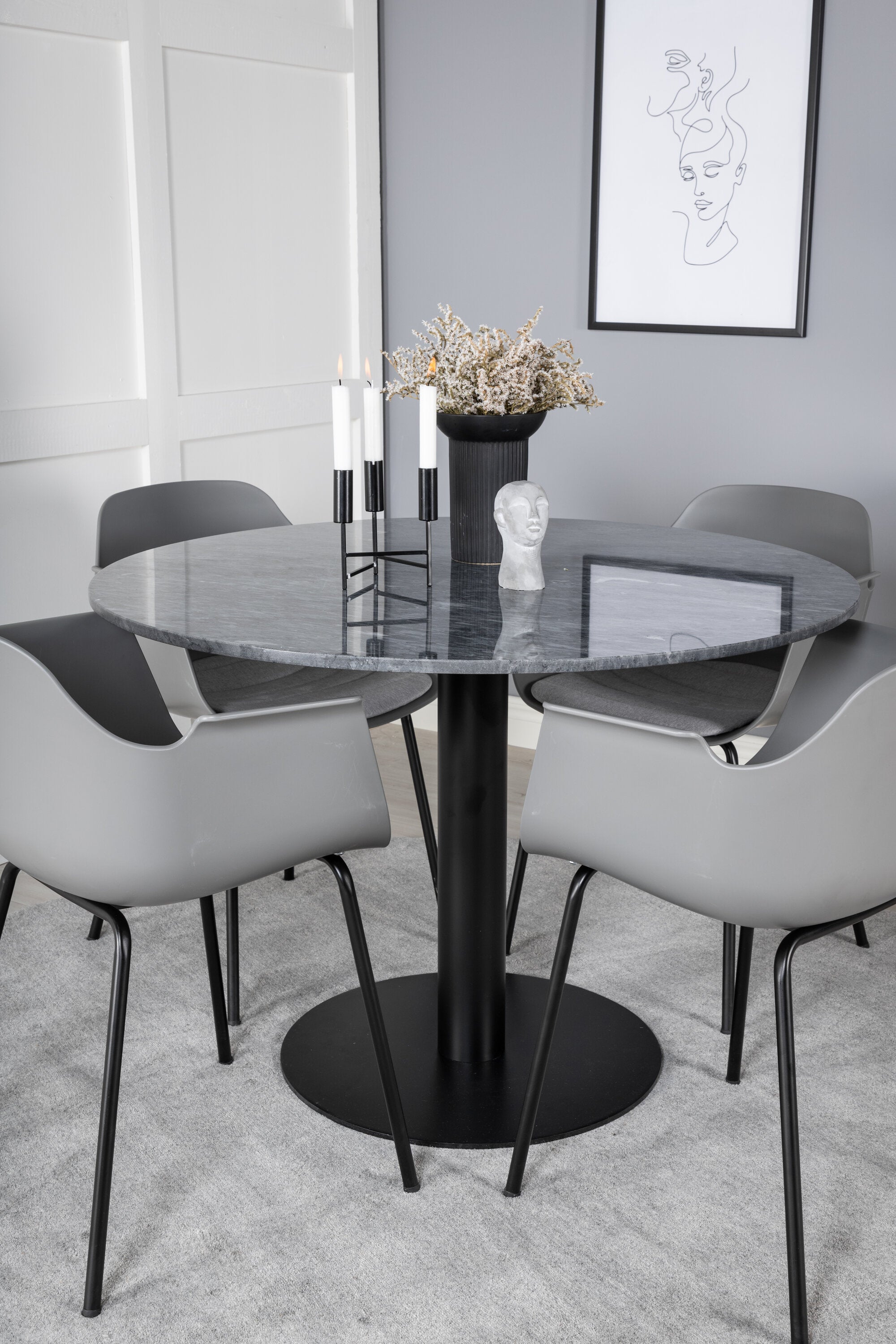 Estelle kulatý jídelní stůl ø106 H75 - černá / černá + pohodlná plastová jídelní židle - černé nohy - šedý plast_4