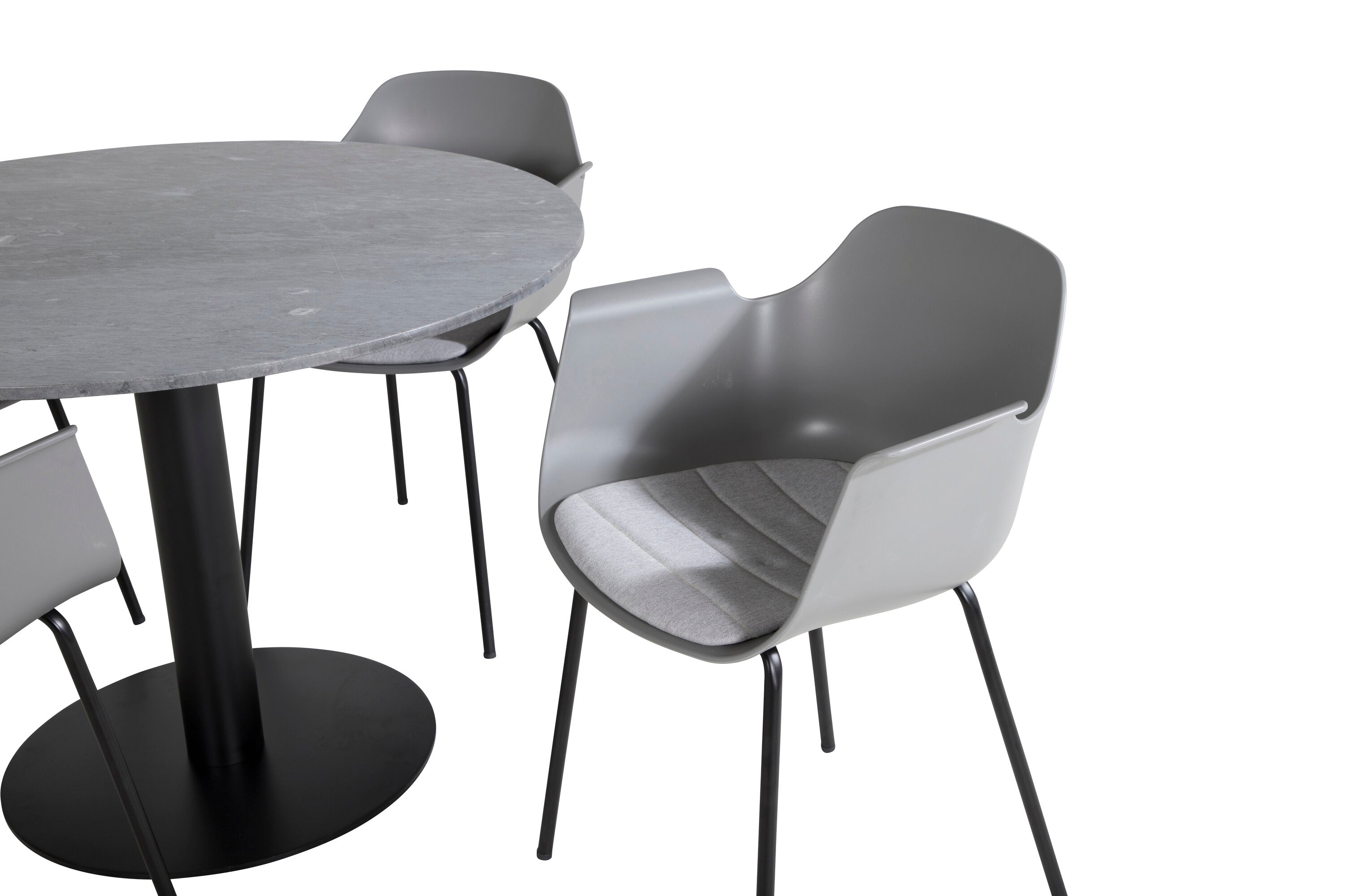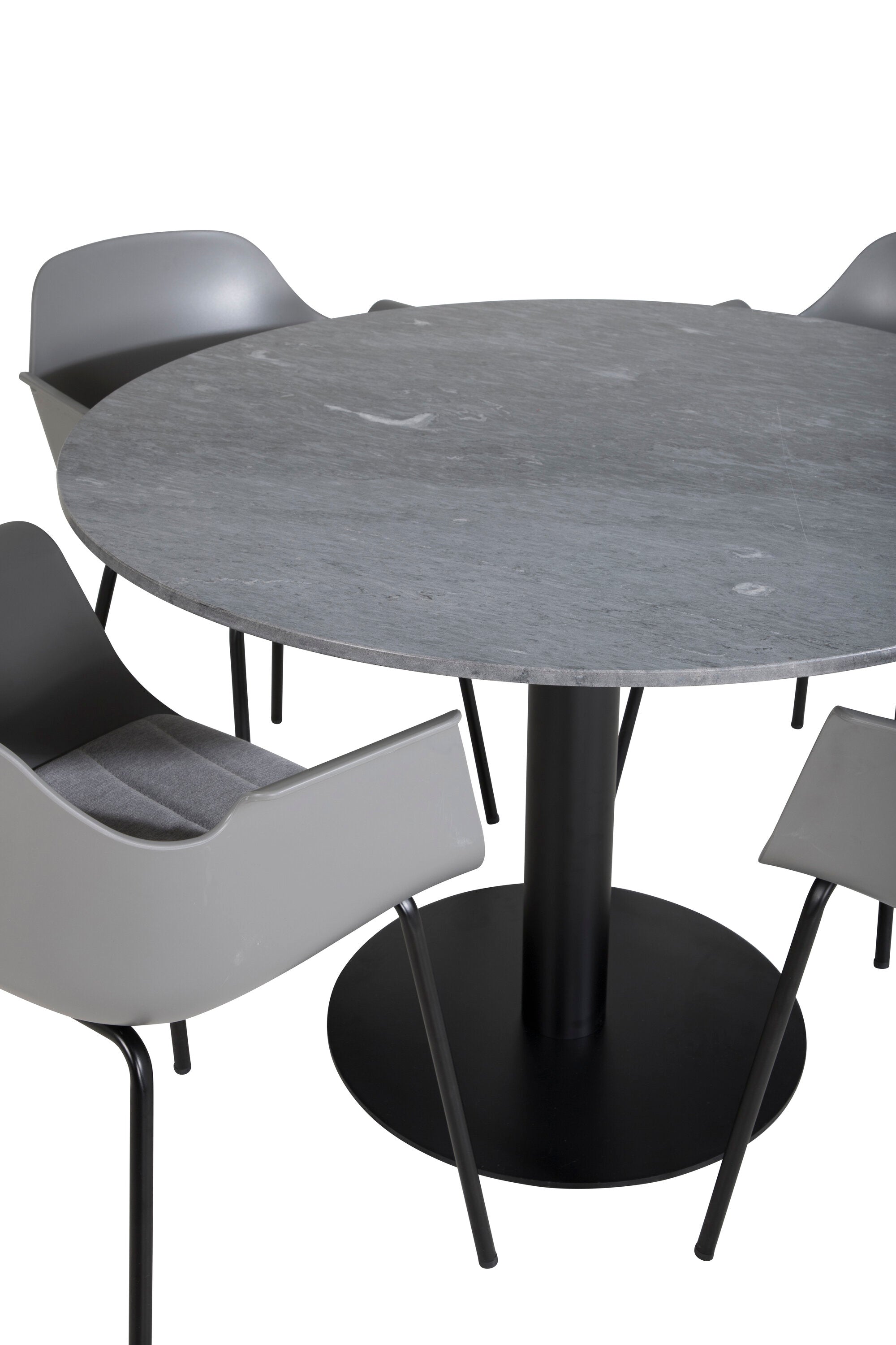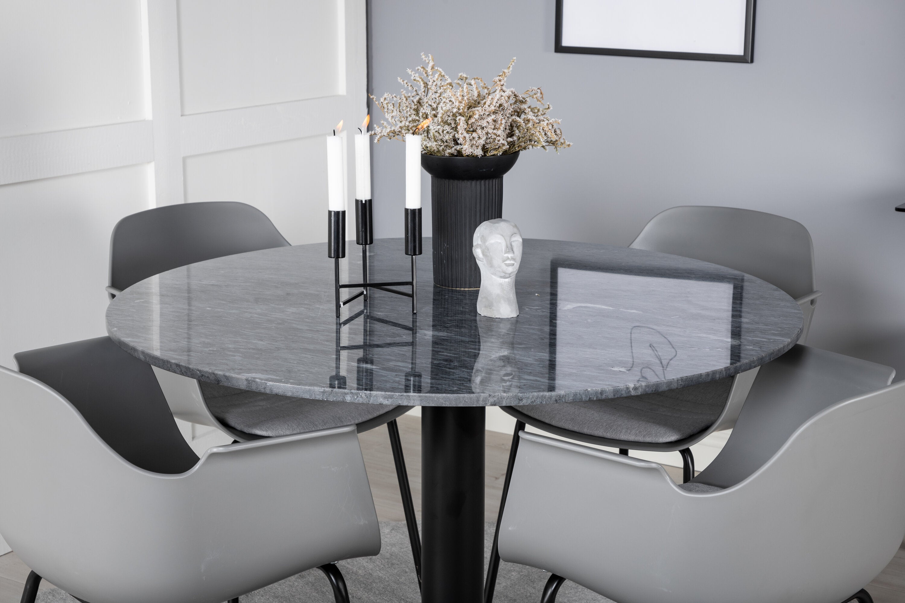Estelle kulatý jídelní stůl ø106 H75 - černá / černá + pohodlná plastová jídelní židle - černé nohy - šedý plast_4