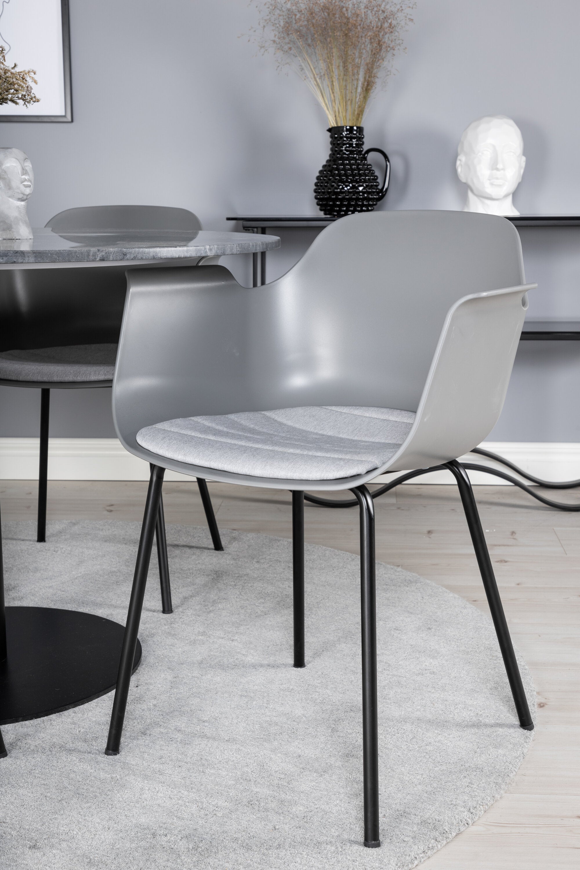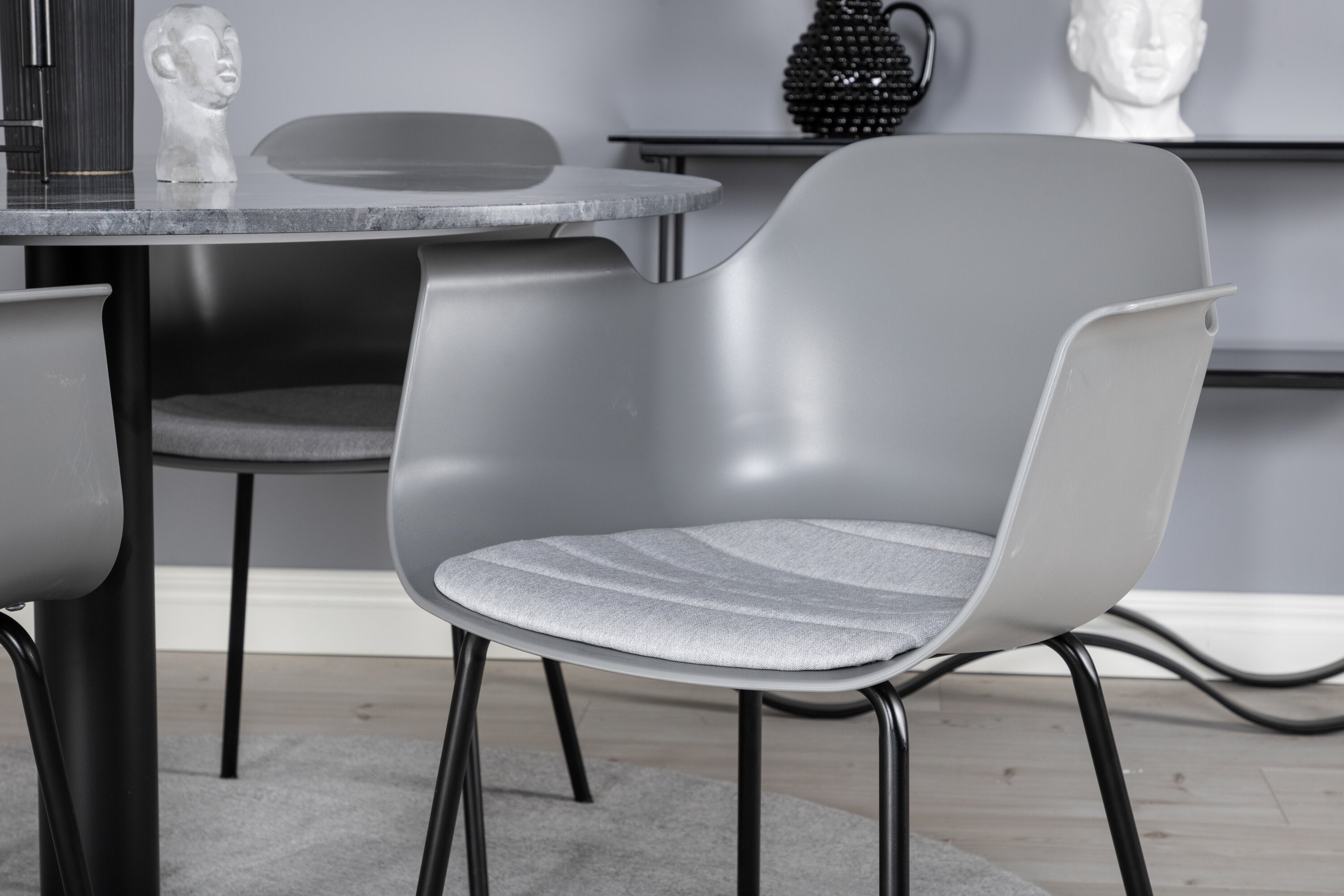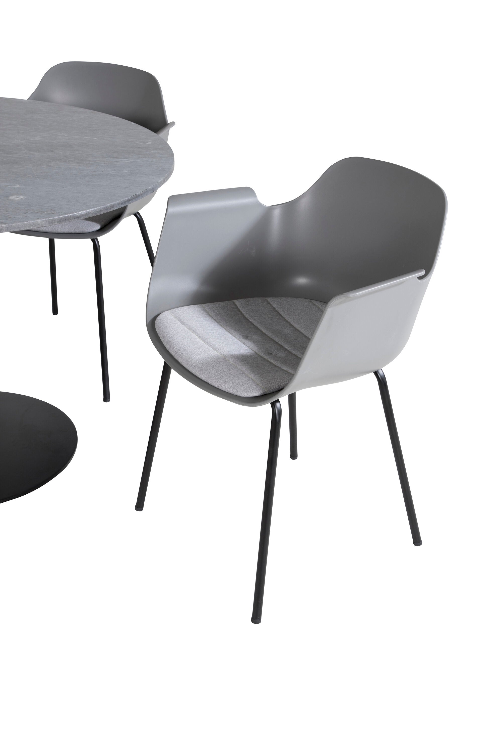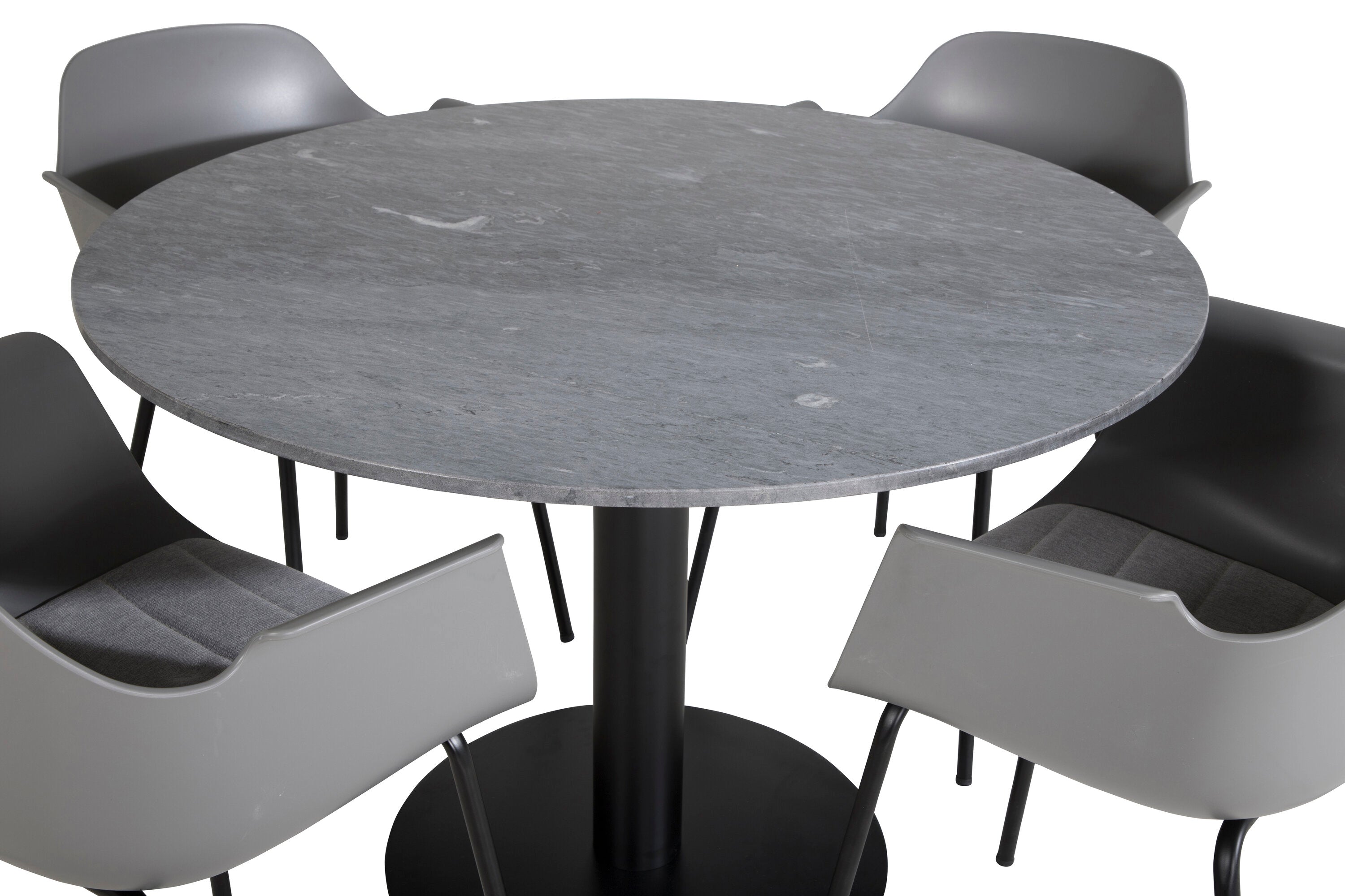 Estelle kulatý jídelní stůl ø106 H75 - černá / černá + pohodlná plastová jídelní židle - černé nohy - šedý plast_4