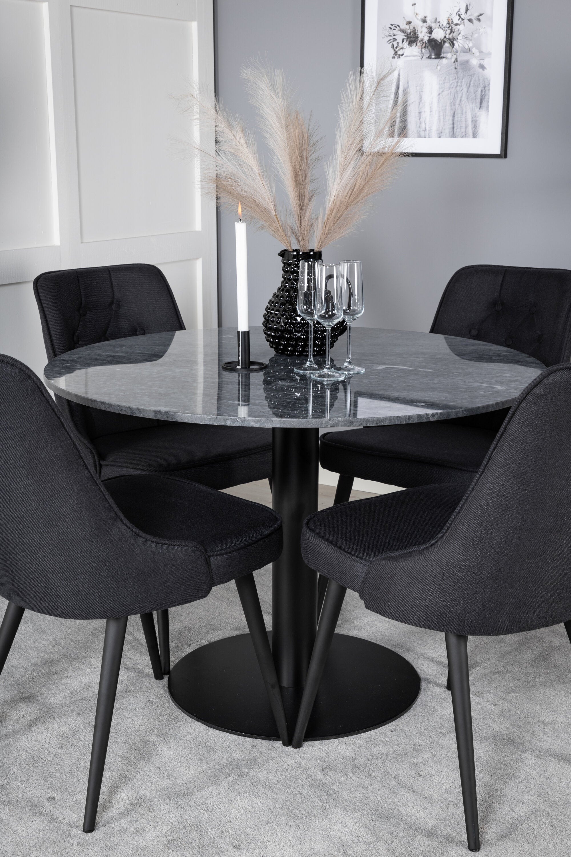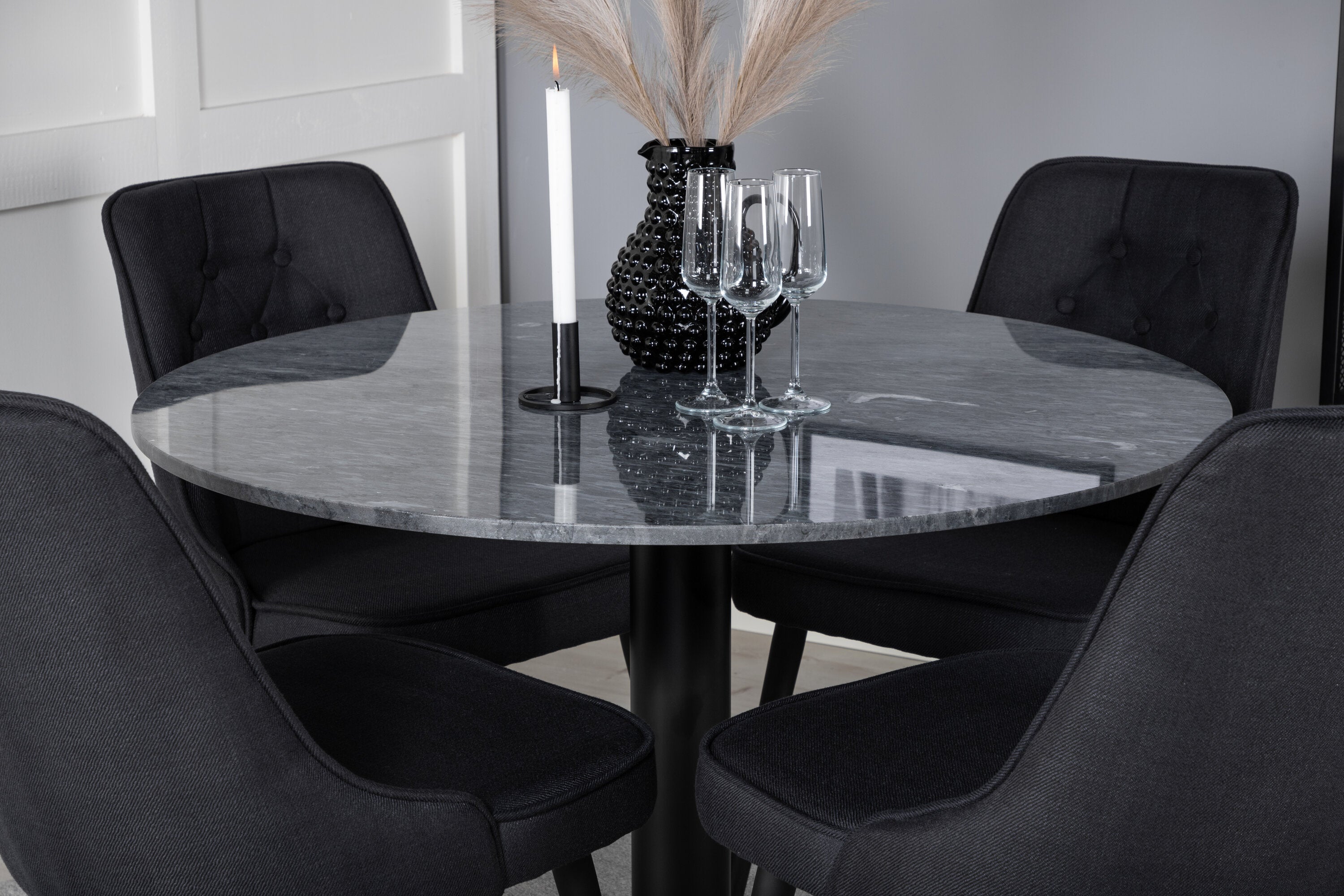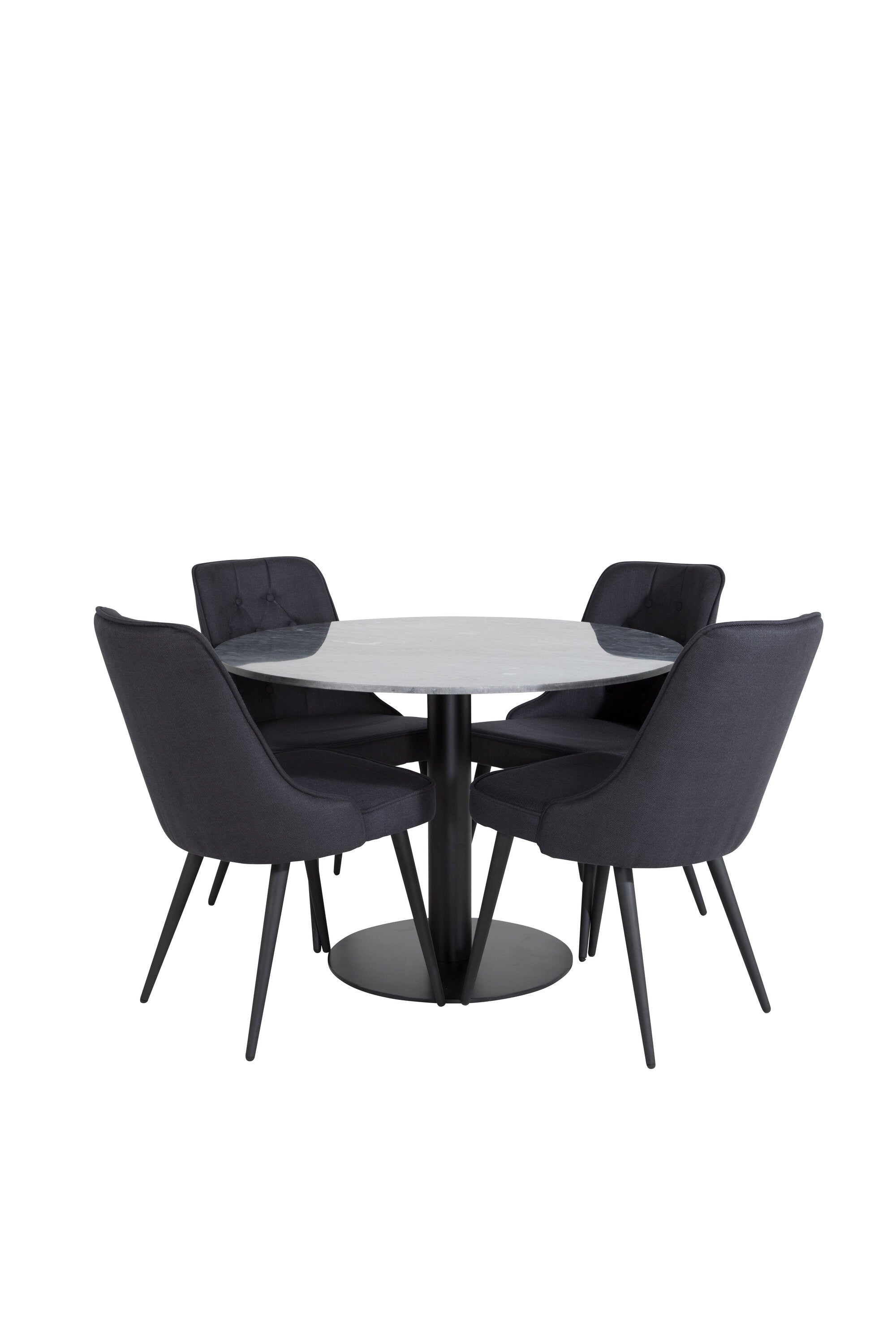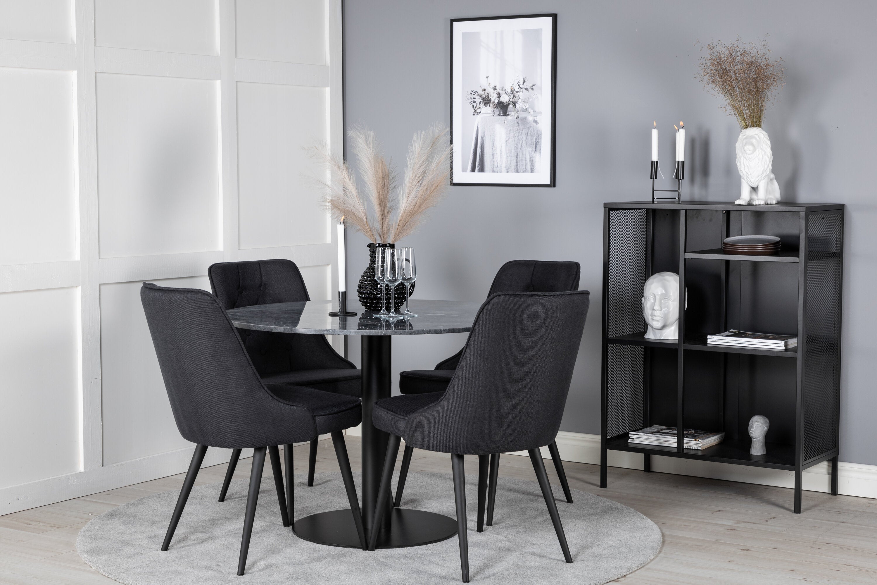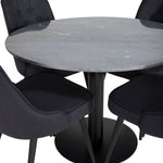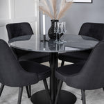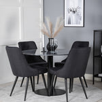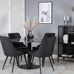 Estelle kulatý jídelní stůl ø106 H75 - černá / černá + sametová luxusní jídelní židle - černé nohy - černá látka_4