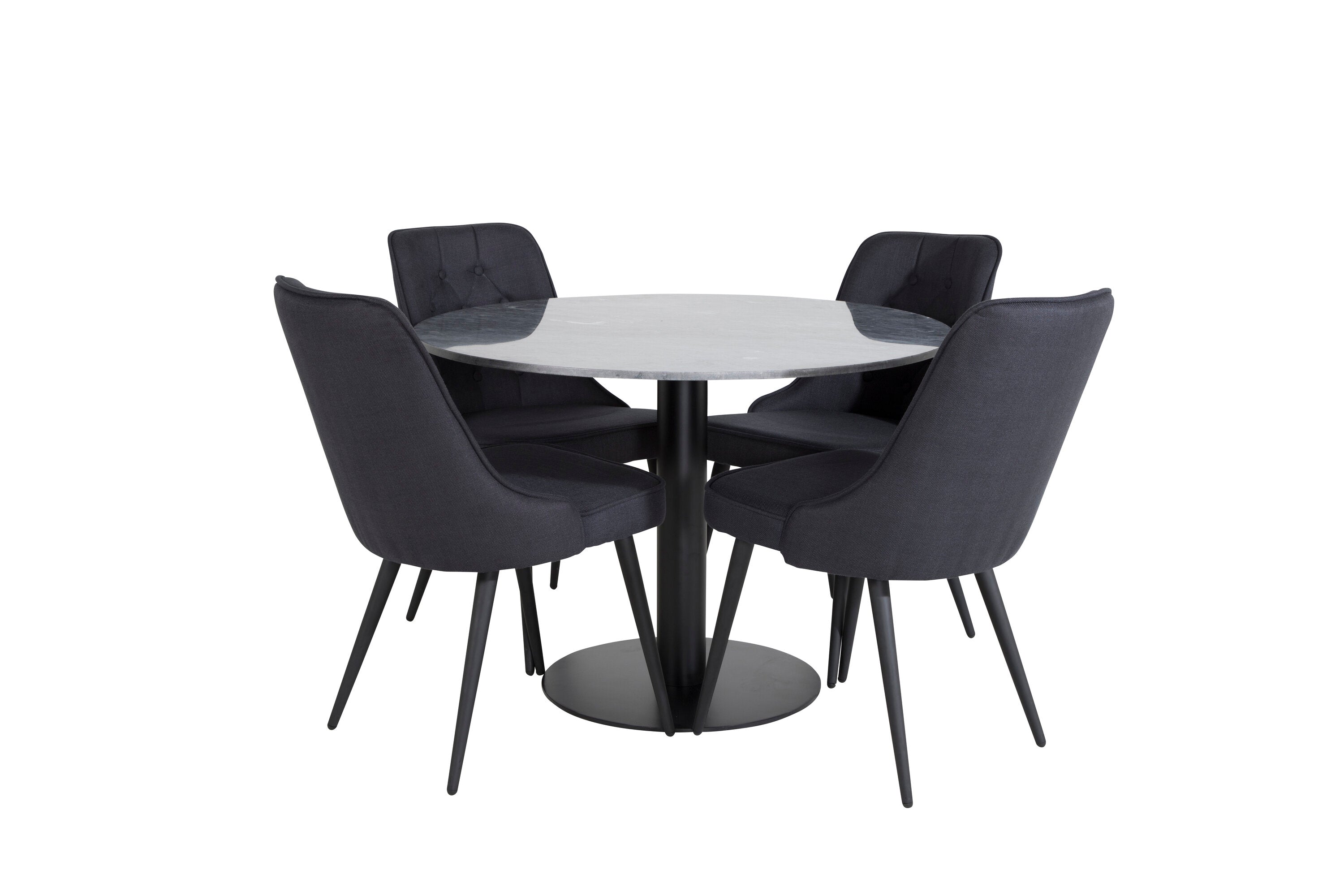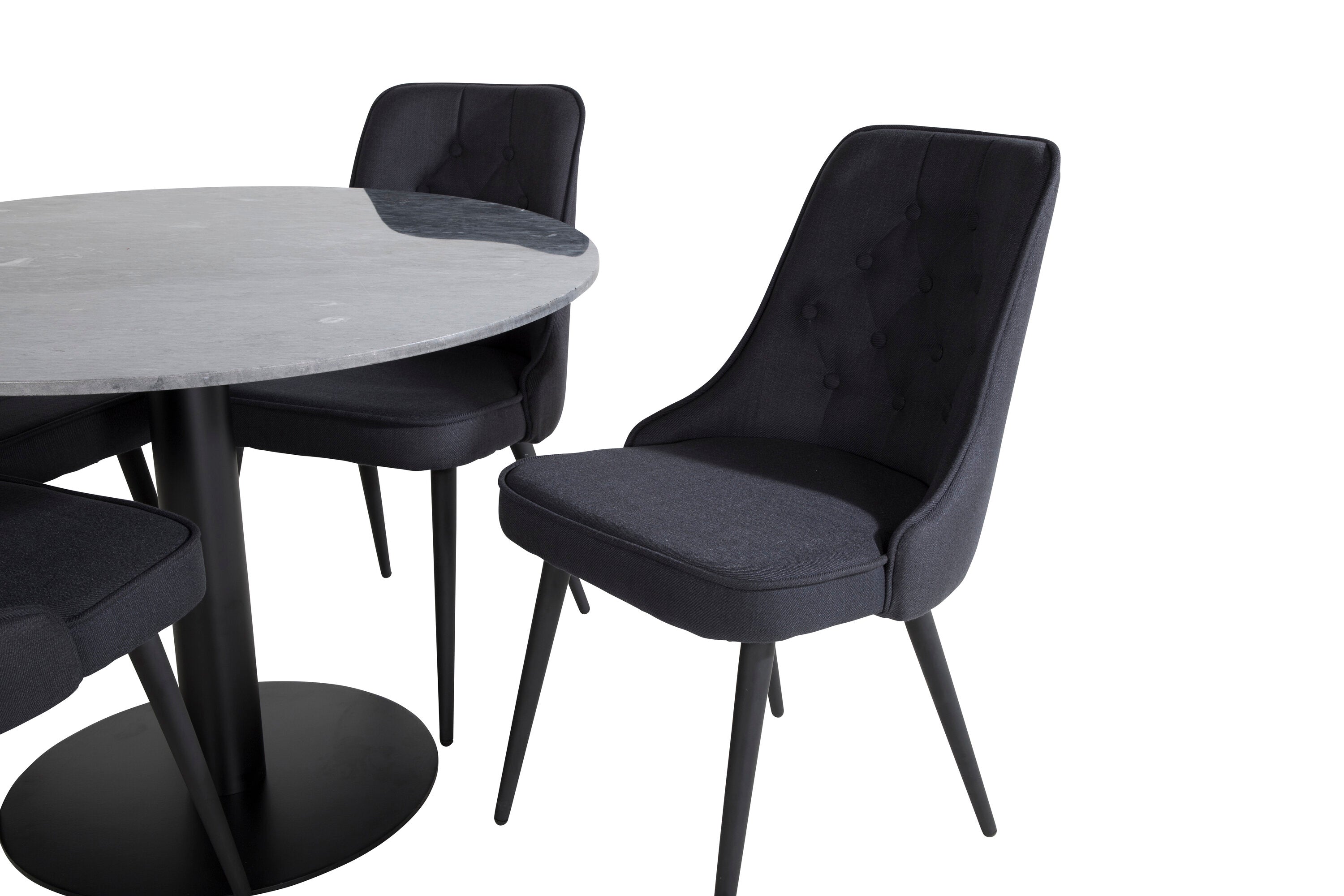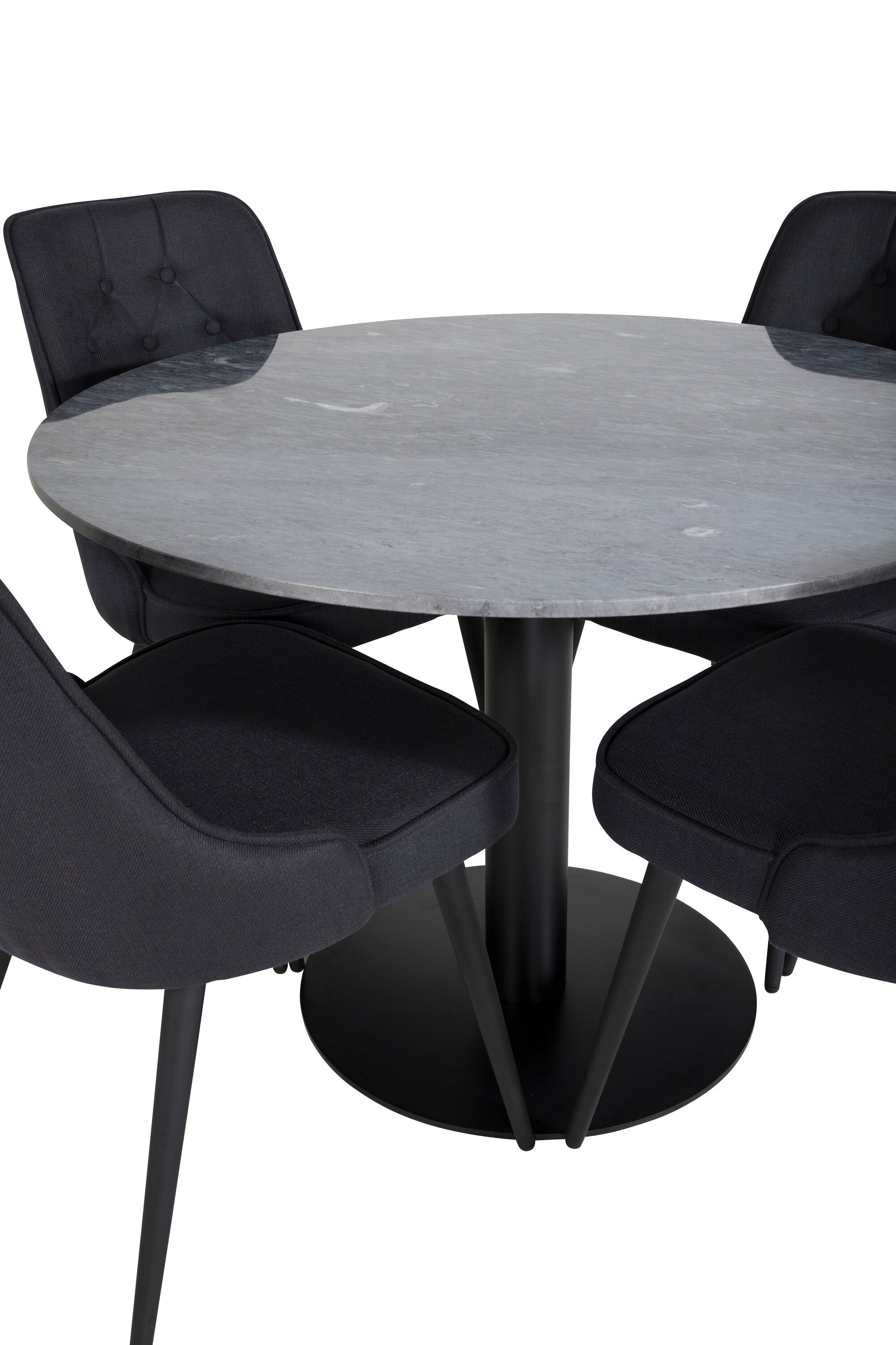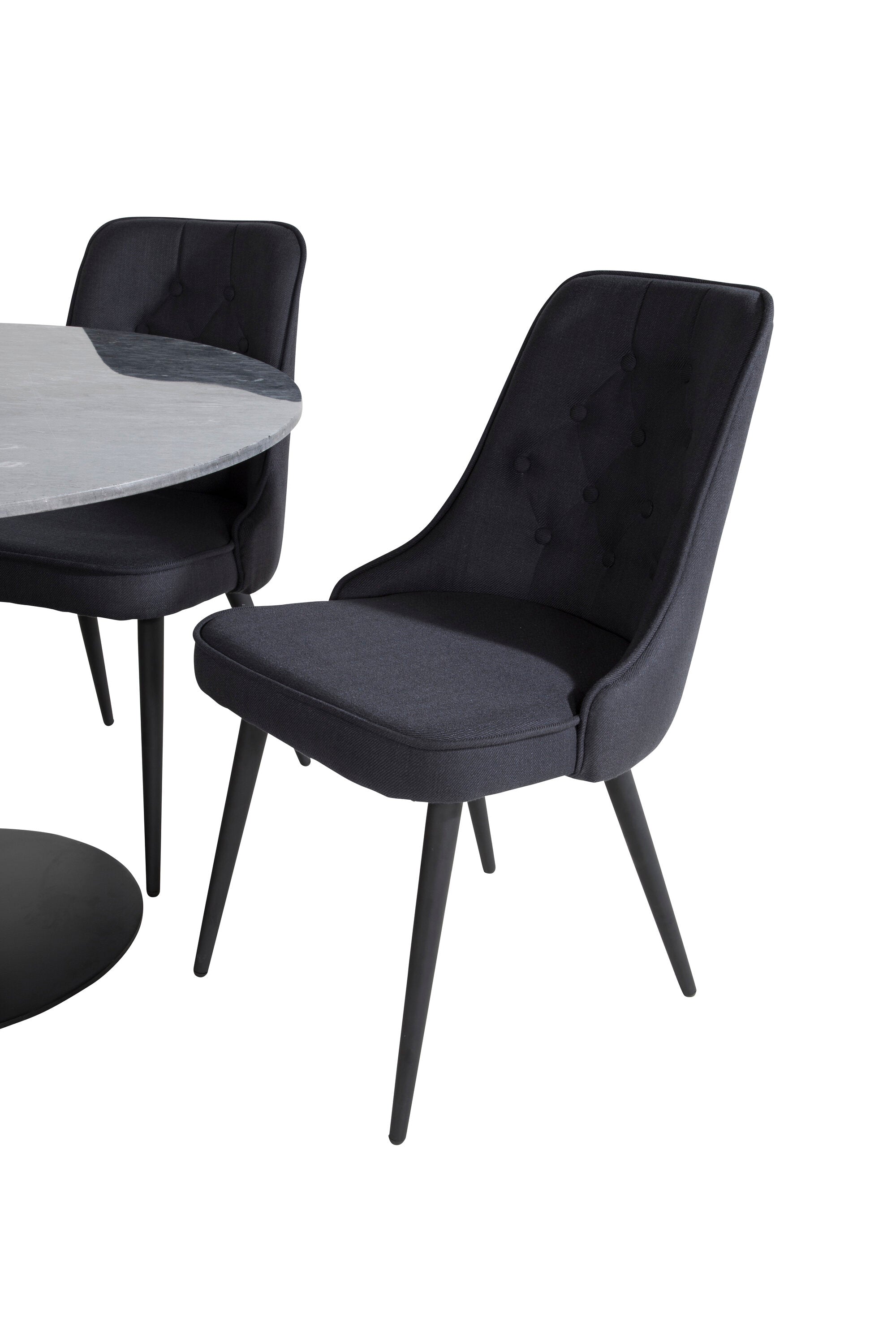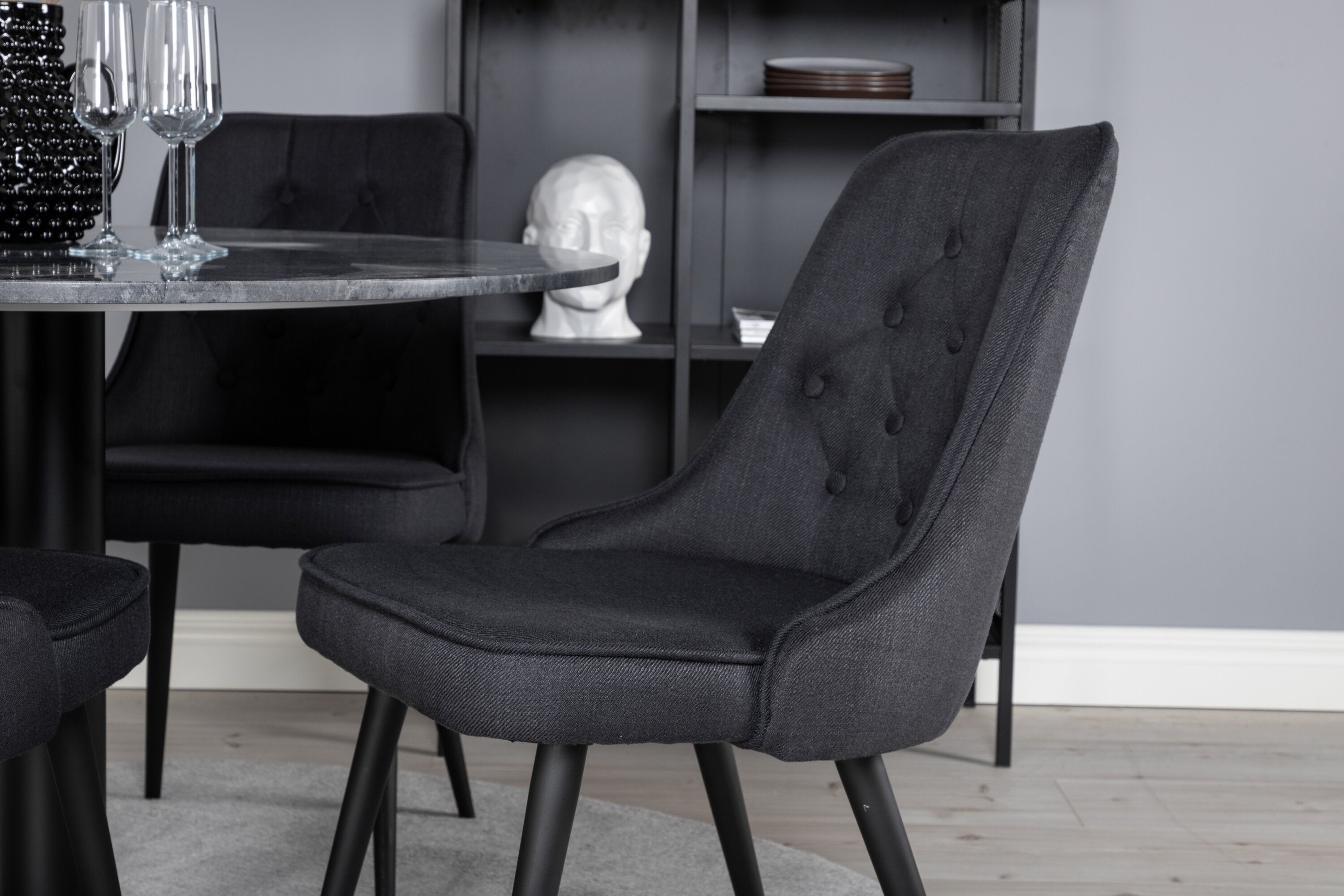 Estelle kulatý jídelní stůl ø106 H75 - černá / černá + sametová luxusní jídelní židle - černé nohy - černá látka_4