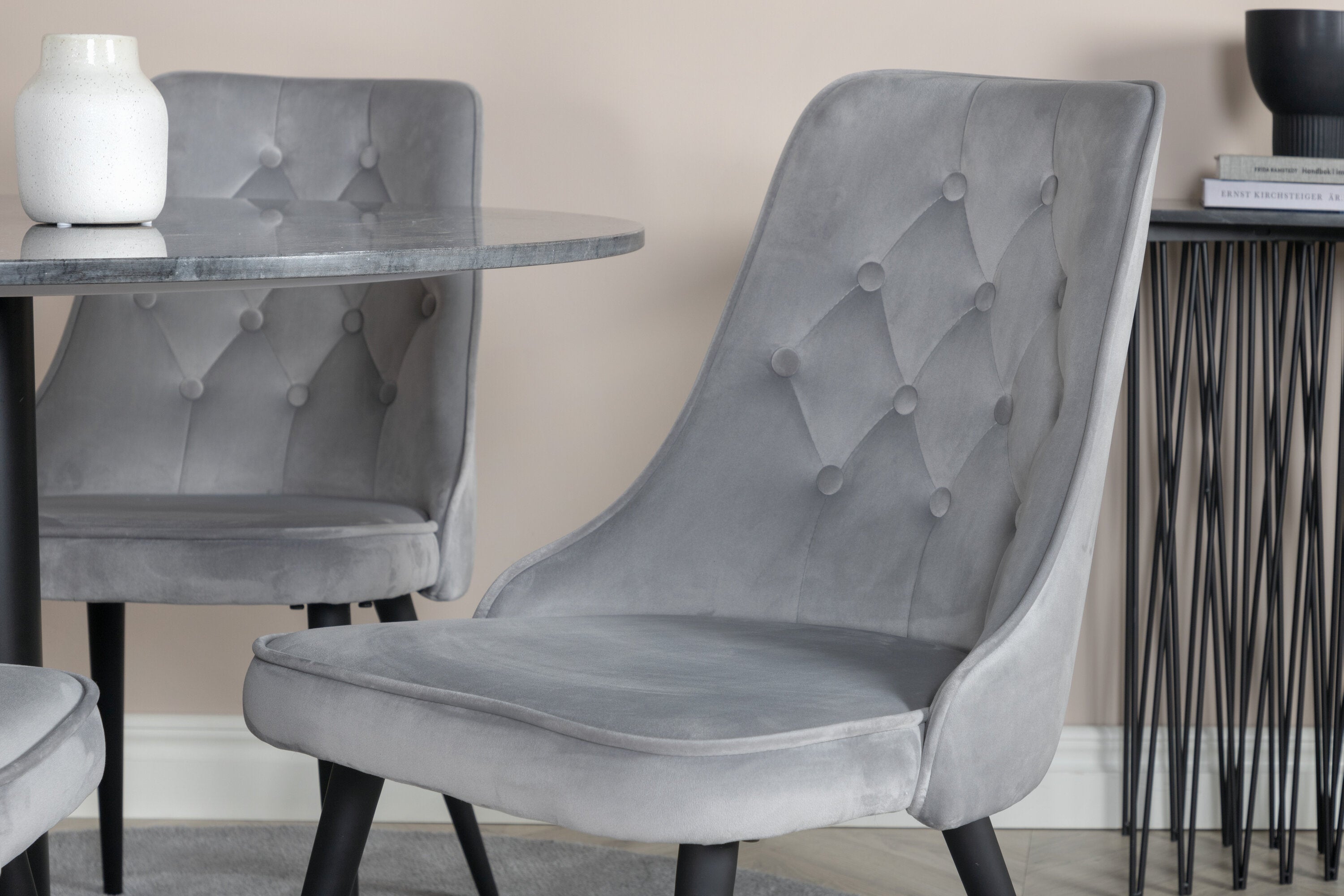 Estelle runt Matbord - Svart / Svart marmor - ø106*H75+Velvet Deluxe Jídelní Chai