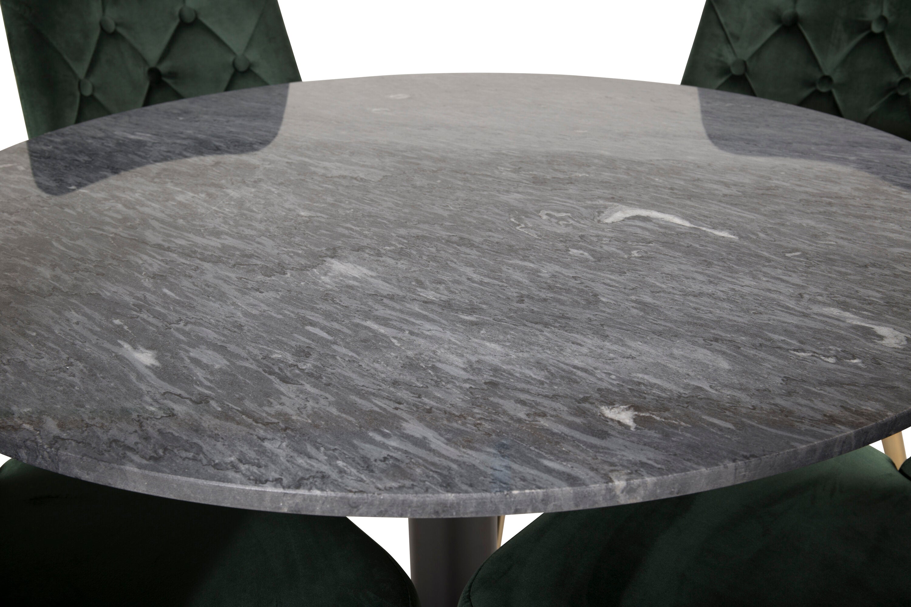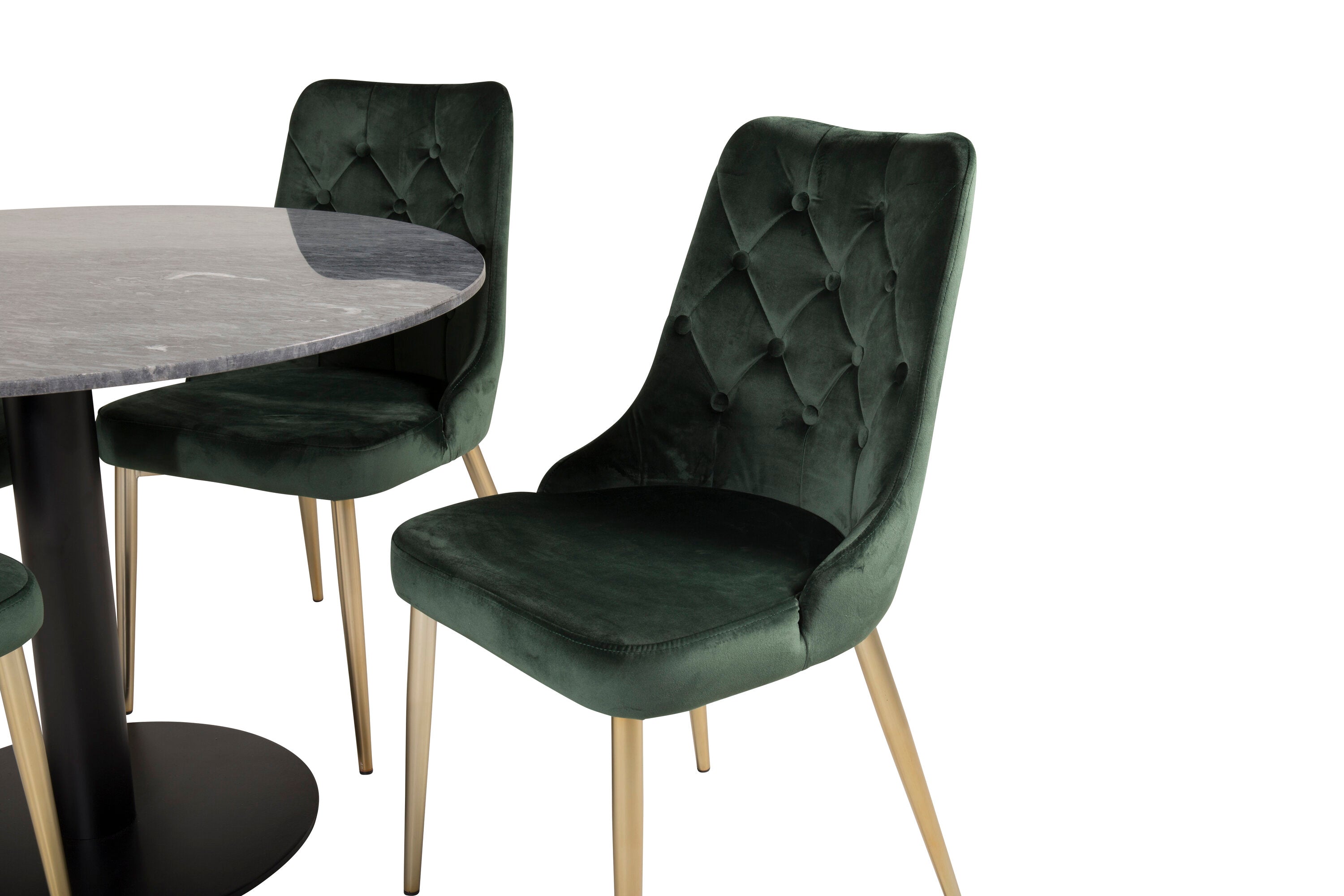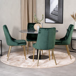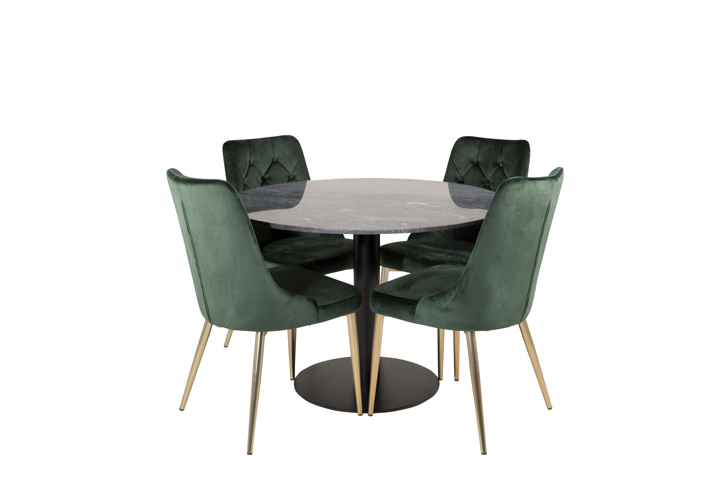 Estelle runt Matbord - Svart / Svart marmor - ø106*H75+Velvet Lyx Matstol - Matt Mässing / Mossgrön Sammet_4