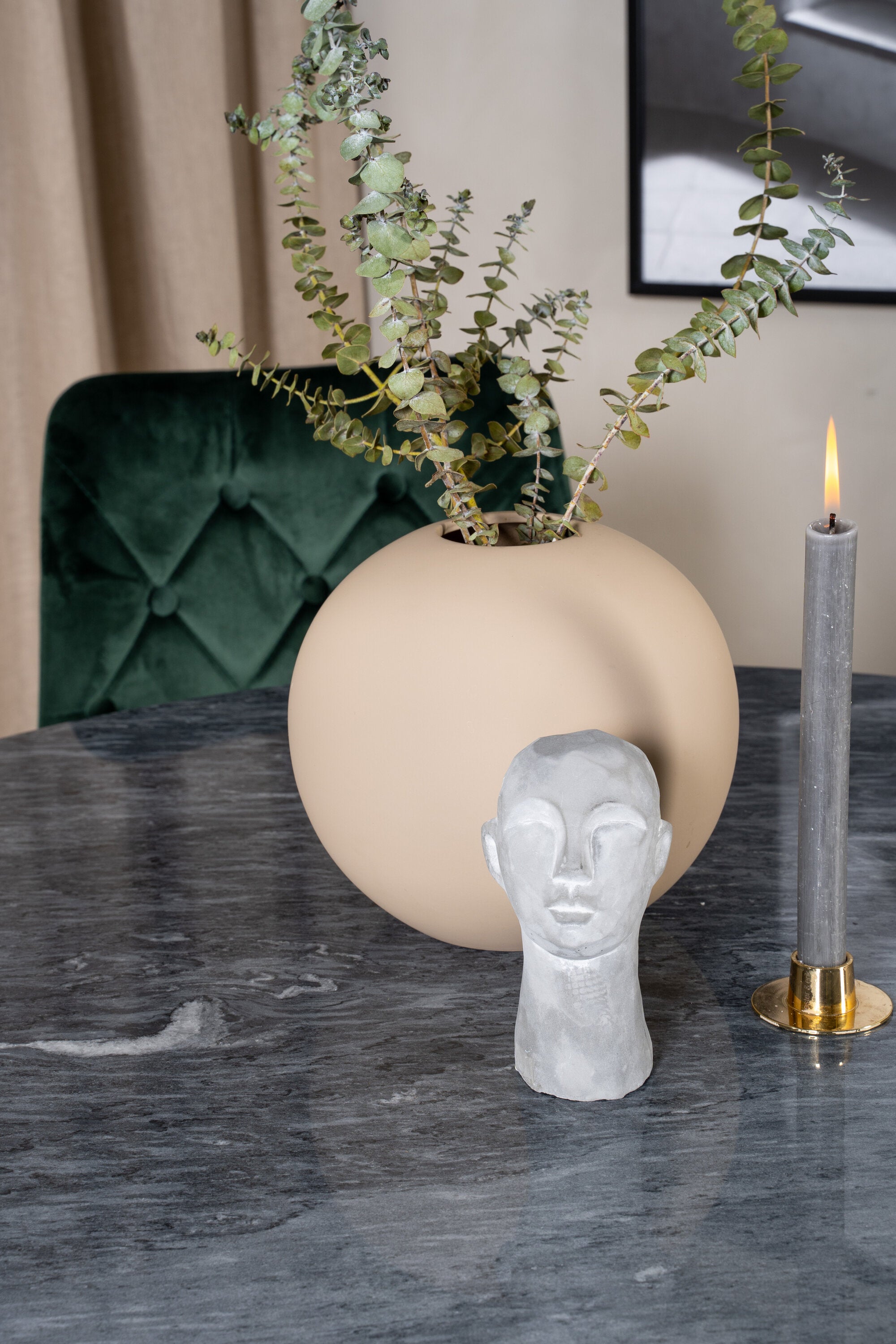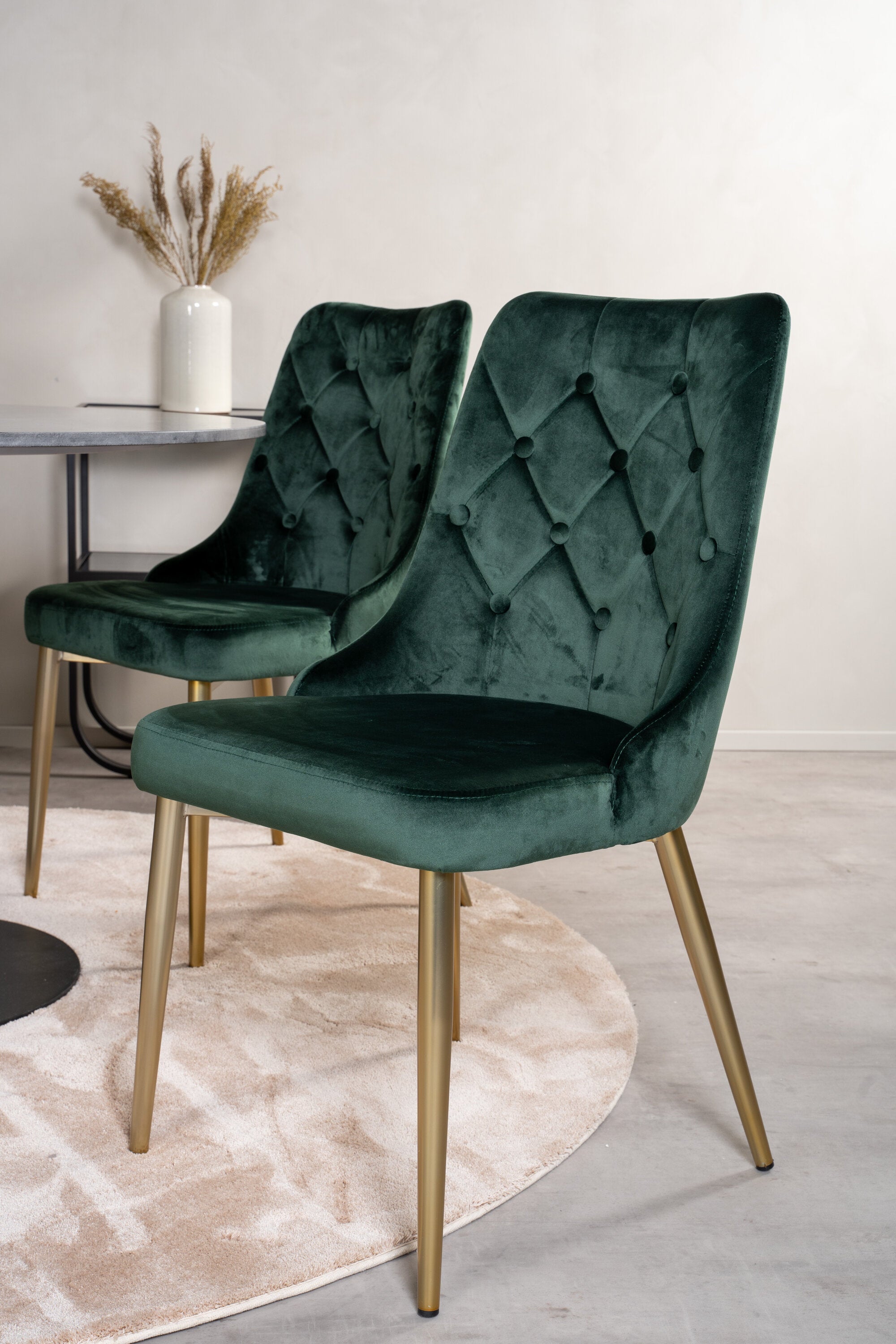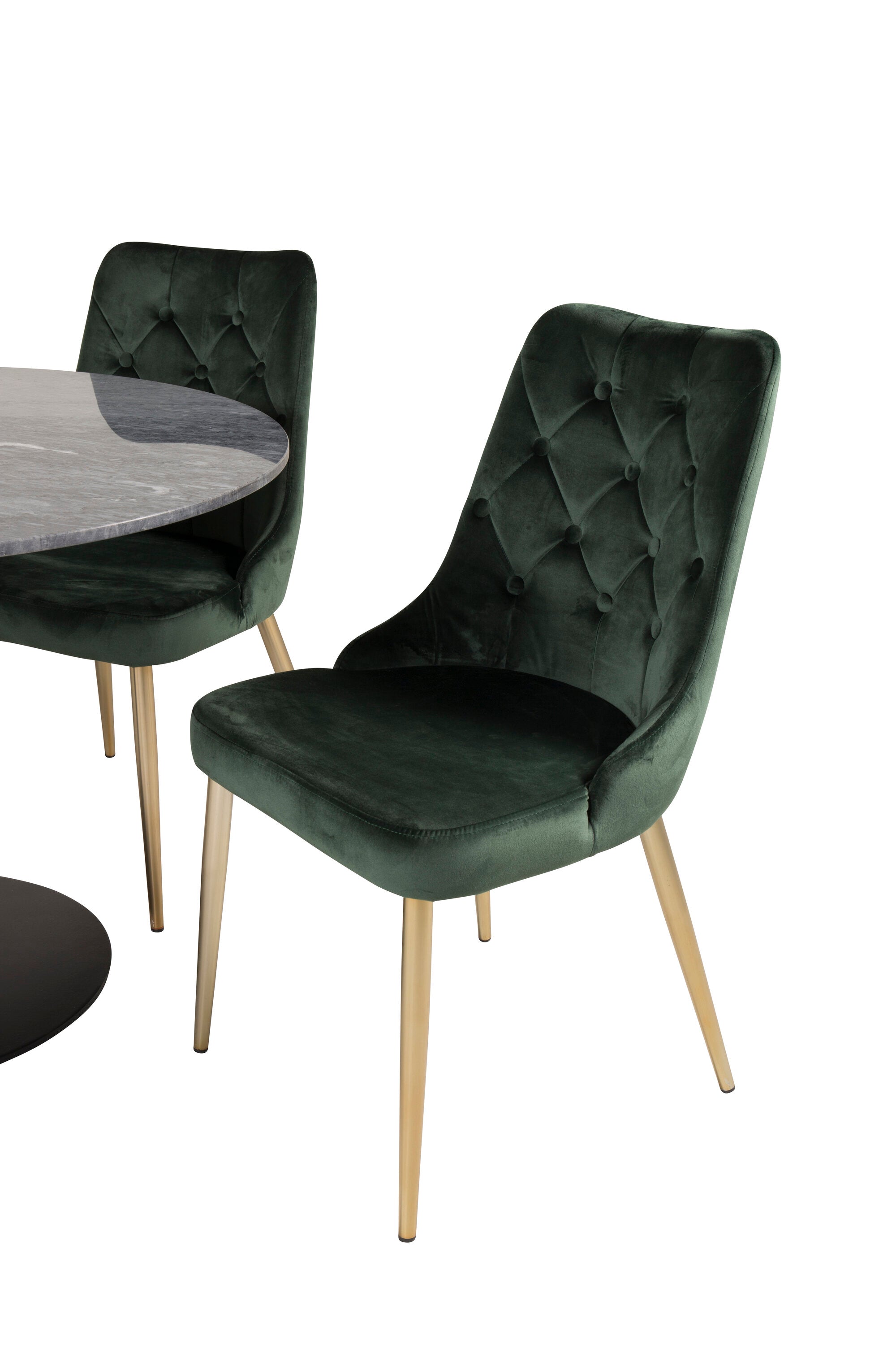Estelle runt Matbord - Svart / Svart marmor - ø106*H75+Velvet Lyx Matstol - Matt Mässing / Mossgrön Sammet_4