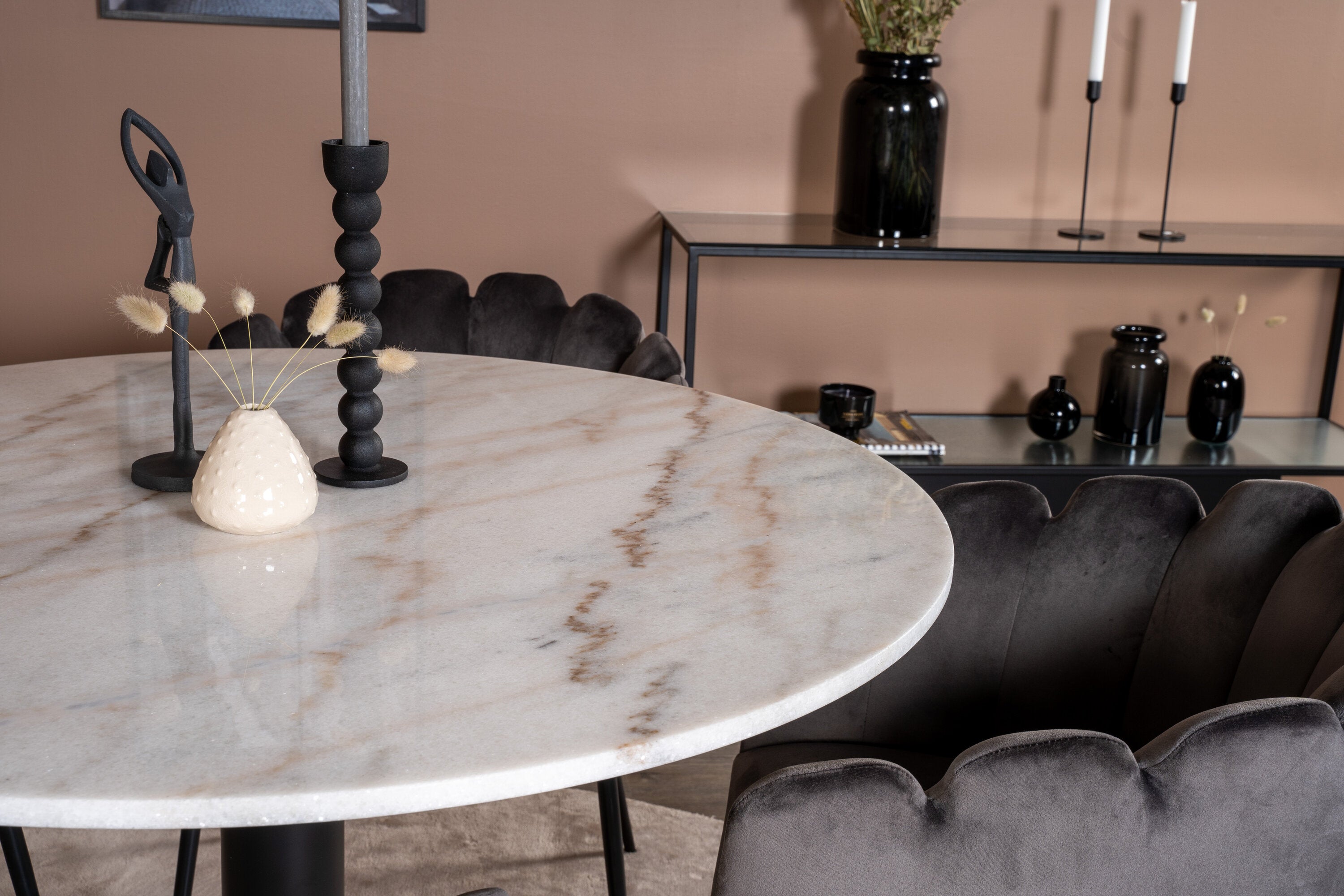 Estelle runt Matbord - Svart / Vit marmor - ø106*H75+Limhamn - Židle - Grey Velvet_4