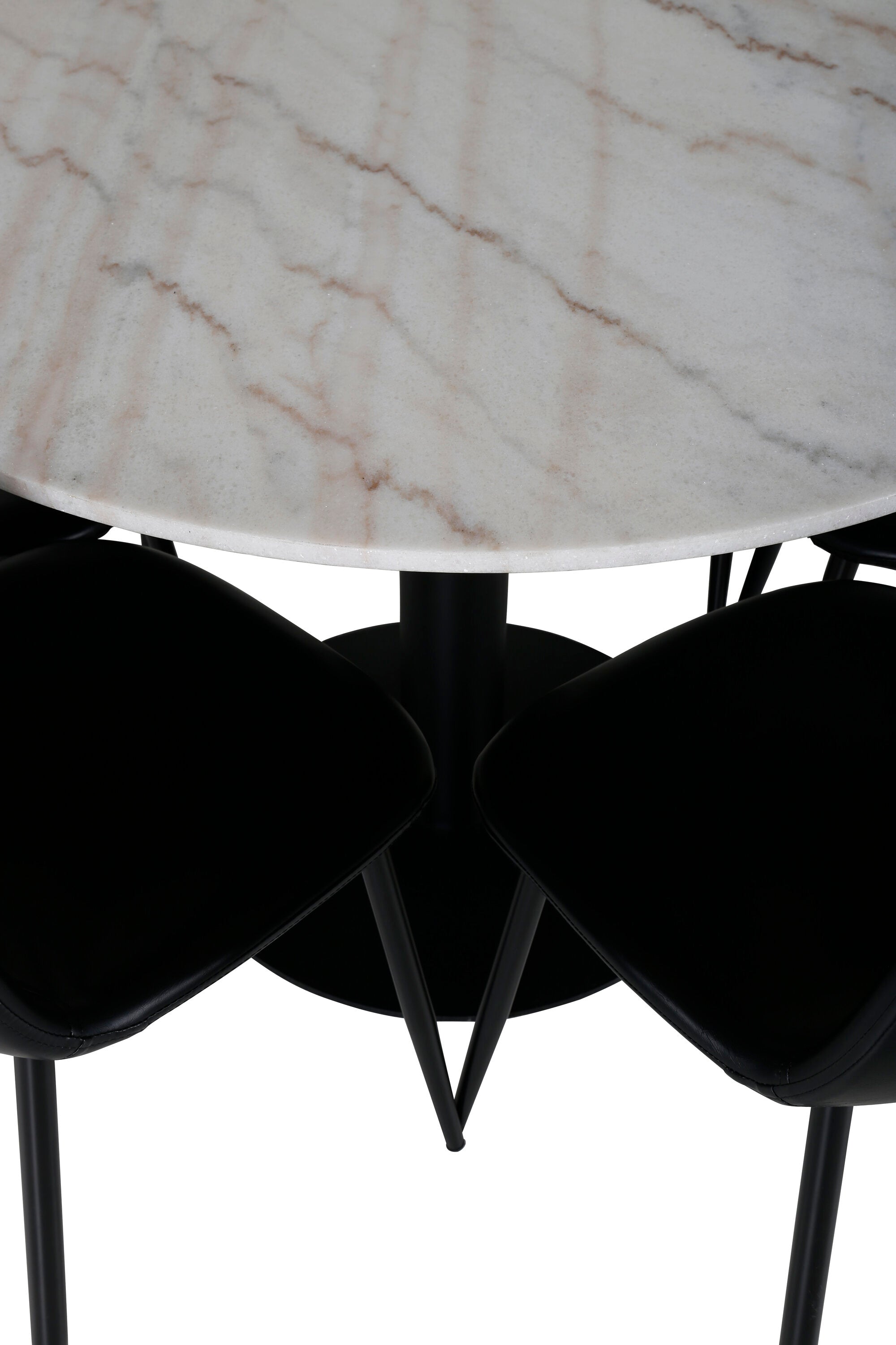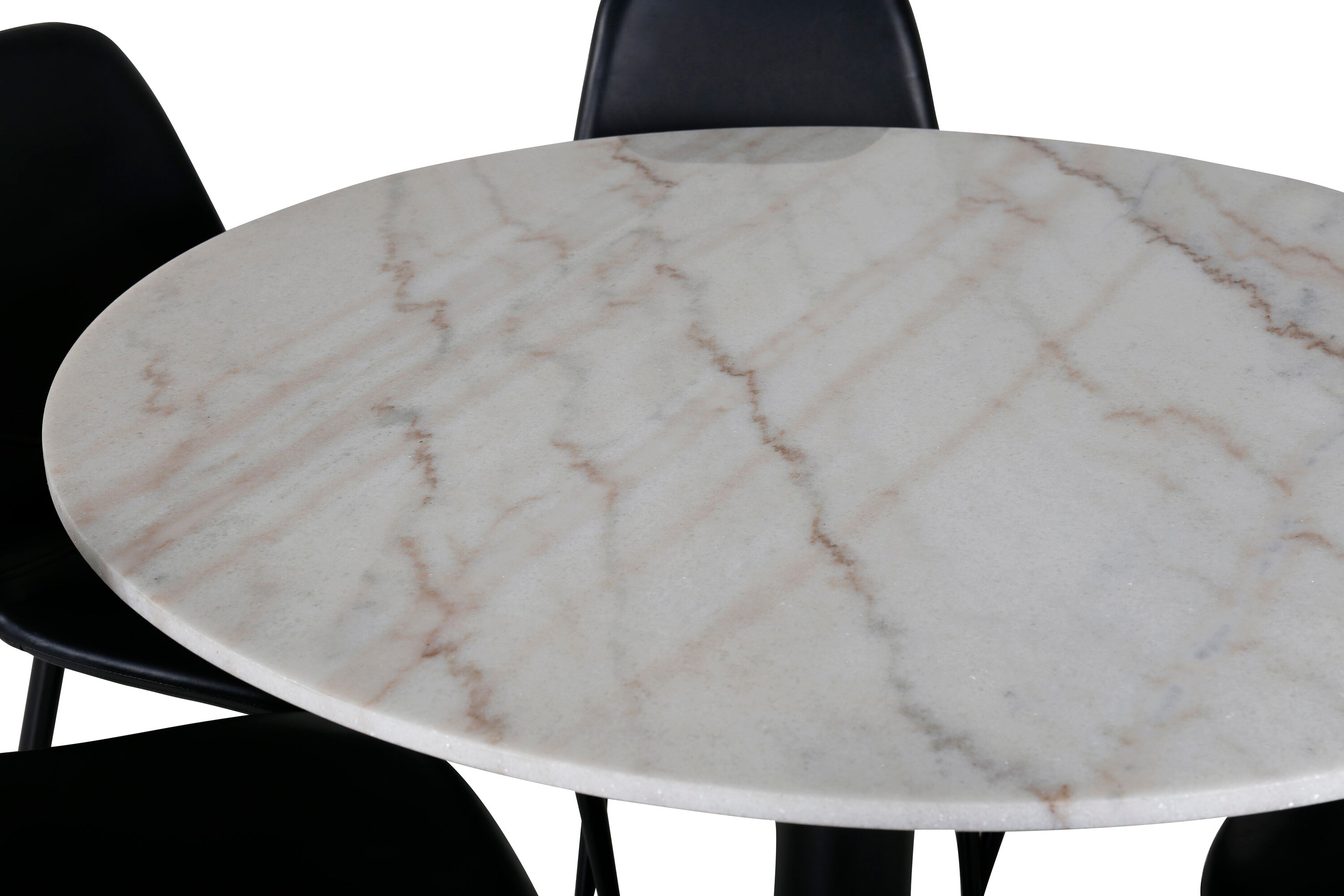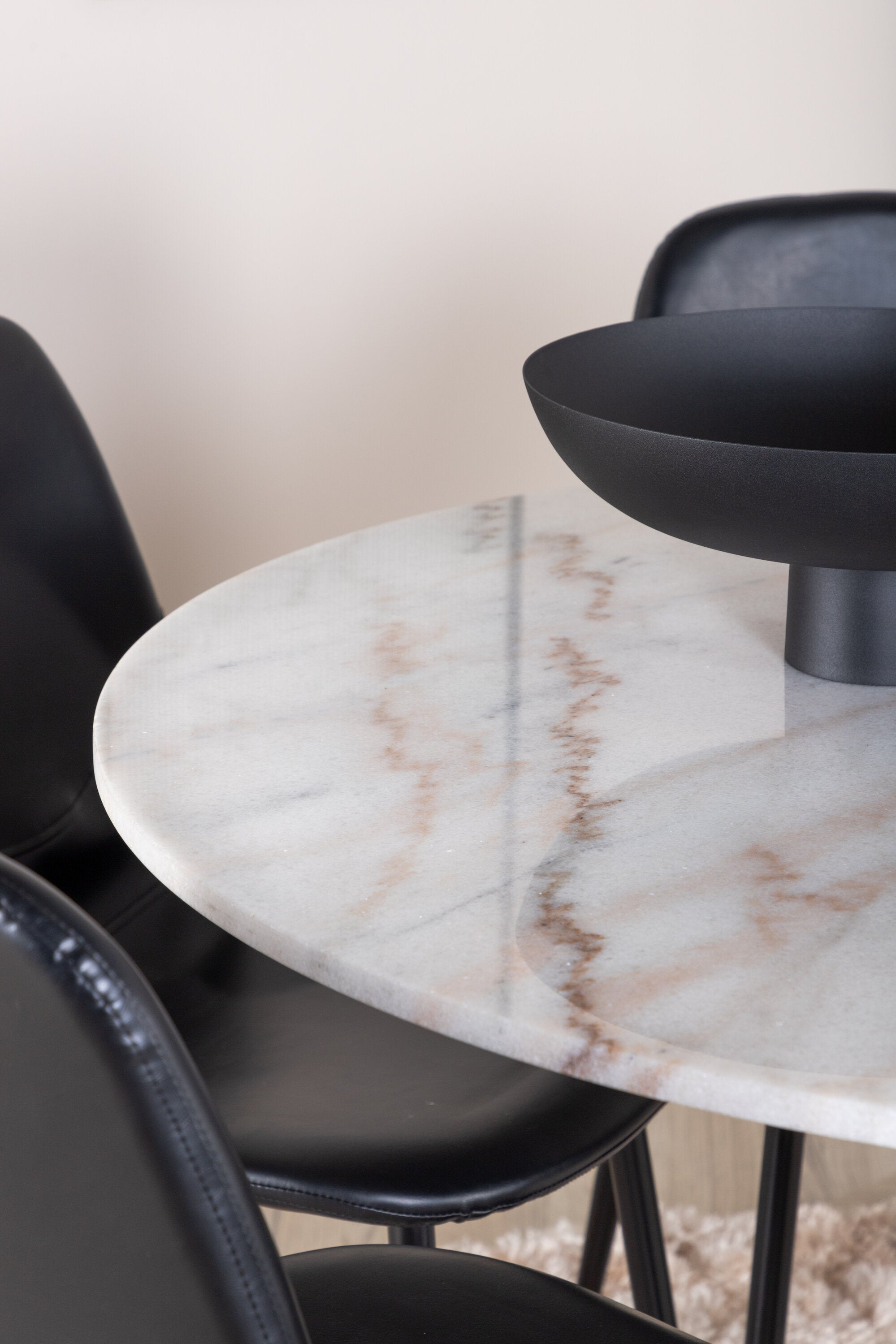 Estelle runt Matbord - Svart / Vit marmor - ø106*H75+Polar Matstol - Svart / Sva