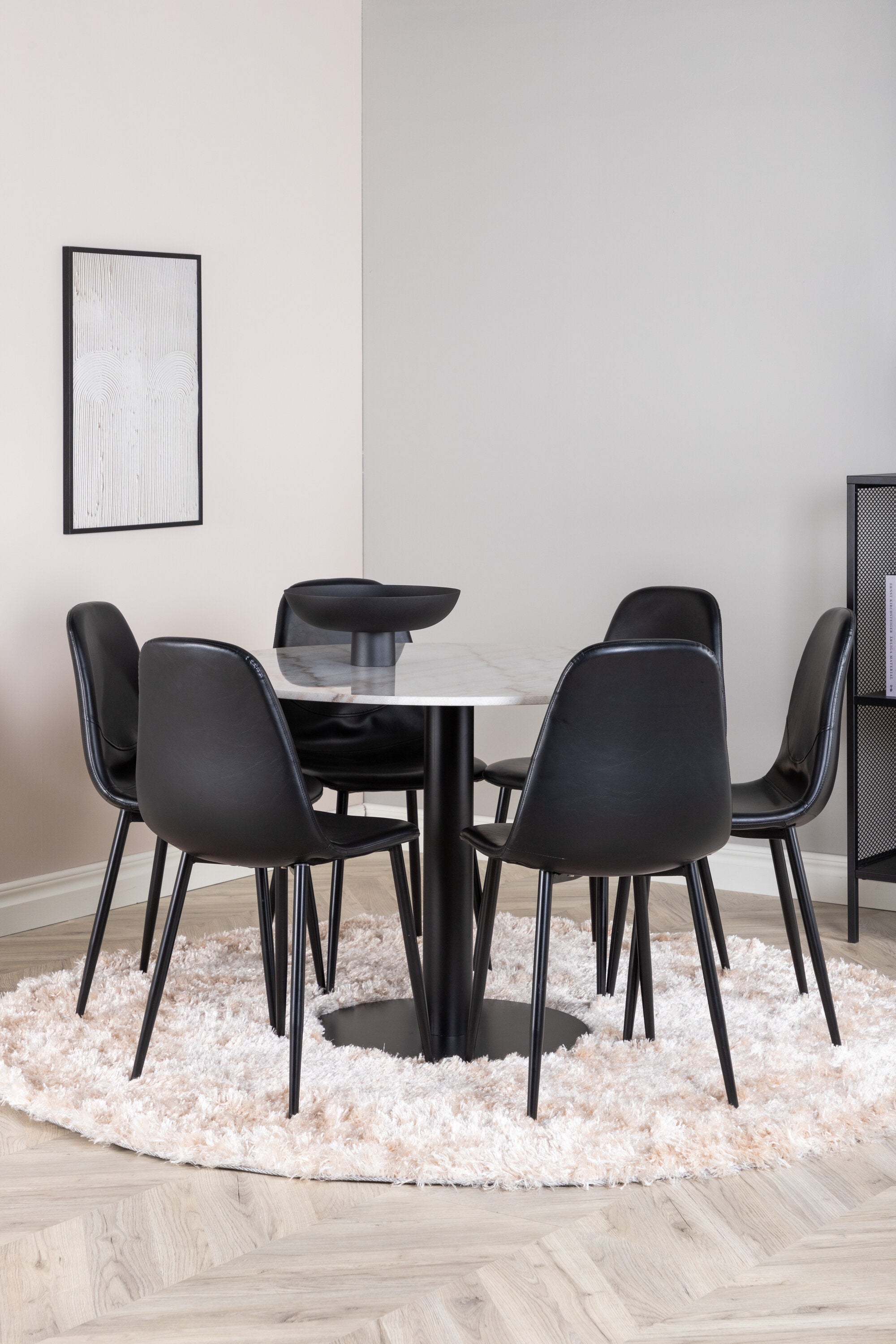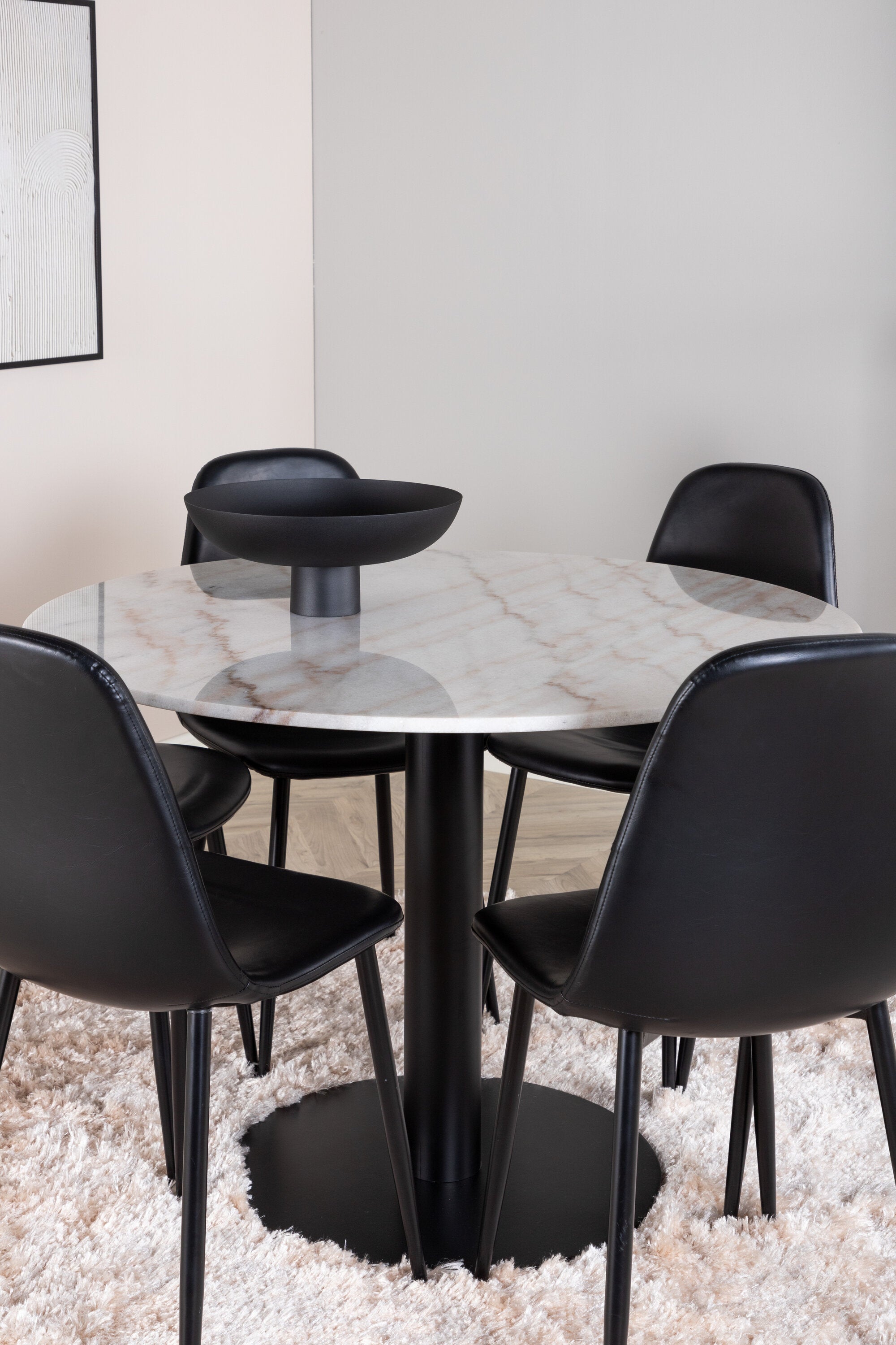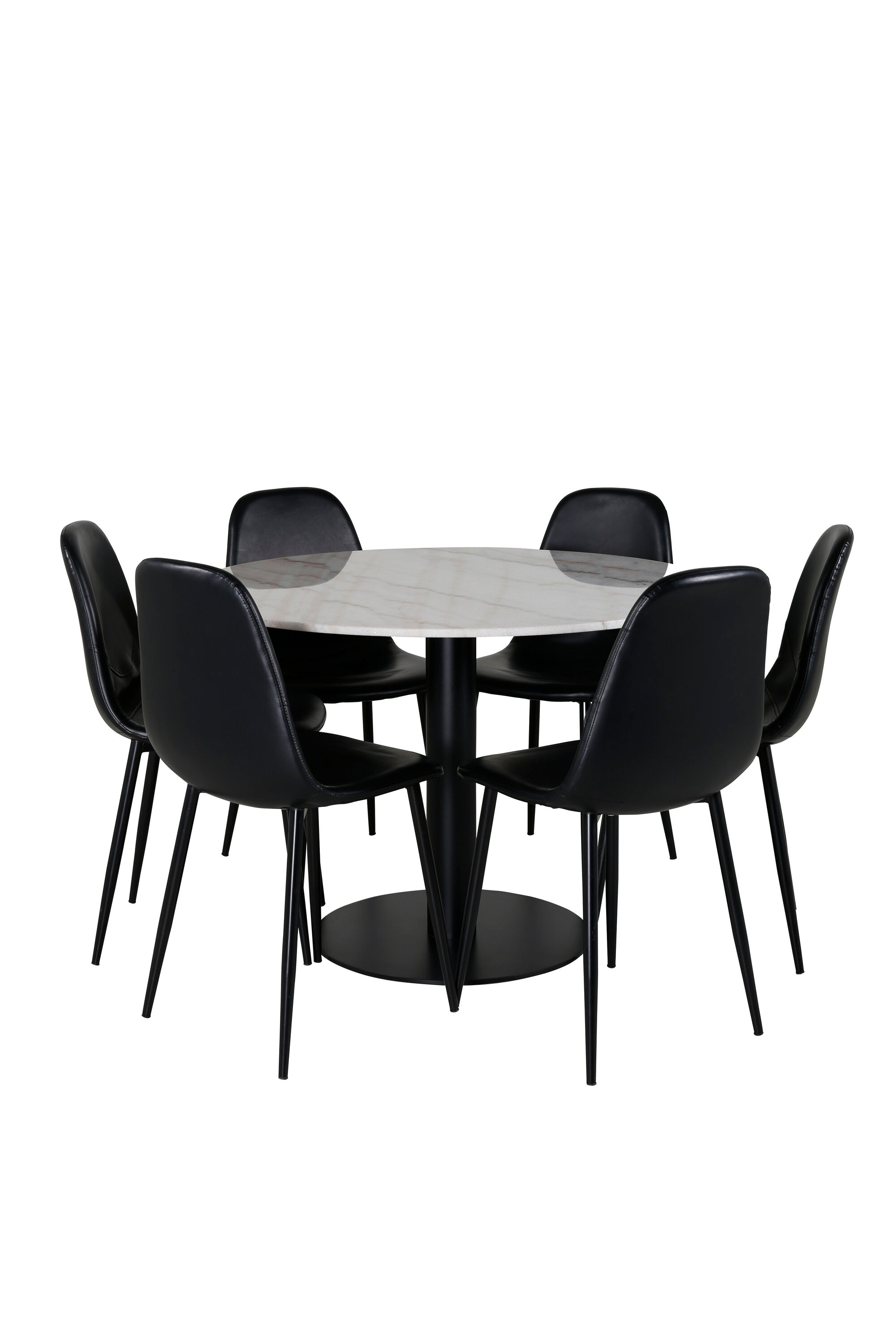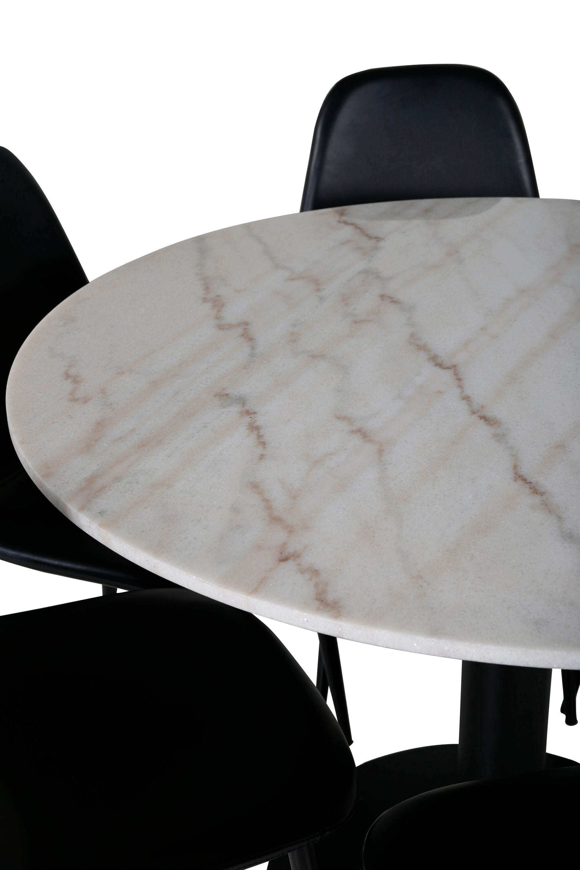 Estelle runt Matbord - Svart / Vit marmor - ø106*H75+Polar Matstol - Svart / Sva