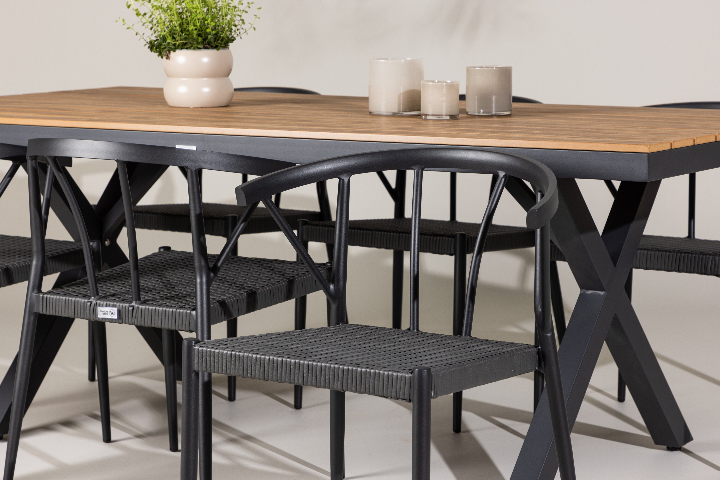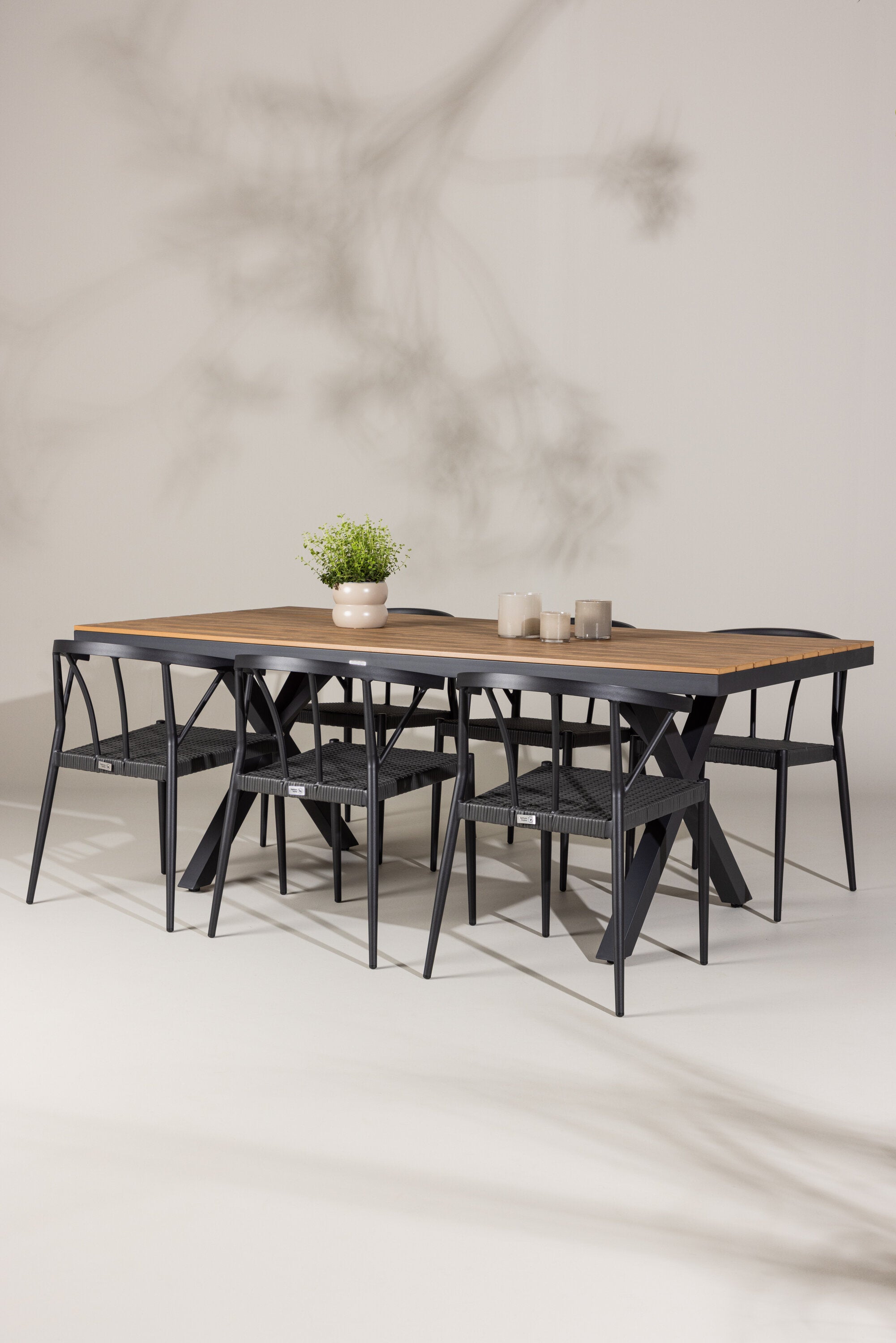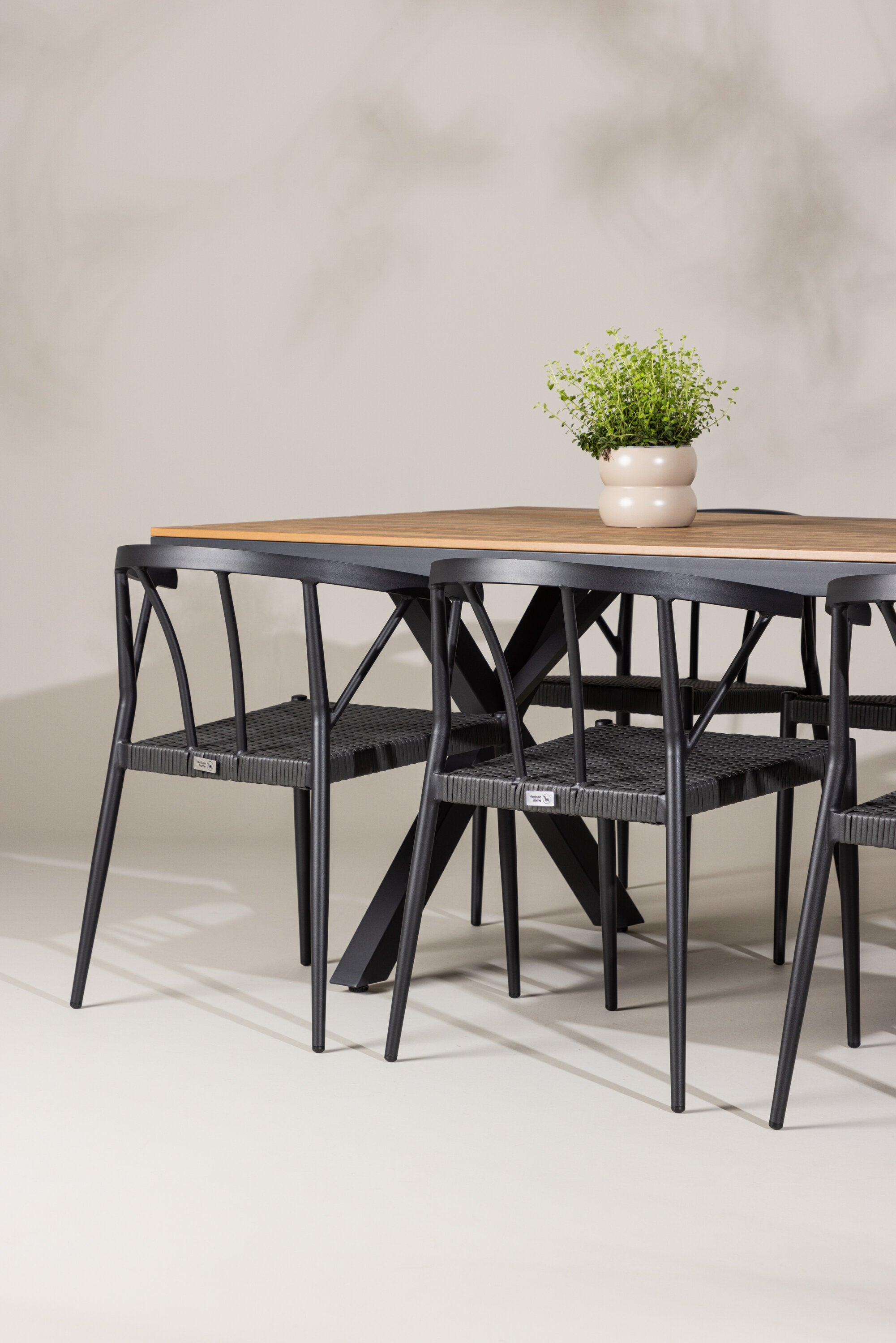 Moderní, neutrální a promyšleně navržená naše jídelní souprava Garcia a Stina je investicí do kvality a stylu pro váš venkovní životní styl. Zažijte luxus venkovního stolování s touto elegantně zpracovanou jídelní sadou, která vám poskytne dokonalé místo pro shromažďování a vytváření vzpomínek pod širým nebem.