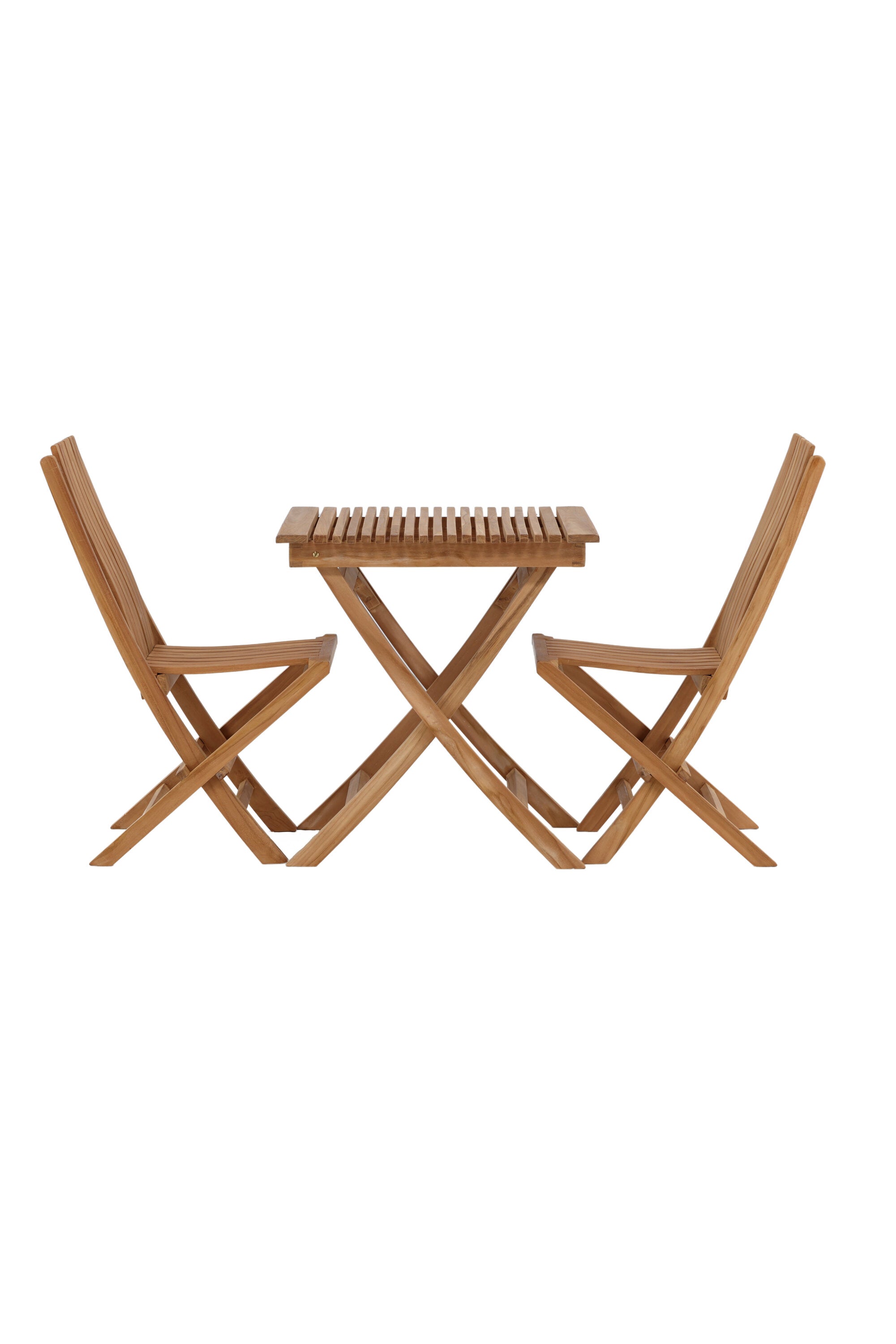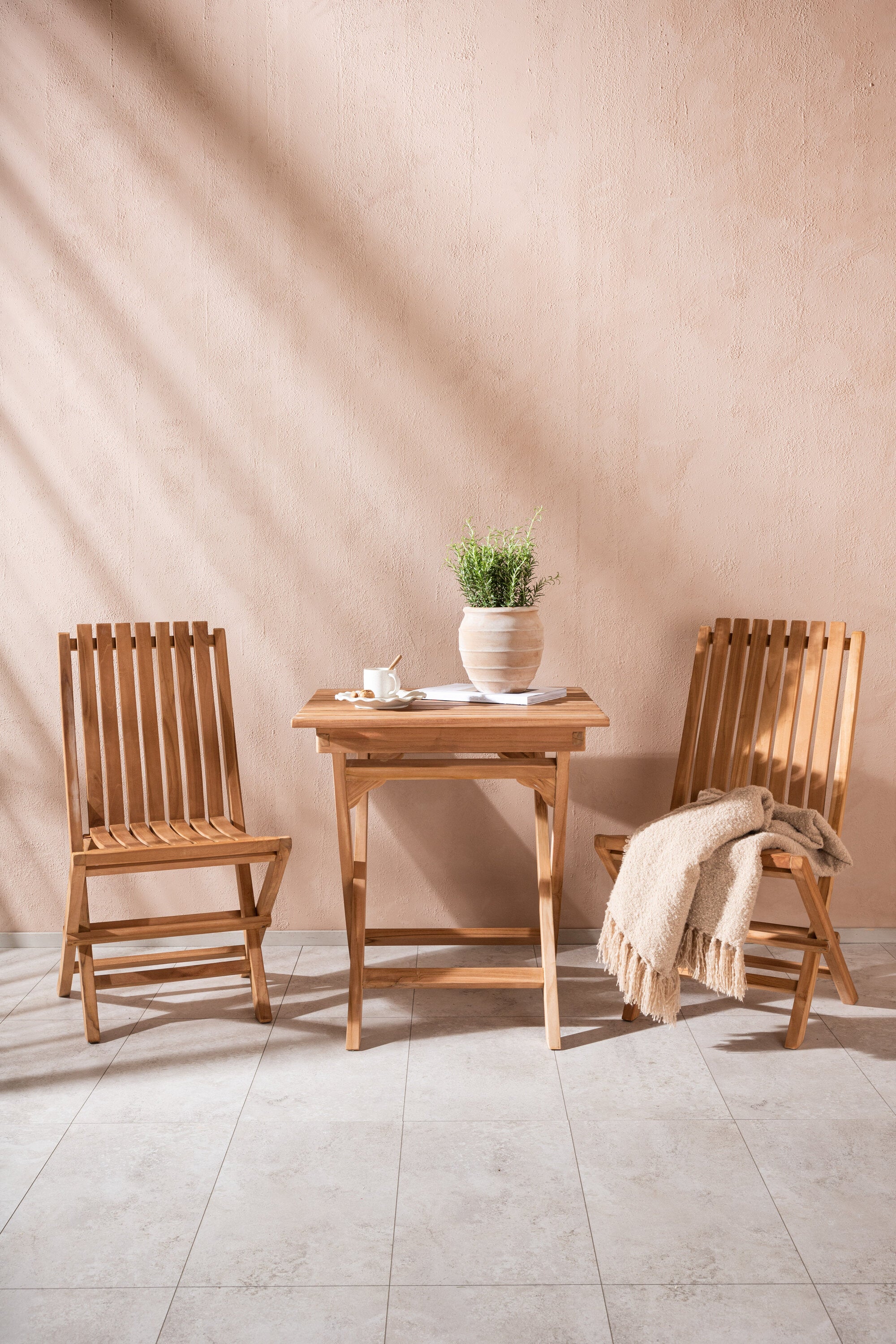 Ghana - Skládací stůl- Natural - Teak - 70*70cm _1+ Ghana - Skládací židle- Natural - Teak - _2