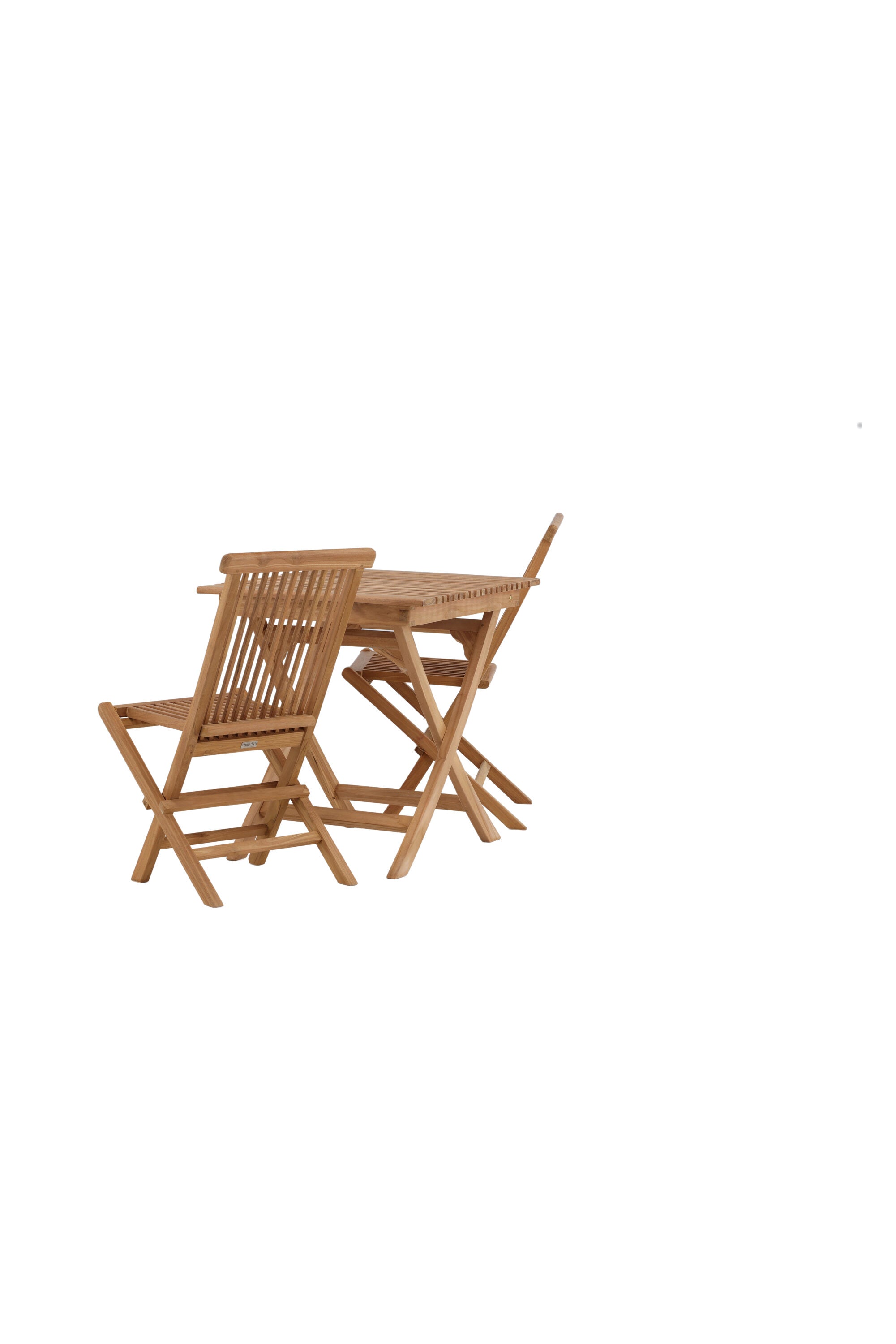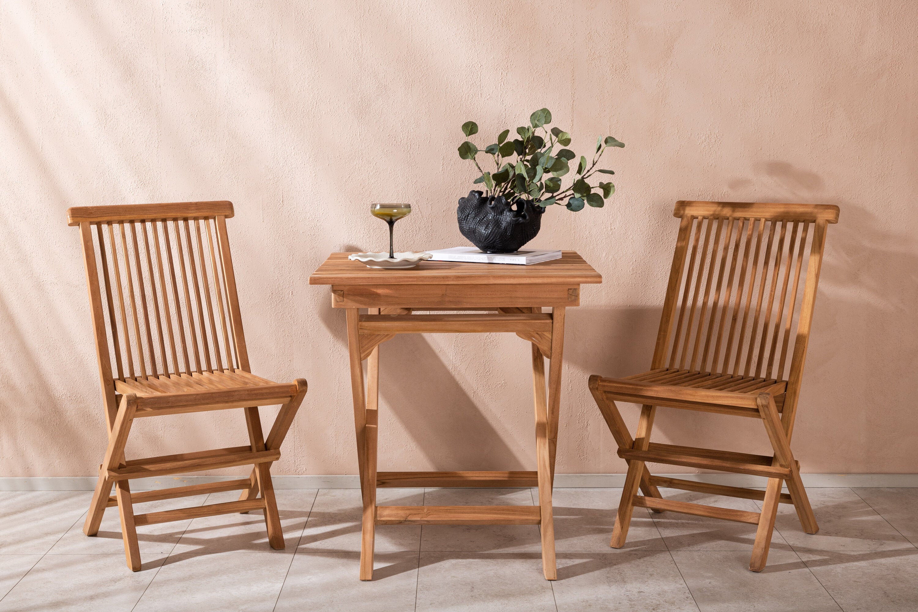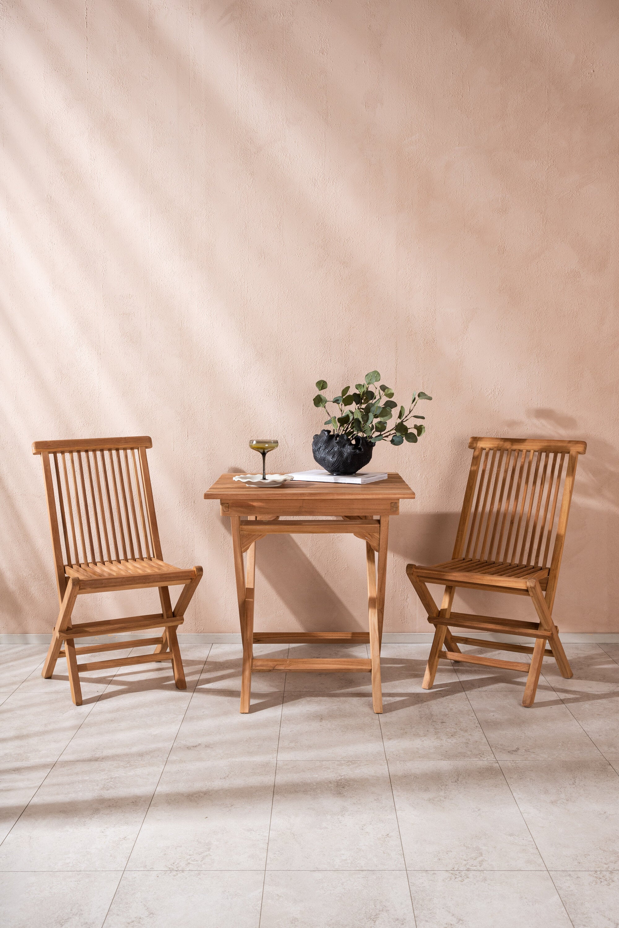 Ghana - Skládací stůl - Přírodní - Teak - 70*70cm _1+ Keňa skládací židle s područkou - Teak _2CC