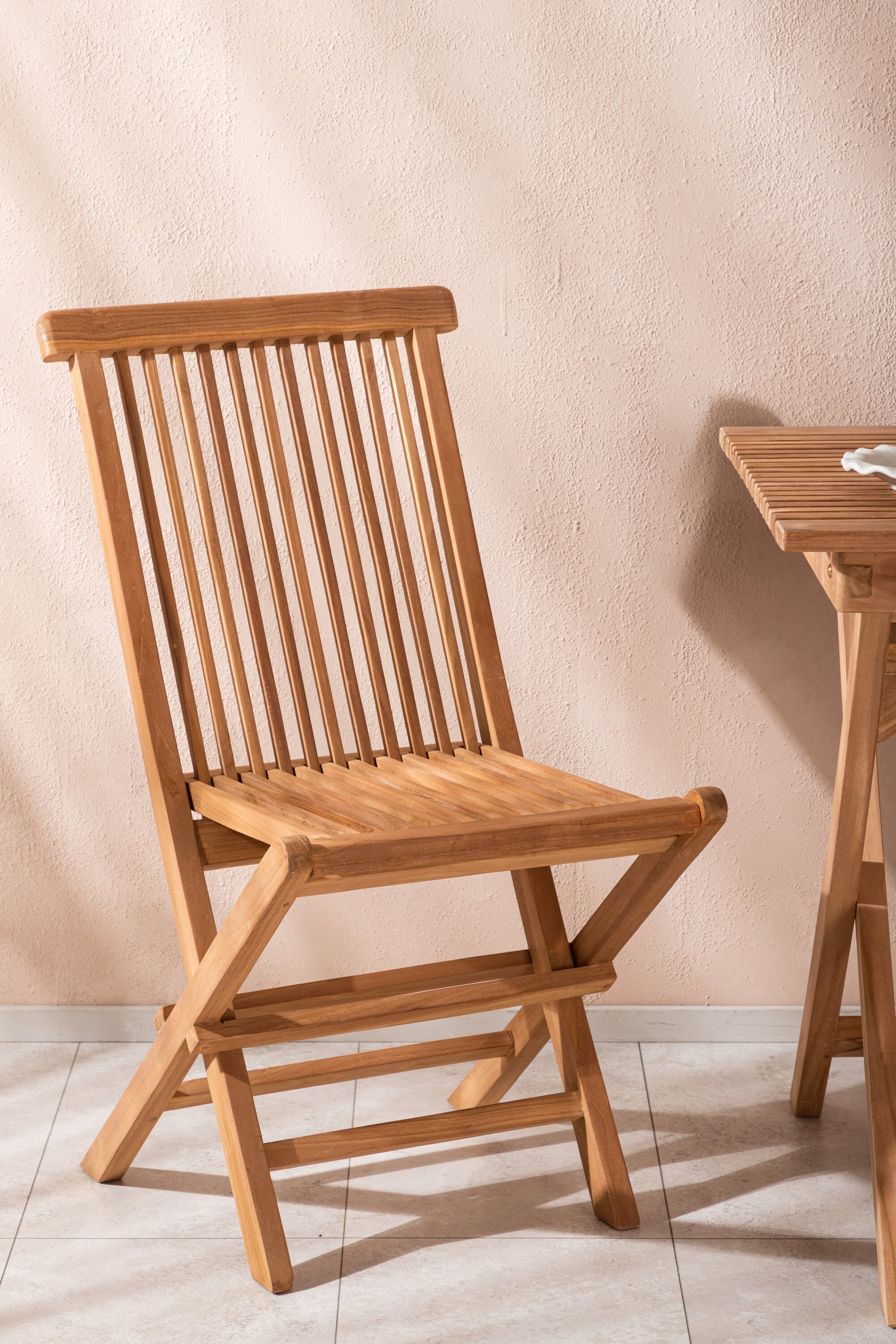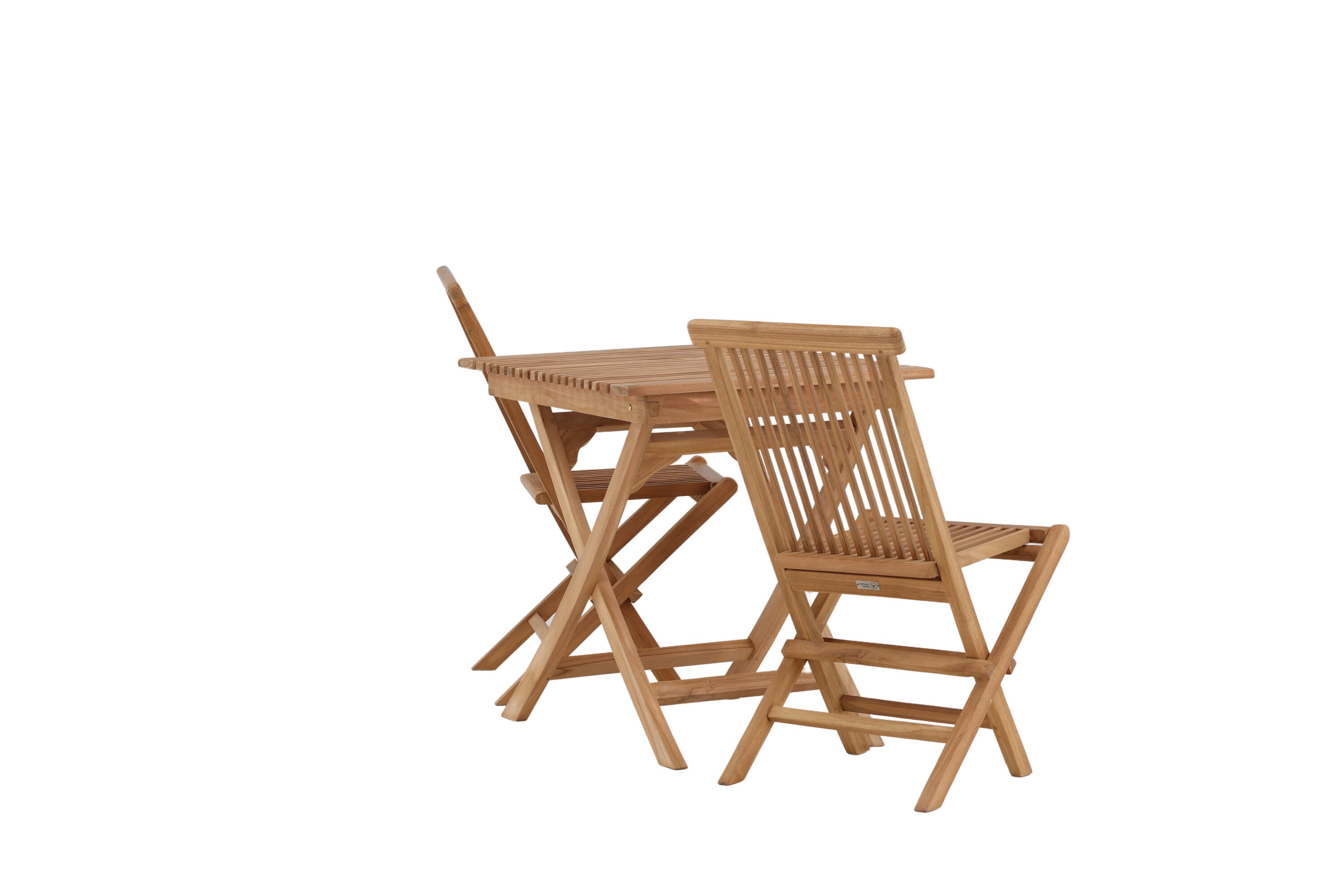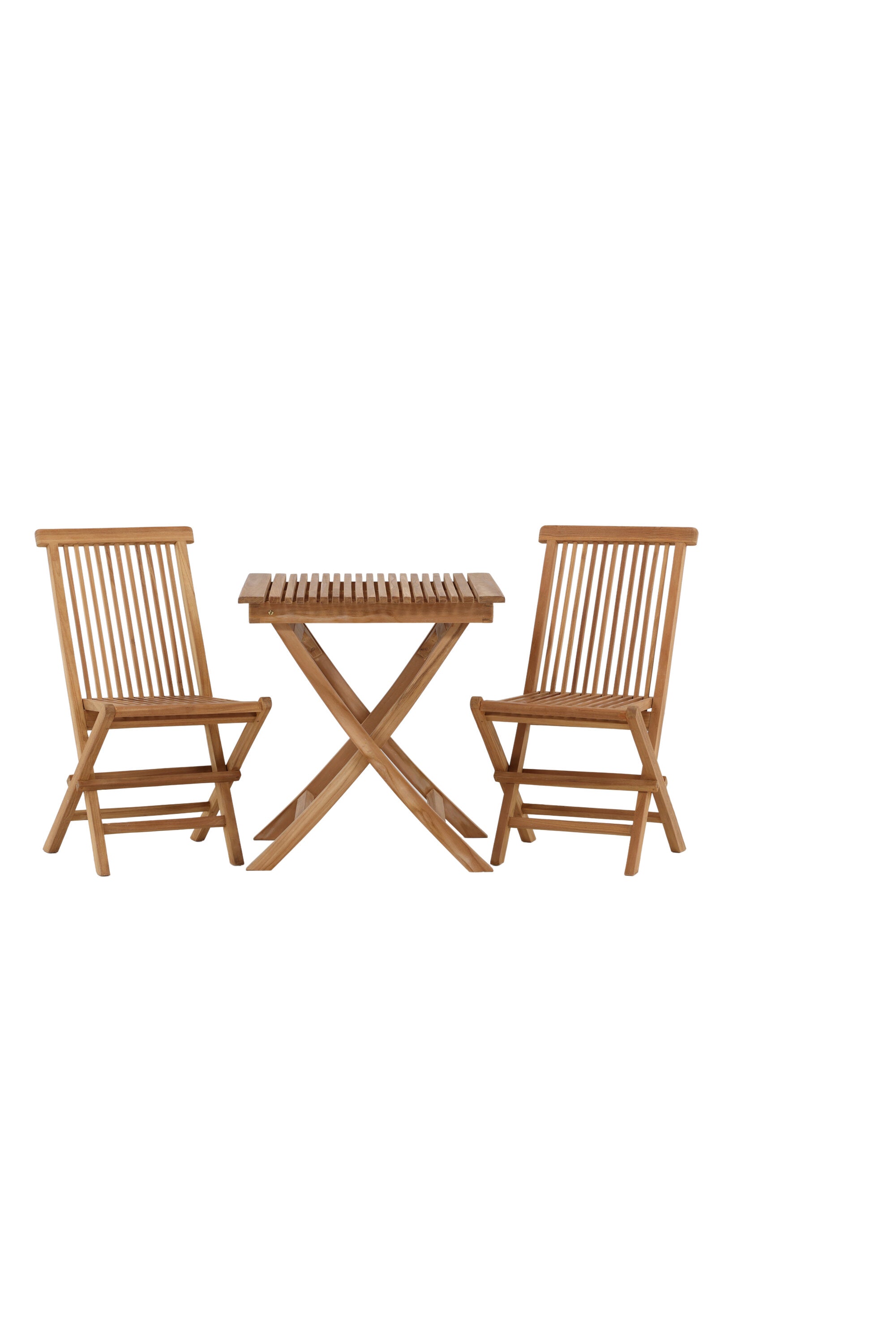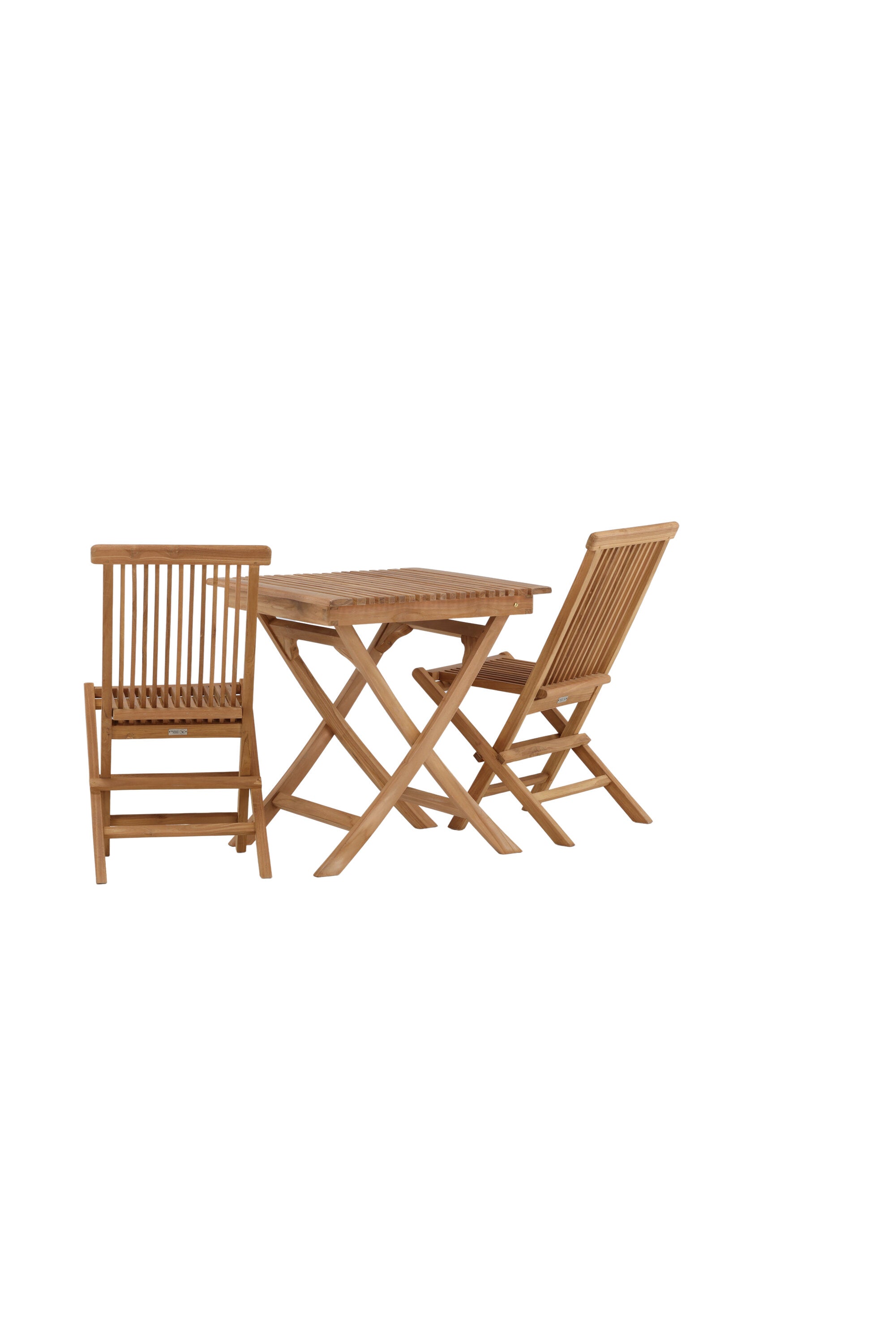 Ghana - Skládací stůl - Přírodní - Teak - 70*70cm _1+ Keňa skládací židle s područkou - Teak _2CC