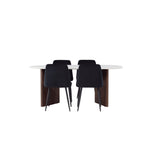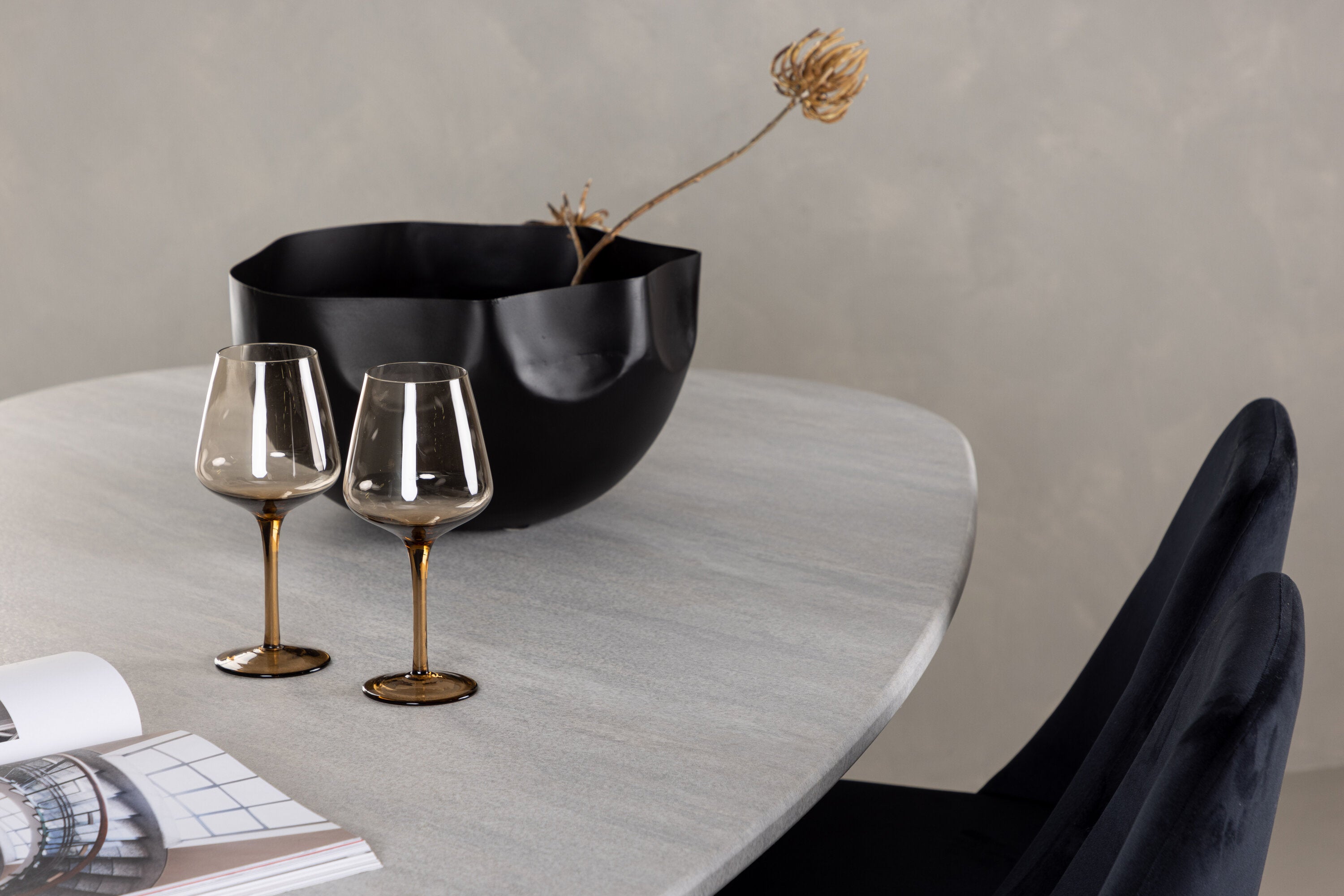 Grönvik Jídelní stůl 180*75 - Mocca / Offwhite Concretelook MDF + Noční jídelní židle - Černá / Black Velvet _4