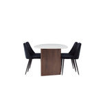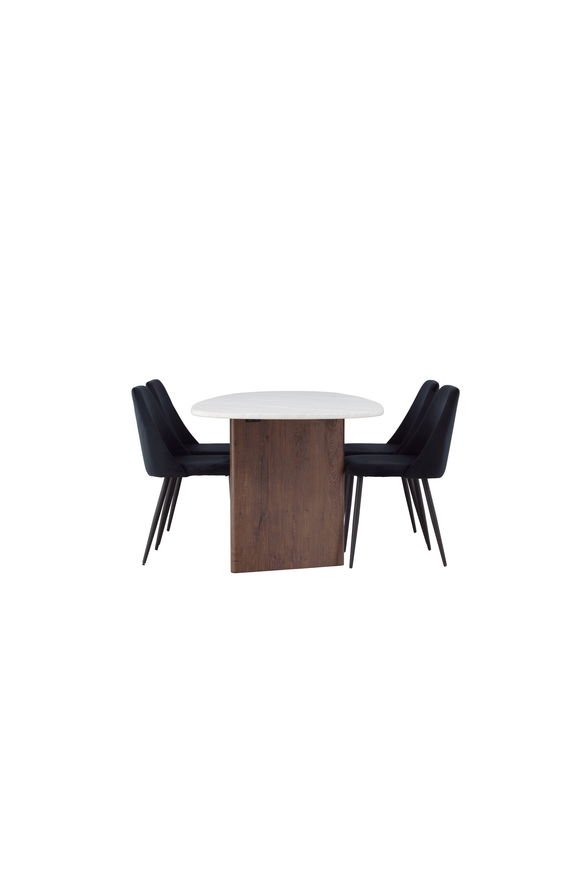 Jídelní set, který povznese váš interiér svým skandinávským designem a výjimečným řemeslným zpracováním. Tento jídelní set je ten, o kterém jste snili, a rychle se stane středobodem vašeho domova! Náš oválný jídelní stůl Grönvik má nepravidelnou stolní desku ze světle šedé MDF s betonovým vzhledem, která dodá vašemu interiéru jedinečný nádech. Tenké tmavě hnědé dřevěné panely podpírající stůl poskytují elegantní a stabilní dotek. S tímto stolem rychle vytvoříte prostředí, které vyzařuje styl a šarm. Rozměry: 180 x 75 cm.