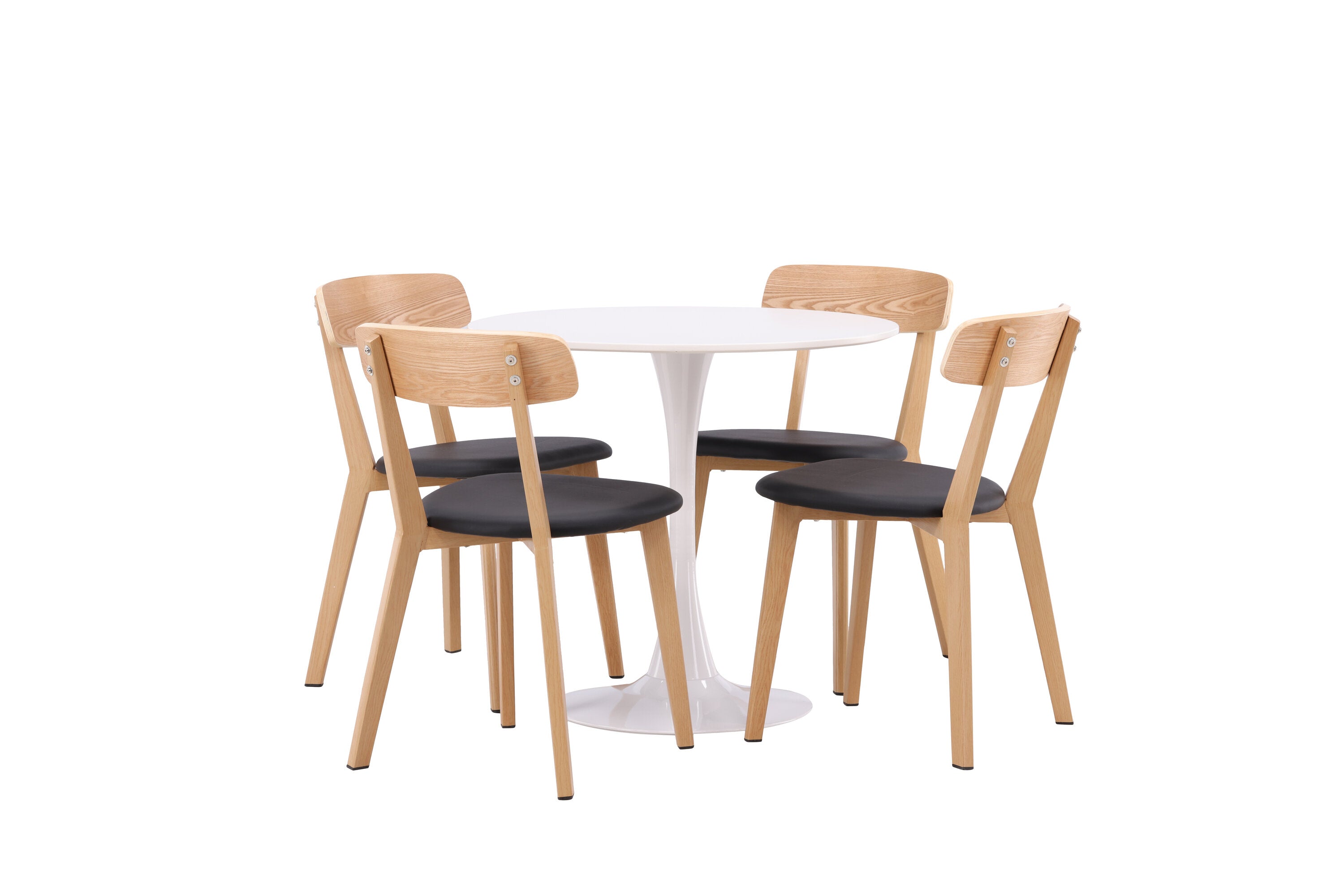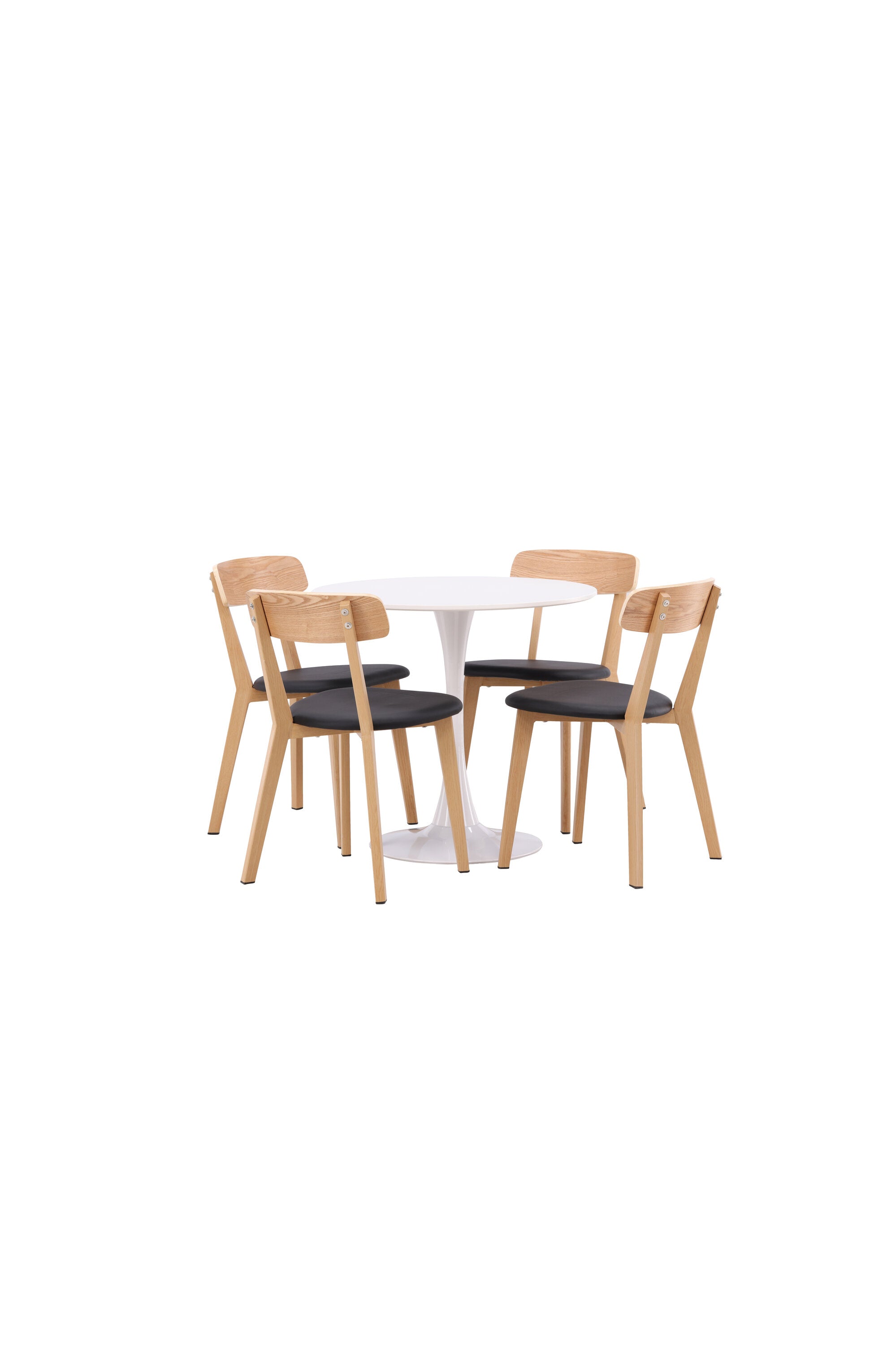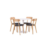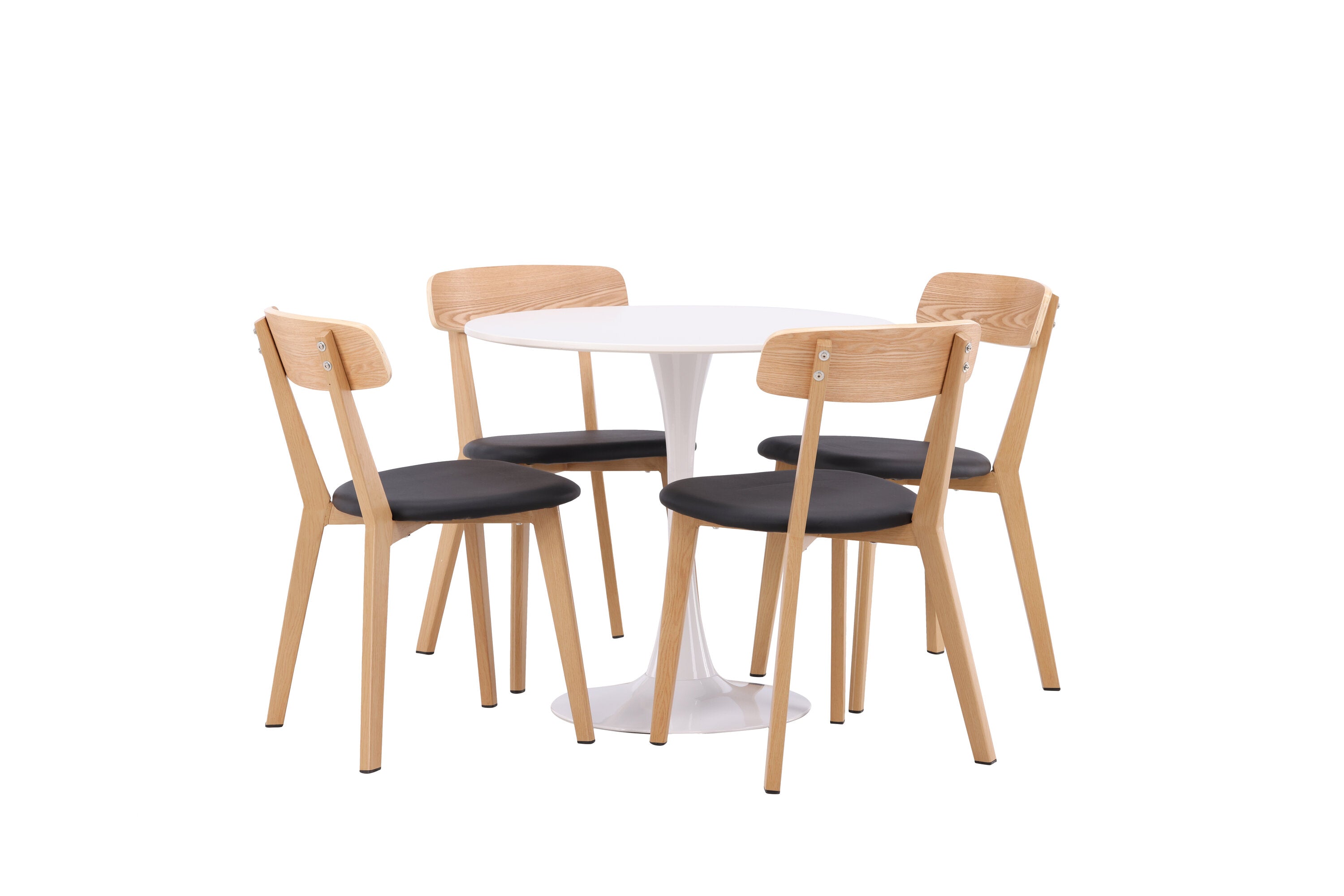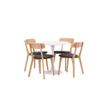 Hamden Jídelní stůl - Bílá MDF+Sanjos Jídelní židle - Dubový vzhled / Černá PU_4