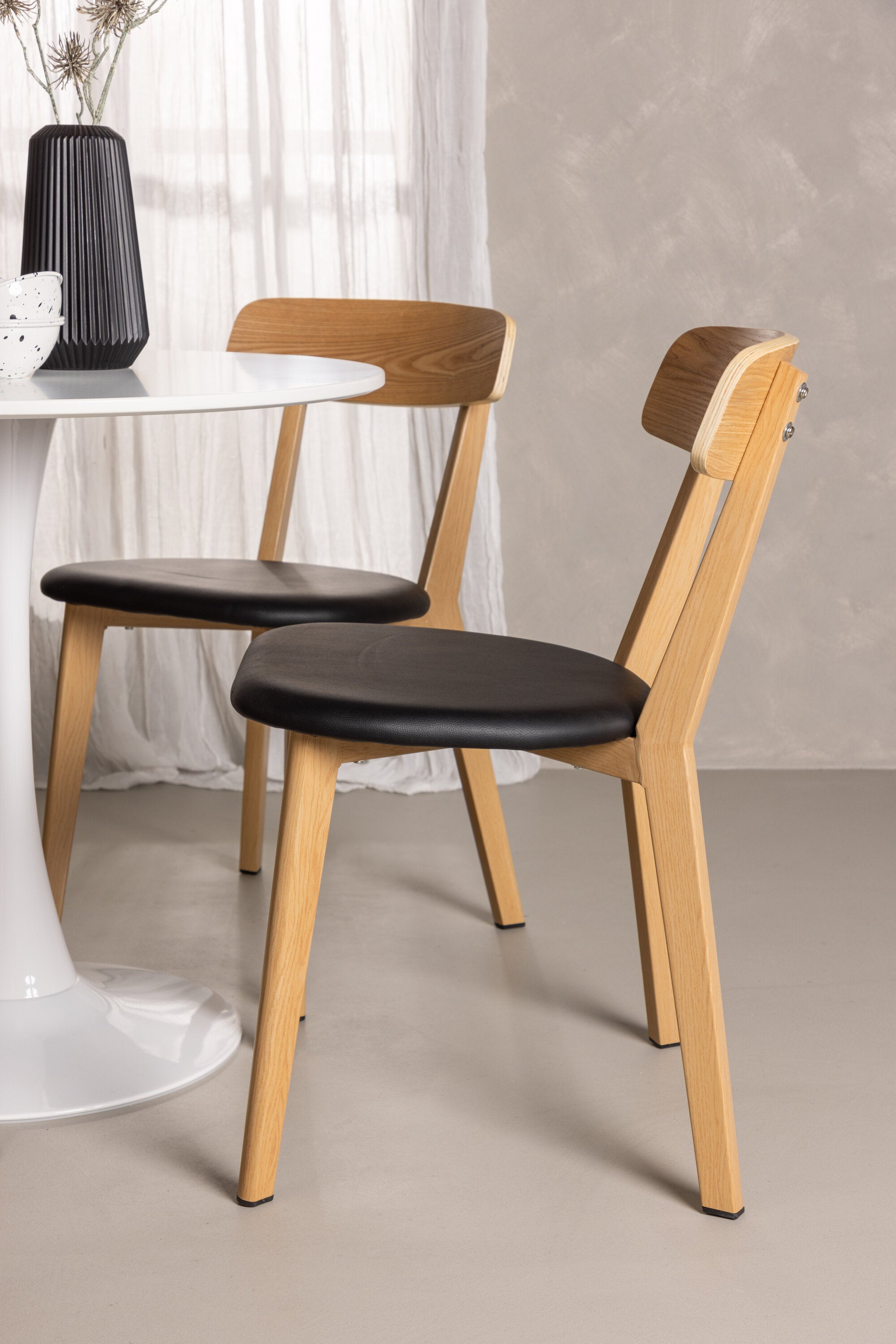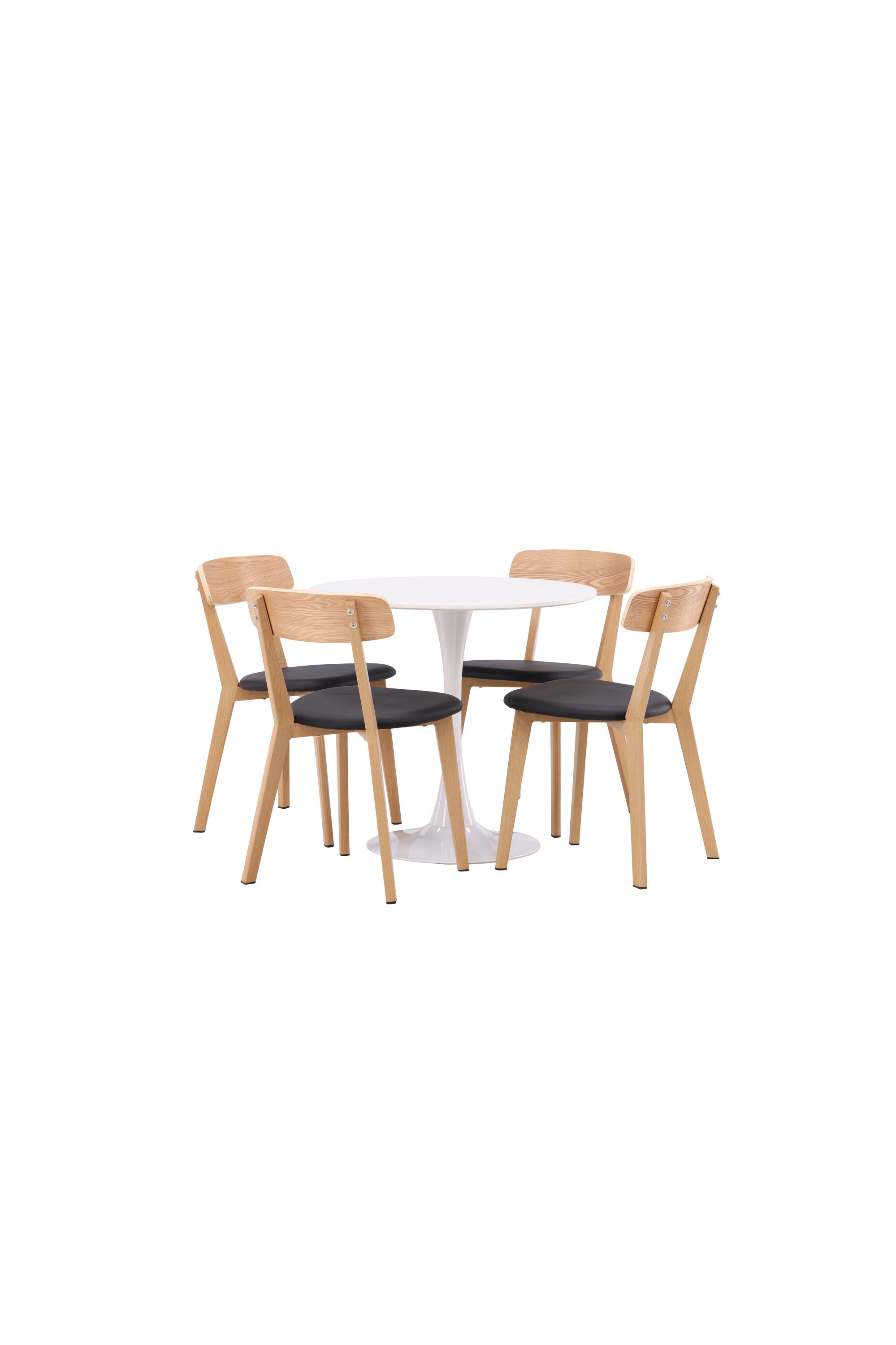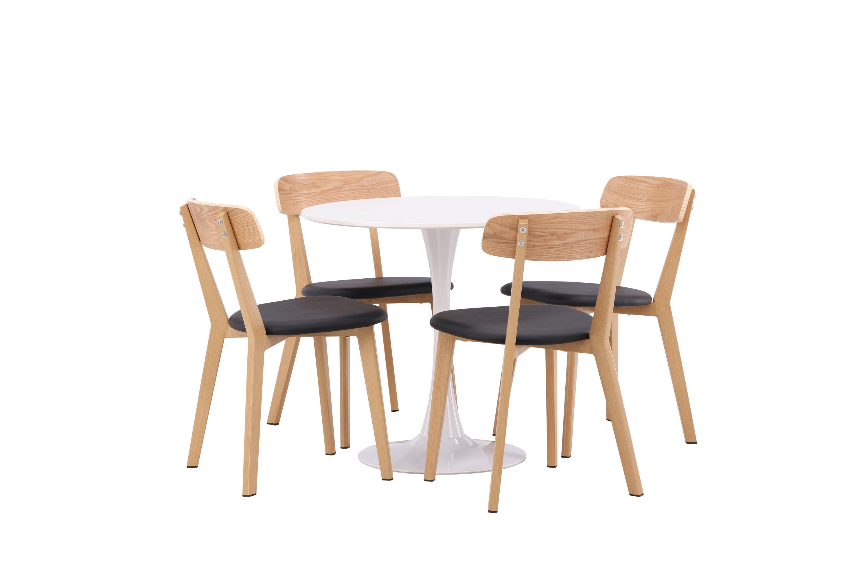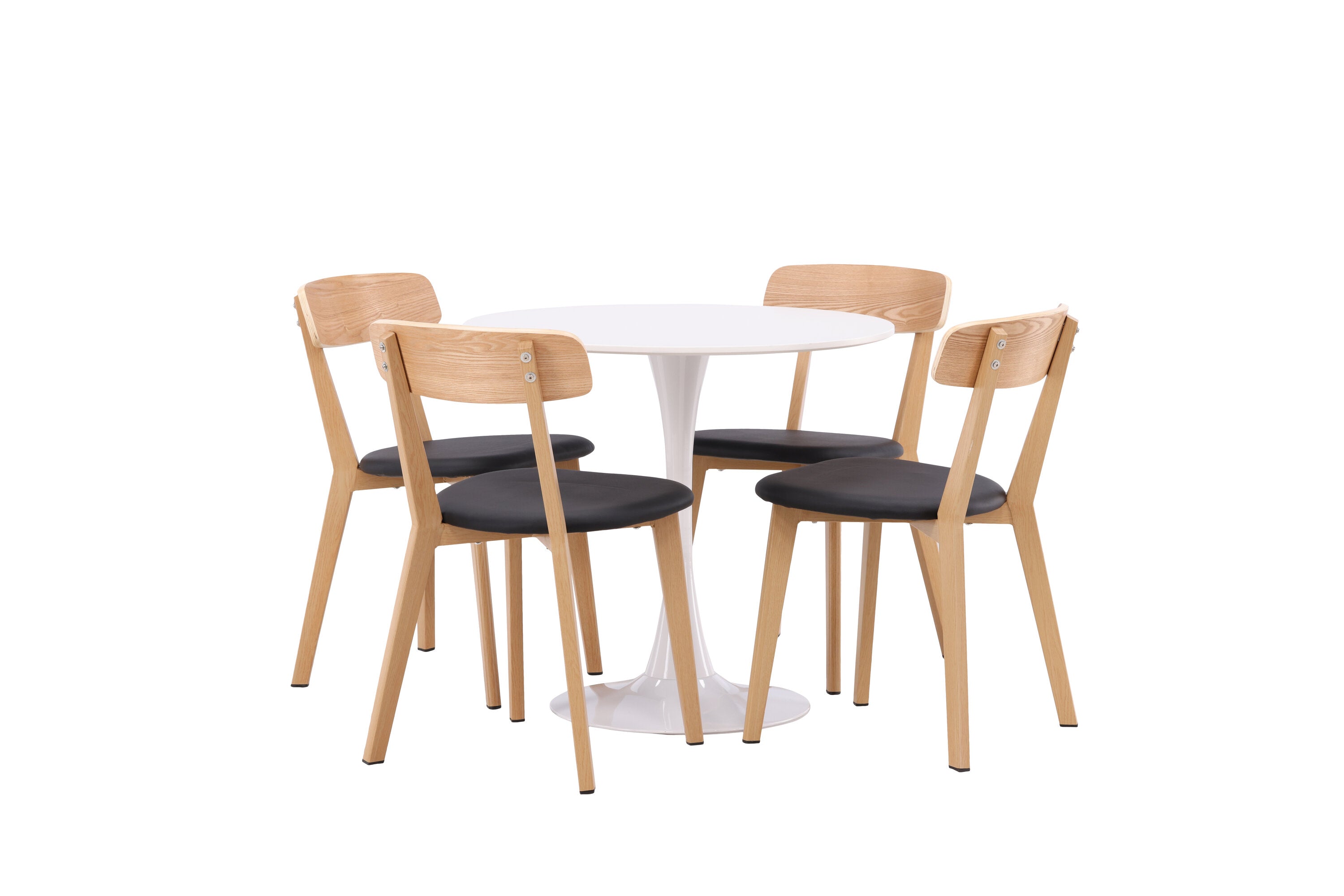 Hamden Jídelní stůl - Bílá MDF+Sanjos Jídelní židle - Dubový vzhled / Černá PU_4