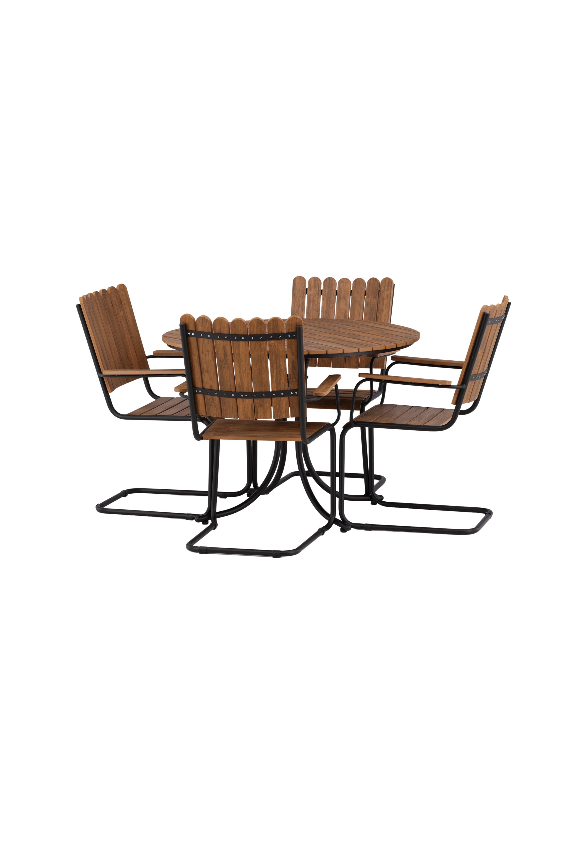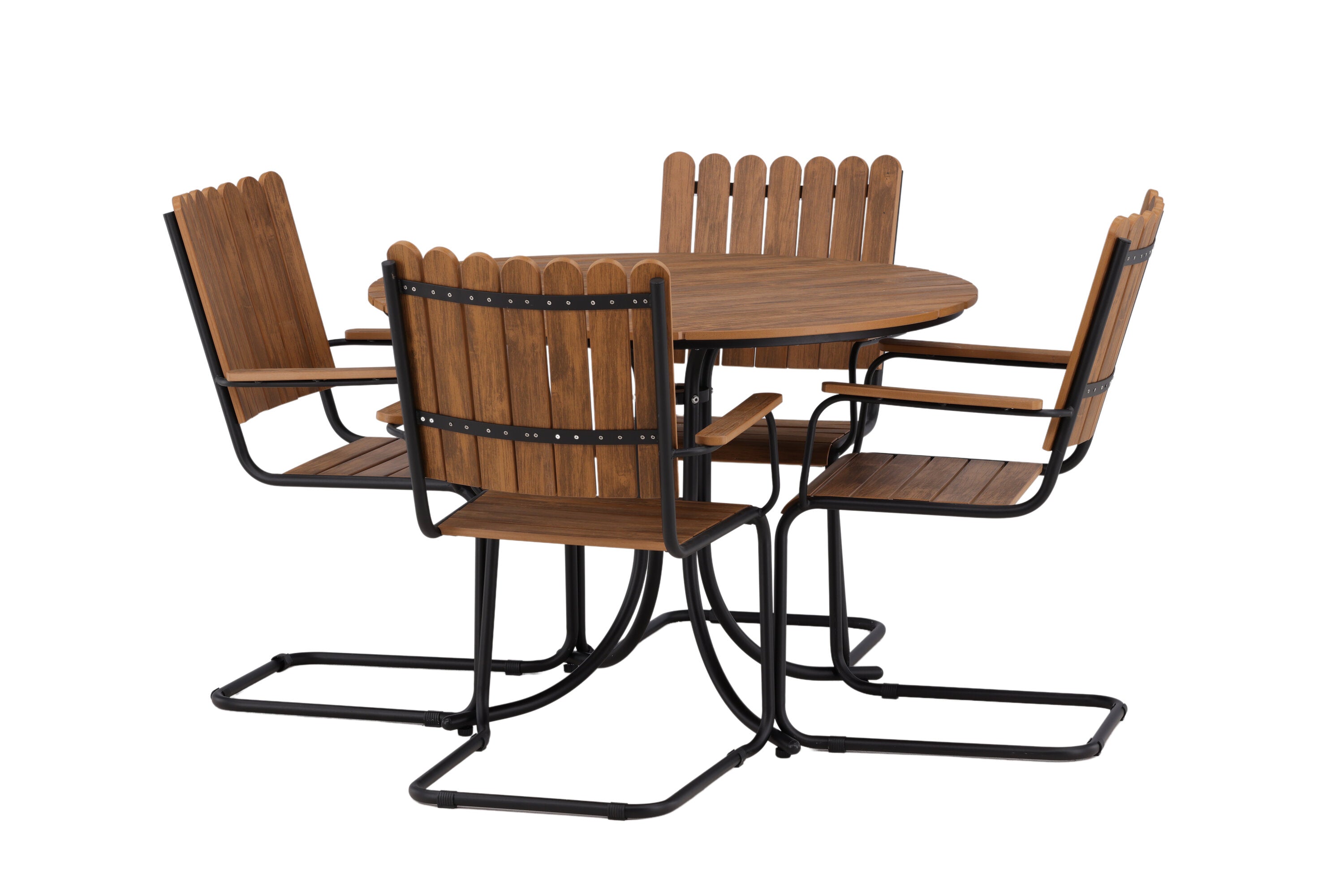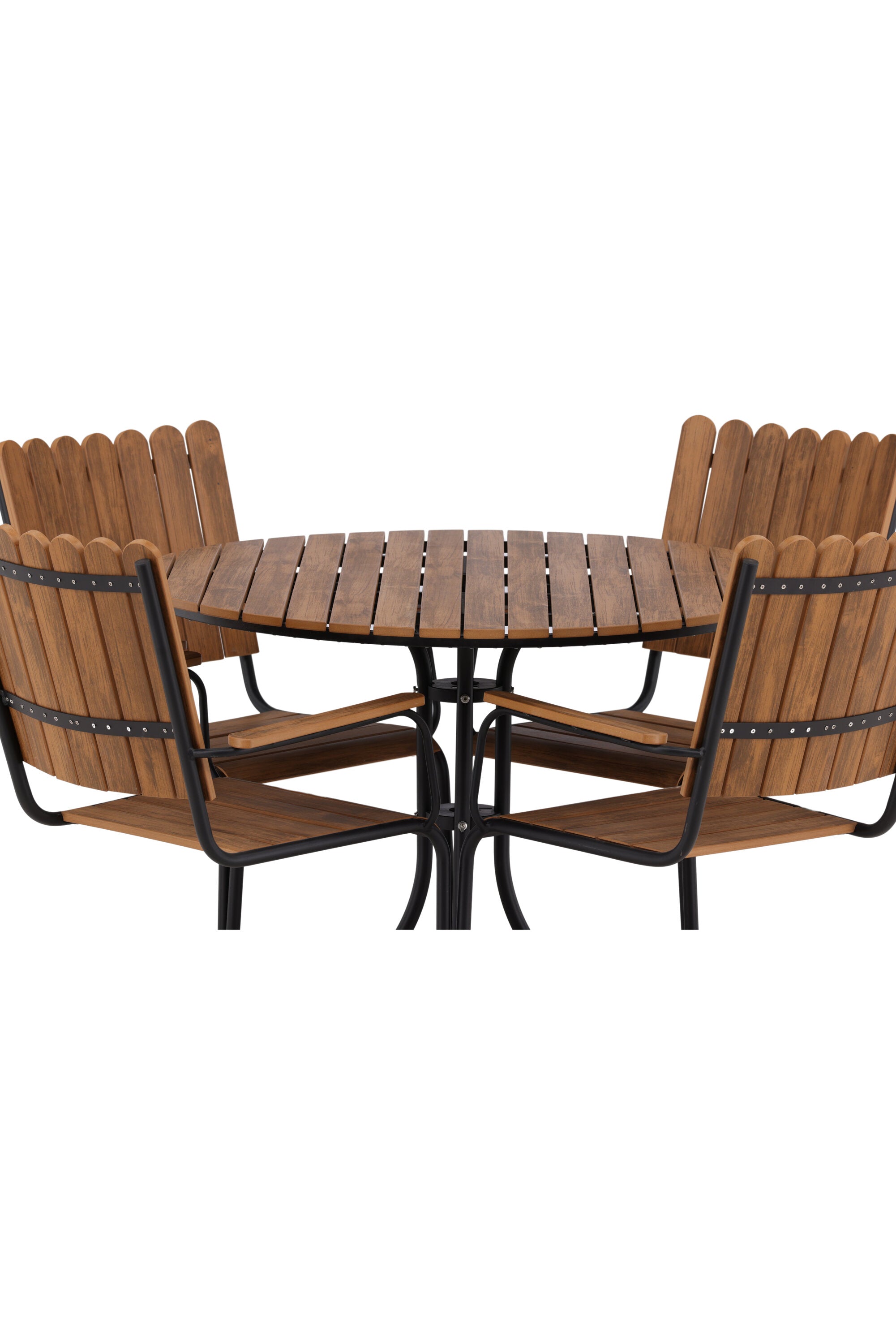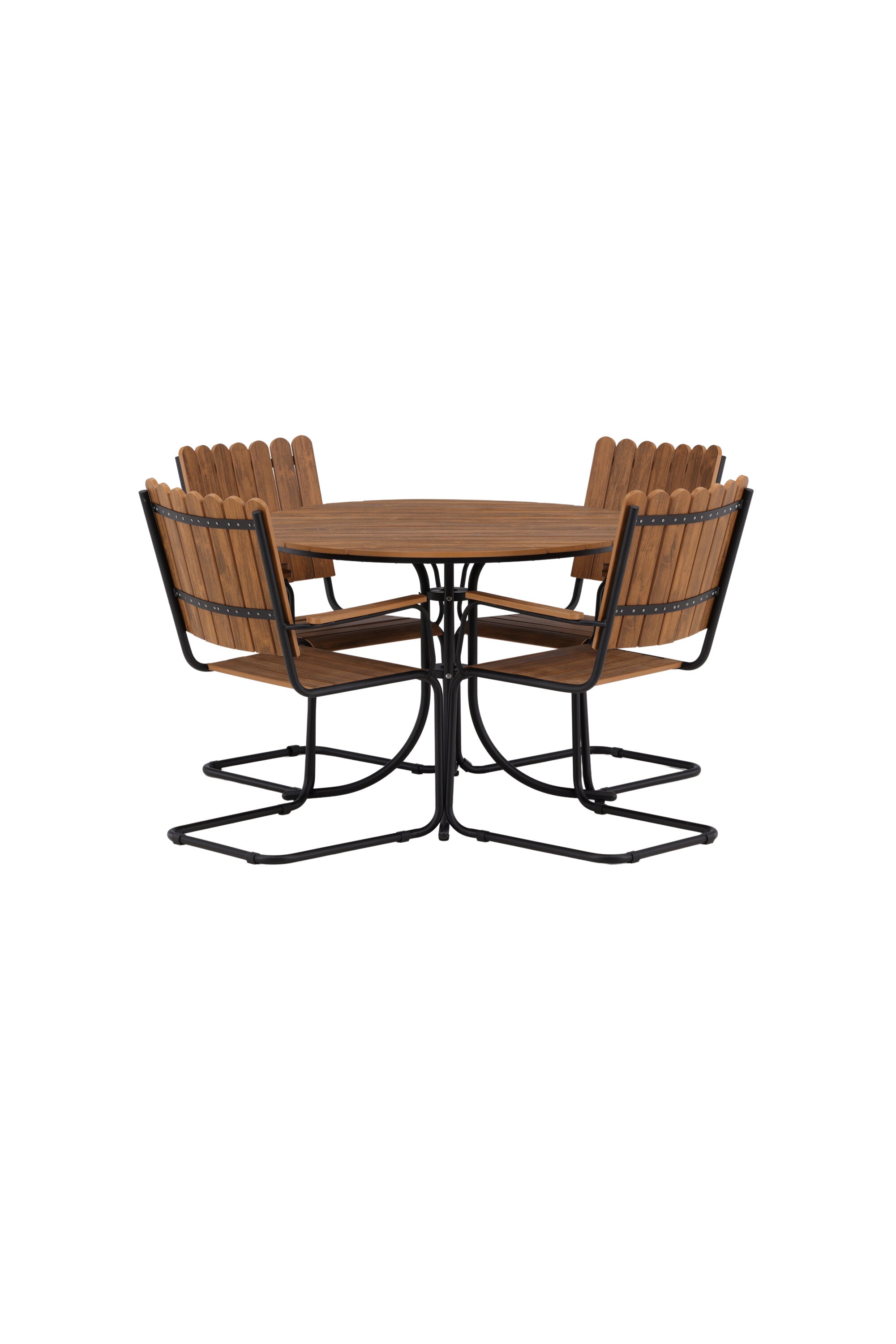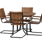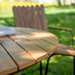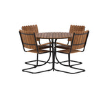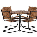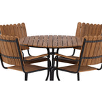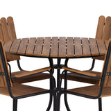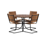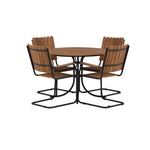 Moderní, odolný a příjemný! Tento kulatý jídelní stůl ze série Holmsund vytvoří svým okouzlujícím designem lahodný poutač na vaší zahradě. Jídelní skupina je vyrobena z černé oceli a židle a deska stolu jsou vyrobeny z akácie v barvě dřeva. Doplňte židlemi ze stejné série a užijte si odpovídající jídelní sestavu, která ozdobí vaši terasu!