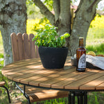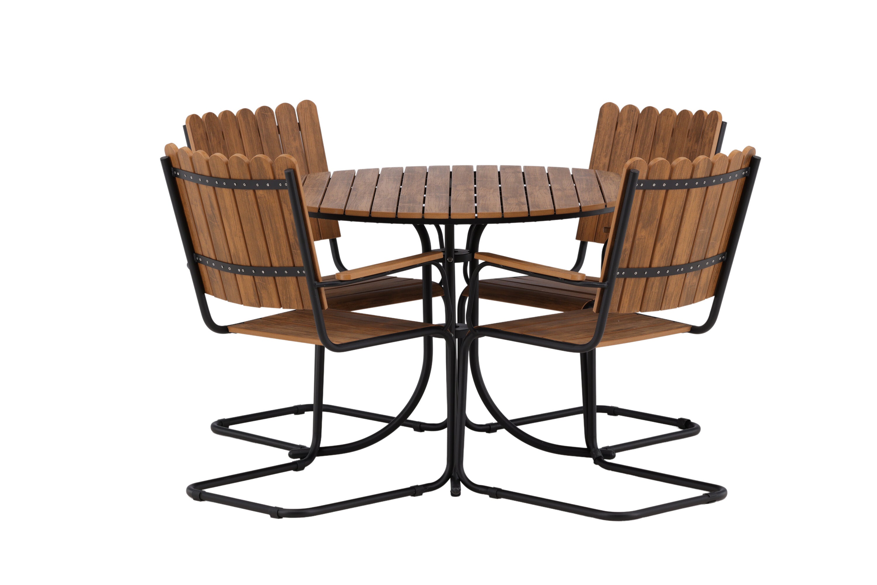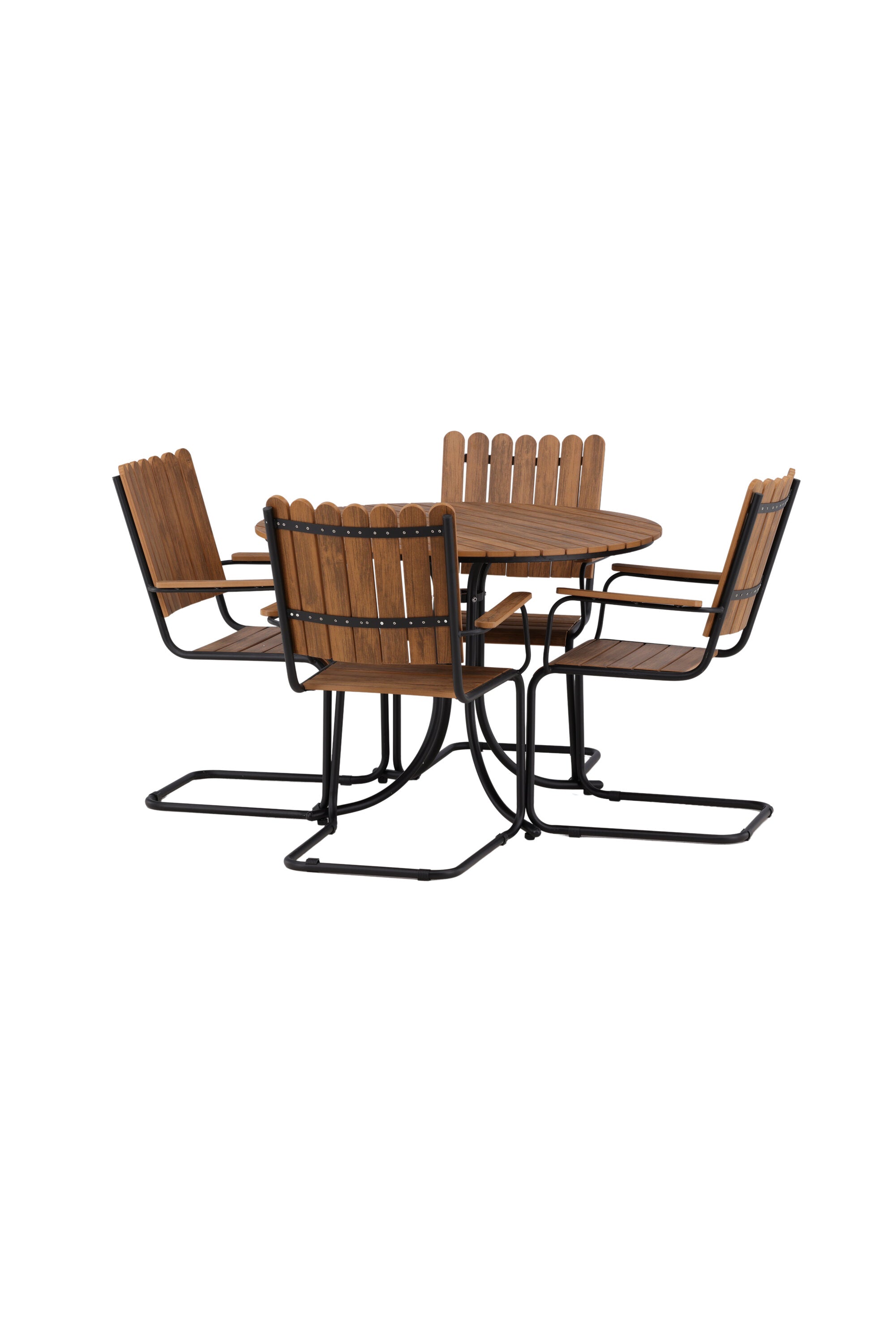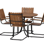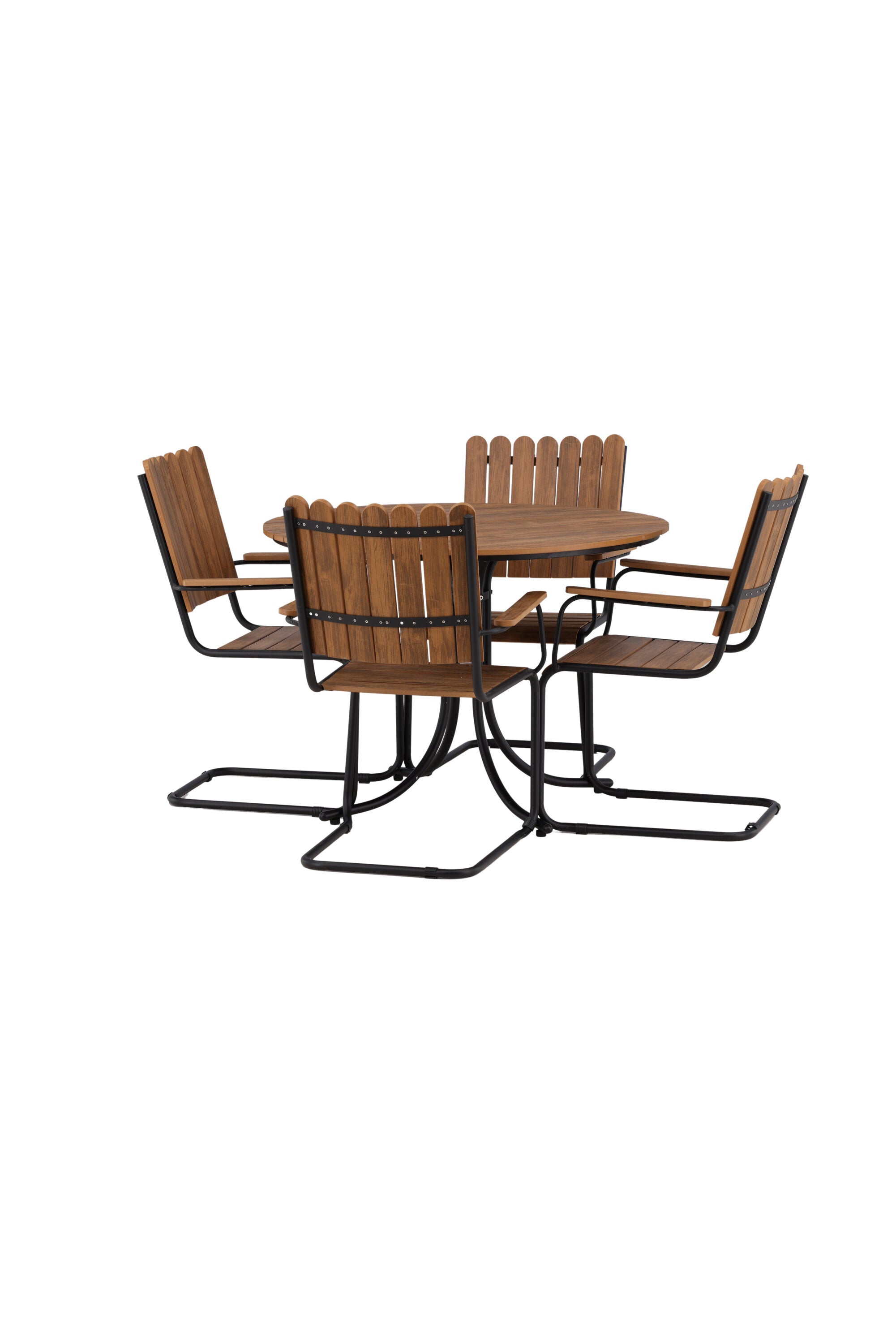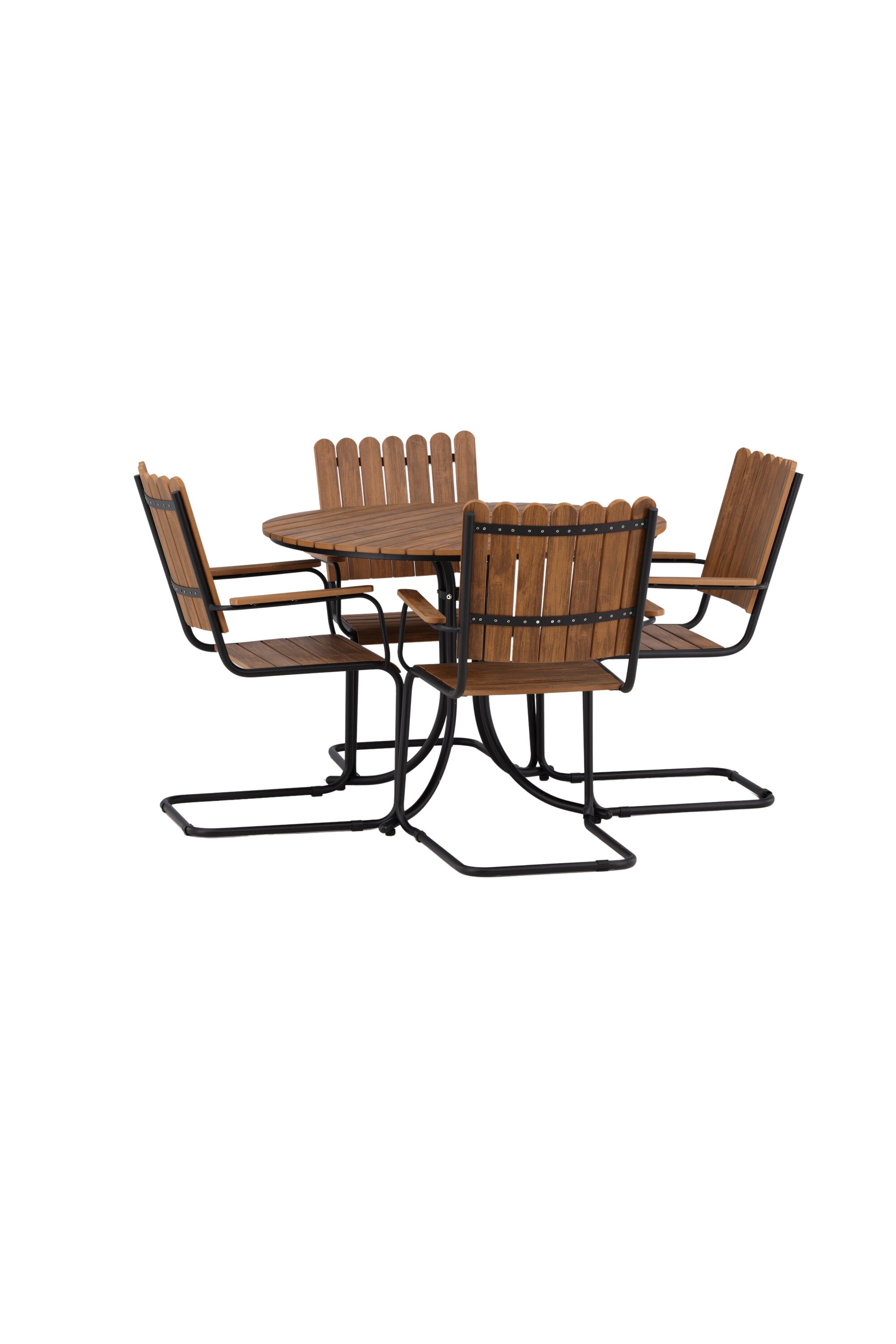 Moderní, odolný a příjemný! Tento kulatý jídelní stůl ze série Holmsund vytvoří svým okouzlujícím designem lahodný poutač na vaší zahradě. Jídelní skupina je vyrobena z černé oceli a židle a deska stolu jsou vyrobeny z akácie v barvě dřeva. Doplňte židlemi ze stejné série a užijte si odpovídající jídelní sestavu, která ozdobí vaši terasu!