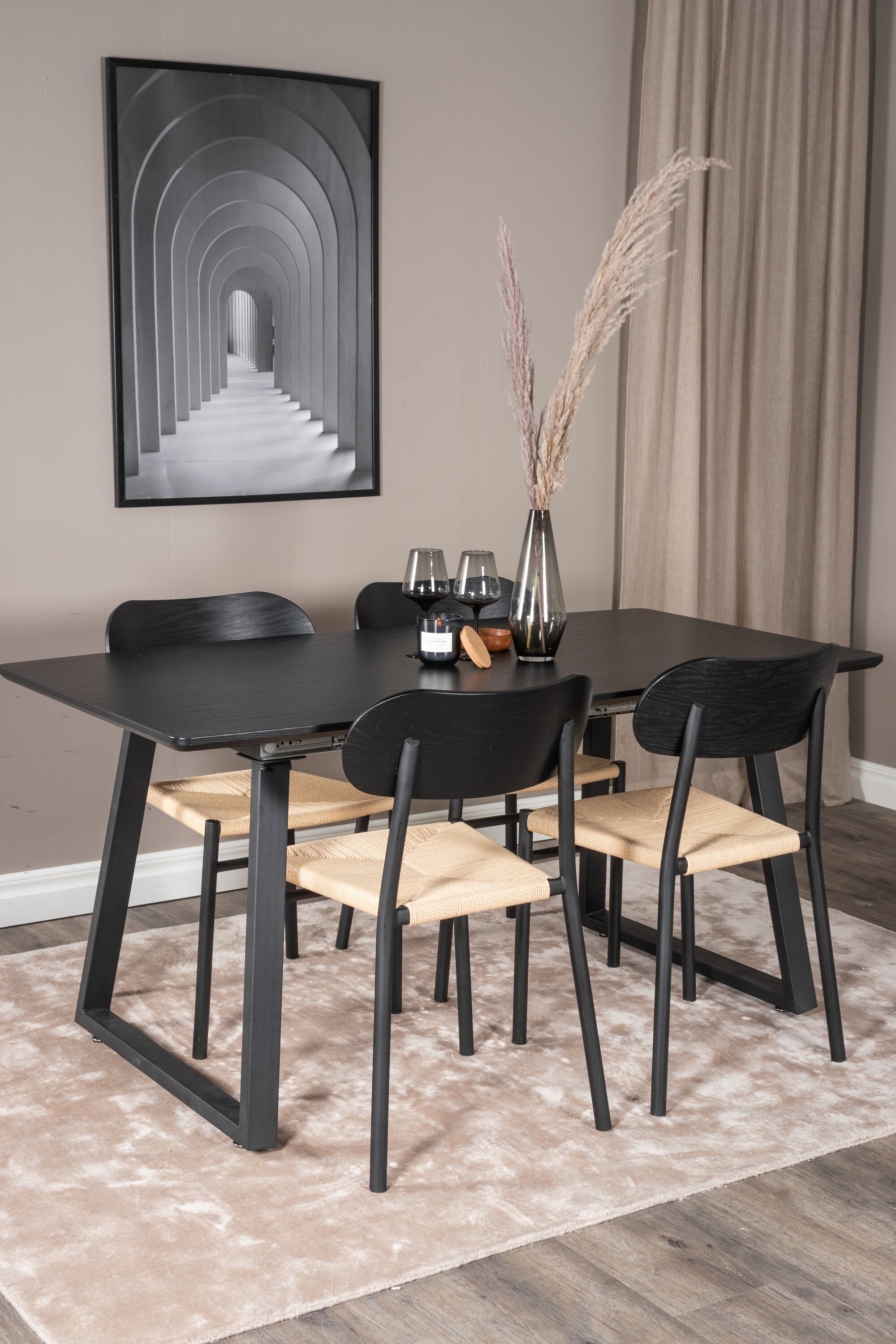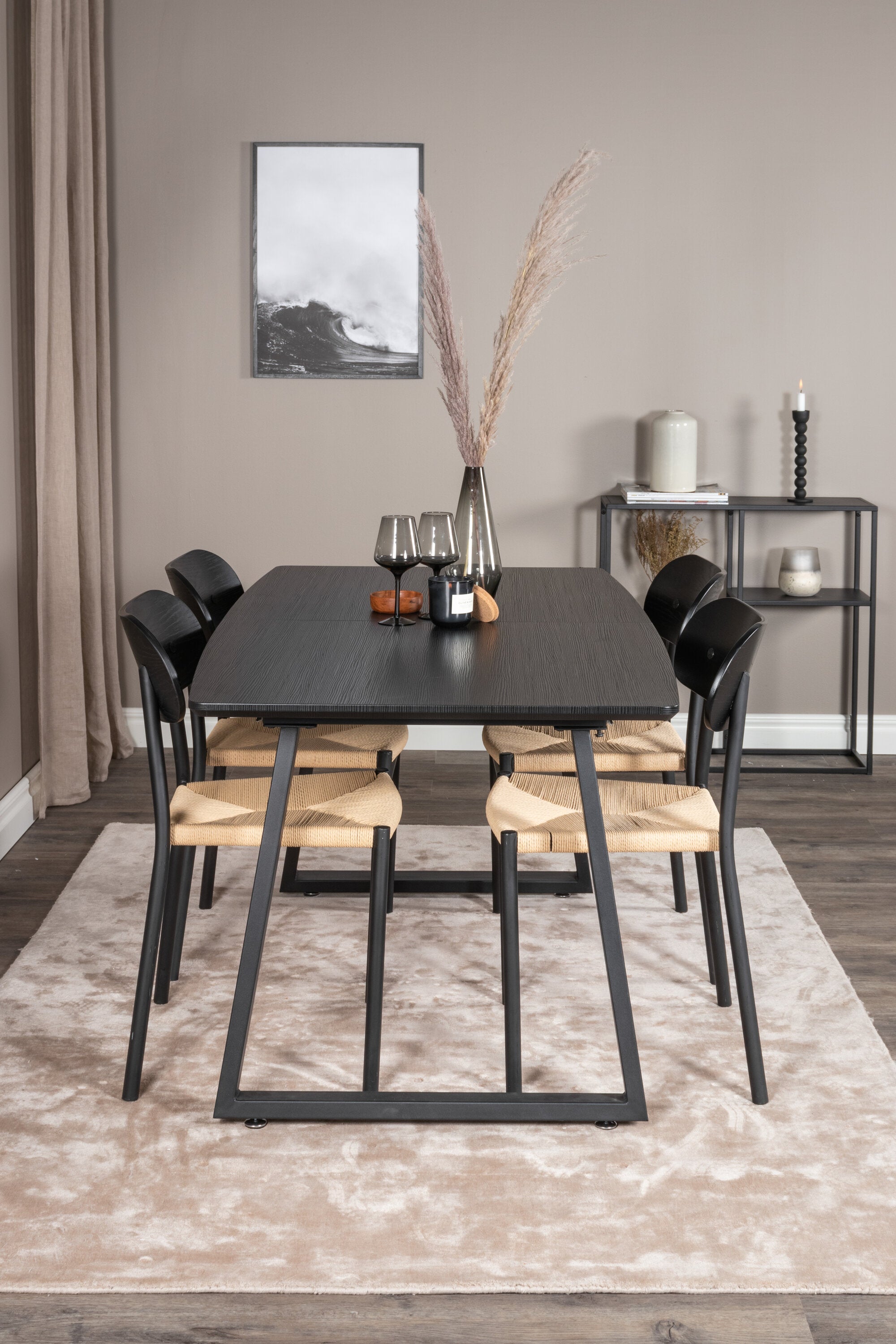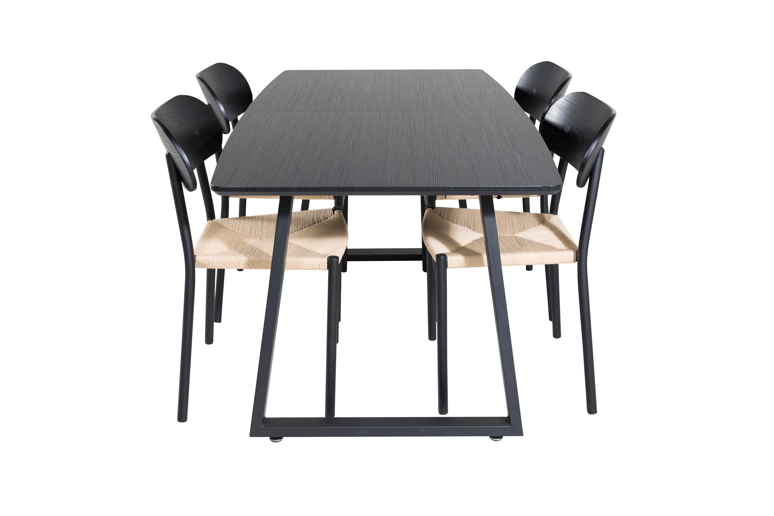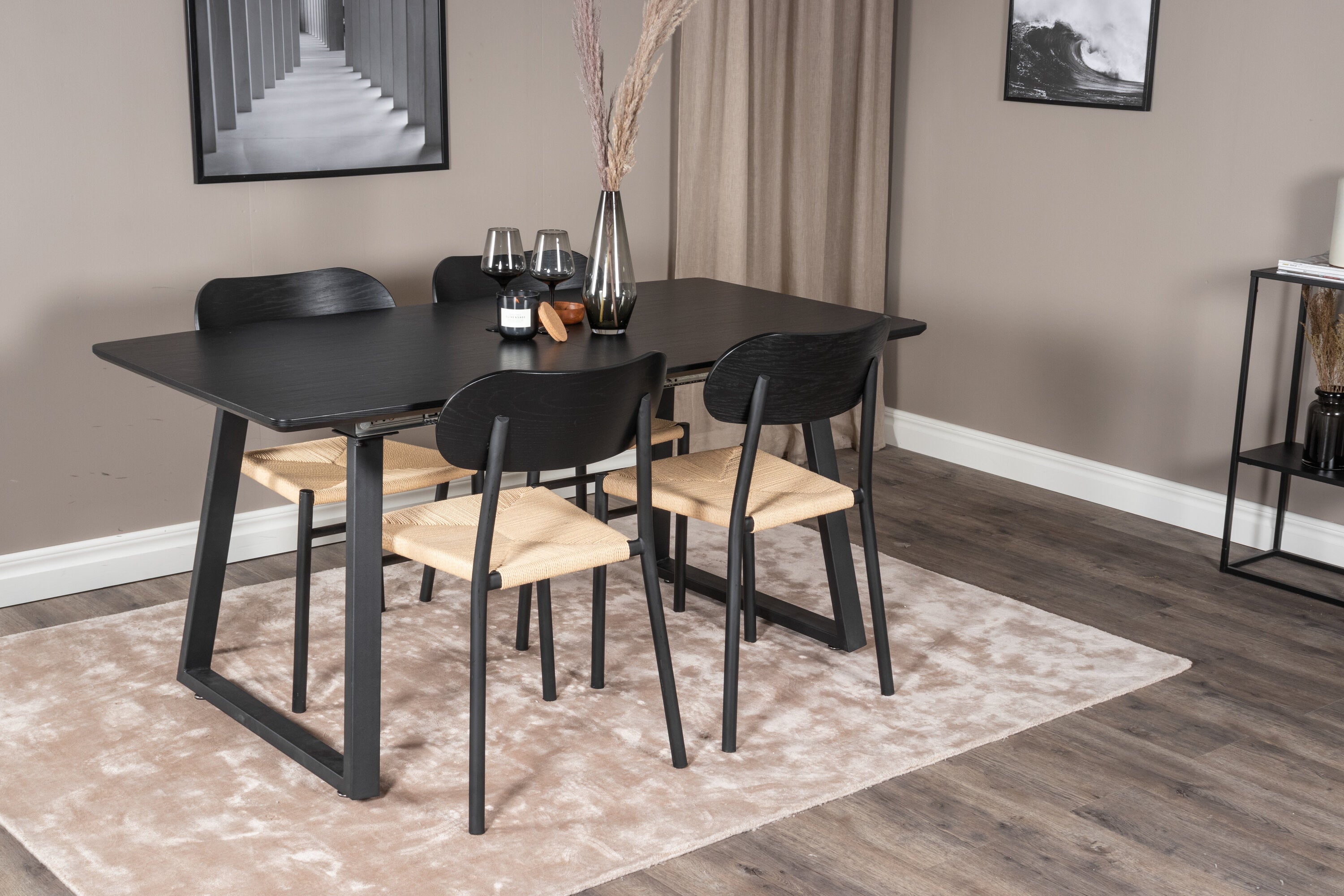 Inca Extentiontable - Černá horní deska / černé nohy + Jídelní židle Polly - Černá / Nature _4