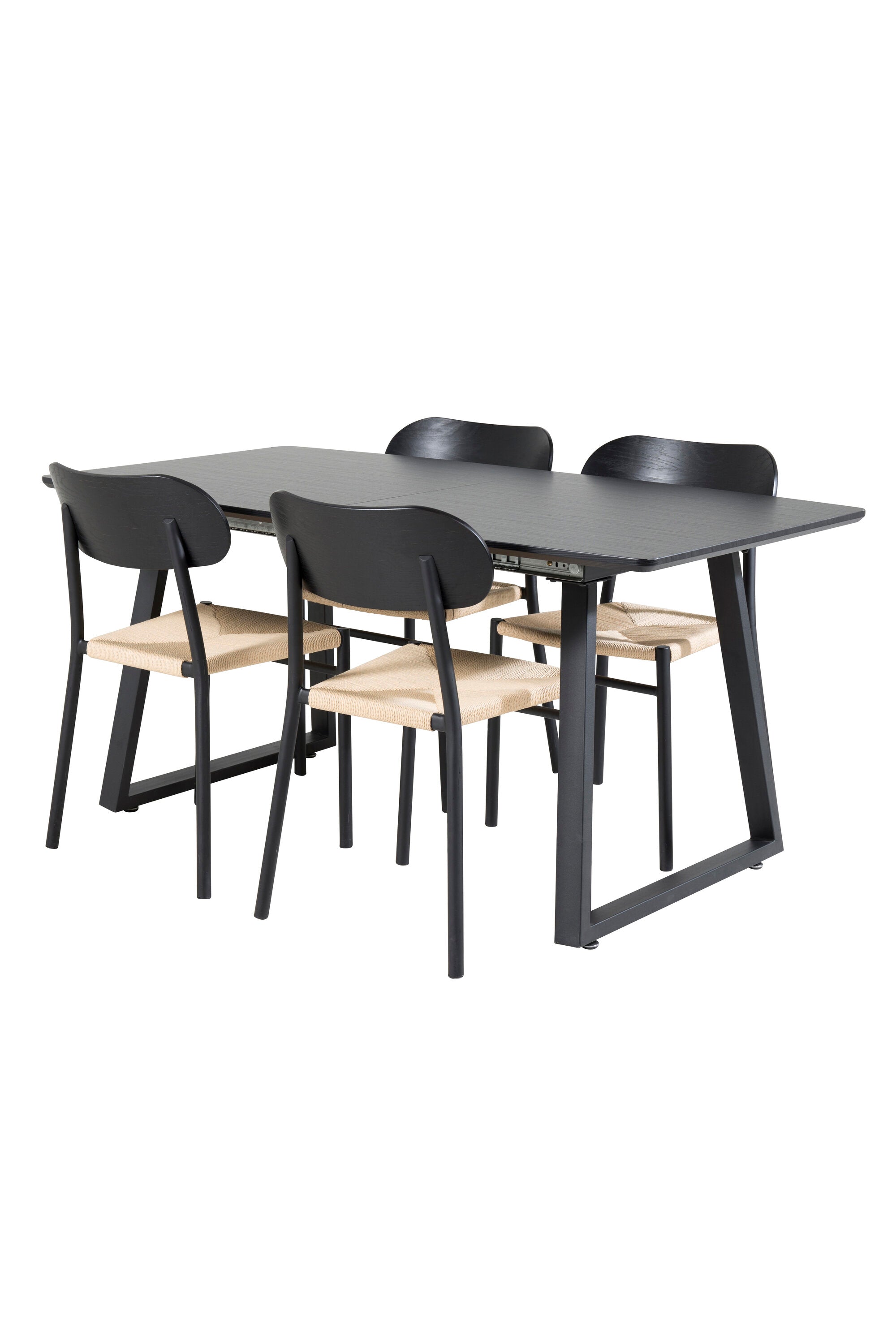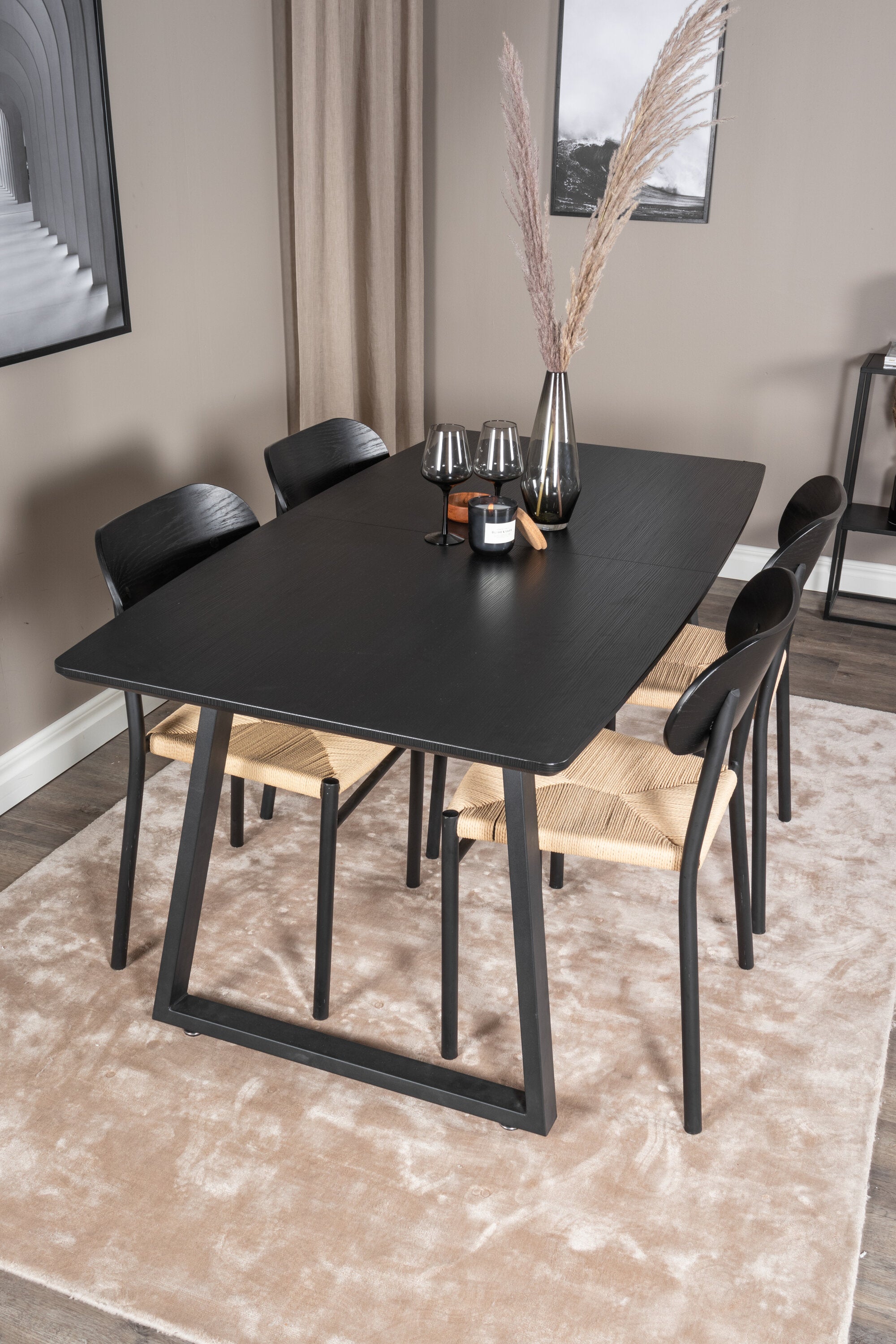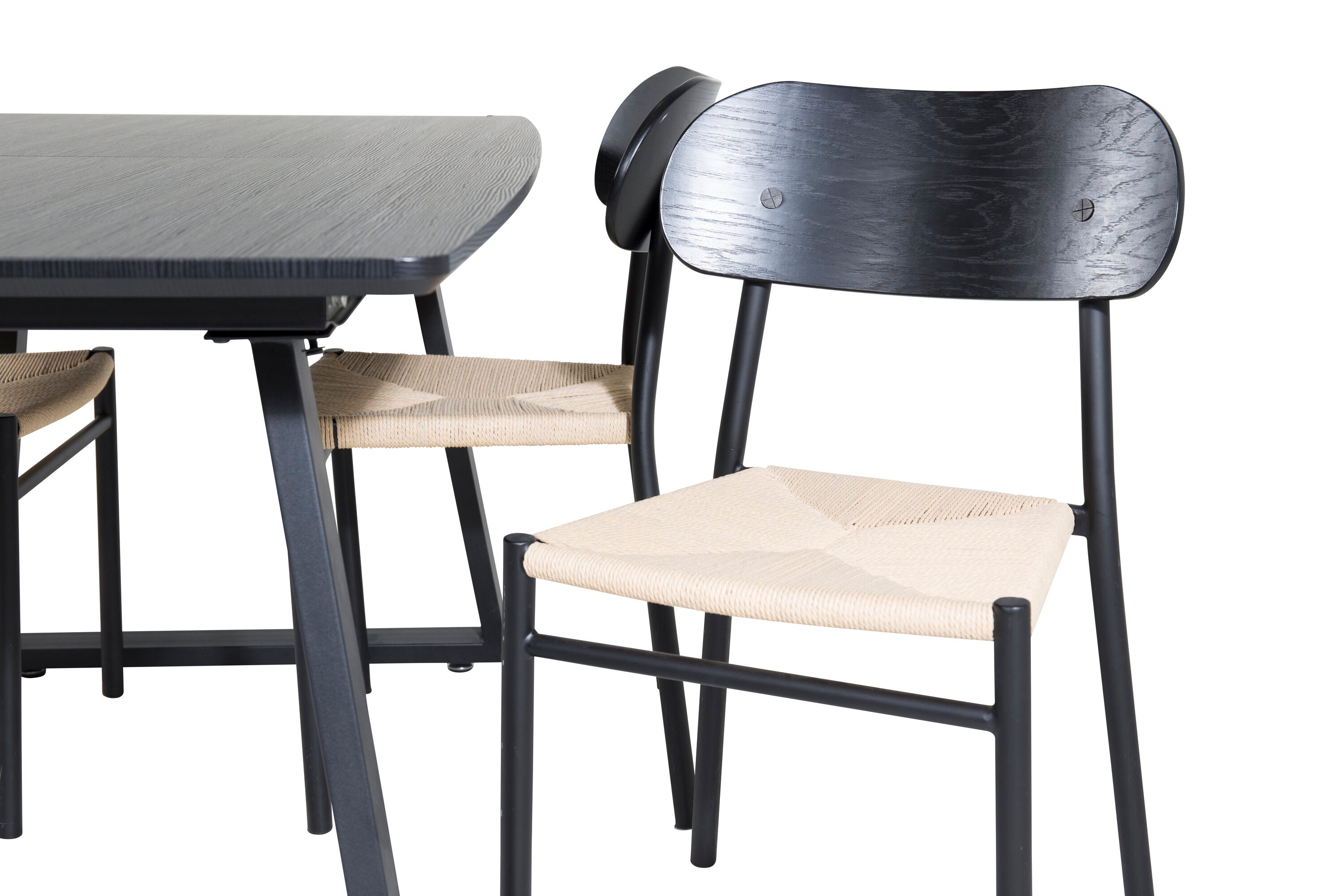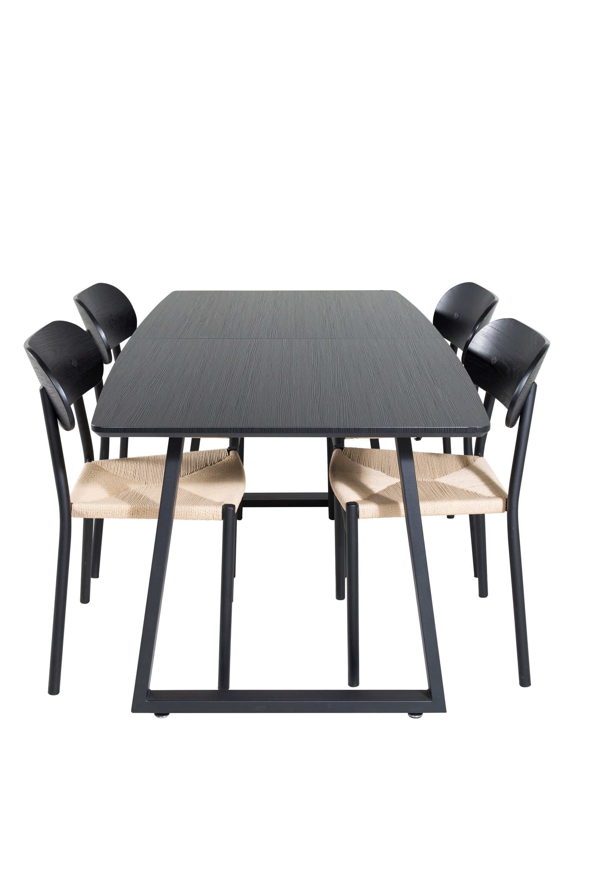 Inca Extentiontable - Černá horní deska / černé nohy + Jídelní židle Polly - Černá / Nature _4