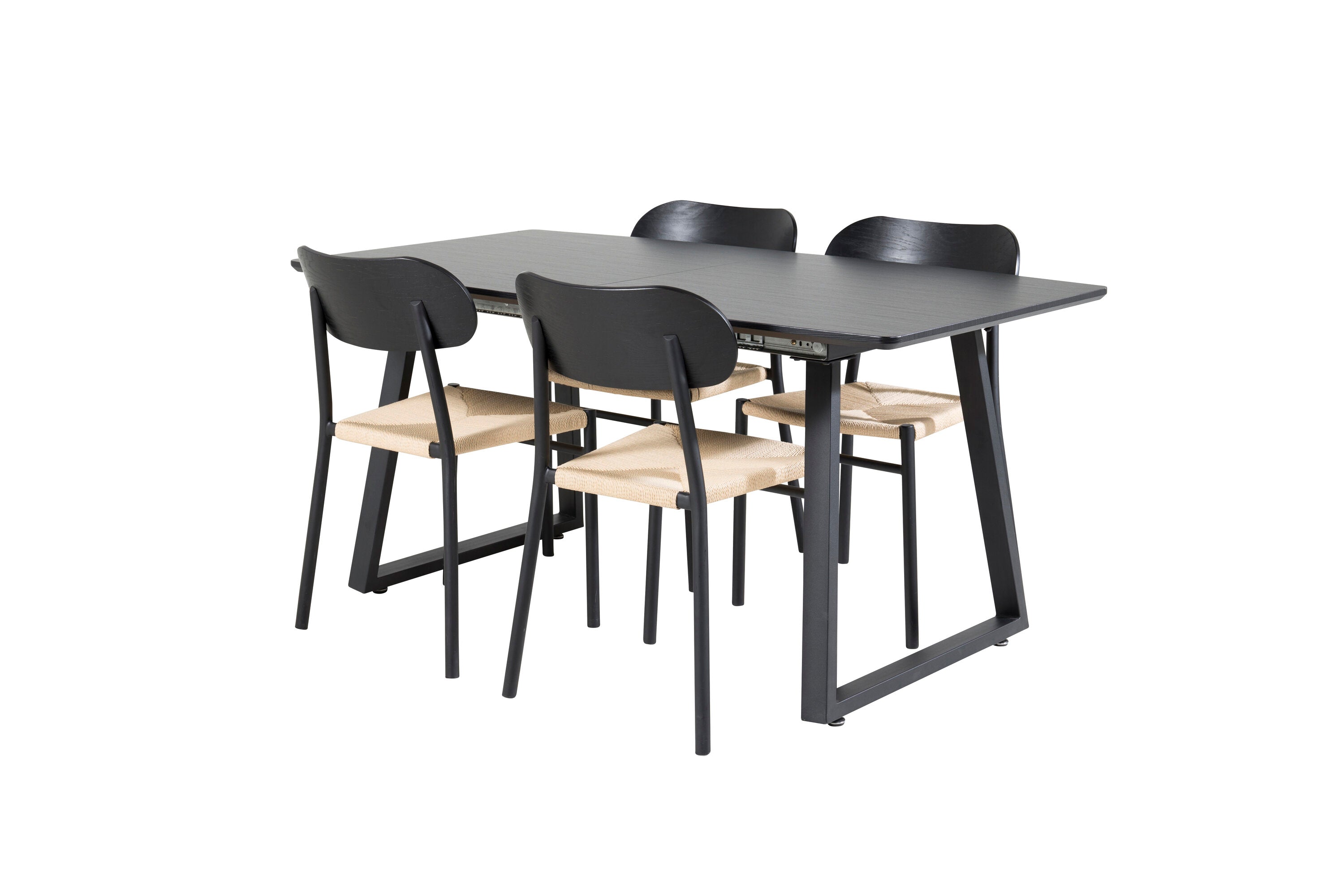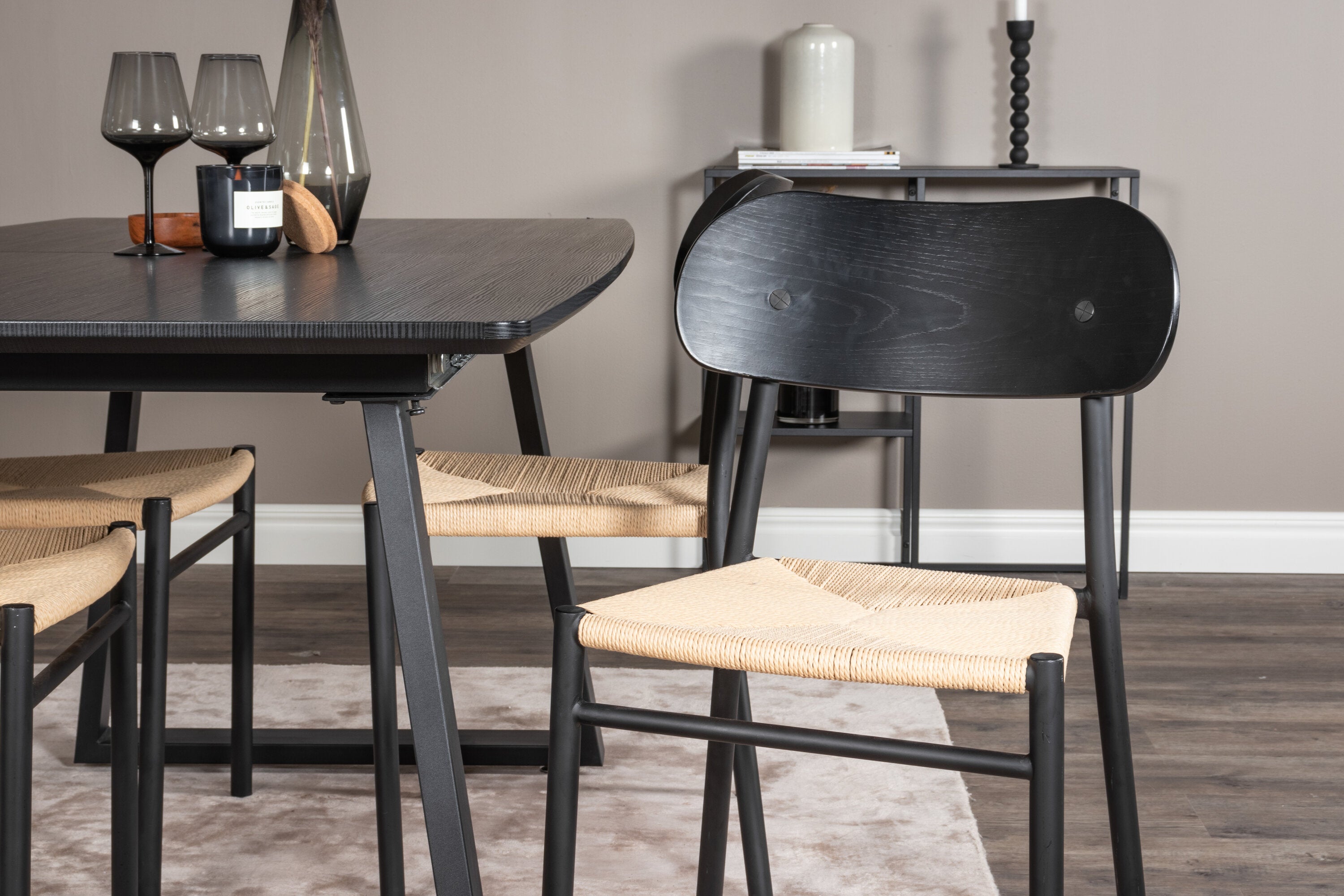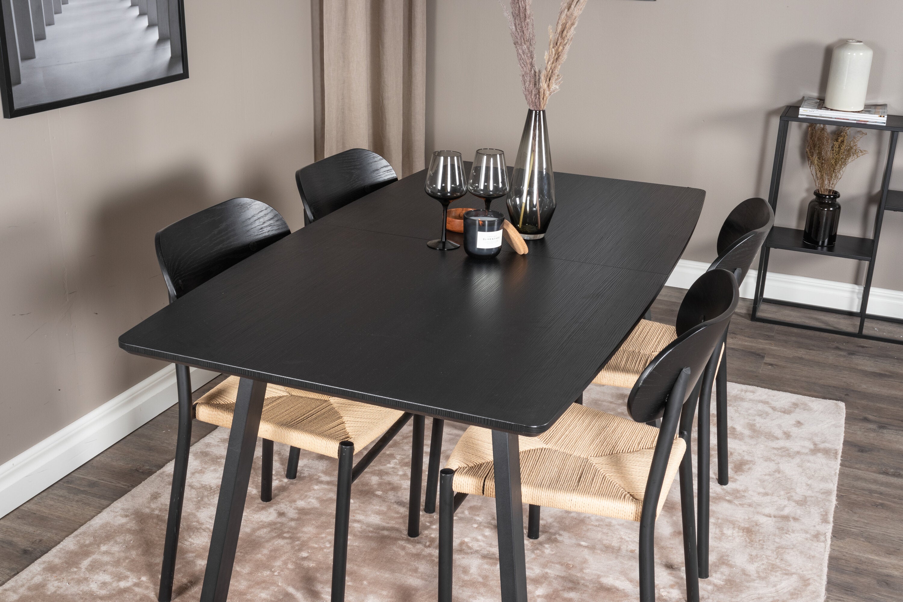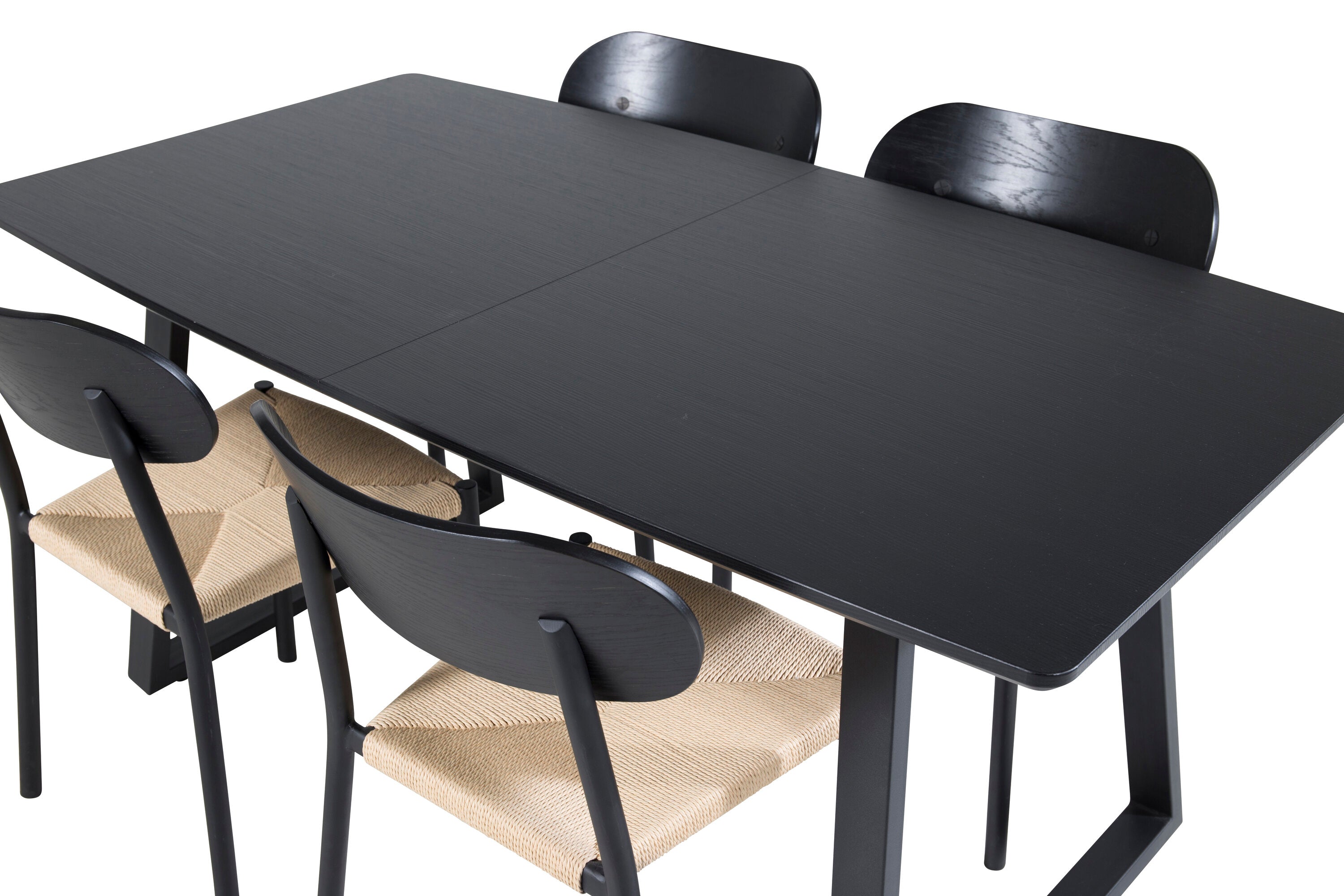 Inca Extentiontable - Černá horní deska / černé nohy + Jídelní židle Polly - Černá / Nature _4