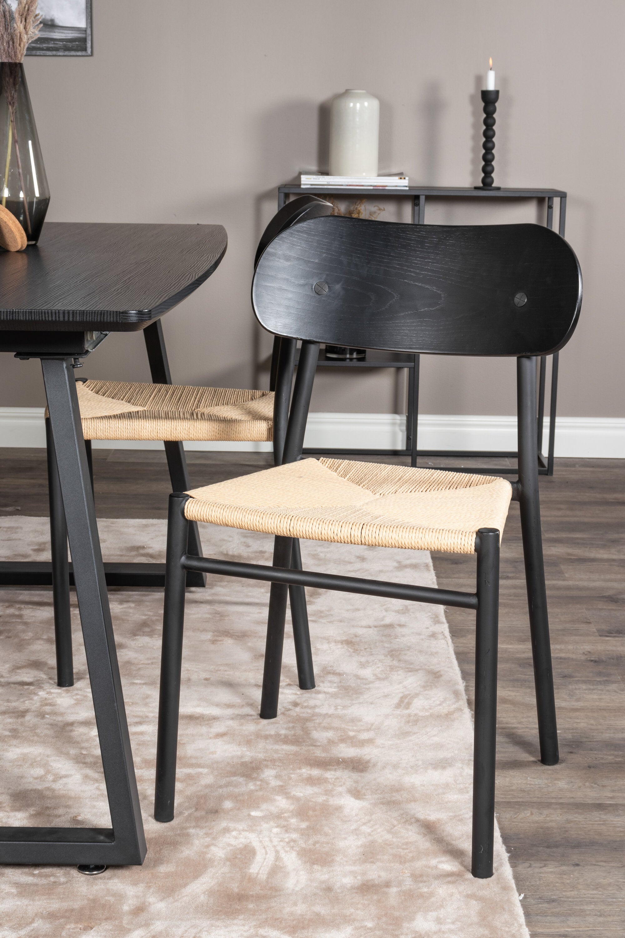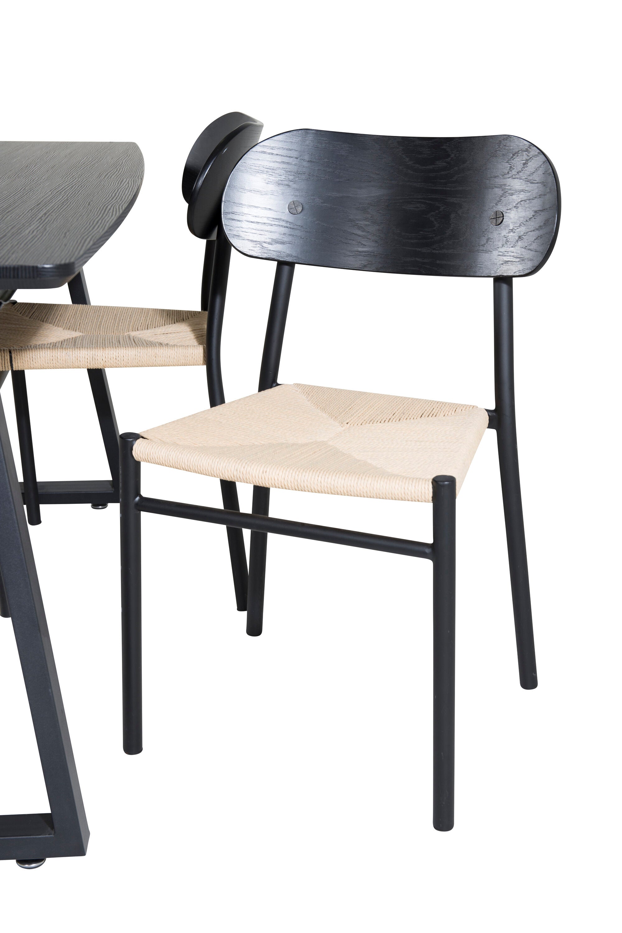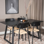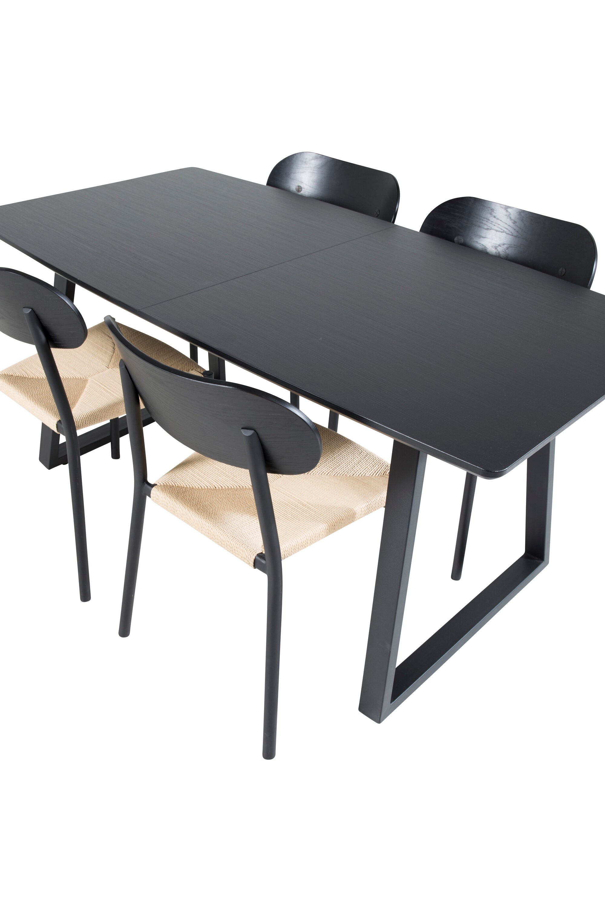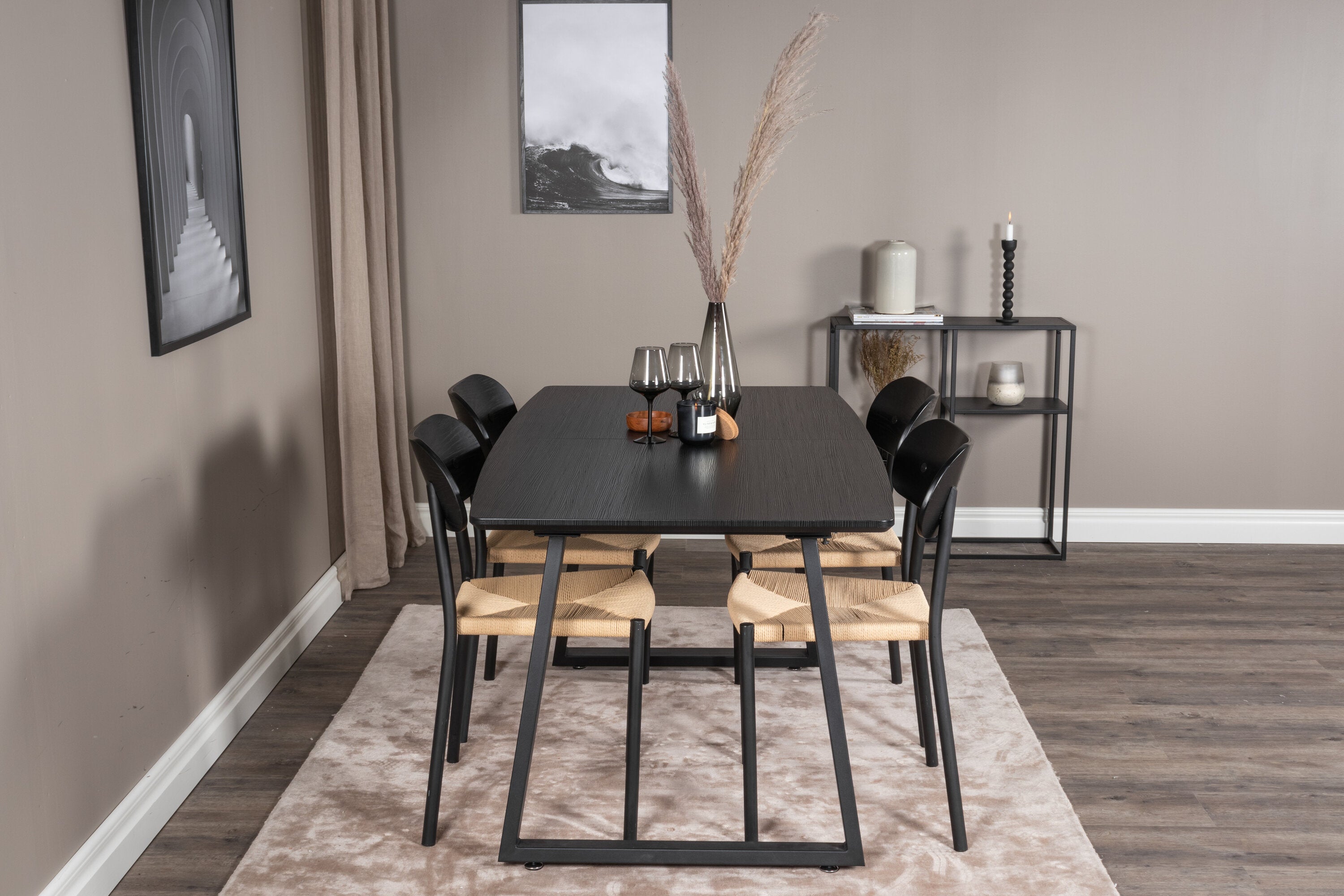 Inca Extentiontable - Černá horní deska / černé nohy + Jídelní židle Polly - Černá / Nature _4