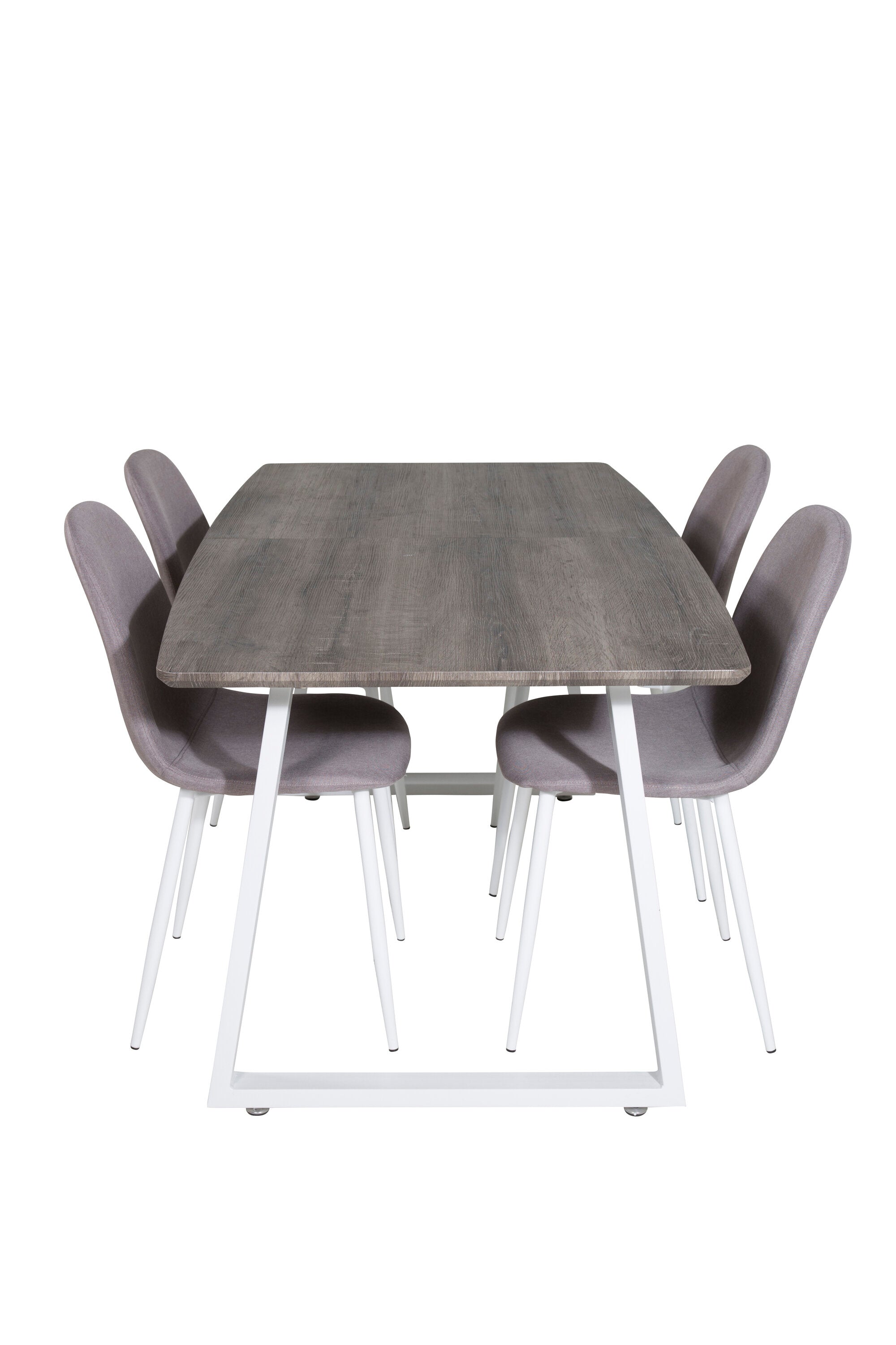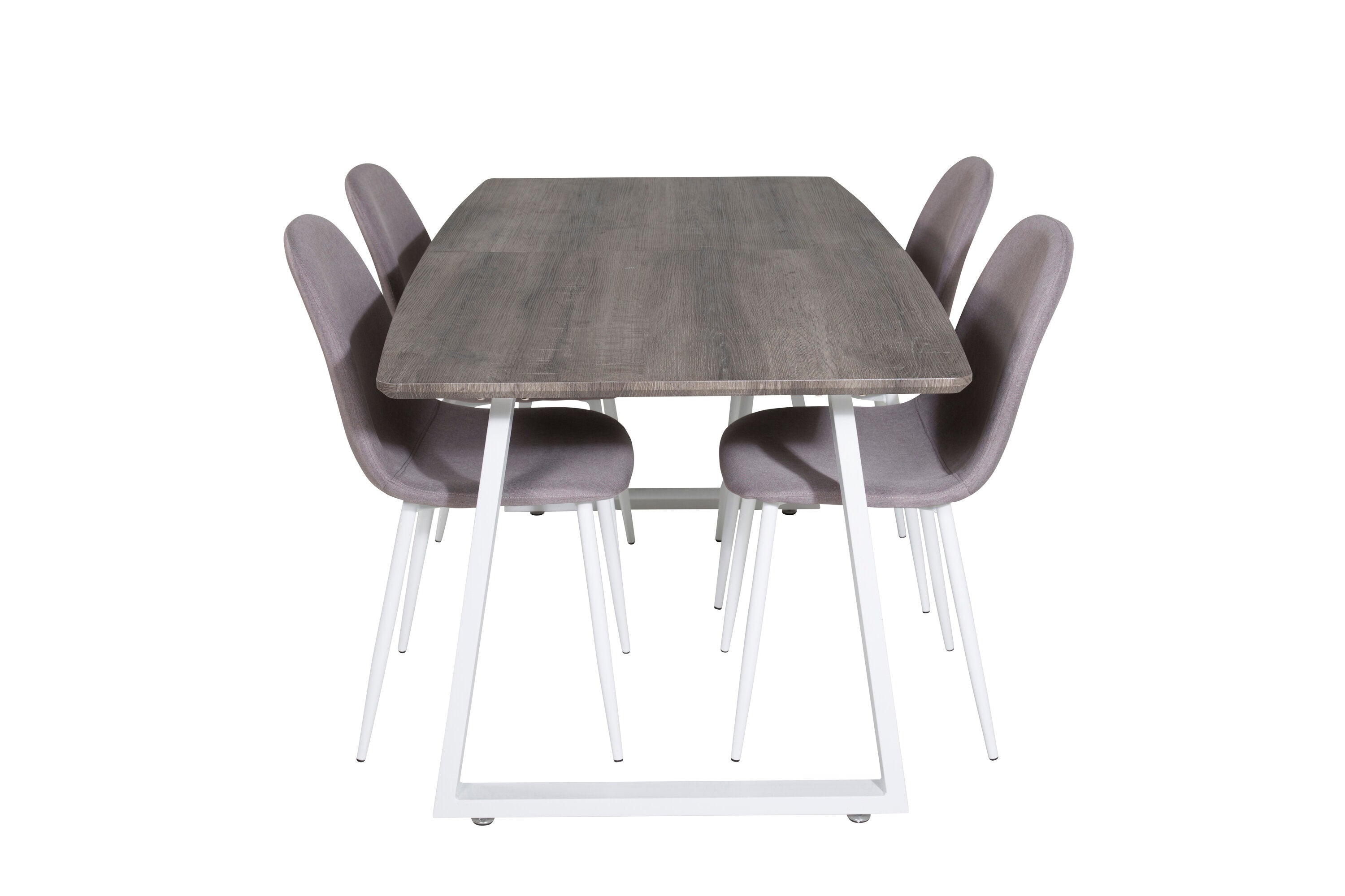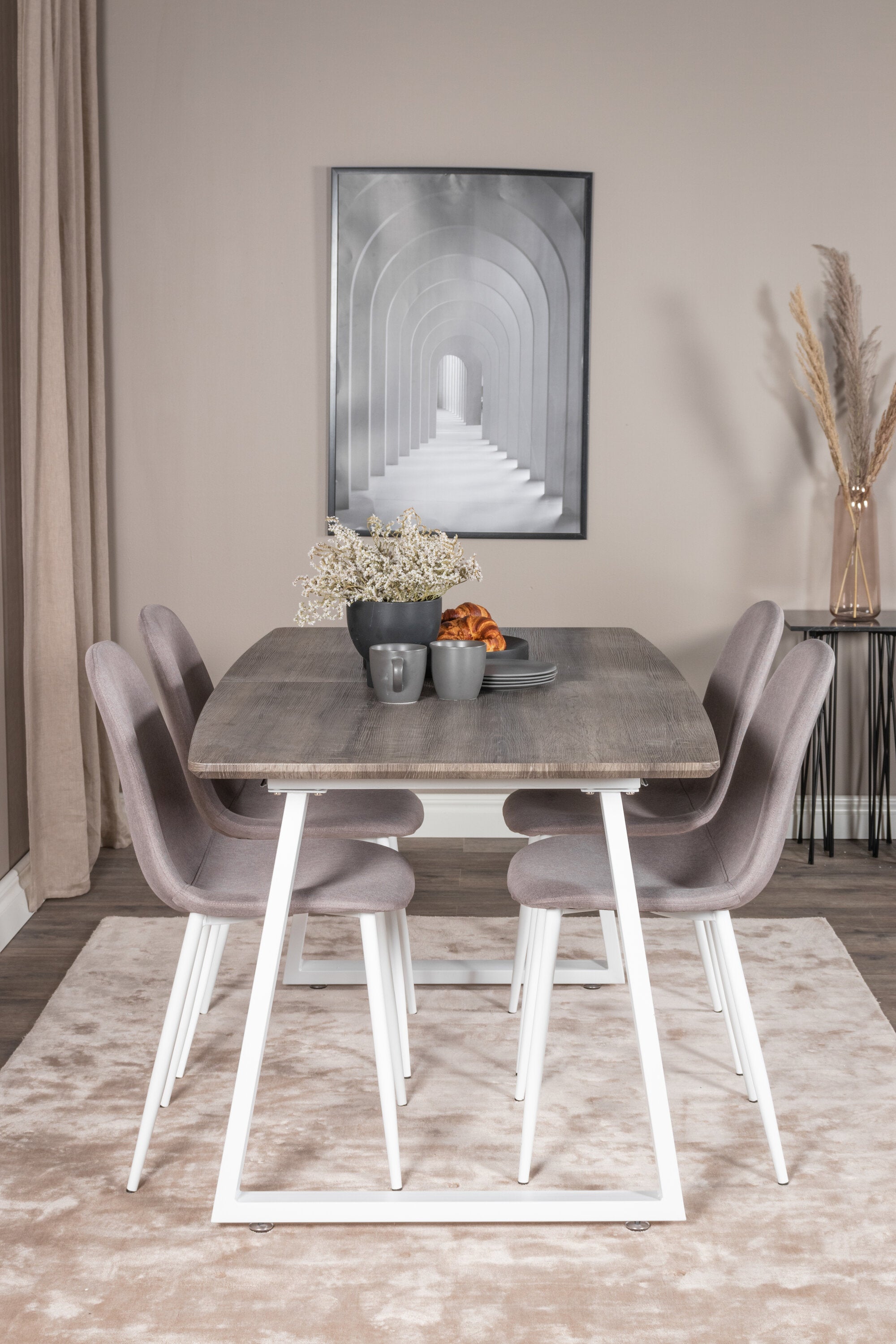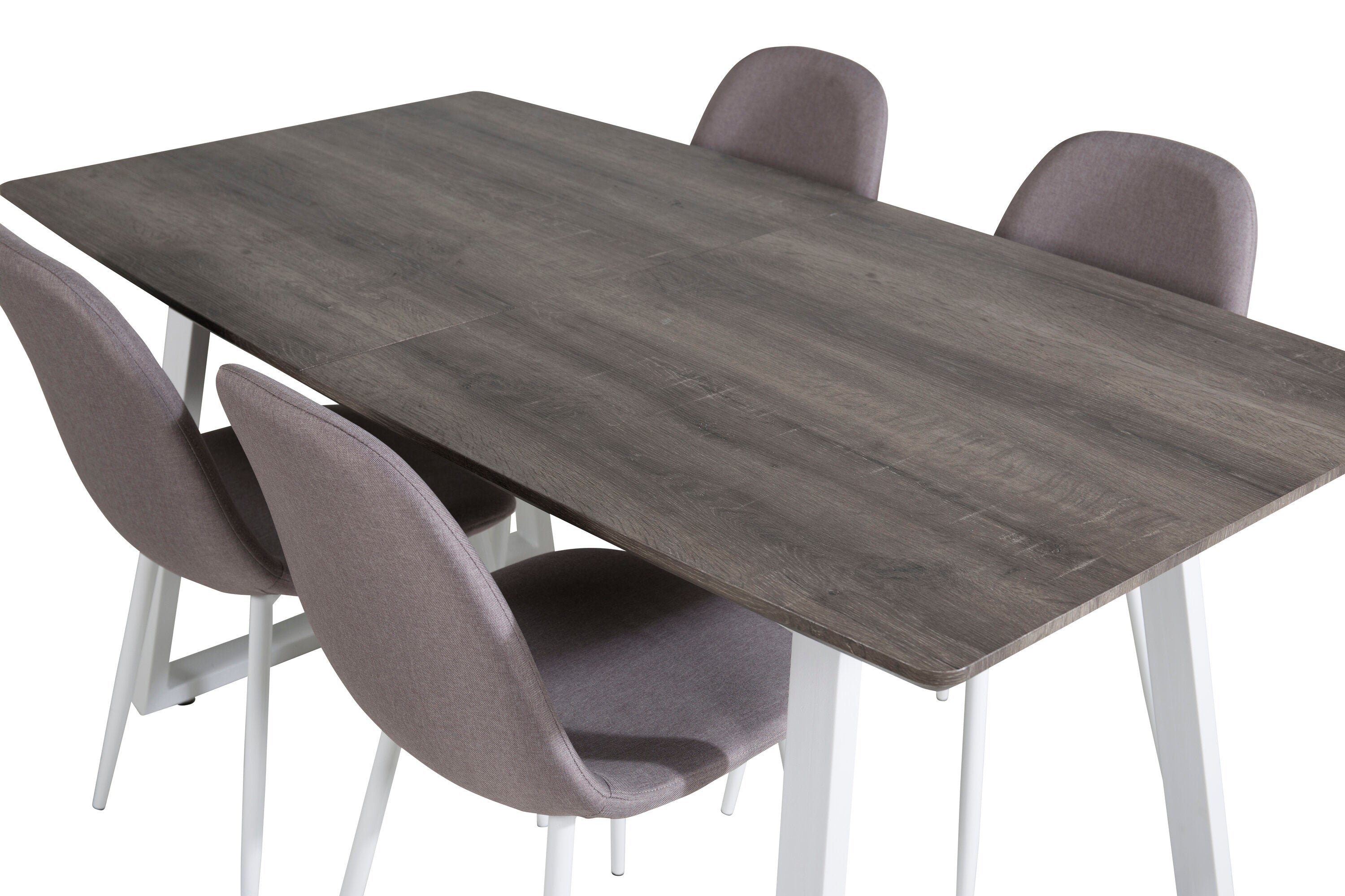 Inca Extentiontable - šedý "dub" / bílá Nohy + Polar Chair - Šedá látka Bílé Nohy _4